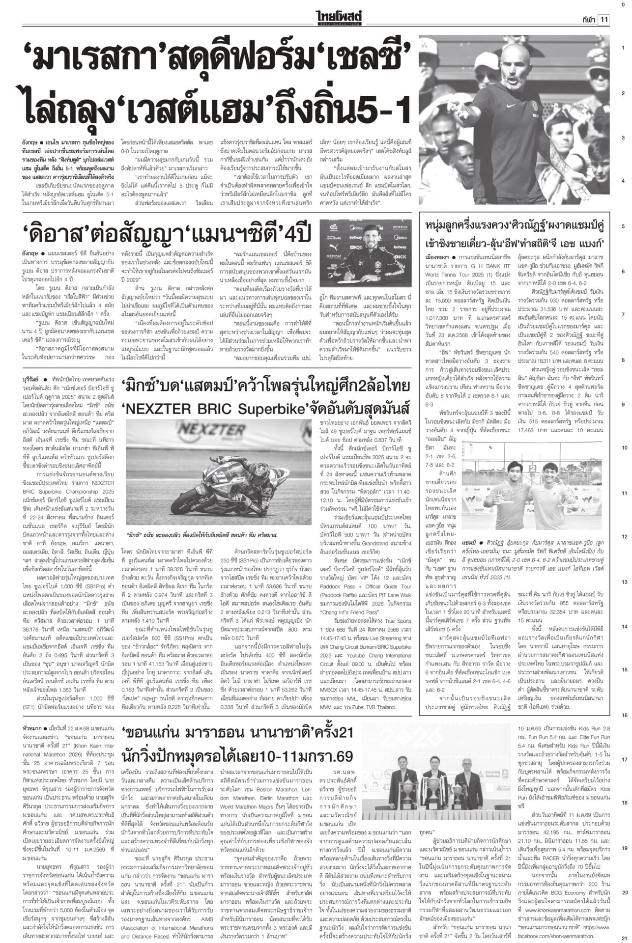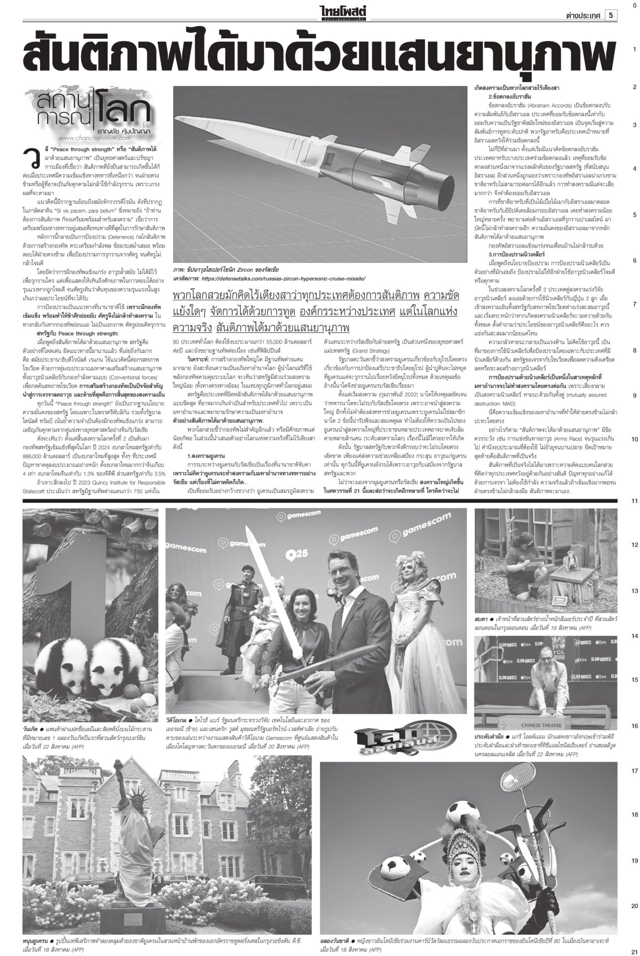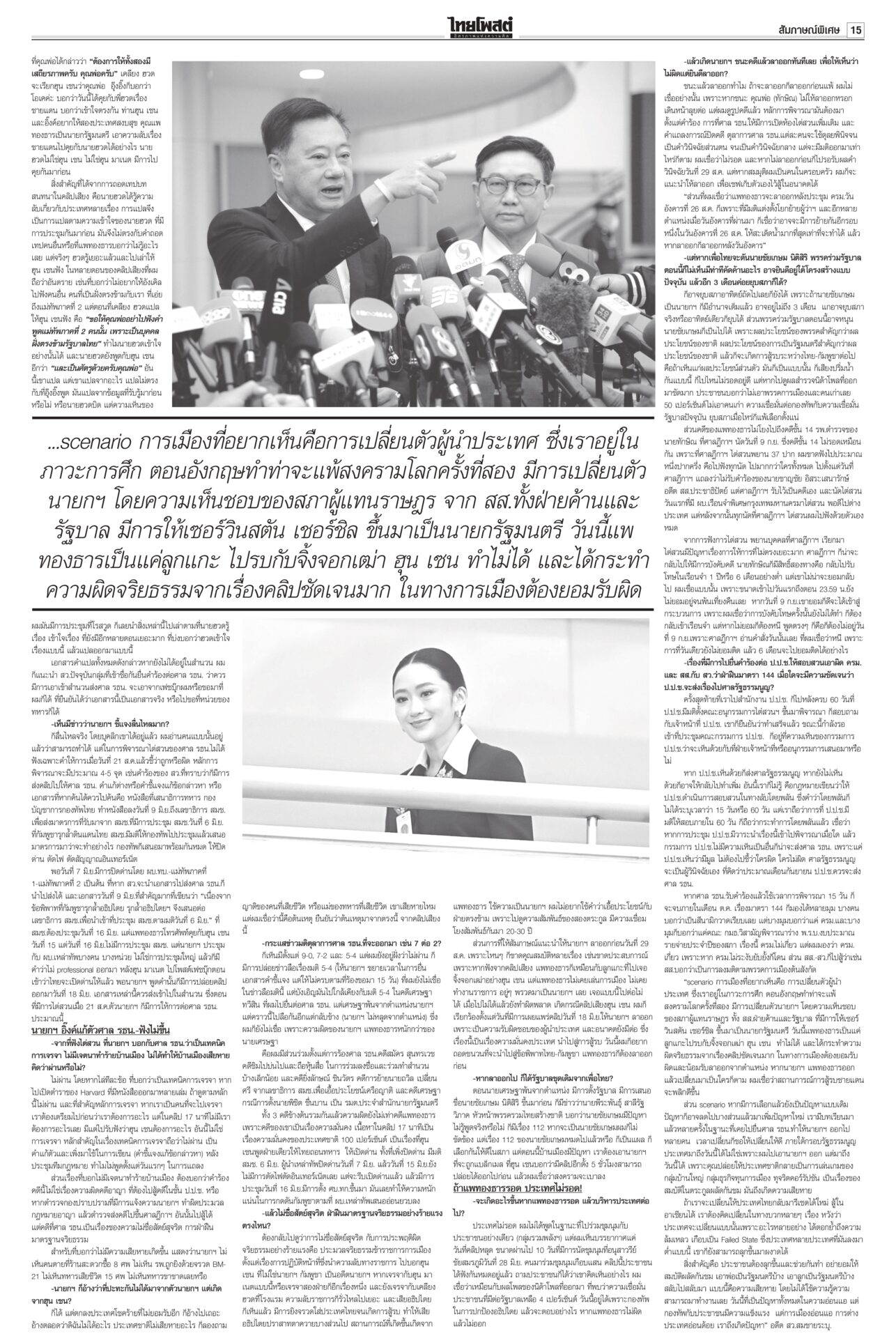 ฉบับวันที่ 24 สิงหาคม 2568 24 สิงหาคม 2568 เวลา 0:01 น. หนังสือพิมพ์ฉบับวันที่ 24 สิงหาคม 2568 ข่าวหน้าหนึ่งผบ.ทบ.บุกภูมะเขือ จับได้คาหนังคาเขาหน่วยBHQวางกับระเบิดจ่อฟ้องIOTไล่บี้เขมรผบ.ทบ.เหยียบ “ภูมะเขือ” จุดปักธงชาติ ตรวจเยี่ยมฐานปฏิบัติการ ขอบคุณกำลังพลทุ่มเทปฏิบัติงานเต็มความสามารถ ขอให้ตั้งอยู่บนความปลอดภัย ผู้ช่วยโฆษก ทบ.เผยจับได้คาหนังคาเขา พท.ตีปี๊บข่าวดีชินวัตร“หมอมิ้ง” ยืนยัน “อุ๊งอิ๊ง” ไม่ลาออก วอนสื่ออย่าไปขยายความให้สับสน ด้านประธาน สส.พรรคเพื่อไทยย้ำนายกฯ ไม่มีเจตนาร้ายต่อบ้านเมือง 29 ส.ค.เจอกันที่ศาลรัฐธรรมนูญแน่นอน ‘ไชยา’ไม่ใช่โรบอต ถ้าผิดเค้าขอโทษ!ถ้าผิดเค้าขอโทษ! “ไชยา” ยันไม่ได้ปิดประชุมหนี แต่ว่าตามวิปรัฐบาล ไม่รู้ฝ่ายค้านไปคุยอะไรกัน ลั่นเป็นมนุษย์ไม่ใช่โรบอต นั่งบนบัลลังก์เป็นสิบชั่วโมงก็มีความเหนื่อยล้า วิกฤตขาดแรงงาน! จี้รัฐบาลเปิดตัวเลขควันหลงไทยรบเขมร แรงงานขาดอย่างหนัก! นักวิชาการจี้ “กระทรวงแรงงาน-ตม.” เร่งสำรวจตัวเลขแรงงานกัมพูชากลับภูมิลำเนา เพื่อให้ทราบขนาดของปัญหาที่แท้จริง Tagsรายวันหนังสือพิมพ์ ข่าวที่เกี่ยวข้อง ฉบับวันที่ 6 ธันวาคม 2568 ฉบับวันที่ 5 ธันวาคม 2568 ฉบับวันที่ 4 ธันวาคม 2568 ฉบับวันที่ 3 ธันวาคม 2568 ฉบับวันที่ 2 ธันวาคม 2568 ฉบับวันที่ 1 ธันวาคม 2568 NEWS UPDATE 0:42 น. 'DUMB.RONG' ค่าย 'tiny' ส่งซิงเกิล 'SUNRISE' พร้อม MV สุดปั่น 0:37 น. 'เบนท์ กิตติธัช' จาก 'Kicks Records' ปล่อย 'กาฬสินธุ์ บลูส์' แนวดนตรีใหม่ที่โตขึ้น 18:43 น. ในหลวง พระราชินี ทรงบำเพ็ญพระราชกุศลทักษิณานุปทาน เนื่องในวันคล้ายวันพระบรมราชสมภพ รัชกาลที่ 9 18:12 น. เริ่มแล้ว Cat Expo Thailand 2025 วันแรก 'ทาสแมว' แห่ร่วมงานคึกคักคาดเม็ดเงินสะพัด 120 ล้านบาท 18:06 น. กรมอุตุฯ เผยพายุลูกใหม่กำลังก่อตัวบริเวณทะเลจีนใต้ตอนกลาง