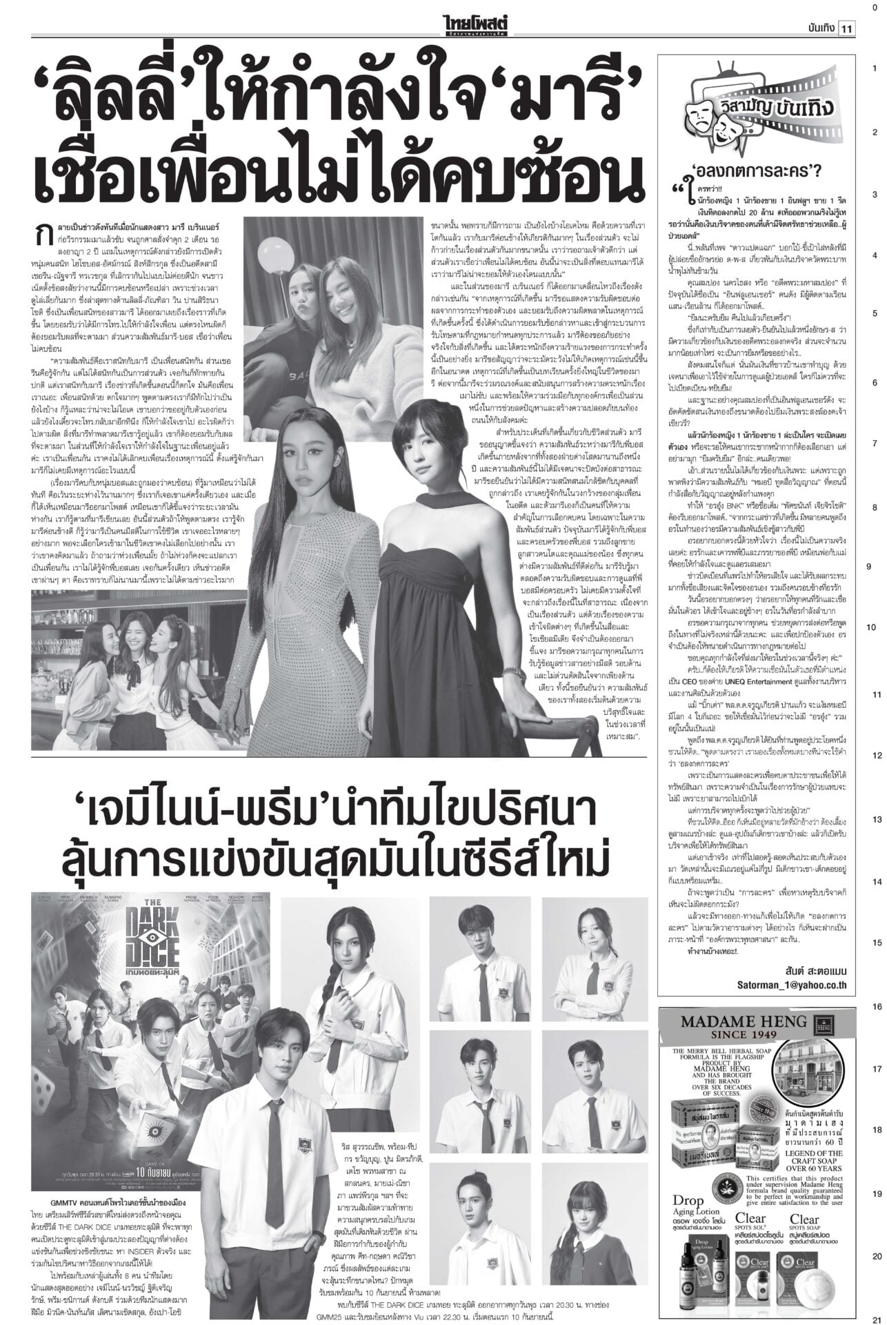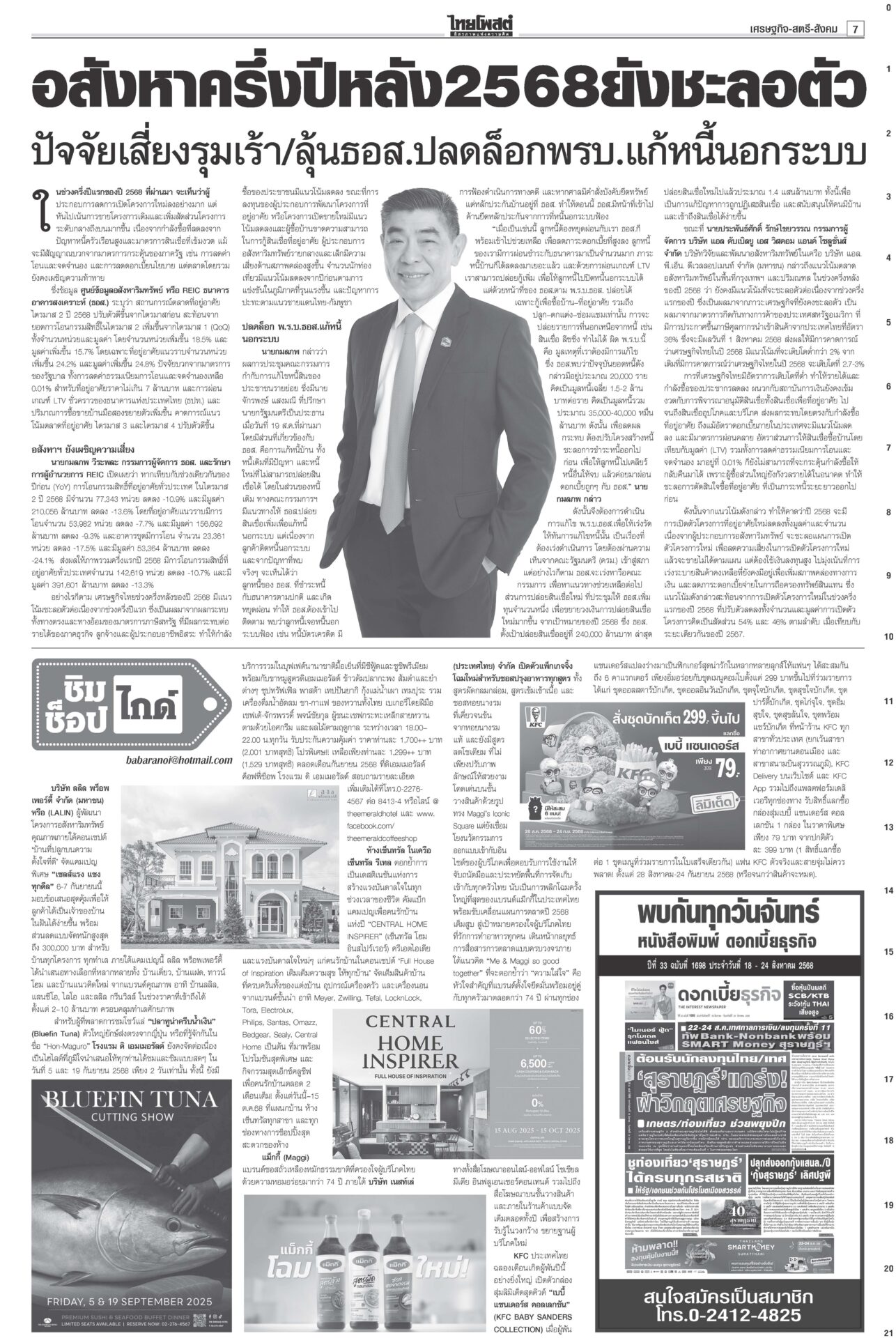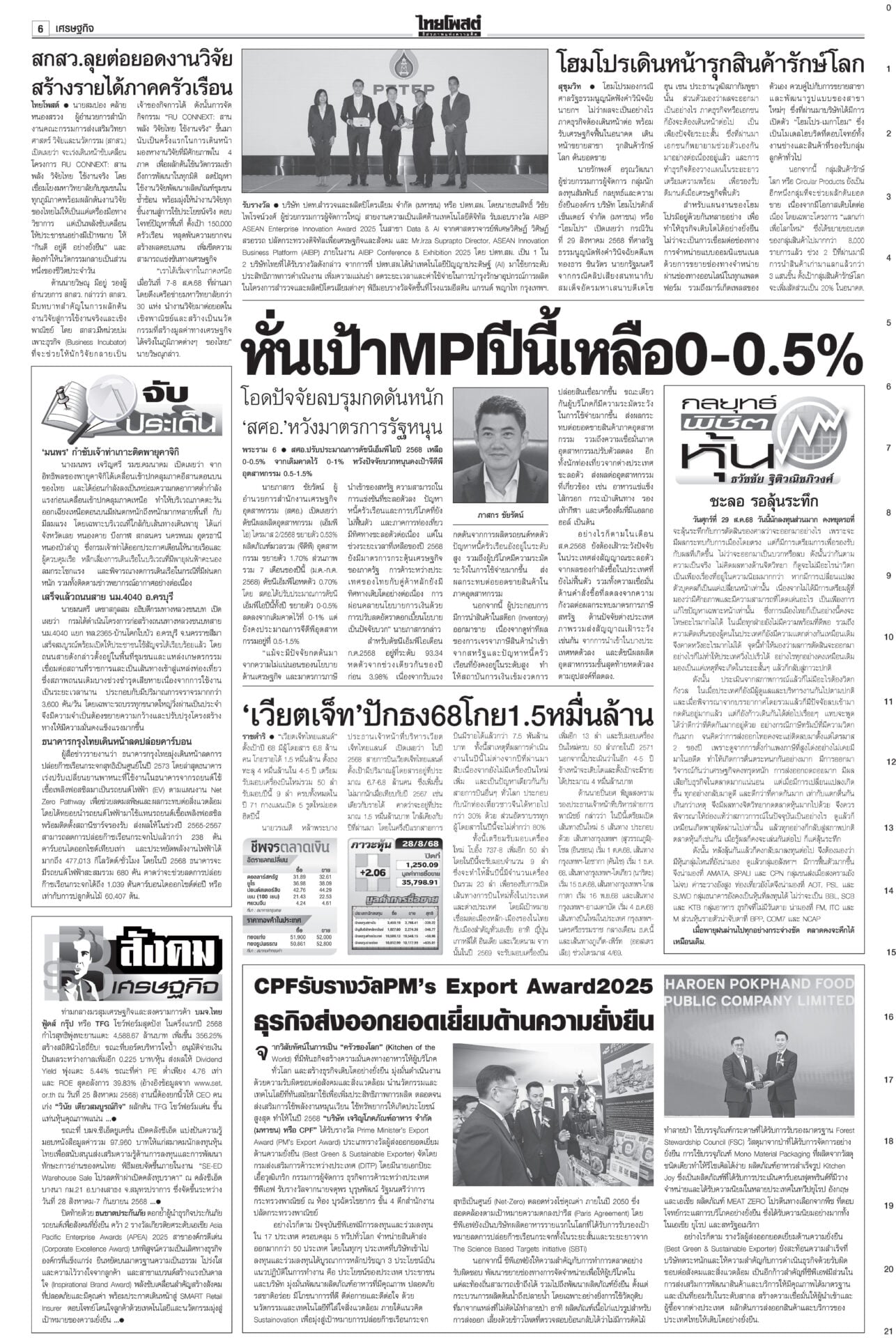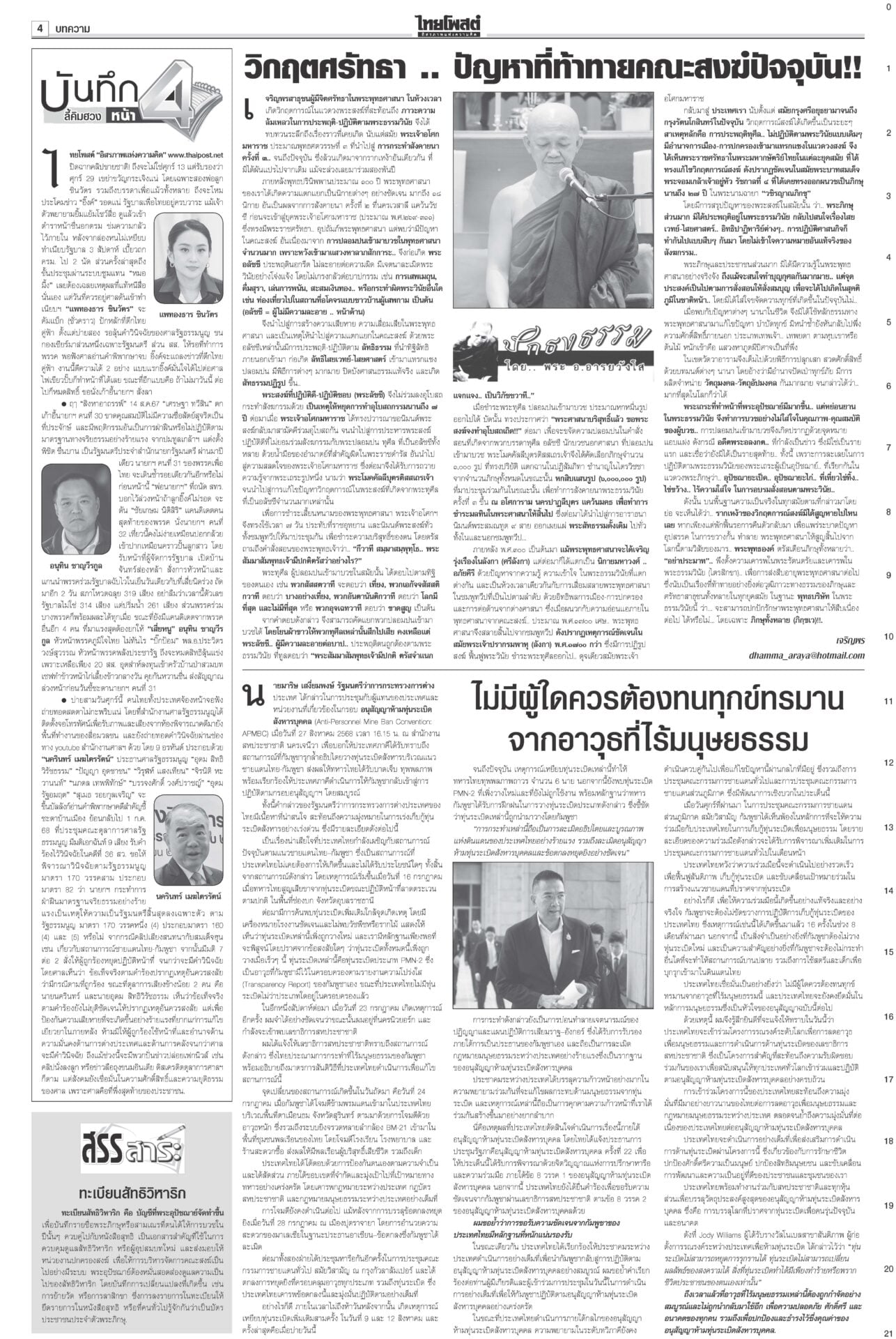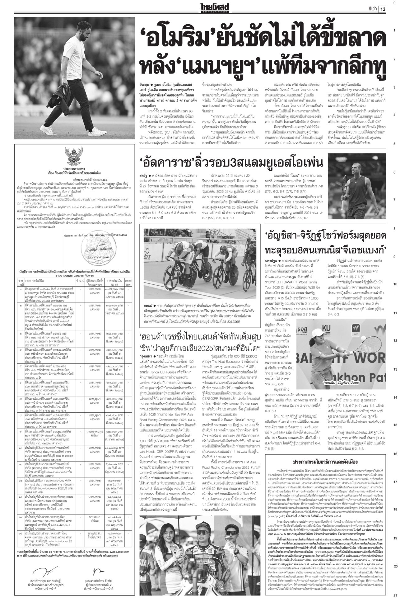 หนังสือพิมพ์ ฉบับวันที่ 29 สิงหาคม 2568ข่าวหน้าหนึ่งระทึก!ชี้ชะตา‘อิ๊งค์’ เข้าทำเนียบฯนัดแถลงข่าว ม็อบขวางพท.-‘อนุทิน’ขยับศาลรัฐธรรมนูญดำเนินคดีสื่อเผยแพร่คลิป “นั่งลงลูก” ผิด พ.ร.บ.คอมพ์-ละเมิดอำนาจศาล เตรียมนั่งบัลลังก์อ่านคำวินิจฉัยคดีร้อง บีบเขมรเก็บระเบิด เริ่มสร้างรั้ว10กม.กต.เดินสายคุยภาคีอนุสัญญาออตตาวาร่วมกดดันเขมร เปิดทางให้เก็บกู้ระเบิด ร้องเรียนอื้อเลื่อนถกโผตร. ‘บิ๊กเต่า’เดินหน้าพึ่งกมธ.วงประชุม ก.ตร.ล่ม! เลื่อนถกโผแต่งตั้งรอง ผบ.ตร.-ผบก. ออกไปเป็น 31 ส.ค. กังวลศึกชายแดน ดัชนีเชื่อมั่นลดลง ฟุ้งเก็บภาษีคริปโต“คลัง” เผยเศรษฐกิจไทยเดือน ก.ค.68 ยังรับอานิสงส์ส่งออกโตต่อเนื่องเป็นเดือนที่ 13 ส่วนลงทุน-ท่องเที่ยวต่างชาติเริ่มแผ่ว ขู่แก๊งอลงกตนำทรัพย์สินคืน“อดีตพระอลงกต-หมอบี” นอนคุกคืนแรกหลับได้ กำลังปรับตัว มีโรคประจำตัวพกยามาด้วย