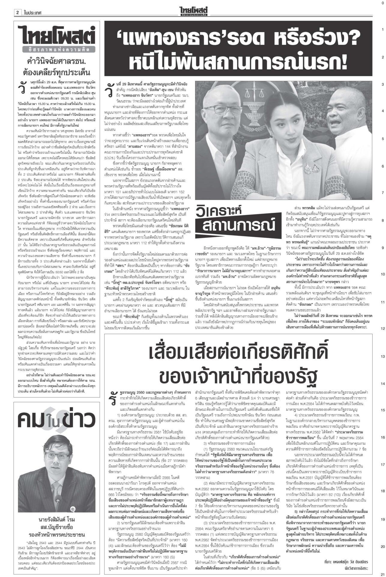 ระทึก!ชี้ชะตา‘อิ๊งค์’ เข้าทำเนียบฯนัดแถลงข่าว ม็อบขวางพท.-‘อนุทิน’ขยับศาลรัฐธรรมนูญดำเนินคดีสื่อเผยแพร่คลิป “นั่งลงลูก” ผิด พ.ร.บ.คอมพ์-ละเมิดอำนาจศาล เตรียมนั่งบัลลังก์อ่านคำวินิจฉัยคดีร้อง