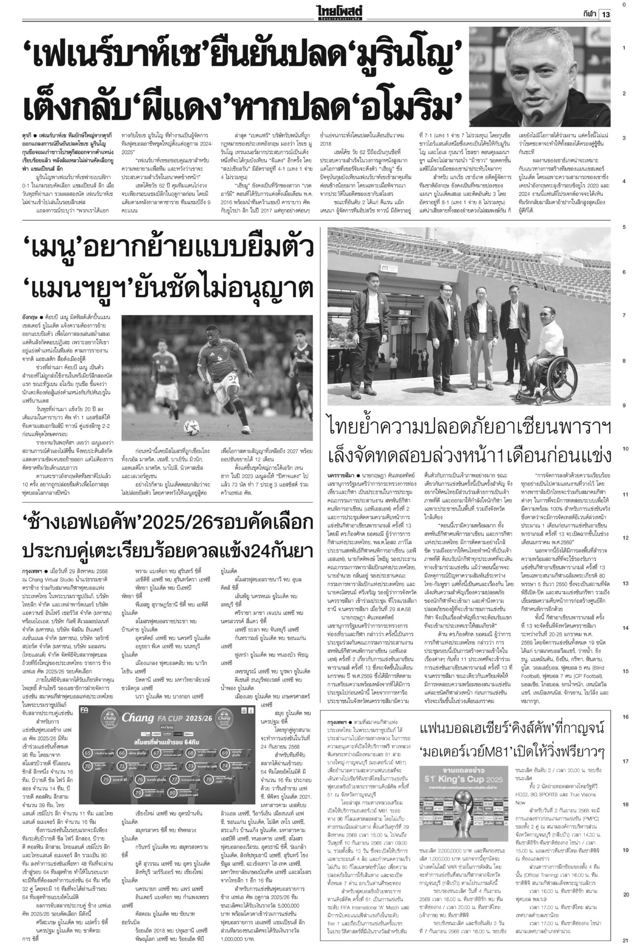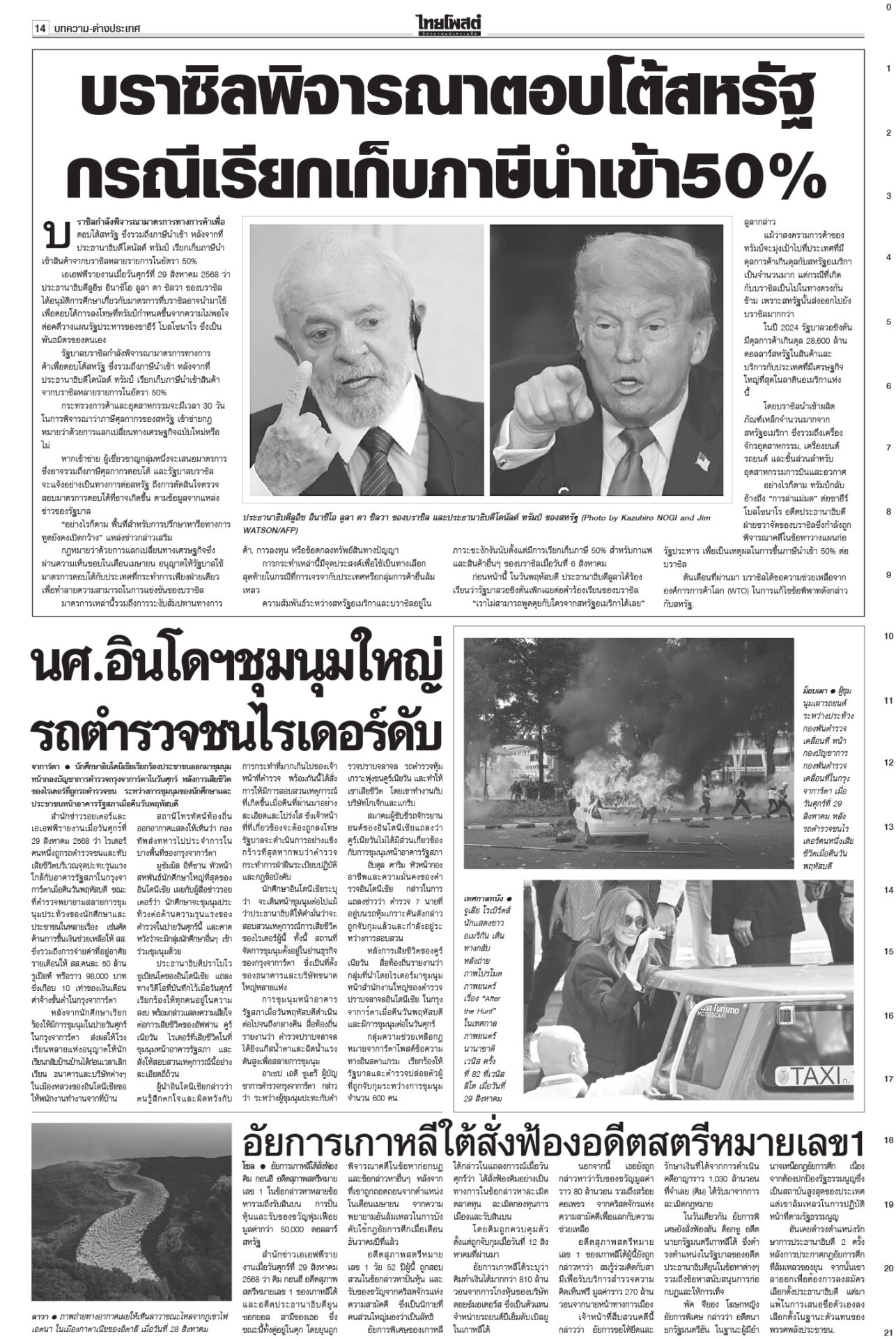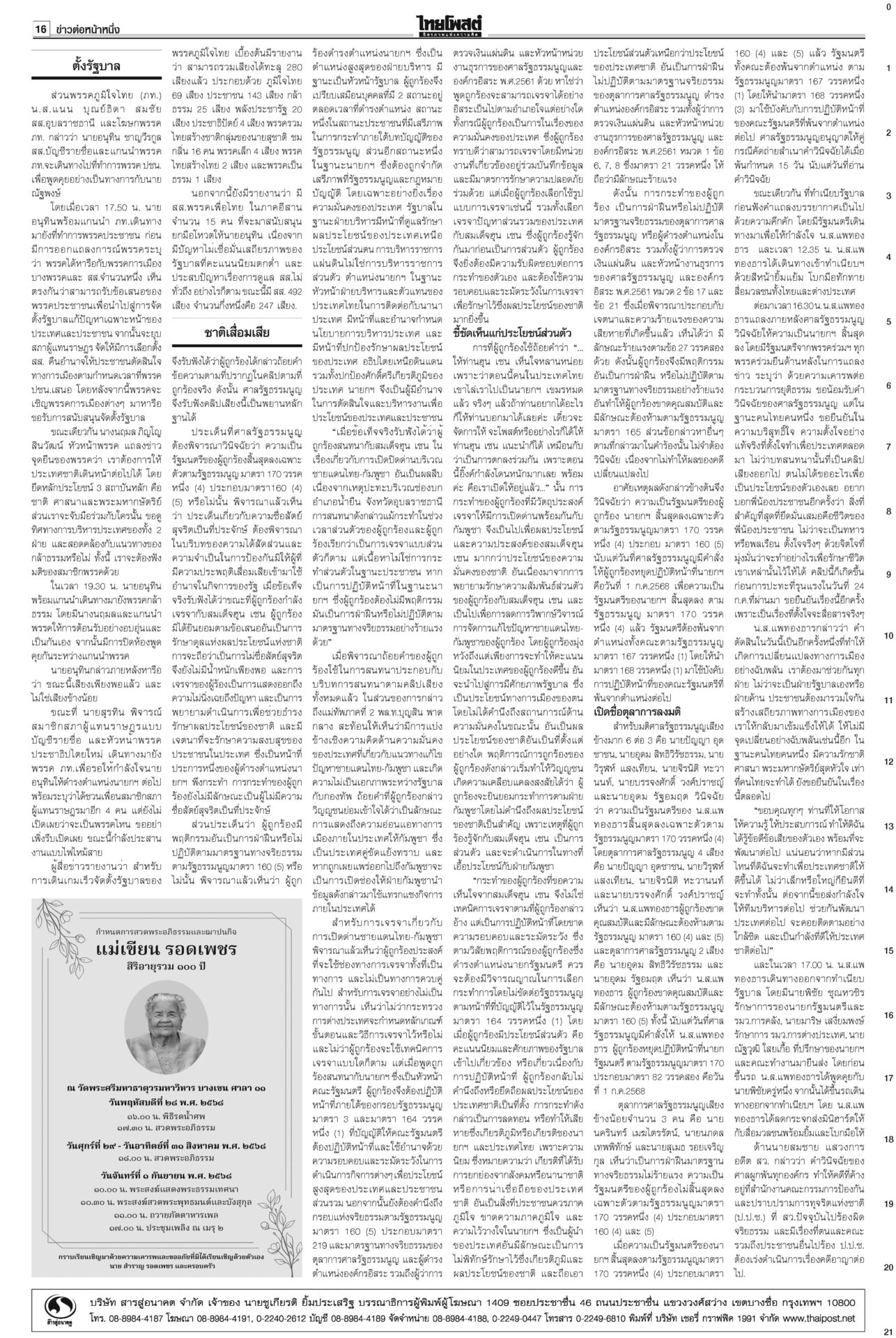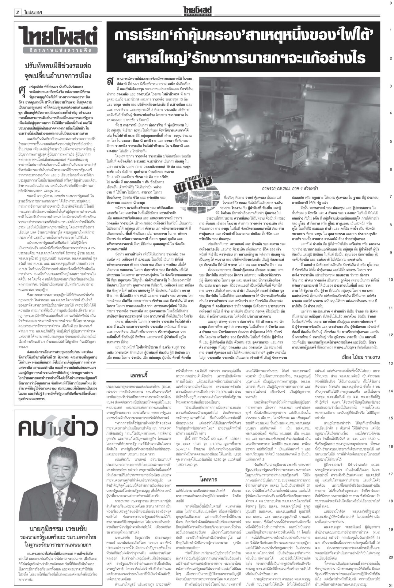 ฉบับวันที่ 30 สิงหาคม 2568 30 สิงหาคม 2568 เวลา 0:01 น. หนังสือพิมพ์ ฉบับวันที่ 30 สิงหาคม 2568ข่าวหน้าหนึ่งชาติเสื่อมเสียเกียรติ มติตุลาการ‘6:3’ อิ๊งค์ผิดจริยธรรม พ้นเก้าอี้‘นายกฯ’ศาลรัฐธรรมนูญลงมติ 6:3 ฟัน “แพทองธาร ชินวัตร” พ้นเก้าอี้นายกฯ ปมคลิปอังเคิล ตั้งรัฐบาลฝุ่นตลบ‘เสี่ยหนู’ลั่นเสียงเพียงพอฝุ่นตลบจัดตั้งรัฐบาล “ฉลาด” คาด 1-2 ก.ย.น่าจะได้นายกฯ ใหม่แล้ว โผทหารลงตัว เน้นเหมาะสม สถานการณ์!“บิ๊กเล็ก” เผยบอร์ด 6 เสือ กห. ลงนามโผทหาร ไฟเขียวตาม ผบ.เหล่าทัพเสนอ บ้านหนองจานใช้อัยการศึก“ในหลวง” ทรงพระกรุณาโปรดเกล้าฯ ให้องคมนตรีเชิญสิ่งของพระราชทานมอบ 6 ทหารชายแดนไทย-กัมพูชา เอกชนจี้เร่งหา‘ผู้นำ’คนใหม่“ธปท.” ชี้ศาล รธน.วินิจฉัย “นายกฯ อิ๊งค์” พ้นตำแหน่งไม่กระทบมุมมองเศรษฐกิจ Tagsรายวันหนังสือพิมพ์ ข่าวที่เกี่ยวข้อง ฉบับวันที่ 5 ธันวาคม 2568 ฉบับวันที่ 4 ธันวาคม 2568 ฉบับวันที่ 3 ธันวาคม 2568 ฉบับวันที่ 2 ธันวาคม 2568 ฉบับวันที่ 1 ธันวาคม 2568 ฉบับวันที่ 30 พฤศจิกายน 2568 NEWS UPDATE 14:32 น. ดอกไม้นานาพรรณบานสะพรั่งทั่วสวนหลวง ร.๙ สัมผัสรับลมหนาวถึง 10 ธ.ค. นี้ 14:31 น. พิพิธภัณฑ์มิตร ชัยบัญชา จัดแสดงนิทรรศการพระบรมฉายาลักษณ์ รำลึกในหลวง ร.9 14:07 น. 🛑LIVE ร้องข้ามกำแพงคุก!! | ห้องข่าวไทยโพสต์ 14:03 น. 'ซัมซุง' เดินหน้าช่วยเหลือผู้ประสบภัยน้ำท่วมภาคใต้ ส่งมอบความช่วยเหลือและบริการฟื้นฟูในพื้นที่ครบวงจร 13:46 น. เดือด 'สส.พรรคส้ม' ซัดสว.เกียจคร้าน แตะถ่วง พรบ.อากาศสะอาด ขณะที่ปชช.กำลังสูดฝุ่นพิษ