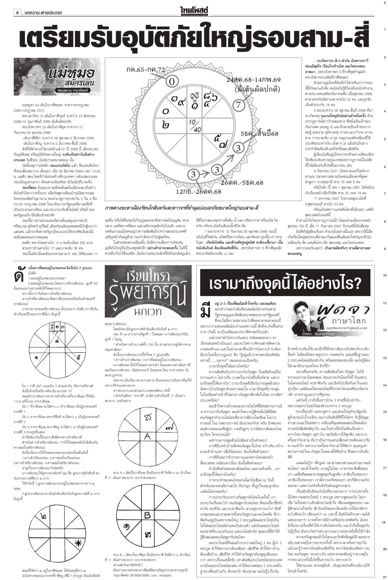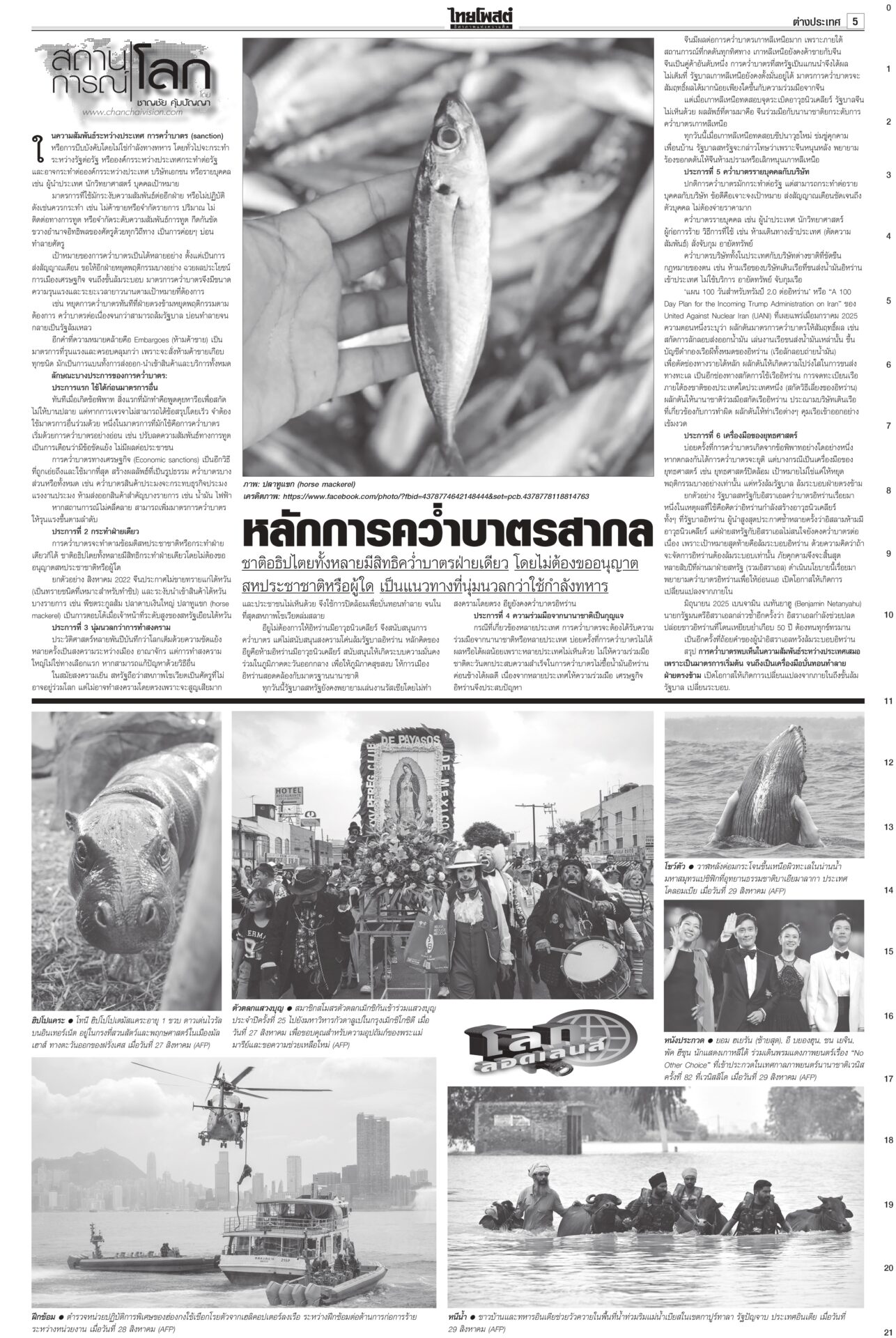 ฉบับวันที่ 31 สิงหาคม 2568 31 สิงหาคม 2568 เวลา 0:01 น. หนังสือพิมพ์ฉบับวันที่ 31 สิงหาคม 2568 ข่าวหน้าหนึ่งปิดดีล‘นายกฯอนุทิน’ 283สส.พร้อมโหวต‘ธนาธร’คุย‘ทักษิณ’ระบุข้อเสนอ‘ภท.’เต็มโต๊ะจ่อปิดดีลตั้งรัฐบาลใหม่ “อนุทิน” นั่งนายกฯ เสียงสนับสนุน 283 เสียง รอเลือดจากเพื่อไทยไหลเพิ่มเติม “กล้าธรรม” ออกแถลงการณ์ย้ายข้างเรียบร้อย ส่วน “หัวหน้าเท้ง” ยังไว้เชิงรอ 1 ก.ย.เคาะอีกที รัฐบาลเดินต่อ ‘อุ๊งอิ๊ง’ หมดค่า! ไม่อยู่ไม่กระทบกลายเป็นอากาศธาตุ! รัฐมนตรีตอบเป็นเสียงเดียวกัน “อุ๊งอิ๊ง” ไม่อยู่ไม่กระทบการทำงาน “บิ๊กเล็ก” ยันเรื่องชายแดนทหารเอาอยู่ ขณะที่ “พิชัย” เผยเรื่องเศรษฐกิจใครรับผิดชอบก็ยังต้องดูแลอยู่ เจรจาสหรัฐไม่สะดุด เพื่อไทยเลือดไหล แห่ออกกลุ่มไลน์!เพื่อไทยระส่ำหนัก เลือดไหลเป็นทาง สส.แห่ดีดตัวเองออกจากกลุ่มไลน์พรรค ขณะที่แกนนำพรรคดาหน้าเย้ยมีแค่ “ศักดิ์ดา” คนเดียวเท่านั้นที่ไปหนุน “อนุทิน” ‘อ้วน’เพ้อมีอำนาจยุบสภาฯ“ภูมิธรรม” เมาหมัด! ยันรัฐบาลรักษาการมีอำนาจเต็มรวมทั้งยุบสภา ถ้าจะยุบก็ยุบเลย ใครขัดข้องท้าให้ไปฟ้อง ลั่นไม่จบง่ายๆ แน่ แต่เลขาฯ กฤษฎีกาเตือน เป็นอำนาจเฉพาะตัวของคนเป็นนายกฯ Tagsรายวันหนังสือพิมพ์ ข่าวที่เกี่ยวข้อง ฉบับวันที่ 5 ธันวาคม 2568 ฉบับวันที่ 4 ธันวาคม 2568 ฉบับวันที่ 3 ธันวาคม 2568 ฉบับวันที่ 2 ธันวาคม 2568 ฉบับวันที่ 1 ธันวาคม 2568 ฉบับวันที่ 30 พฤศจิกายน 2568 NEWS UPDATE 18:43 น. ในหลวง พระราชินี ทรงบำเพ็ญพระราชกุศลทักษิณานุปทาน เนื่องในวันคล้ายวันพระบรมราชสมภพ รัชกาลที่ 9 18:12 น. เริ่มแล้ว Cat Expo Thailand 2025 วันแรก 'ทาสแมว' แห่ร่วมงานคึกคักคาดเม็ดเงินสะพัด 120 ล้านบาท 18:06 น. กรมอุตุฯ เผยพายุลูกใหม่กำลังก่อตัวบริเวณทะเลจีนใต้ตอนกลาง 18:05 น. อุตฯส่งรถโมบายตรวจวัดคุณภาพอากาศเหตุเพลิงไหม้บ่อขยะปราจีนบุรี 17:38 น. ‘ลุงป้อม’ ส่งขุนศึกเหนือ ‘สุรเดช’ เปิดตัว 3 ว่าที่ผู้สมัครเชียงใหม่