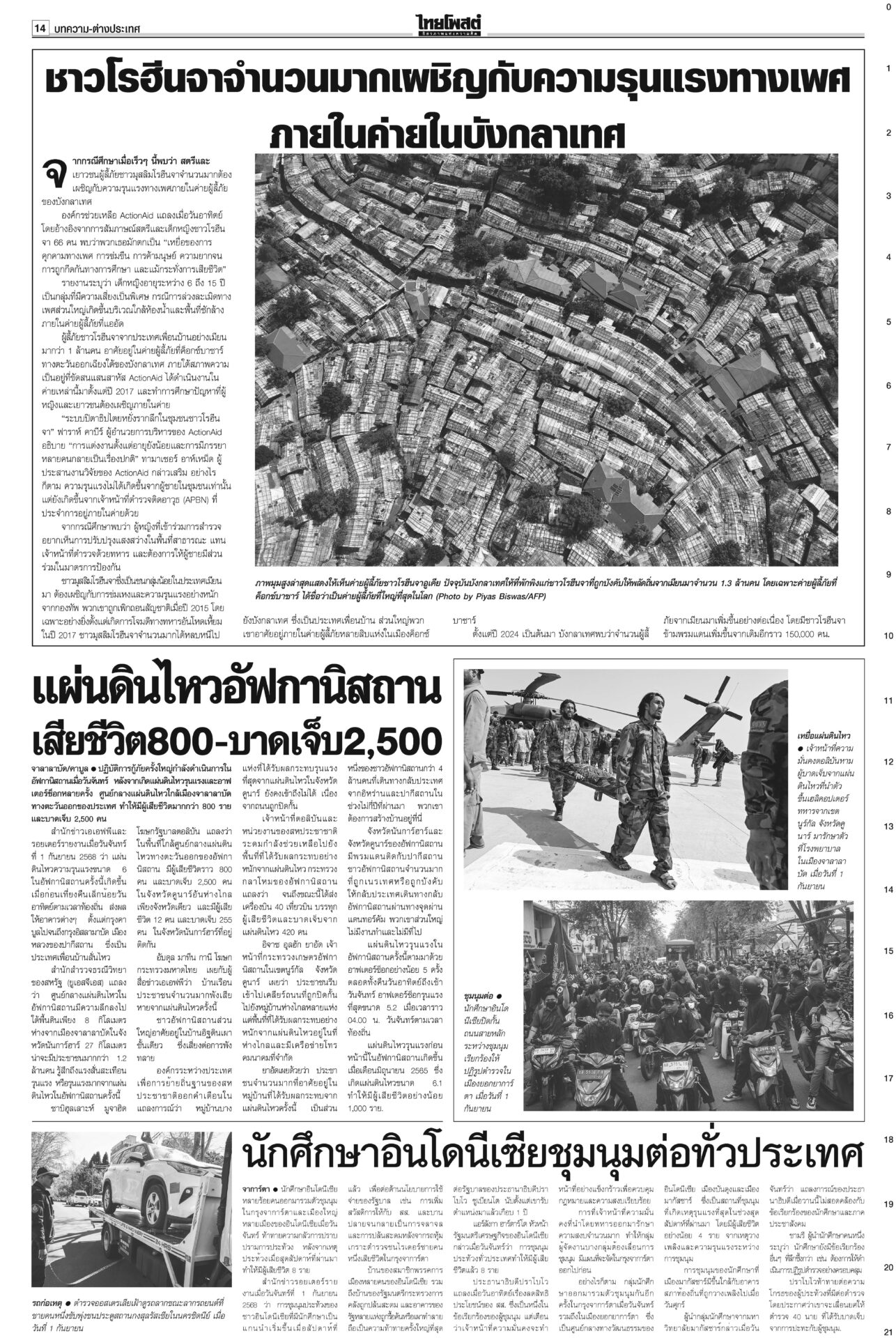 ฉบับวันที่ 2 กันยายน 2568 2 กันยายน 2568 เวลา 0:01 น. หนังสือพิมพ์ ฉบับวันที่ 2 กันยายน 2568ข่าวหน้าหนึ่งดึงเกมเคาะชื่อนายก ปชน.เชื่อสะเด็ดนํ้าหากงดออกเสียง2พรรครวมกันอยู่ยาวรอเก้อ! “พรรคประชาชน” ถกแต่ไร้ข้อสรุปหนุนใคร ประชุมต่อ 2 ก.ย. สว.ให้ฉายางบ69พ่อคิดลูกไม่ทำ“ขุนคลัง” มั่นใจไม่เกิน 2 วัน งบฯ 69 ผ่านสว.ฉลุย เชื่อนักลงทุนต่างชาติเข้าใจสถานการณ์การเมือง เพราะเกิดบ่อยไม่กระทบความเชื่อมั่น บี้กกต.ฟัน‘แม้ว-ทอน’ครอบงำ“ศรีสุวรรณ” ชง กกต.สอบ “พรรคเพื่อไทย-ประชาชน” แฉ‘ฮุน เซน’แค้น‘ทักษิณ’ หลอกซื้อหุ้นบางจาก24%“สม รังสี” อ้างสื่อนอกรายงานข้อพิพาทระหว่าง “ฮุน เซน” กับ “ทักษิณ” ป่วนชายแดนใต้ วันตั้ง‘เบอร์ซาตู’ จับตาคาร์บอมบ์ปูพรมป่วนหนัก 3 จังหวัดชายแดนใต้ ทั้งลอบบึ้ม-วางเพลิง ครบรอบ “วันก่อตั้งเบอร์ซาตู” ยะลาสแกนยิบพื้นที่ชุมชนและศูนย์ราชการ Tagsรายวันหนังสือพิมพ์ ข่าวที่เกี่ยวข้อง ฉบับวันที่ 5 ธันวาคม 2568 ฉบับวันที่ 4 ธันวาคม 2568 ฉบับวันที่ 3 ธันวาคม 2568 ฉบับวันที่ 2 ธันวาคม 2568 ฉบับวันที่ 1 ธันวาคม 2568 ฉบับวันที่ 30 พฤศจิกายน 2568 NEWS UPDATE 15:18 น. ปชน. ค้านนัดโหวตแก้ รธน. วาระ 3 หลังปีใหม่ หวั่นกระทบไทม์ไลน์ทำประชามติ 15:04 น. 'แม่ทัพกุ้ง' ลงใต้ ให้กำลังใจชาวหาดใหญ่ เยี่ยมเจ้าหน้าที่จิตอาสาเร่งฟื้นฟูเมือง 14:47 น. ปิดด่าน 5 เดือน การค้าชายแดนคลองใหญ่เสียหาย 5 พันล้าน สินค้าเถื่อนทะลัก วอนรัฐบาลเยียวยา 14:44 น. ‘โรม’ เปิดคำฟ้องธรรมนัส ชี้ใช้กฎหมายปิดปากฝ่ายตรวจสอบ-ถามปกป้องชาติหรือทุนเทา 14:32 น. ดอกไม้นานาพรรณบานสะพรั่งทั่วสวนหลวง ร.๙ สัมผัสรับลมหนาวถึง 10 ธ.ค. นี้