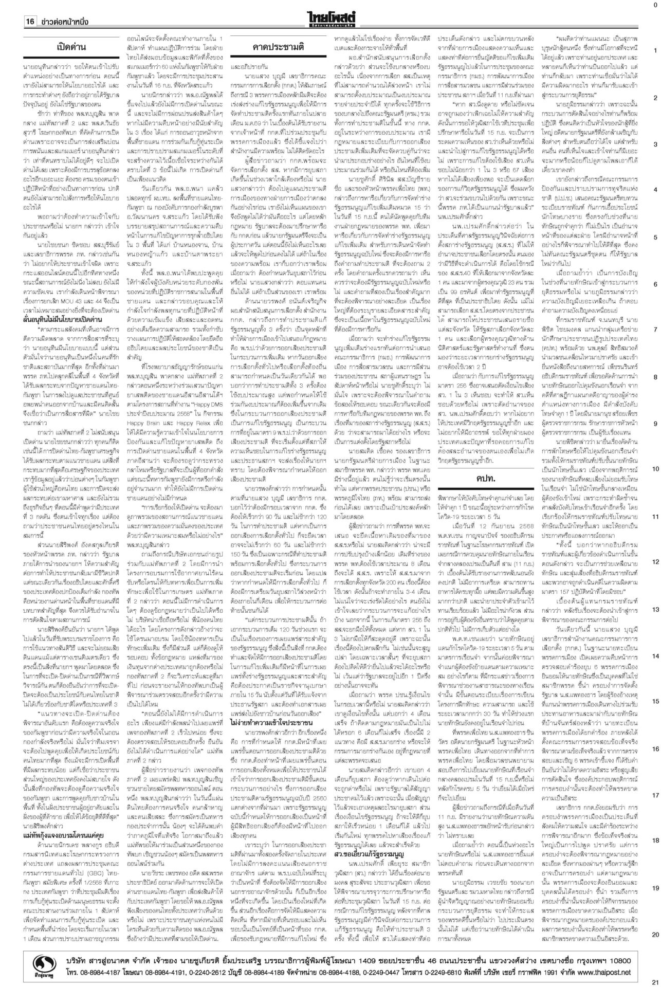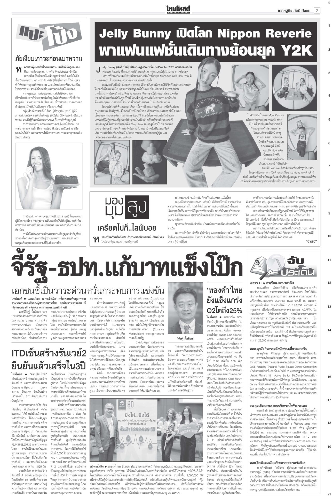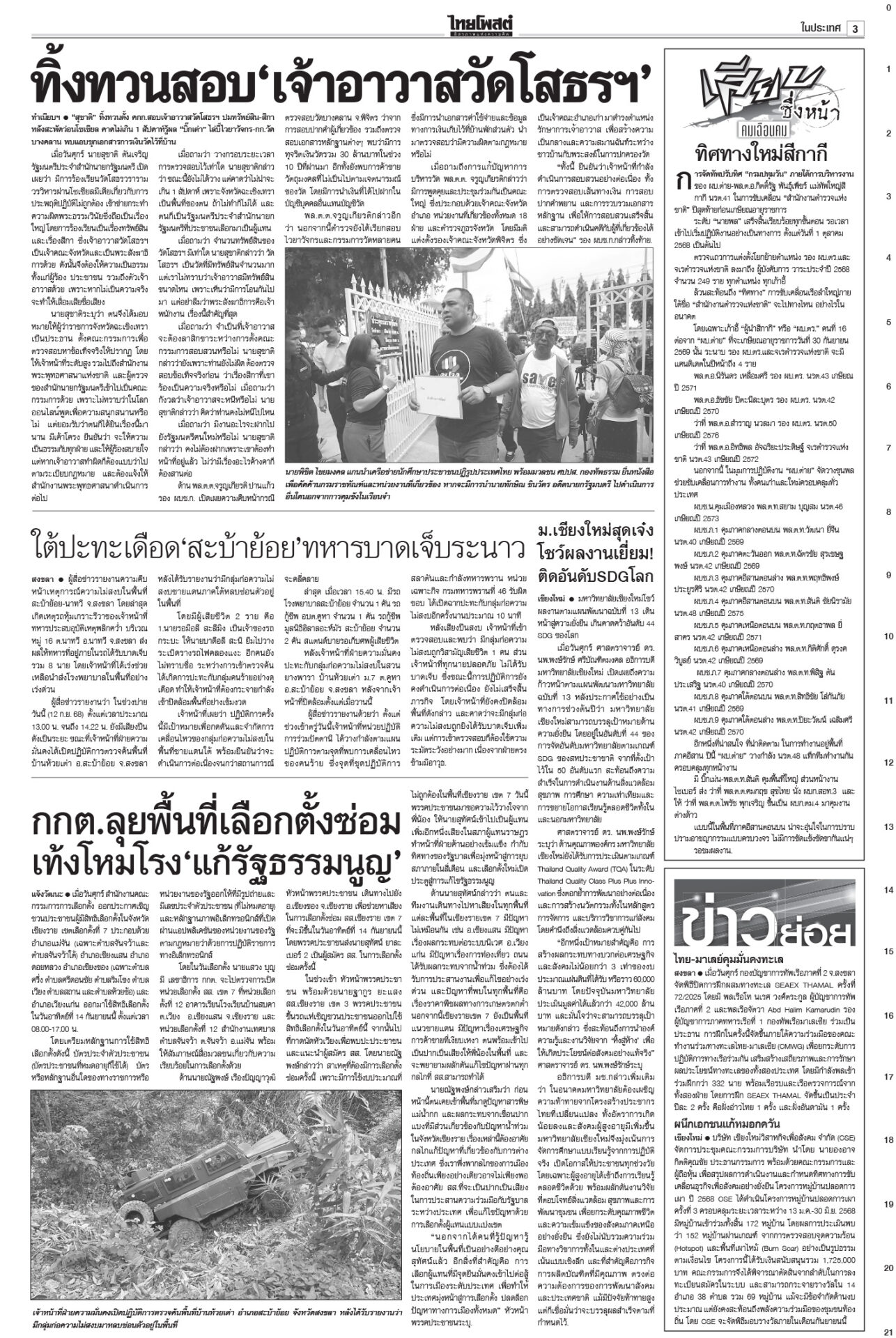 ฉบับวันที่ 13 กันยายน 2568 13 กันยายน 2568 เวลา 0:01 น. หนังสือพิมพ์ ฉบับวันที่ 13 กันยายน 2568ข่าวหน้าหนึ่งเปิดด่านส่อเค้าแห้ว กต.บี้‘เขมร’แก้3ข้อก่อน หนูบอกขั้นตอนอีกเยอะปัดพัลวันเปิดด่านชายแดนไทย-กัมพูชา “ภูมิธรรม” โยนรัฐบาลเดิมให้กองทัพตัดสินใจผ่าน กกต.สั่งเฉลิมชัยทำตามกม.ไขก๊อกพ้นปชป.“แสวง” โผล่ยัน “แพทองธาร” เป็นหัวหน้าพรรคเพื่อไทยตามเดิม คาดประชามติครั้งแรกม.ค.2569“อัยการธนกฤต” จับสังเกตศาลรัฐธรรมนูญมีอำนาจวินิจฉัยเกินคำขอหรือไม่ อนุทิน1ใกล้จบ รอแค่ผลตรวจ รมต.อิ๊งค์อำลา“นายกฯ อนุทิน” บอกรายชื่อ ครม. 100% แล้ว รอตรวจคุณสมบัติที่ควบคุมไม่ได้ คปท.จี้ลดชั้นนักโทษแม้ว ปล่อยผี!ครอบงำ6พรรคราชทัณฑ์เผย คืนที่สาม “ทักษิณ” นอนคุก พบความดันสูงแต่มียาติดตัว Tagsรายวันหนังสือพิมพ์ ข่าวที่เกี่ยวข้อง ฉบับวันที่ 5 ธันวาคม 2568 ฉบับวันที่ 4 ธันวาคม 2568 ฉบับวันที่ 3 ธันวาคม 2568 ฉบับวันที่ 2 ธันวาคม 2568 ฉบับวันที่ 1 ธันวาคม 2568 ฉบับวันที่ 30 พฤศจิกายน 2568 NEWS UPDATE 13:46 น. เดือด 'สส.พรรคส้ม' ซัดสว.เกียจคร้าน แตะถ่วง พรบ.อากาศสะอาด ขณะที่ปชช.กำลังสูดฝุ่นพิษ 13:41 น. เงินบาทแตะระดับแข็งค่าสุดในรอบ 2 เดือน ขณะที่ดัชนีหุ้นไทยปรับตัวขึ้นจากสัปดาห์ก่อน 13:33 น. ทีซีจี โซเชียลมีเดีย กรุ๊ป พร้อมจ่าย 3,500 ลบ. เสนอซื้อลิขสิทธิ์ MUO 13:26 น. Dutch Mill SoGhurt ลุยมิวสิคมาร์เก็ตติ้ง ขยายฐานเจน Z 13:25 น. ผู้เชี่ยวชาญสากล ชี้ช่องโหว่พิสูจน์หลักฐานไทย ถูกตั้งคำถามหนัก หลังตัวเลขความเร็วคดีดังสวนทางกันสุดขั้ว