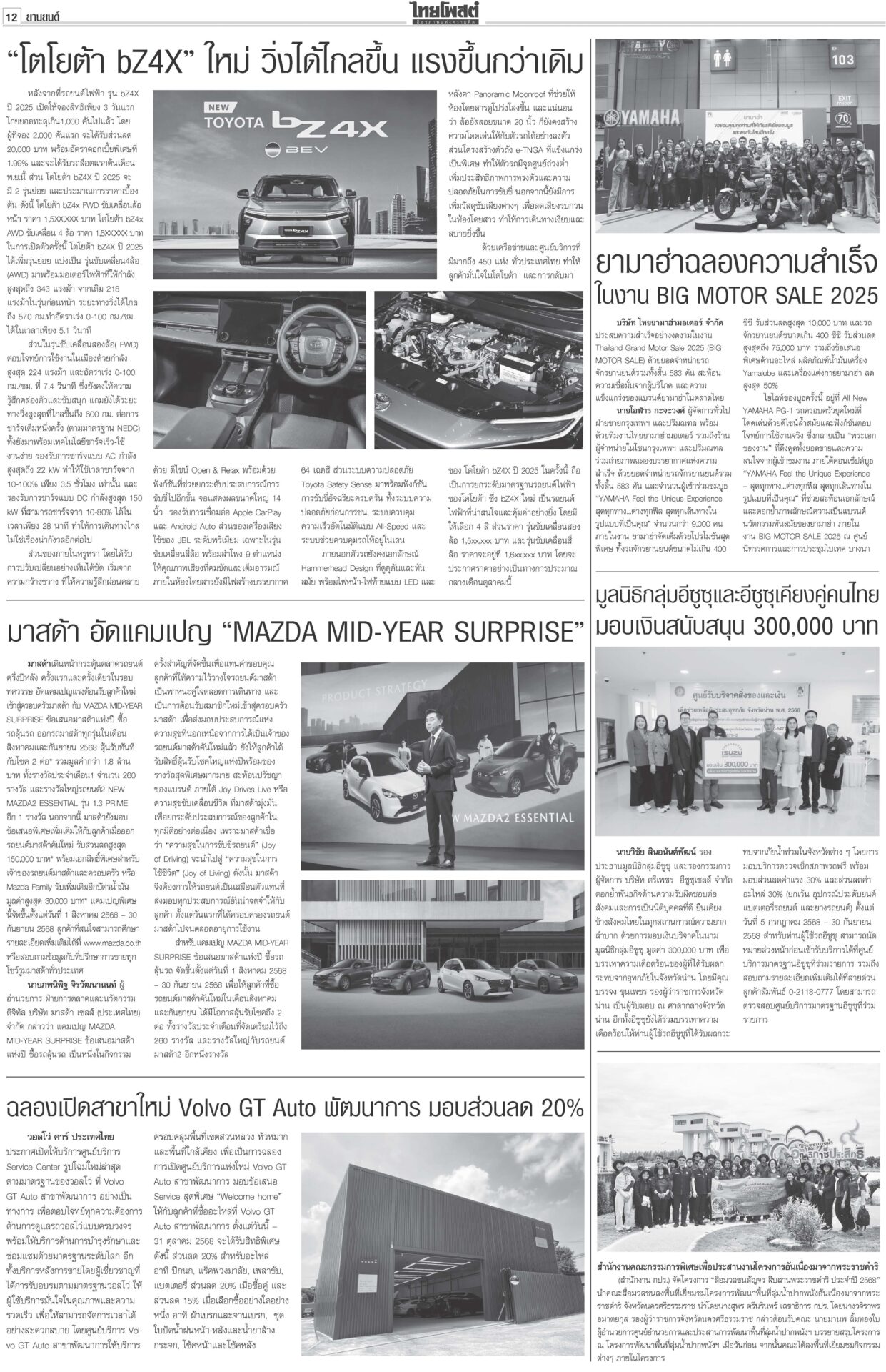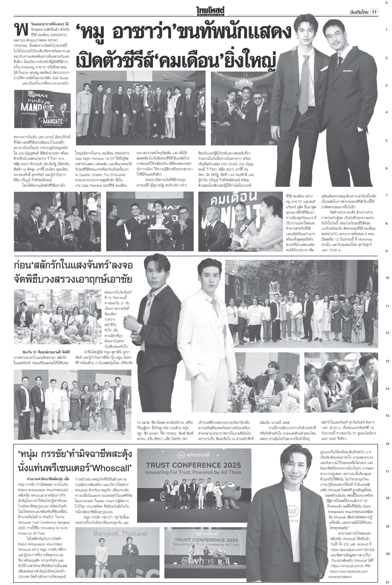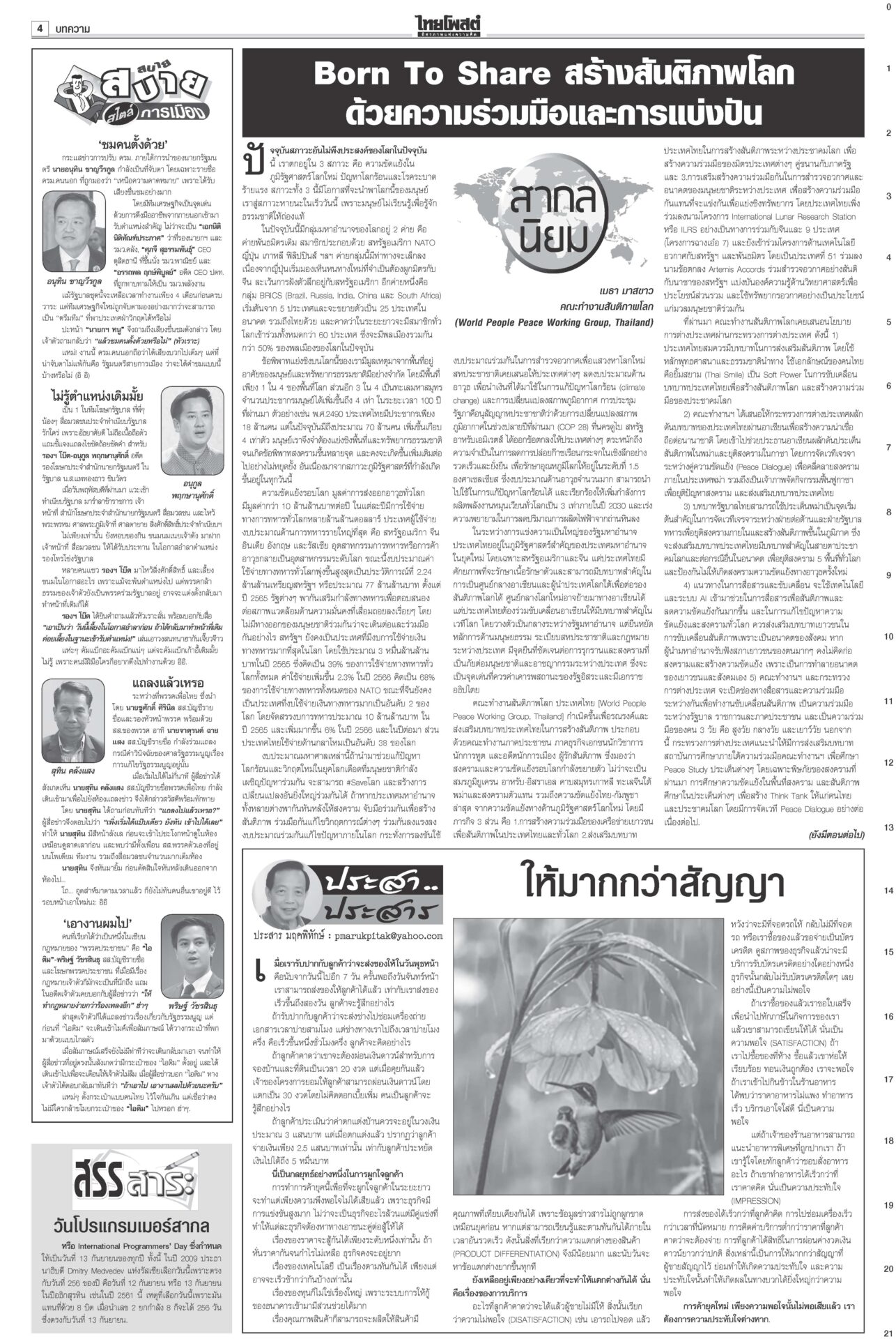 ฉบับวันที่ 13 กันยายน 2568 13 กันยายน 2568 เวลา 0:01 น. หนังสือพิมพ์ ฉบับวันที่ 13 กันยายน 2568ข่าวหน้าหนึ่งเปิดด่านส่อเค้าแห้ว กต.บี้‘เขมร’แก้3ข้อก่อน หนูบอกขั้นตอนอีกเยอะปัดพัลวันเปิดด่านชายแดนไทย-กัมพูชา “ภูมิธรรม” โยนรัฐบาลเดิมให้กองทัพตัดสินใจผ่าน กกต.สั่งเฉลิมชัยทำตามกม.ไขก๊อกพ้นปชป.“แสวง” โผล่ยัน “แพทองธาร” เป็นหัวหน้าพรรคเพื่อไทยตามเดิม คาดประชามติครั้งแรกม.ค.2569“อัยการธนกฤต” จับสังเกตศาลรัฐธรรมนูญมีอำนาจวินิจฉัยเกินคำขอหรือไม่ อนุทิน1ใกล้จบ รอแค่ผลตรวจ รมต.อิ๊งค์อำลา“นายกฯ อนุทิน” บอกรายชื่อ ครม. 100% แล้ว รอตรวจคุณสมบัติที่ควบคุมไม่ได้ คปท.จี้ลดชั้นนักโทษแม้ว ปล่อยผี!ครอบงำ6พรรคราชทัณฑ์เผย คืนที่สาม “ทักษิณ” นอนคุก พบความดันสูงแต่มียาติดตัว Tagsรายวันหนังสือพิมพ์ ข่าวที่เกี่ยวข้อง ฉบับวันที่ 5 ธันวาคม 2568 ฉบับวันที่ 4 ธันวาคม 2568 ฉบับวันที่ 3 ธันวาคม 2568 ฉบับวันที่ 2 ธันวาคม 2568 ฉบับวันที่ 1 ธันวาคม 2568 ฉบับวันที่ 30 พฤศจิกายน 2568 NEWS UPDATE 13:46 น. เดือด 'สส.พรรคส้ม' ซัดสว.เกียจคร้าน แตะถ่วง พรบ.อากาศสะอาด ขณะที่ปชช.กำลังสูดฝุ่นพิษ 13:41 น. เงินบาทแตะระดับแข็งค่าสุดในรอบ 2 เดือน ขณะที่ดัชนีหุ้นไทยปรับตัวขึ้นจากสัปดาห์ก่อน 13:33 น. ทีซีจี โซเชียลมีเดีย กรุ๊ป พร้อมจ่าย 3,500 ลบ. เสนอซื้อลิขสิทธิ์ MUO 13:26 น. Dutch Mill SoGhurt ลุยมิวสิคมาร์เก็ตติ้ง ขยายฐานเจน Z 13:25 น. ผู้เชี่ยวชาญสากล ชี้ช่องโหว่พิสูจน์หลักฐานไทย ถูกตั้งคำถามหนัก หลังตัวเลขความเร็วคดีดังสวนทางกันสุดขั้ว