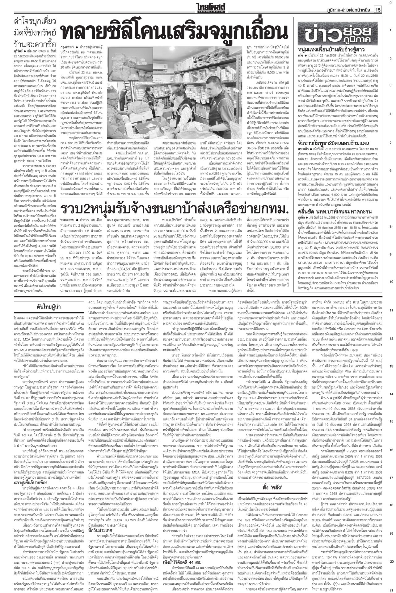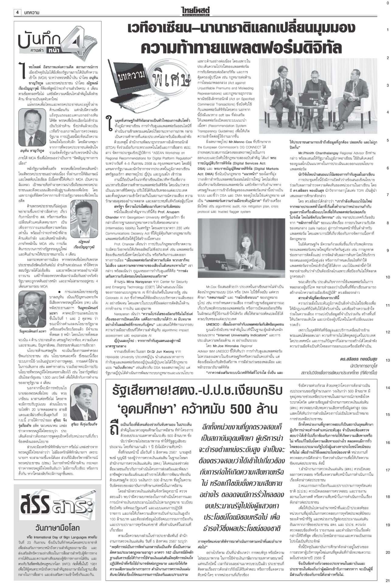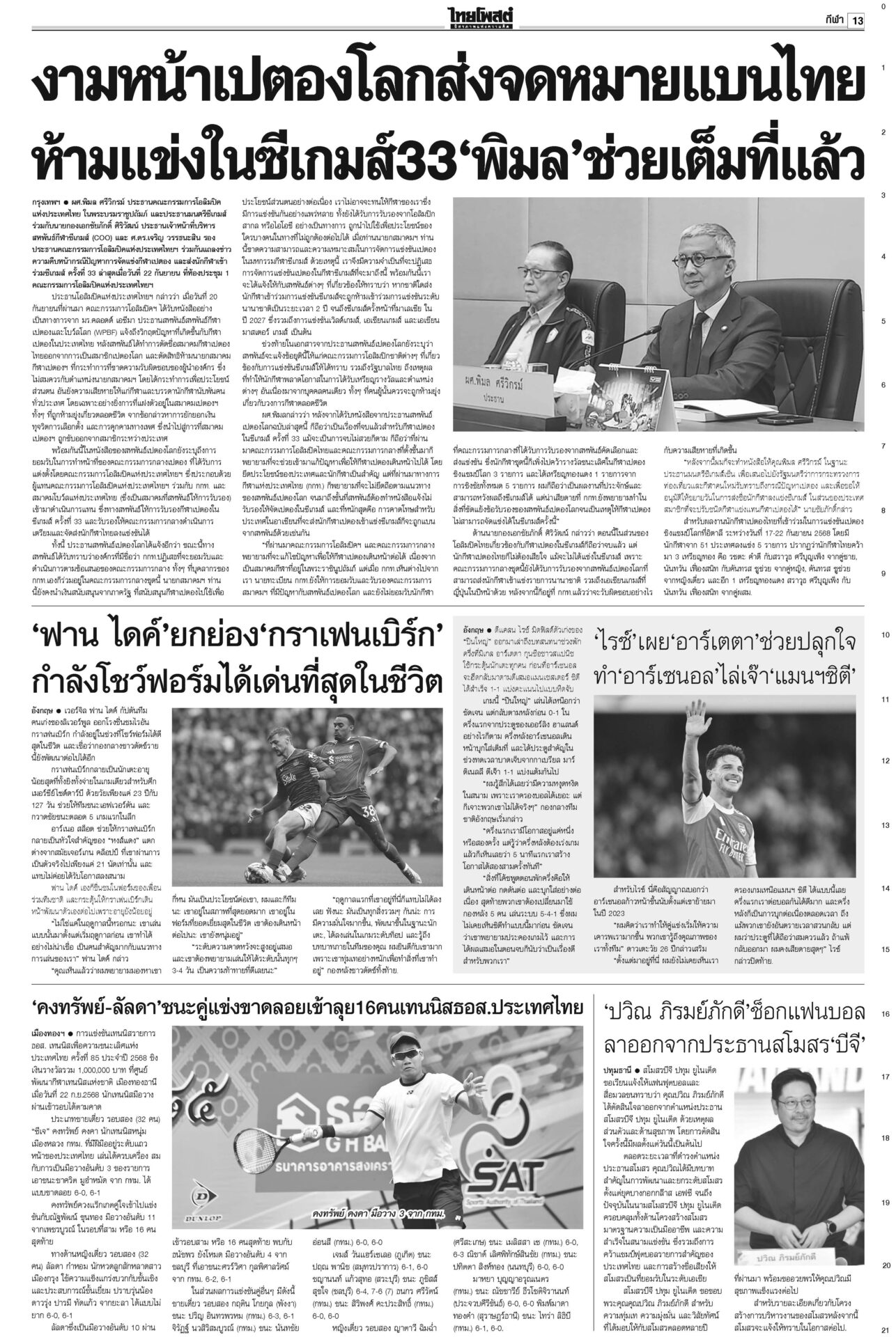 หนังสือพิมพ์ ฉบับวันที่ 23 กันยายน 2568ข่าวหน้าหนึ่งดันไทยผู้นำการเงิน ‘อนุทิน’แย้มนโยบายบิ๊กวินประเทศเนื้อหาครอบคลุมทุกมิติ“อนุทิน” เผยเค้าโครงเนื้อหานโยบายรัฐบาลเสร็จหมดแล้ว นายกฯจ่อบินไปUNลากไส้เขมร“อนุทิน” เตรียมบินไปประชุมยูเอ็น จะหายไปไม่ได้เพราะมีคนขี้ฟ้องไปบอกว่าไทยละเมิดกฎนานาชาติ ฉะนั้นเป็น ยื้ออุทธรณ์112 ‘แม้ว’งัดมุกเก่า ร้องคุกป่วยจริง“คปท.-กองทัพธรรม” จี้อัยการสูงสุดยื่นอุทธรณ์คดี ม.112 ของ “ทักษิณ” ลั่นจะติดตามเร่งรัดให้อัยการมีความรัดกุมกว่านี้ สั่ง‘คลัง’ตั้งทีม สาวแหล่งที่มา ทุนเทาไหลเข้า“เอกนิติ’ สั่งคลังตั้งทีม Connect the Dots เร่งประสานทุกหน่วยงาน ‘พรรคส้ม’ยื่นร่างแก้รธน. ปชช.มีส่วนร่วม270วันจบ“ปชน.” เดินเครื่องยื่่นร่างแก้ รธน.หมวด 15 ต่อประธานสภา เปิดช่อง 2 กล