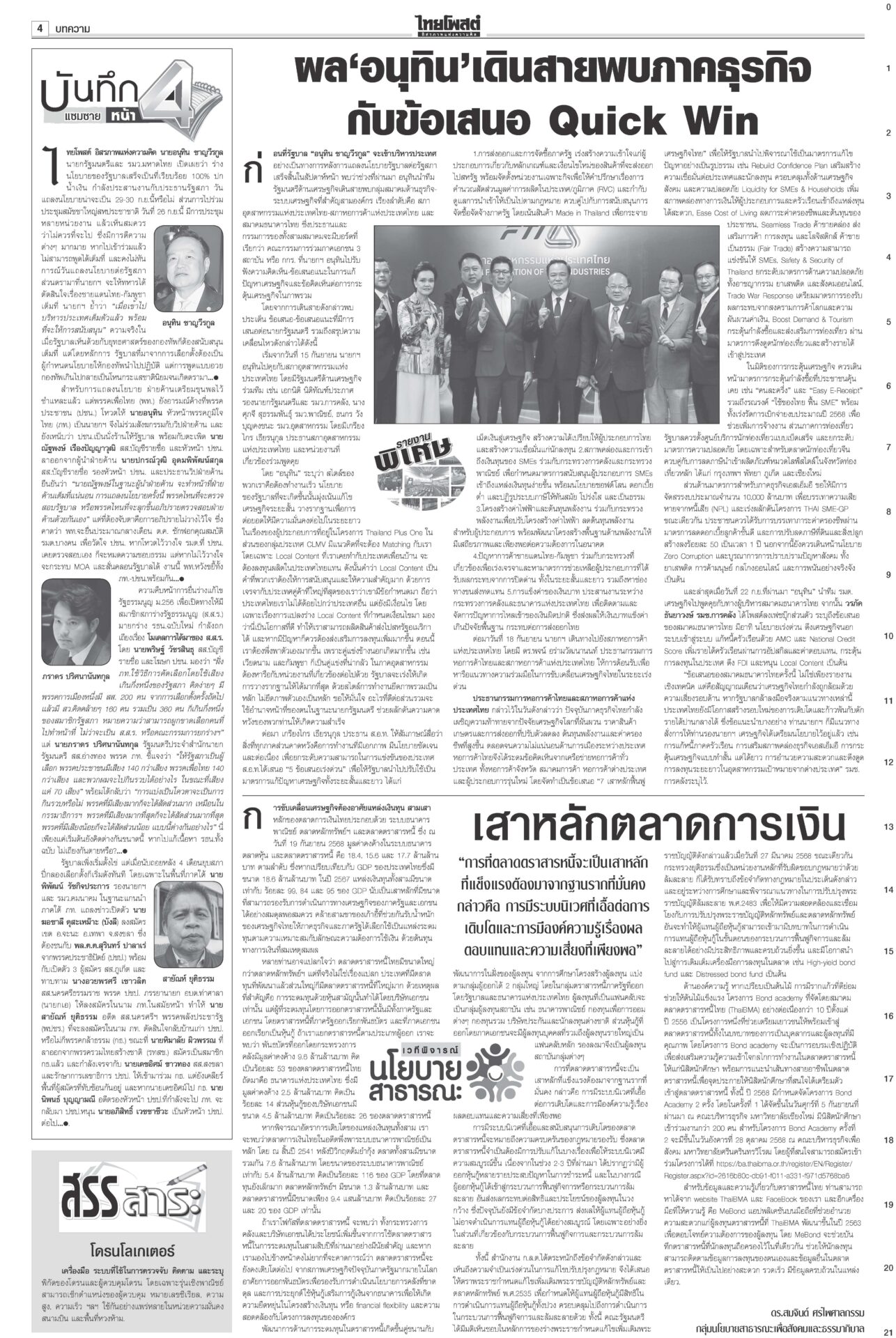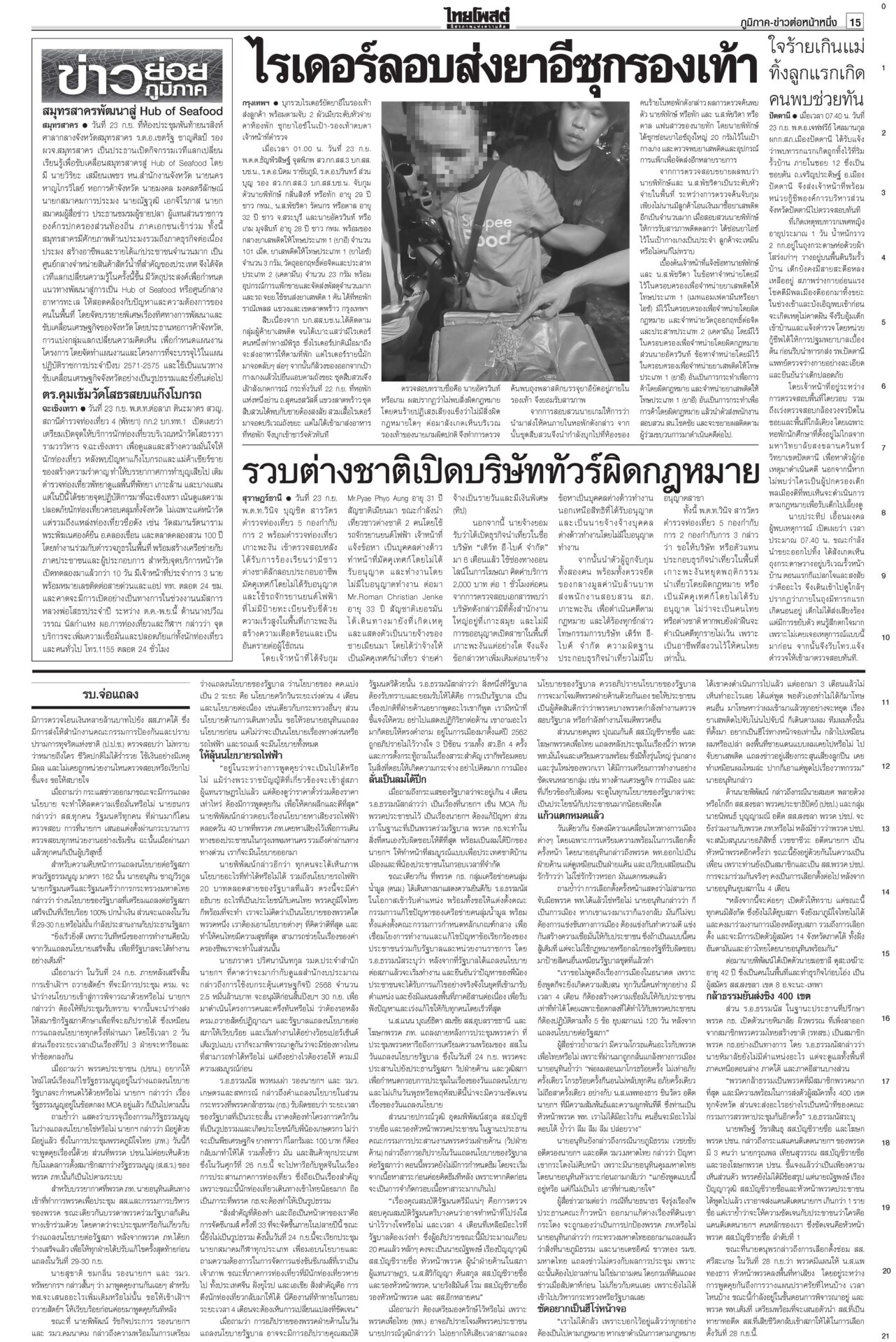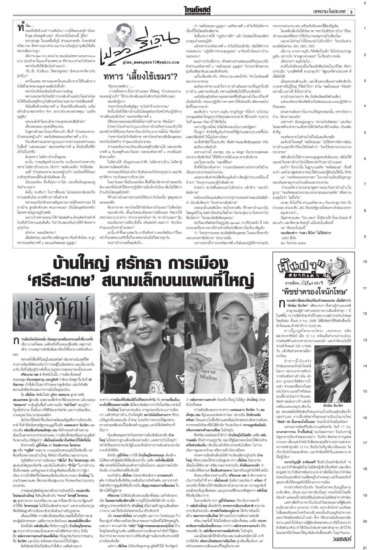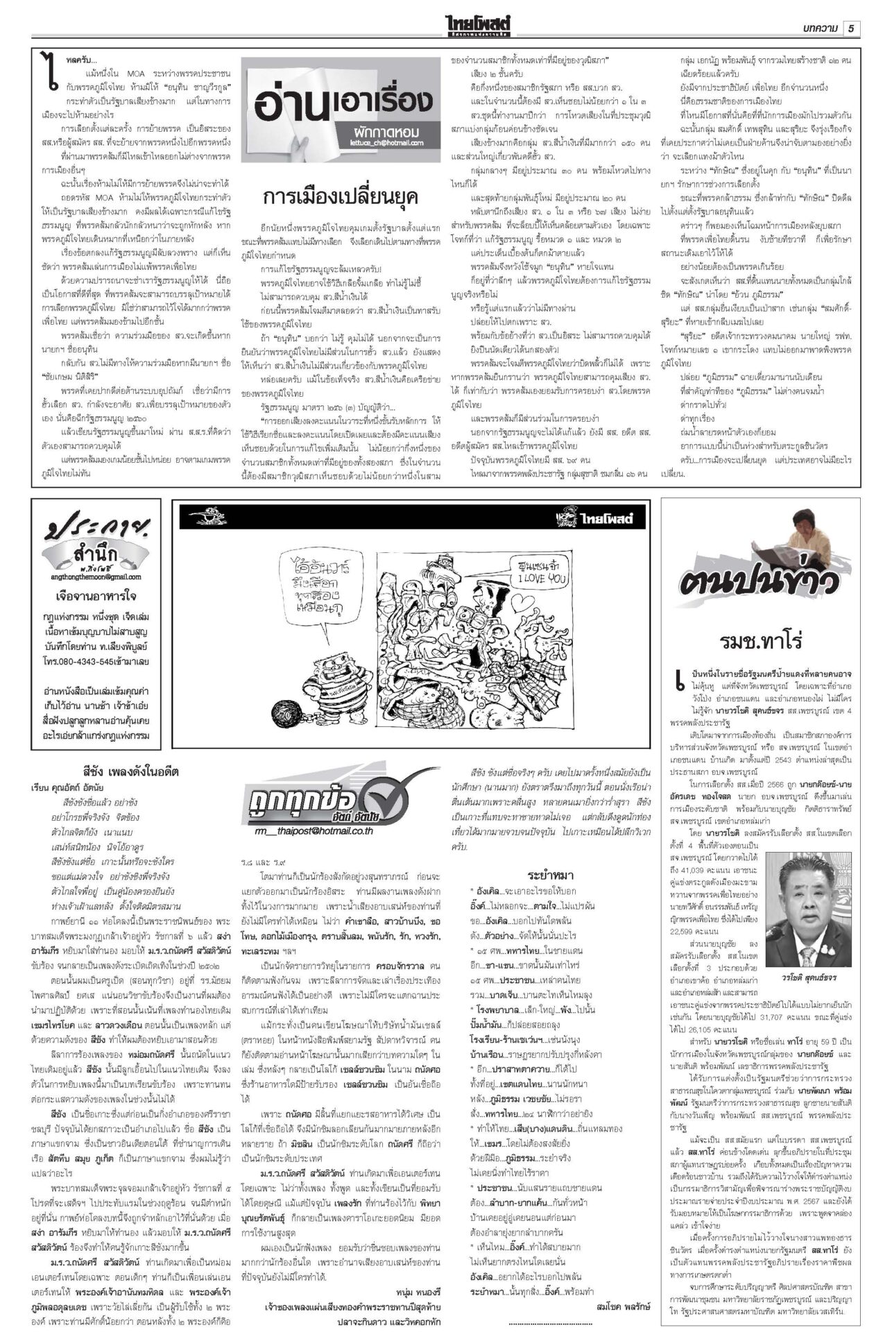ฉบับวันที่ 24 กันยายน 2568 24 กันยายน 2568 เวลา 0:01 น. หนังสือพิมพ์ ฉบับวันที่ 24 กันยายน 2568ข่าวหน้าหนึ่งรบ.จ่อแถลง29ก.ย. นโยบายปกน้ำเงินพร้อม100%/พท.เข็นอิ๊งค์ทวงศรีสะเกษ“นายกฯ หนู” ย้ำนโยบายรัฐบาลปกน้ำเงินเสร็จ 100% แล้ว หนูไม่ไปUN/กุ้งปัดเก้าอี้ใหญ่“นายกฯ” ไม่ไปประชุม UNGA ที่สหรัฐแจงปมขัดแย้งไทย-กัมพูชา หวั่นไม่ทันแถลงนโยบายต่อรัฐสภา เชื่อไทยไม่เสียโอกาสเวทีโลก ปิดฉากกาสิโน สภาสูงสรุปชัด ทำลายประเทศ“วุฒิสภา” ตอกฝาโลง “กาสิโน” มีมติส่ง “ร่าง พ.ร.บ.เอนเตอร์เทนเมนต์คอมเพล็กซ์” ให้ ครม.พิจารณา ทีมคลังเร่งถก หาที่มาทุนเทา คลายบาทแข็ง“วรภัค” ฟุ้งคุยสมาคมแบงก์ฉลุย ชง 4 นโยบายเร่งด่วน พร้อม 4 มาตรการเสริมแก้พิษเครื่องยนต์เศรษฐกิจไทยโตติดขัด ผวาภท.กินรวบ‘สสร.’ 2พรรคยื่นร่างแก้รธน.“ไอติม” ติง “ภูมิใจไทย-เพื่อไทย” ควรให้ ปชช.มีส่วนร่วมตั้ง Tagsรายวันหนังสือพิมพ์ ข่าวที่เกี่ยวข้อง ฉบับวันที่ 5 ธันวาคม 2568 ฉบับวันที่ 4 ธันวาคม 2568 ฉบับวันที่ 3 ธันวาคม 2568 ฉบับวันที่ 2 ธันวาคม 2568 ฉบับวันที่ 1 ธันวาคม 2568 ฉบับวันที่ 30 พฤศจิกายน 2568 NEWS UPDATE 18:43 น. ในหลวง พระราชินี ทรงบำเพ็ญพระราชกุศลทักษิณานุปทาน เนื่องในวันคล้ายวันพระบรมราชสมภพ รัชกาลที่ 9 18:12 น. เริ่มแล้ว Cat Expo Thailand 2025 วันแรก 'ทาสแมว' แห่ร่วมงานคึกคักคาดเม็ดเงินสะพัด 120 ล้านบาท 18:06 น. กรมอุตุฯ เผยพายุลูกใหม่กำลังก่อตัวบริเวณทะเลจีนใต้ตอนกลาง 18:05 น. อุตฯส่งรถโมบายตรวจวัดคุณภาพอากาศเหตุเพลิงไหม้บ่อขยะปราจีนบุรี 17:38 น. ‘ลุงป้อม’ ส่งขุนศึกเหนือ ‘สุรเดช’ เปิดตัว 3 ว่าที่ผู้สมัครเชียงใหม่