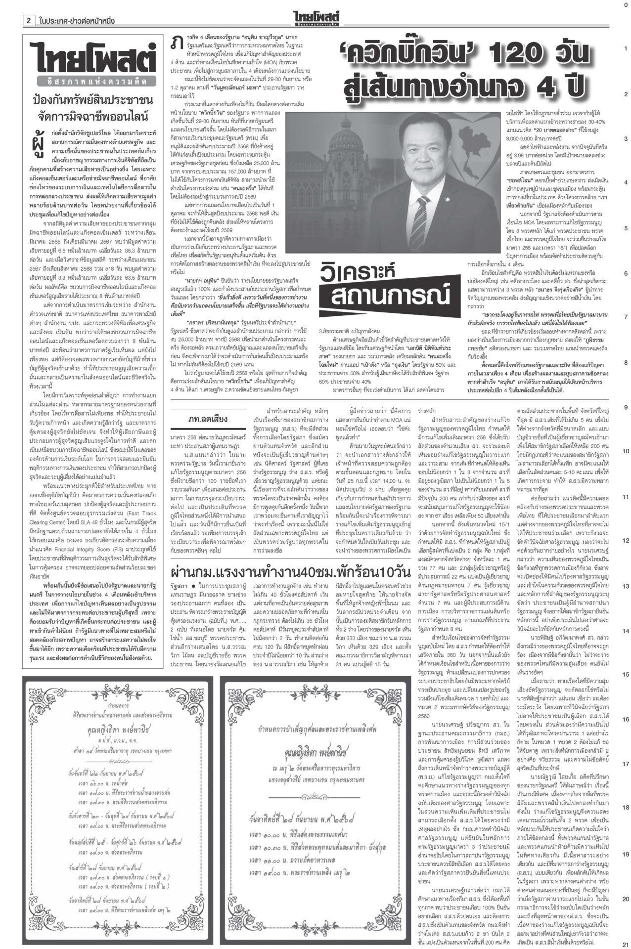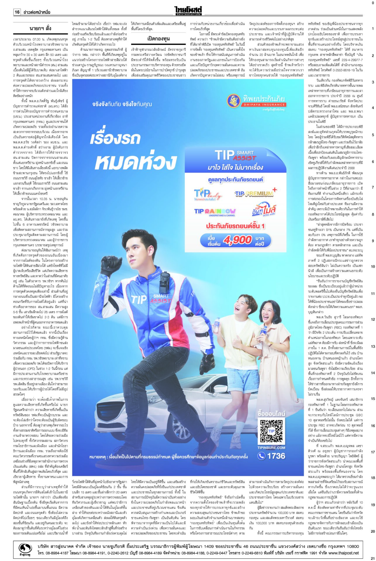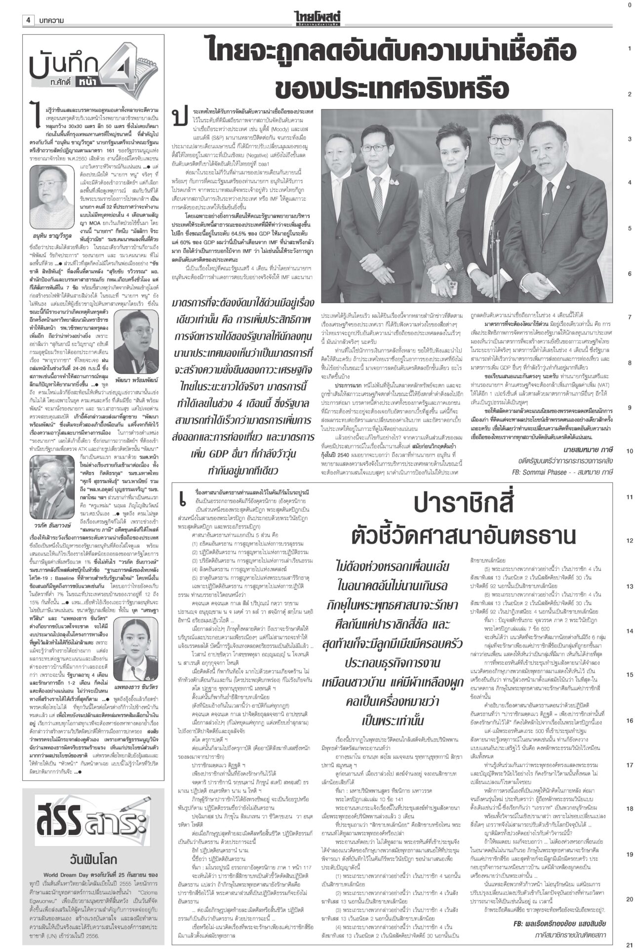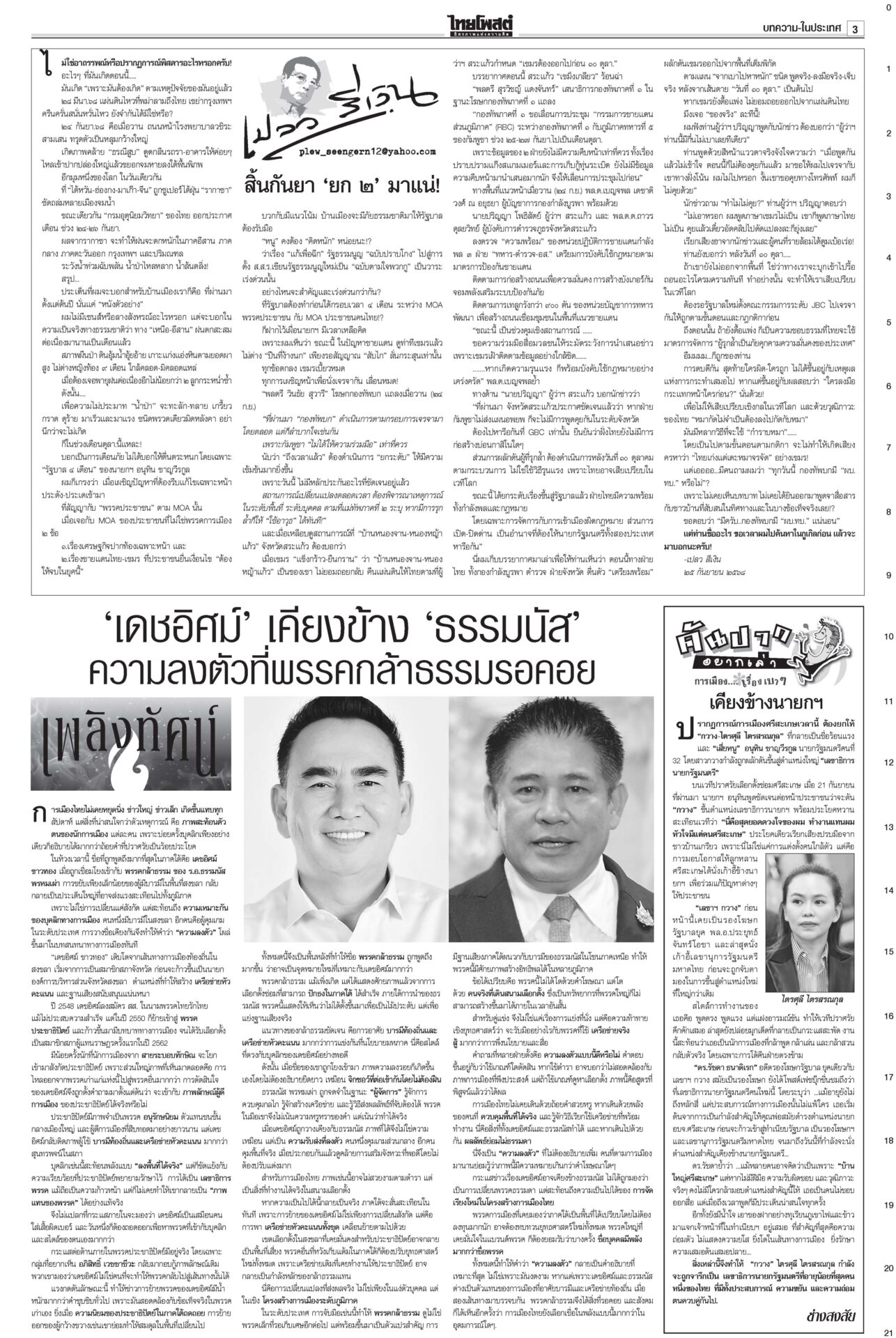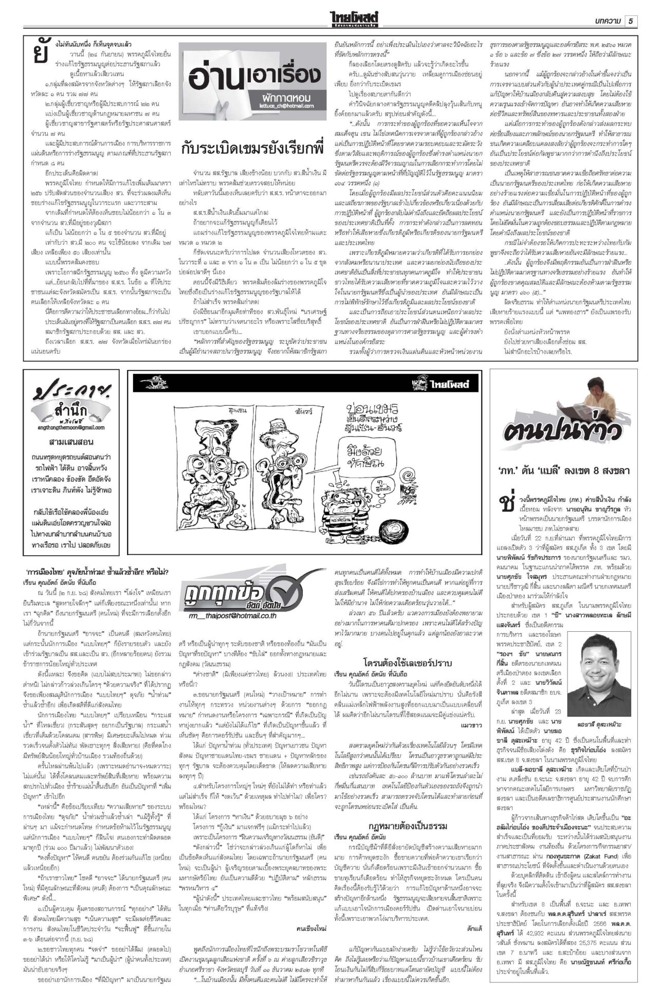 ฉบับวันที่ 25 กันยายน 2568 25 กันยายน 2568 เวลา 0:01 น. หนังสือพิมพ์ ฉบับวันที่ 25 กันยายน 2568ข่าวหน้าหนึ่งปัญญาชนะอุปสรรค มีพระราชดำรัสให้กำลังใจ‘ครม.อนุทิน’“ในหลวง-พระราชินี” พระราชทานพระบรมราชวโรกาสให้ ครม.ใหม่ เปิดกองทุนหทัยทิพย์ สร้างกำแพงชายแดนกรมพระศรีสวางควัฒนฯ ทรงเปิดกองทุน “หทัยทิพย์” นายกฯสั่งหาเหตุ ถนนยุบ50เมตร สน.สามเสนเสี่ยงถนนทรุด! หน้า รพ.วชิรพยาบาล เกิดหลุมยักษ์ลึก 50 เมตร นายกฯ ลงพื้นที่ตรวจสอบ ภท.ลดเสียงสว.ห้ามแตะหมวด1-2ภูมิใจไทยยื่นร่างแก้รัฐธรรมนูญต่อประธานรัฐสภาตาม MOA แล้ว Tagsรายวันหนังสือพิมพ์ ข่าวที่เกี่ยวข้อง ฉบับวันที่ 5 ธันวาคม 2568 ฉบับวันที่ 4 ธันวาคม 2568 ฉบับวันที่ 3 ธันวาคม 2568 ฉบับวันที่ 2 ธันวาคม 2568 ฉบับวันที่ 1 ธันวาคม 2568 ฉบับวันที่ 30 พฤศจิกายน 2568 NEWS UPDATE 12:41 น. เอาแล้ว! กมธ.ร่างพรบ.สันติสุข สว. จ่อค้านนิรโทษกรรม คนสั่งเผาบ้านเผาเมือง-ผิด ม.112 12:26 น. 'ไอติม' เลี่ยงยื่นซักฟอก ใช้กลไกอื่นตรวจสอบรัฐบาลแทน 11:59 น. พสกนิกรโคราชปลูกต้นไม้ 9 พันต้น เฉลิมพระเกียรติ 'ในหลวง ร.9' 11:37 น. 'เมสซี' ยอมรับตนยังพูดได้ไม่เต็มปาก เล่นบอลโลก 2026 หรือไม่ 11:32 น. ปภ. รายงานยังมีน้ำท่วมภาคใต้ 7 จังหวัด เร่งระบายน้ำพื้นที่น้ำท่วมขังและเยียวยาผู้ประสบภัย