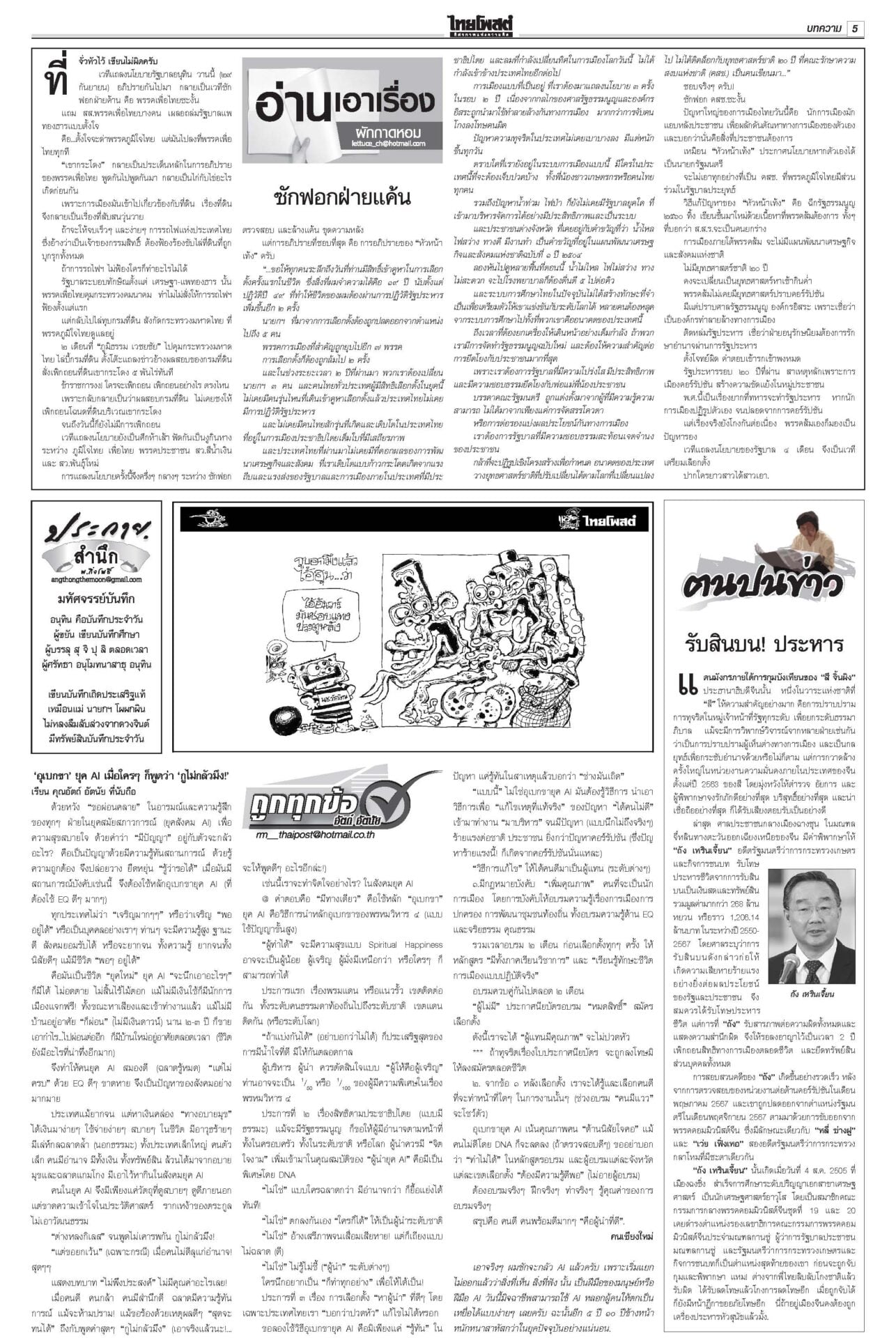 ฉบับวันที่ 30 กันยายน 2568 30 กันยายน 2568 เวลา 0:01 น. หนังสือพิมพ์ ฉบับวันที่ 30 กันยายน 2568ข่าวหน้าหนึ่งซัด‘สีน้ำเงิน’กินรวบ ‘ชลน่าน’ชำแหละ4เดือนวางแผนล้ำลึก/นายกฯชี้31มค.ยุบสภาแถลงนโยบาย ครม.อนุทินวันแรกเดือด “นายกฯ” โต้ทุกดอก ‘หนู’ผนึกกำลังพักสัมพันธ์เขมร“นายกฯ” ผนึกกำลัง “ตำรวจ-ทหาร” ดูแลชายแดนเขมร คุย “ผบ.ตร.” ดึง ตชด.-ฝ่ายปกครองช่วยดูแล อึ้ง!นช.ทักษิณขออภัยโทษซ้ำ“เอม-สามี” เข้าเยี่ยม “ทักษิณ” หลังคุมขังมาแล้ว 20 วัน “ทนายวิญญัติ” ค้าชายแดนป่วน ปิดด่านกัมพูชา ทำยอดวูบ99%“คลัง” เผยเศรษฐกิจเดือน ส.ค. 68 ยังไหว อานิสงส์ “ส่งออก-ท่องเที่ยวในประเทศ” Tagsรายวันหนังสือพิมพ์ ข่าวที่เกี่ยวข้อง ฉบับวันที่ 5 ธันวาคม 2568 ฉบับวันที่ 4 ธันวาคม 2568 ฉบับวันที่ 3 ธันวาคม 2568 ฉบับวันที่ 2 ธันวาคม 2568 ฉบับวันที่ 1 ธันวาคม 2568 ฉบับวันที่ 30 พฤศจิกายน 2568 NEWS UPDATE 13:03 น. 'สว.นพดล' เผยจ่อขอมติกมธ.เคาะ MOU 2543 ส่วน MOU 2544 ไม่มีความก้าวหน้า 12:41 น. เอาแล้ว! กมธ.ร่างพรบ.สันติสุข สว. จ่อค้านนิรโทษกรรม คนสั่งเผาบ้านเผาเมือง-ผิด ม.112 12:26 น. 'ไอติม' เลี่ยงยื่นซักฟอก ใช้กลไกอื่นตรวจสอบรัฐบาลแทน 11:59 น. พสกนิกรโคราชปลูกต้นไม้ 9 พันต้น เฉลิมพระเกียรติ 'ในหลวง ร.9' 11:37 น. 'เมสซี' ยอมรับตนยังพูดได้ไม่เต็มปาก เล่นบอลโลก 2026 หรือไม่