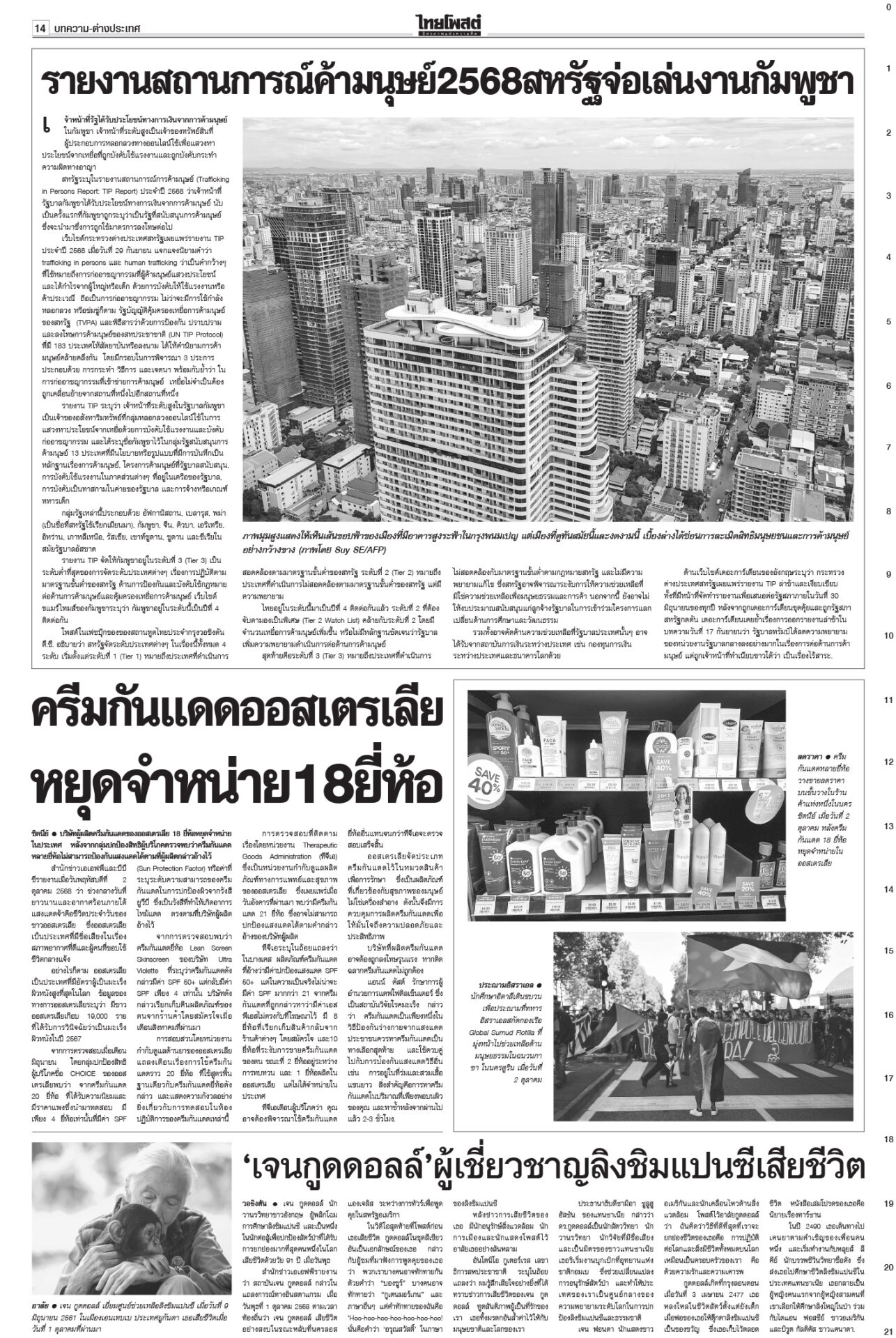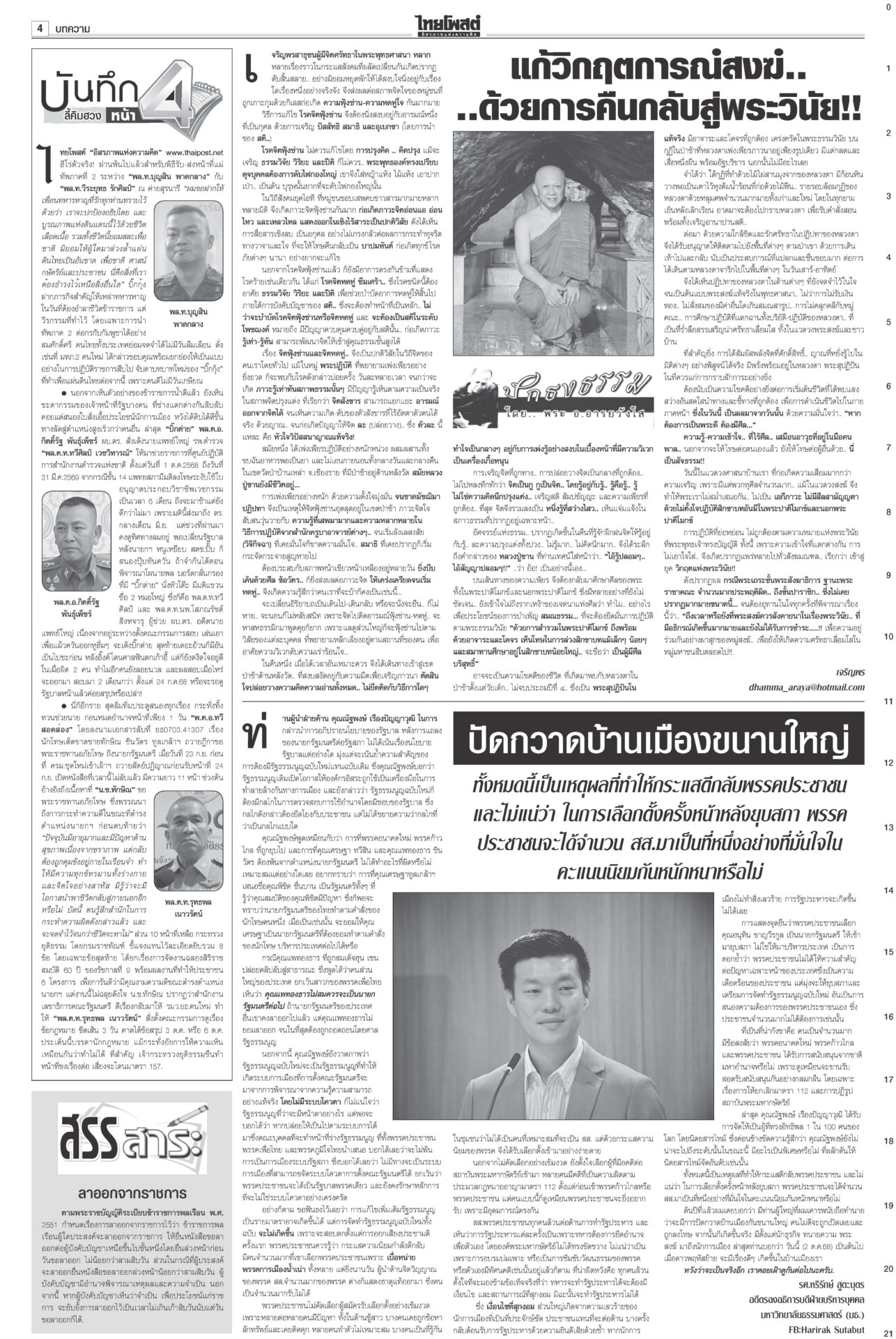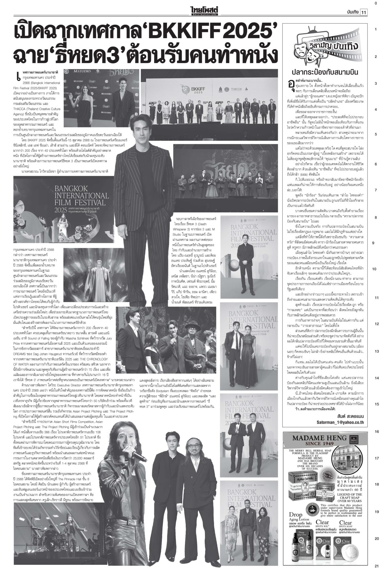 หนังสือพิมพ์ ฉบับวันที่ 3 ตุลาคม 2568ข่าวหน้าหนึ่งเหล่าทัพนิ่งปมMOU ‘บิ๊กเล็ก’อ้างแผนที่ไร้ปัญหามีเจ้ากรมฯดูแล/สมช.ย้ำปิดด่าน“อนุทิน” นั่งหัวโต๊ะ สมช. เคาะสร้างรั้วชายแดน ระบุผลักดันกัมพูชาหนองจานในเวลาที่เหมาะสม ขึงมาตรการปิดด่านกดดัน เบรกแม้วขออภัยโทษ เด้งแพทย์ใหญ่รพ.ตร.เปิดเอกสารลับ “ทวี” เซ็นยกฎีกาตีตกคำขอพระราชทานอภัยโทษ จับตา‘ชัตดาวน์’ คลังหวั่นลุกลาม ‘เอกชน’ไม่วิตก“วรภัค” จับตาปมสหรัฐชัตดาวน์ หวั่นสถานการณ์ยืดเยื้อบานปลายลุกลามกระทบไทย ชงปปช.สอบสินบน40ล้าน ‘ธรรมนัส’ขู่ฟ้อง‘รังสิมันต์’“นิพิฏฐ์” ร้อง ป.ป.ช. สอบ “รมว.ดีอี” ปมปูดสินบน 40 ล้าน เจ้าตัวยันข้อมูลจริง หนังยาว‘เขากระโดง’รอศาลชี้900ราย“รุทธพล” เผยคดีสืบสวนเขากระโดง ขอรอดูคำพิพากษาศาล หลัง “รฟท.” ดำเนินคดีผู้ครอบครองที่ดินเขากระโดงกว่า 900 ราย