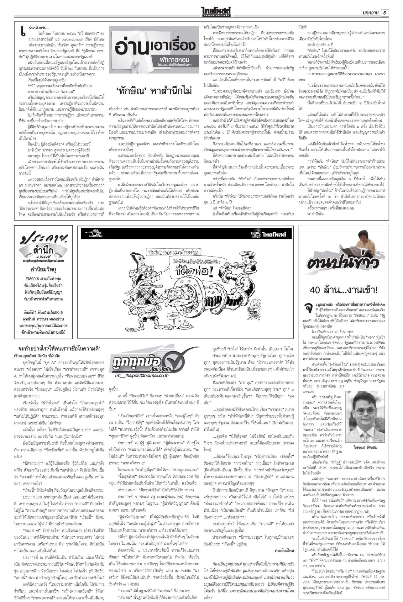 ฉบับวันที่ 3 ตุลาคม 2568 3 ตุลาคม 2568 เวลา 0:01 น. หนังสือพิมพ์ ฉบับวันที่ 3 ตุลาคม 2568ข่าวหน้าหนึ่งเหล่าทัพนิ่งปมMOU ‘บิ๊กเล็ก’อ้างแผนที่ไร้ปัญหามีเจ้ากรมฯดูแล/สมช.ย้ำปิดด่าน“อนุทิน” นั่งหัวโต๊ะ สมช. เคาะสร้างรั้วชายแดน ระบุผลักดันกัมพูชาหนองจานในเวลาที่เหมาะสม ขึงมาตรการปิดด่านกดดัน เบรกแม้วขออภัยโทษ เด้งแพทย์ใหญ่รพ.ตร.เปิดเอกสารลับ “ทวี” เซ็นยกฎีกาตีตกคำขอพระราชทานอภัยโทษ จับตา‘ชัตดาวน์’ คลังหวั่นลุกลาม ‘เอกชน’ไม่วิตก“วรภัค” จับตาปมสหรัฐชัตดาวน์ หวั่นสถานการณ์ยืดเยื้อบานปลายลุกลามกระทบไทย ชงปปช.สอบสินบน40ล้าน ‘ธรรมนัส’ขู่ฟ้อง‘รังสิมันต์’“นิพิฏฐ์” ร้อง ป.ป.ช. สอบ “รมว.ดีอี” ปมปูดสินบน 40 ล้าน เจ้าตัวยันข้อมูลจริง หนังยาว‘เขากระโดง’รอศาลชี้900ราย“รุทธพล” เผยคดีสืบสวนเขากระโดง ขอรอดูคำพิพากษาศาล หลัง “รฟท.” ดำเนินคดีผู้ครอบครองที่ดินเขากระโดงกว่า 900 ราย Tagsรายวันหนังสือพิมพ์ ข่าวที่เกี่ยวข้อง ฉบับวันที่ 5 ธันวาคม 2568 ฉบับวันที่ 4 ธันวาคม 2568 ฉบับวันที่ 3 ธันวาคม 2568 ฉบับวันที่ 2 ธันวาคม 2568 ฉบับวันที่ 1 ธันวาคม 2568 ฉบับวันที่ 30 พฤศจิกายน 2568 NEWS UPDATE 18:43 น. ในหลวง พระราชินี ทรงบำเพ็ญพระราชกุศลทักษิณานุปทาน เนื่องในวันคล้ายวันพระบรมราชสมภพ รัชกาลที่ 9 18:12 น. เริ่มแล้ว Cat Expo Thailand 2025 วันแรก 'ทาสแมว' แห่ร่วมงานคึกคักคาดเม็ดเงินสะพัด 120 ล้านบาท 18:06 น. กรมอุตุฯ เผยพายุลูกใหม่กำลังก่อตัวบริเวณทะเลจีนใต้ตอนกลาง 18:05 น. อุตฯส่งรถโมบายตรวจวัดคุณภาพอากาศเหตุเพลิงไหม้บ่อขยะปราจีนบุรี 17:38 น. ‘ลุงป้อม’ ส่งขุนศึกเหนือ ‘สุรเดช’ เปิดตัว 3 ว่าที่ผู้สมัครเชียงใหม่