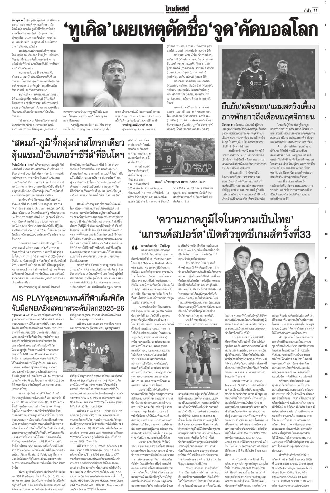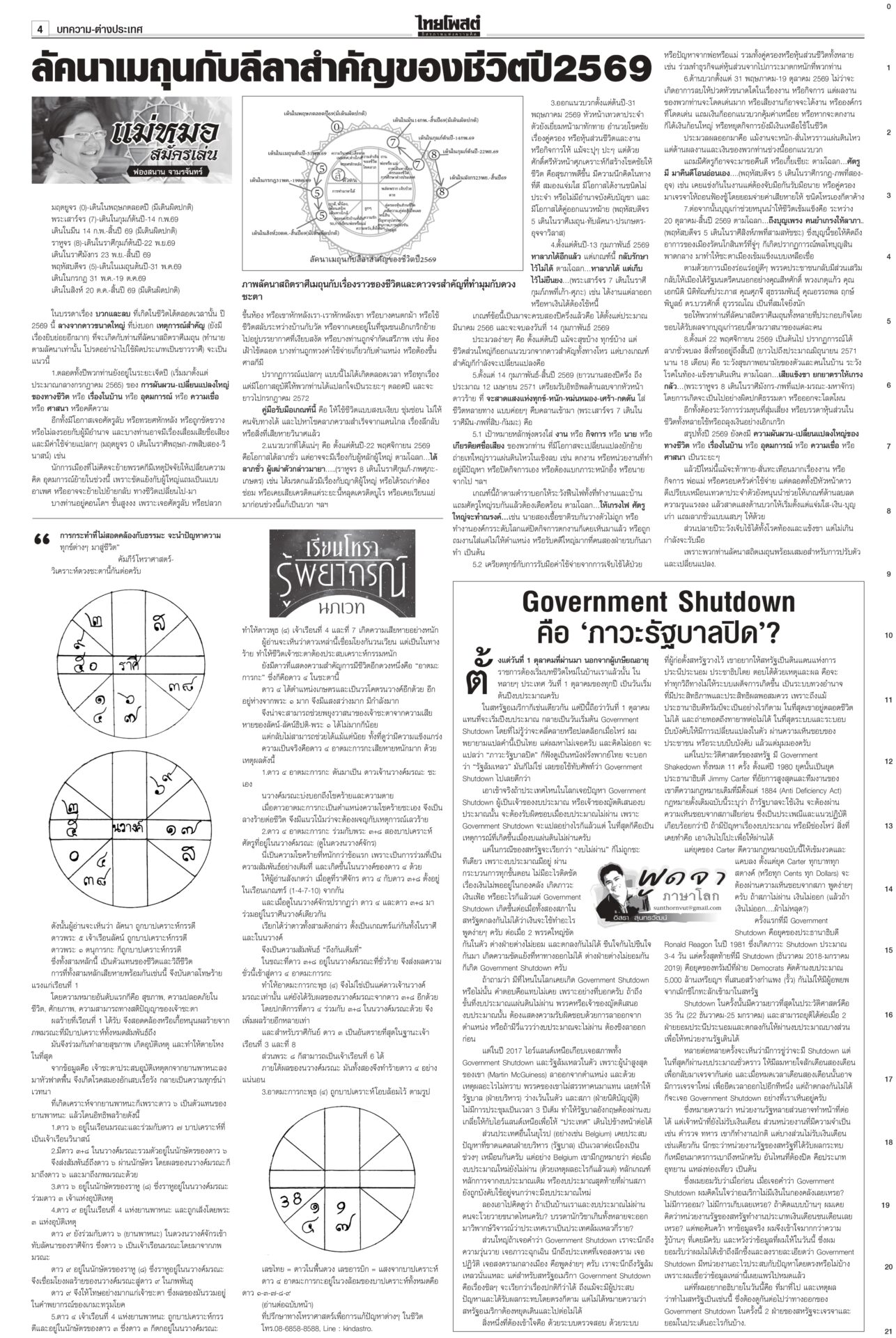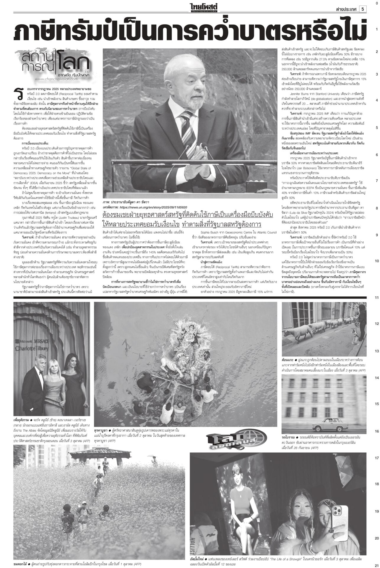 หนังสือพิมพ์ฉบับวันที่ 5 ตุลาคม 2568ข่าวหน้าหนึ่ง‘เน’อวย‘หนู’อยู่4ปี เปิดบุรีรัมย์จัดวันเกิด67ปีครม.-สส.ตบเท้าพรึ่บ!ป้อนกล้วยช้างงานใหญ่! เบิร์ธเดย์ 67 ปี “เนวิน” คึกคัก “อนุทิน” นำทีมรัฐมนตรี สส. ตบเท้าอวยพร แจกกล้วยช้าง “เน-หนู” กอดกันกลม ผูกข้อมือให้นั่งเก้าอี้นายกฯ ‘นายกฯ’แถลงโชว์ ยาเสพติดล็อตใหญ่“อนุทิน” นำแถลงจับยาเสพติดล็อตใหญ่ ประกาศเป็นศัตรูกับผู้ค้า-ผู้ผลิต ลั่นด้วยความร่วมมือของรัฐบาลชุดนี้ปราบได้แน่ ต้องมีความสามารถเหนือกว่ เพื่อไทย‘ยกเครื่อง’ ปชป.เลือดไหลกลับเพื่อไทยเล่นใหญ่ ยกเครื่องบูสพลังใหม่ และพร้อมเผชิญทุกการเปลี่ยนแปลง ให้ประเทศไทยต้องเดินหน้าพ้นทุกวิกฤต “จักรภพ” เผยกำลังอยู่ในห้วงแห่งชะตากรรมของพรรคและประเทศ ‘อนุทิน’สงสารทหาร!“อนุทิน” ดูจุดวางรั้วลวดหนามชายแดนบุรีรัมย์ เผยทำรั้วสลับสร้างกำแพงตามภูมิประเทศ สงสารทหารเฝ้าชายแดน เป็นเหตุต้องให้ความสำคัญ ขณะที่แม่ทัพภาคที่ 2