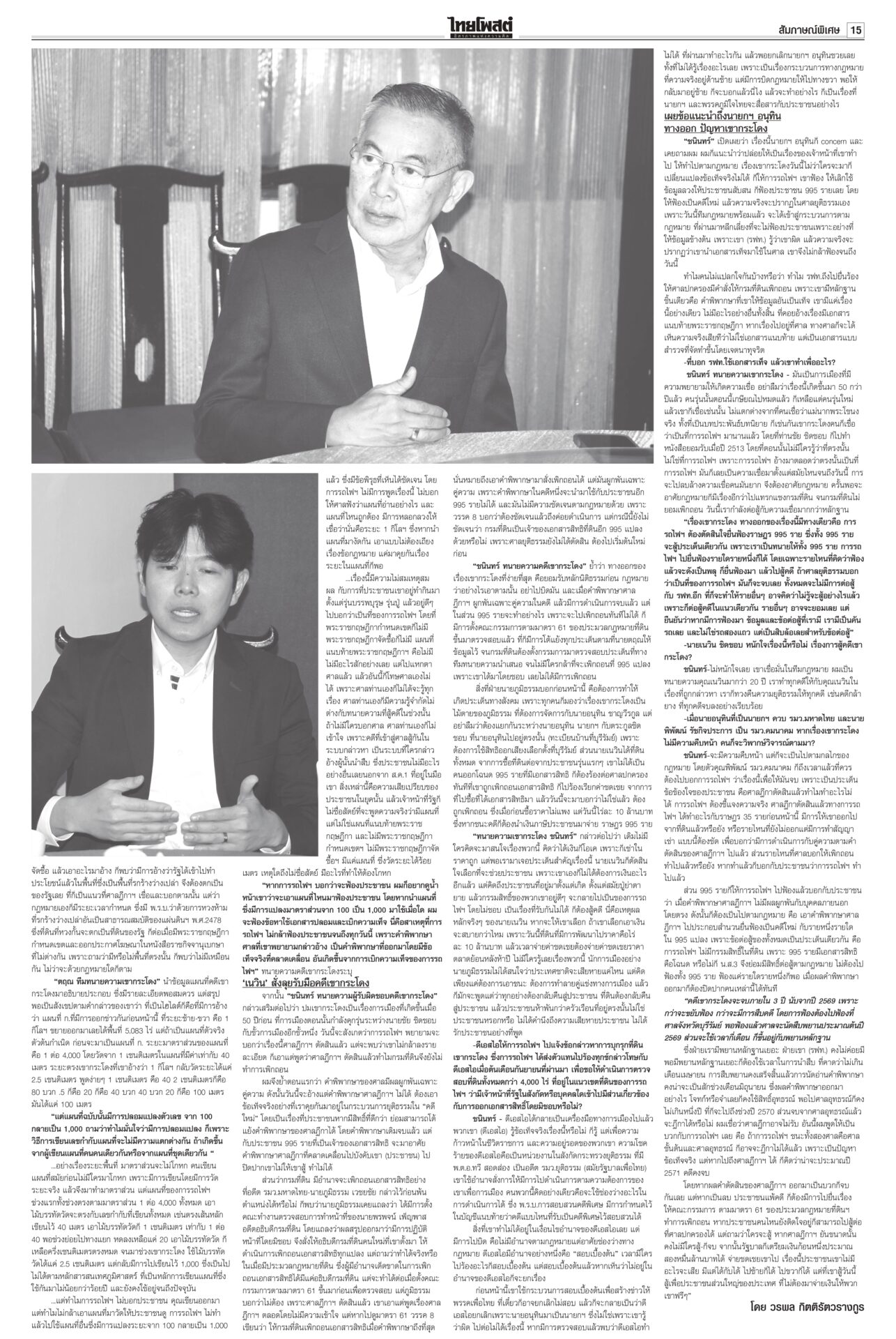ฉบับวันที่ 5 ตุลาคม 2568 5 ตุลาคม 2568 เวลา 0:01 น. หนังสือพิมพ์ฉบับวันที่ 5 ตุลาคม 2568ข่าวหน้าหนึ่ง‘เน’อวย‘หนู’อยู่4ปี เปิดบุรีรัมย์จัดวันเกิด67ปีครม.-สส.ตบเท้าพรึ่บ!ป้อนกล้วยช้างงานใหญ่! เบิร์ธเดย์ 67 ปี “เนวิน” คึกคัก “อนุทิน” นำทีมรัฐมนตรี สส. ตบเท้าอวยพร แจกกล้วยช้าง “เน-หนู” กอดกันกลม ผูกข้อมือให้นั่งเก้าอี้นายกฯ ‘นายกฯ’แถลงโชว์ ยาเสพติดล็อตใหญ่“อนุทิน” นำแถลงจับยาเสพติดล็อตใหญ่ ประกาศเป็นศัตรูกับผู้ค้า-ผู้ผลิต ลั่นด้วยความร่วมมือของรัฐบาลชุดนี้ปราบได้แน่ ต้องมีความสามารถเหนือกว่ เพื่อไทย‘ยกเครื่อง’ ปชป.เลือดไหลกลับเพื่อไทยเล่นใหญ่ ยกเครื่องบูสพลังใหม่ และพร้อมเผชิญทุกการเปลี่ยนแปลง ให้ประเทศไทยต้องเดินหน้าพ้นทุกวิกฤต “จักรภพ” เผยกำลังอยู่ในห้วงแห่งชะตากรรมของพรรคและประเทศ ‘อนุทิน’สงสารทหาร!“อนุทิน” ดูจุดวางรั้วลวดหนามชายแดนบุรีรัมย์ เผยทำรั้วสลับสร้างกำแพงตามภูมิประเทศ สงสารทหารเฝ้าชายแดน เป็นเหตุต้องให้ความสำคัญ ขณะที่แม่ทัพภาคที่ 2 Tagsรายวันหนังสือพิมพ์ ข่าวที่เกี่ยวข้อง ฉบับวันที่ 5 ธันวาคม 2568 ฉบับวันที่ 4 ธันวาคม 2568 ฉบับวันที่ 3 ธันวาคม 2568 ฉบับวันที่ 2 ธันวาคม 2568 ฉบับวันที่ 1 ธันวาคม 2568 ฉบับวันที่ 30 พฤศจิกายน 2568 NEWS UPDATE 15:18 น. ปชน. ค้านนัดโหวตแก้ รธน. วาระ 3 หลังปีใหม่ หวั่นกระทบไทม์ไลน์ทำประชามติ 15:04 น. 'แม่ทัพกุ้ง' ลงใต้ ให้กำลังใจชาวหาดใหญ่ เยี่ยมเจ้าหน้าที่จิตอาสาเร่งฟื้นฟูเมือง 14:47 น. ปิดด่าน 5 เดือน การค้าชายแดนคลองใหญ่เสียหาย 5 พันล้าน สินค้าเถื่อนทะลัก วอนรัฐบาลเยียวยา 14:44 น. ‘โรม’ เปิดคำฟ้องธรรมนัส ชี้ใช้กฎหมายปิดปากฝ่ายตรวจสอบ-ถามปกป้องชาติหรือทุนเทา 14:32 น. ดอกไม้นานาพรรณบานสะพรั่งทั่วสวนหลวง ร.๙ สัมผัสรับลมหนาวถึง 10 ธ.ค. นี้