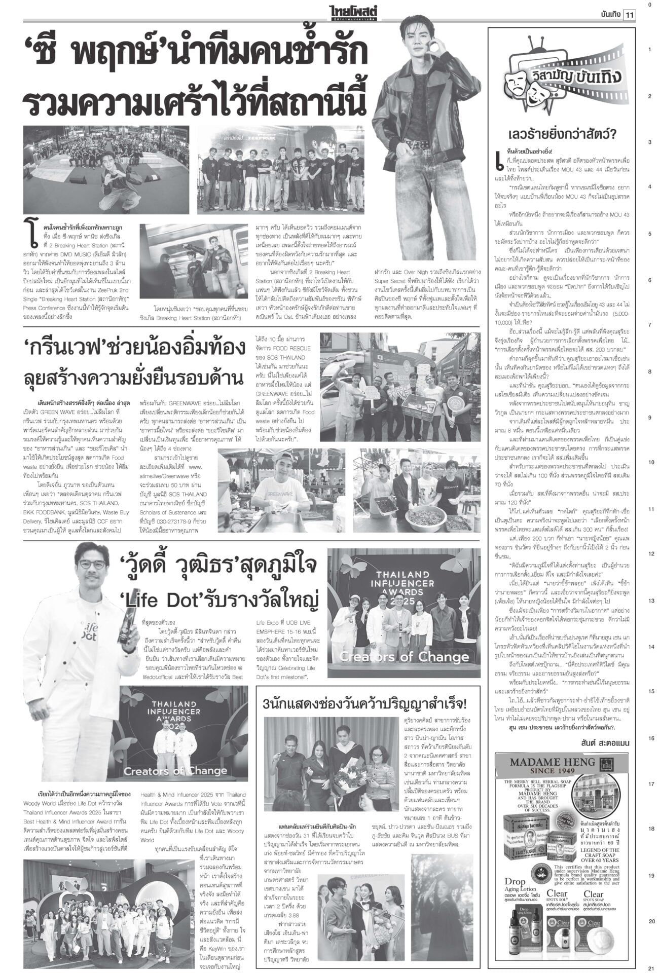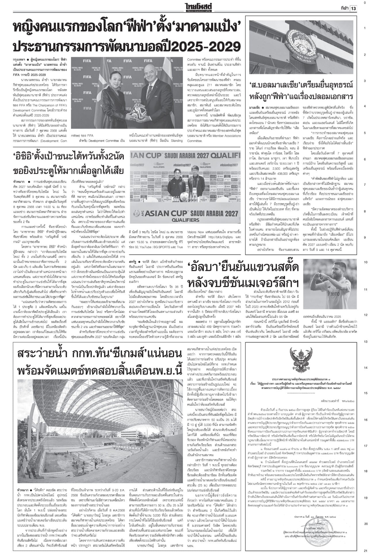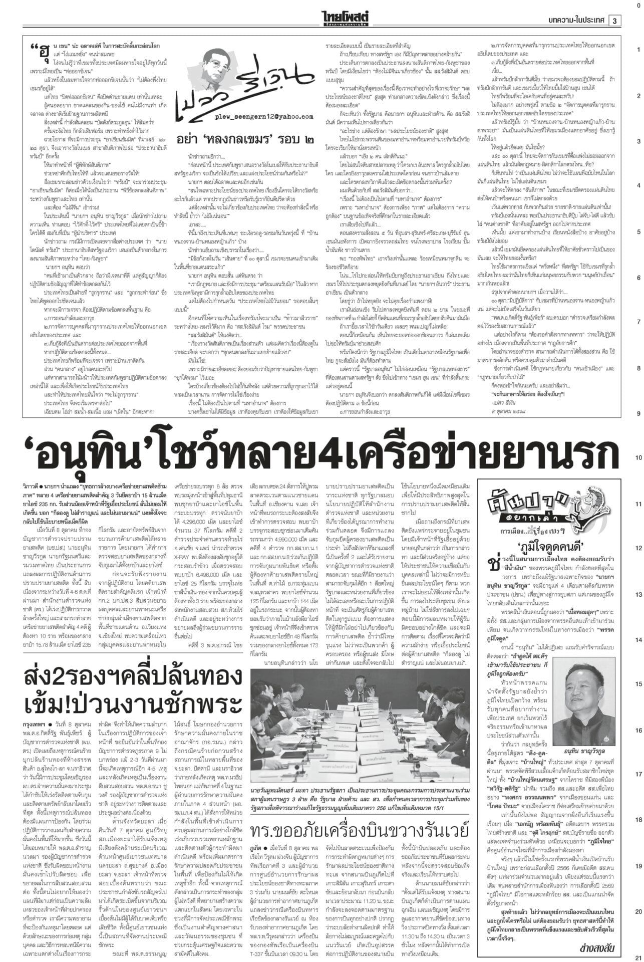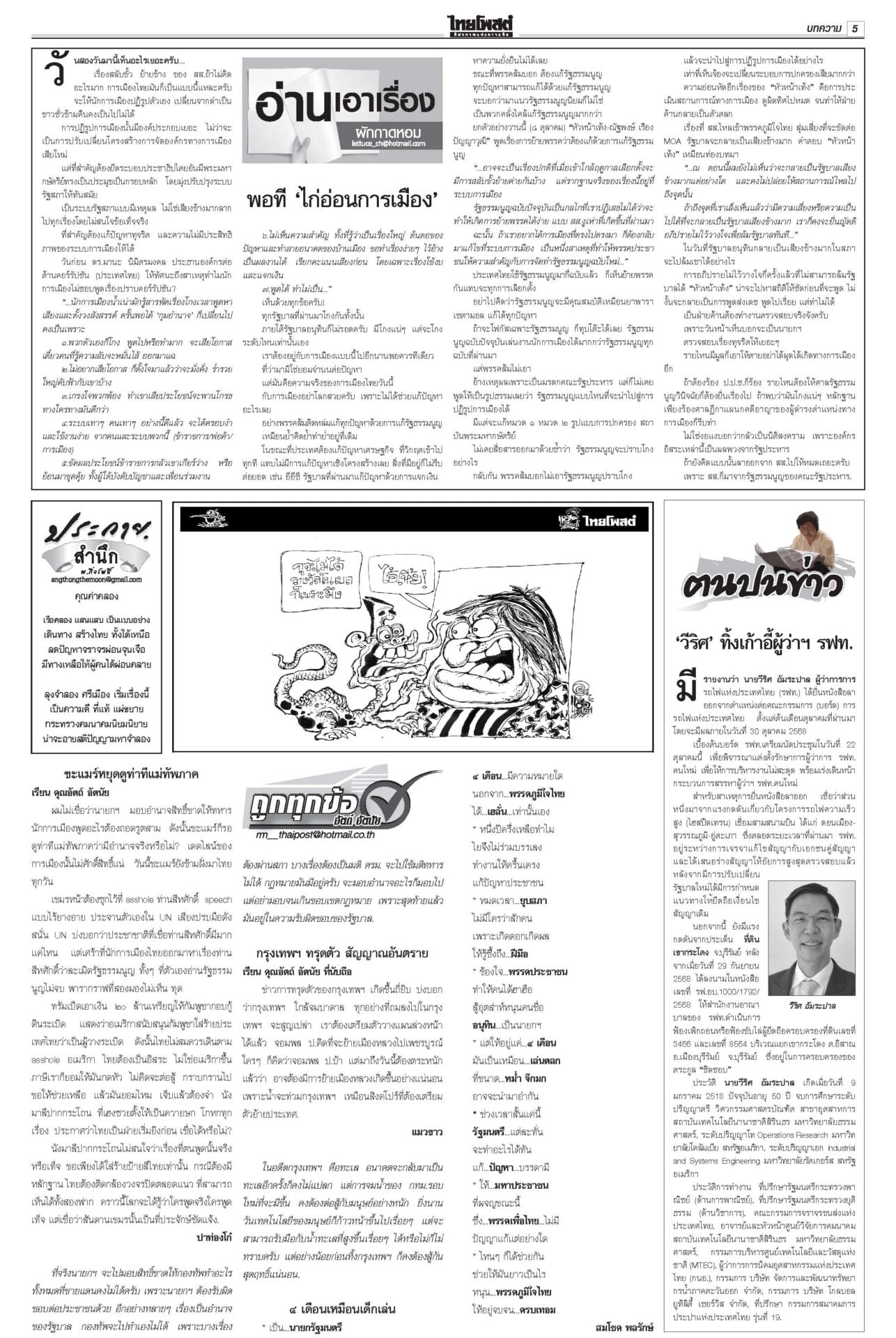 หนังสือพิมพ์ ฉบับวันที่ 9 ตุลาคม 2568ข่าวหน้าหนึ่ง44ส้มระทึก!จบธ.ค. ปปช.ไล่พิจารณาเรียงคน คดีชั้น14มี2ตัวละครใหม่พรรคส้มเตรียมตัวหนาว! ป.ป.ช.เผยไต่สวนพยานหลักฐานคดี 44 สส.ก้าวไกลเสร็จแล้ว เคาะ19ชม.ถกแก้รธน. ลุยวาระ2-3ก่อนสิ้นปี“วิป 3 ฝ่าย” เคาะกรอบถกแก้ รธน. 14-15 ต.ค. รวมร่าง 3 ฉบับ แต่แยกลงมติ ใช้เวลาทั้งหมด 19 ชั่วโมง หนูรีเซตประเทศ ‘พท.อุบล’ซบภท.“นายกฯ” ลั่น 4 เดือนไม่สูญเปล่า จะตอกเสาเข็มสร้างหลักนิติธรรมประเทศ ‘กนง.’เสียงแตก คงดอกเบี้ย1.5% ดัชนีเชื่อมั่นดีขึ้นนายกฯ ปลื้ม “คนละครึ่งพลัส” เกิดแล้ว วางรากฐานให้รัฐบาลหน้าต่อยอดได้ “กนง.” เสียงแตก 5 : 2 คงอัตราดอกเบี้ยนโยบายที่ 1.50% ต่อปี ไม่ปิดประตูทรัมป์หย่าศึกไทย-เขมร“นายกฯ” ไม่ปิดประตู “ทรัมป์” เสนอเป็นตัวกลางยุติขัดแย้งไทย-เขมร