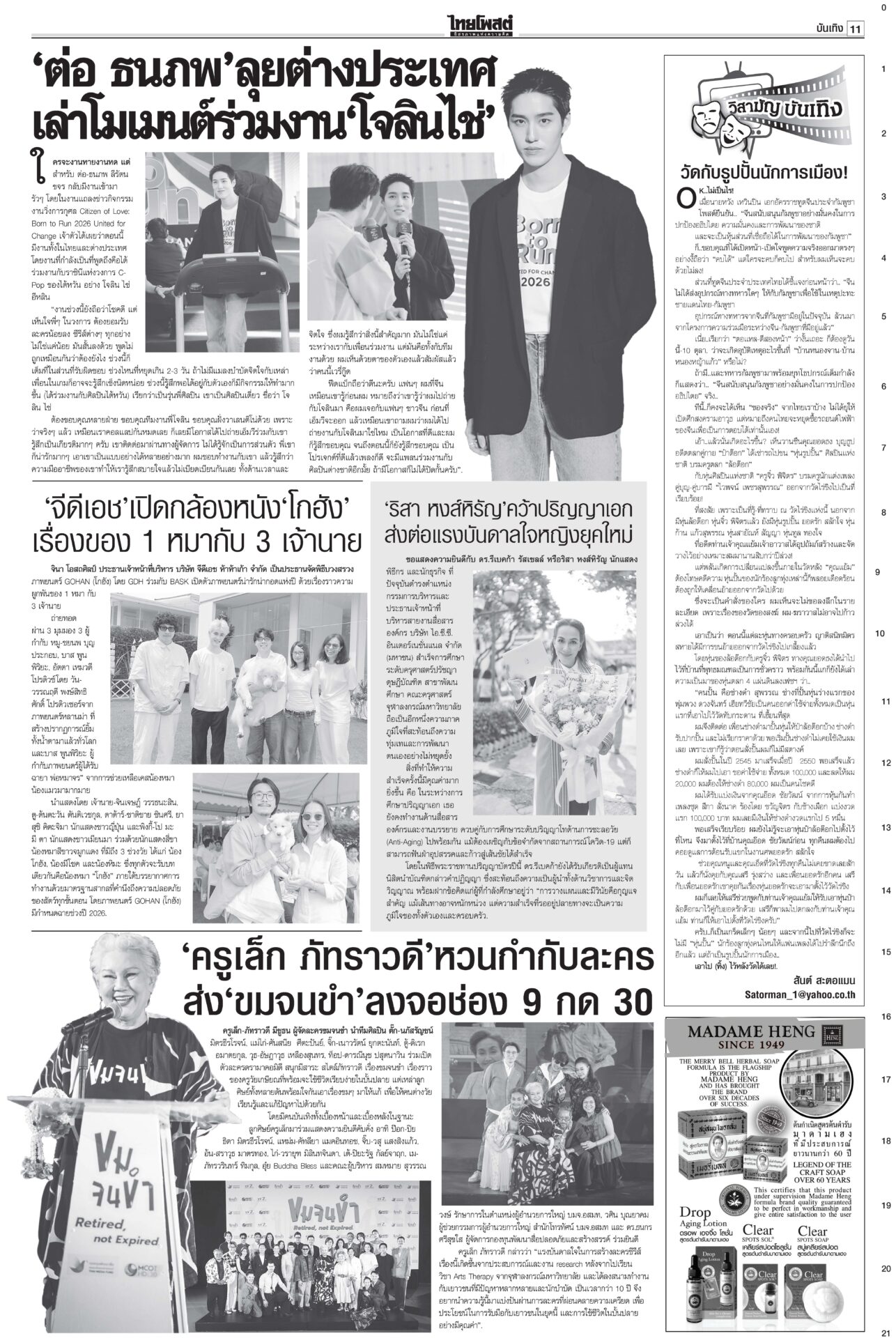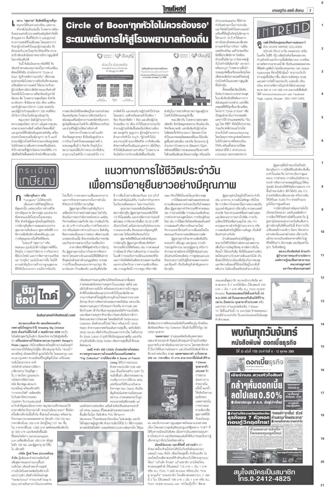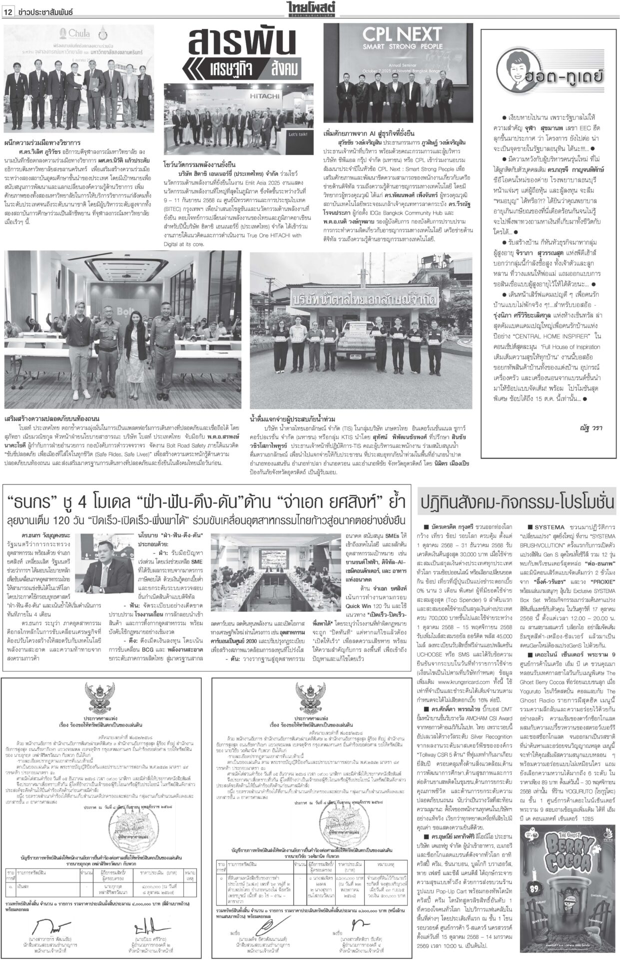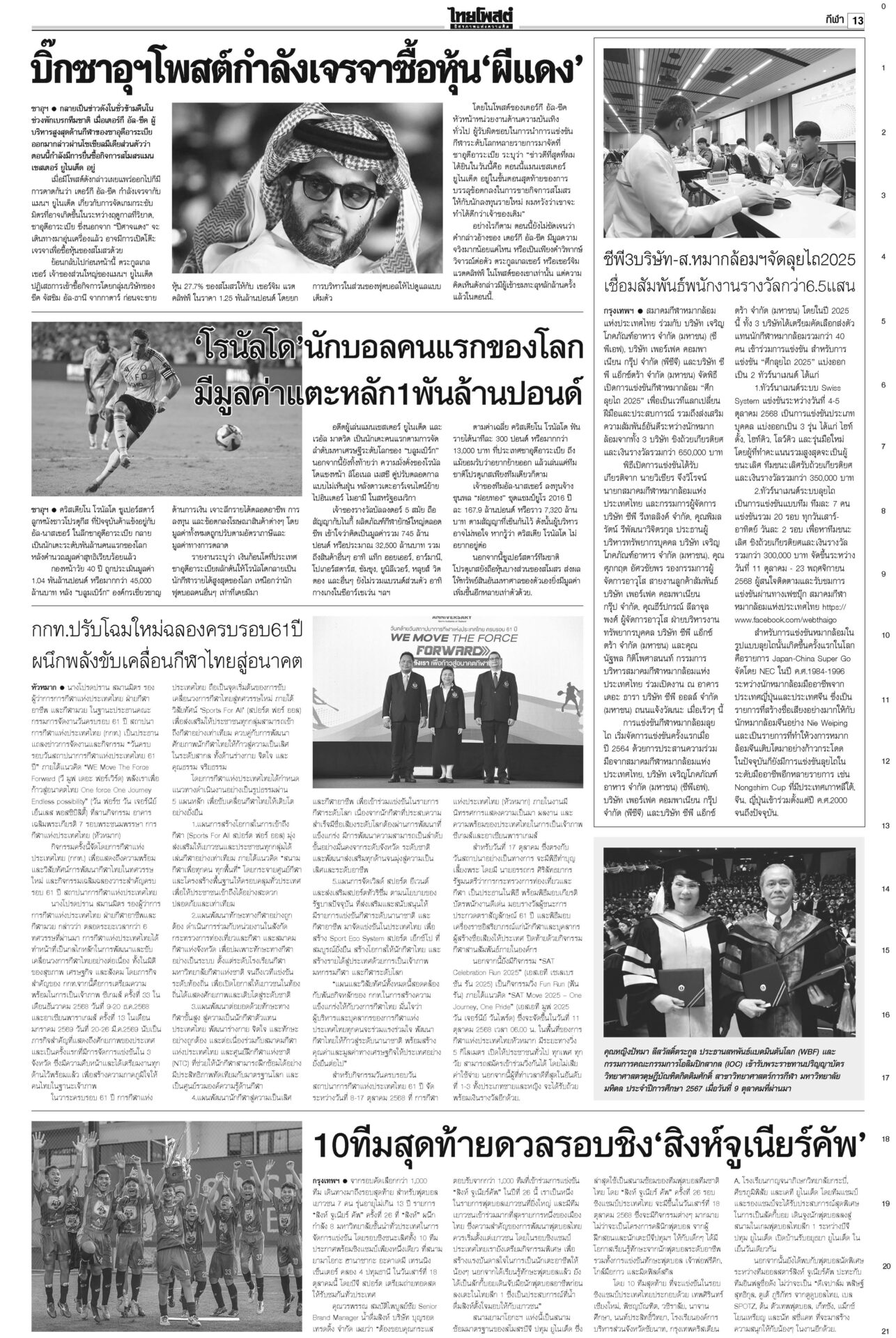 หนังสือพิมพ์ ฉบับวันที่ 10 ตุลาคม 2568ข่าวหน้าหนึ่งไม่มีเดดไลน์ไล่เขมร นายกฯชี้ต้องละมุนละม่อม ทภ.1ลุยกู้ระเบิด‘หนองจาน’“นายกฯ” โยน “ทรัมป์” ไปคุยกับกัมพูชาให้ทำตามเงื่อนไข 4 ข้อก่อน คนอีสานหนุน‘หนู’เป็นนายกฯโพลคนอีสานอยากให้ “อนุทิน” เป็นนายกฯ ส่วน “ลูกเขยชินวัตร-ลูกเจ๊แดง” ร่วงอยู่อันดับ 4-5 “สรวงศ์” โรมโวเอกสารโยงฟอกเงิน เบรกเด็กธรรมนัสแจงแทน“กมธ.มั่นคงแห่งรัฐฯ” ถกปม “เบน สมิธ-สินบนคอลเซ็นเตอร์” ไร้เงา 3 รมต.เข้าชี้แจง “ธรรมนัส” มอบตัวแทน คลังจัดระเบียบ ‘ลดหย่อนภาษี’ หวังเพิ่มรายได้“เอกนิติ” สั่งลุยจัดระเบียบ “ลดหย่อนภาษี” ใหม่ เล็งกำหนดเพดานต่อปี โจรใต้ป่วนหนัก ‘อนุทิน’ลงพื้นที่ ถกหน่วยมั่นคง“นายกฯ หนู” ลงชายแดนใต้ 11 ต.ค. ติดตามเหตุบึ้มถี่ พร้อมนัดถกหน่วยมั่นคง