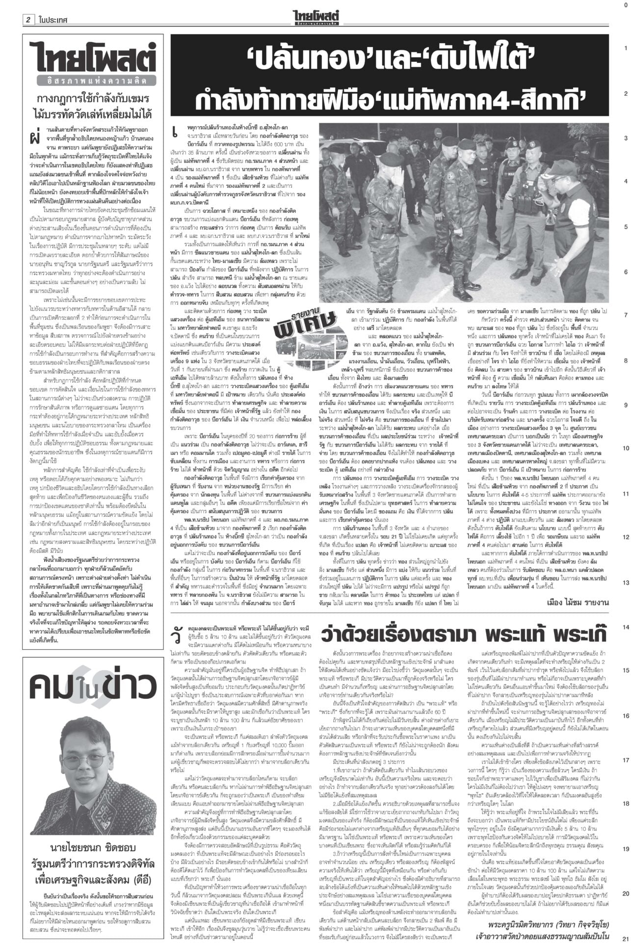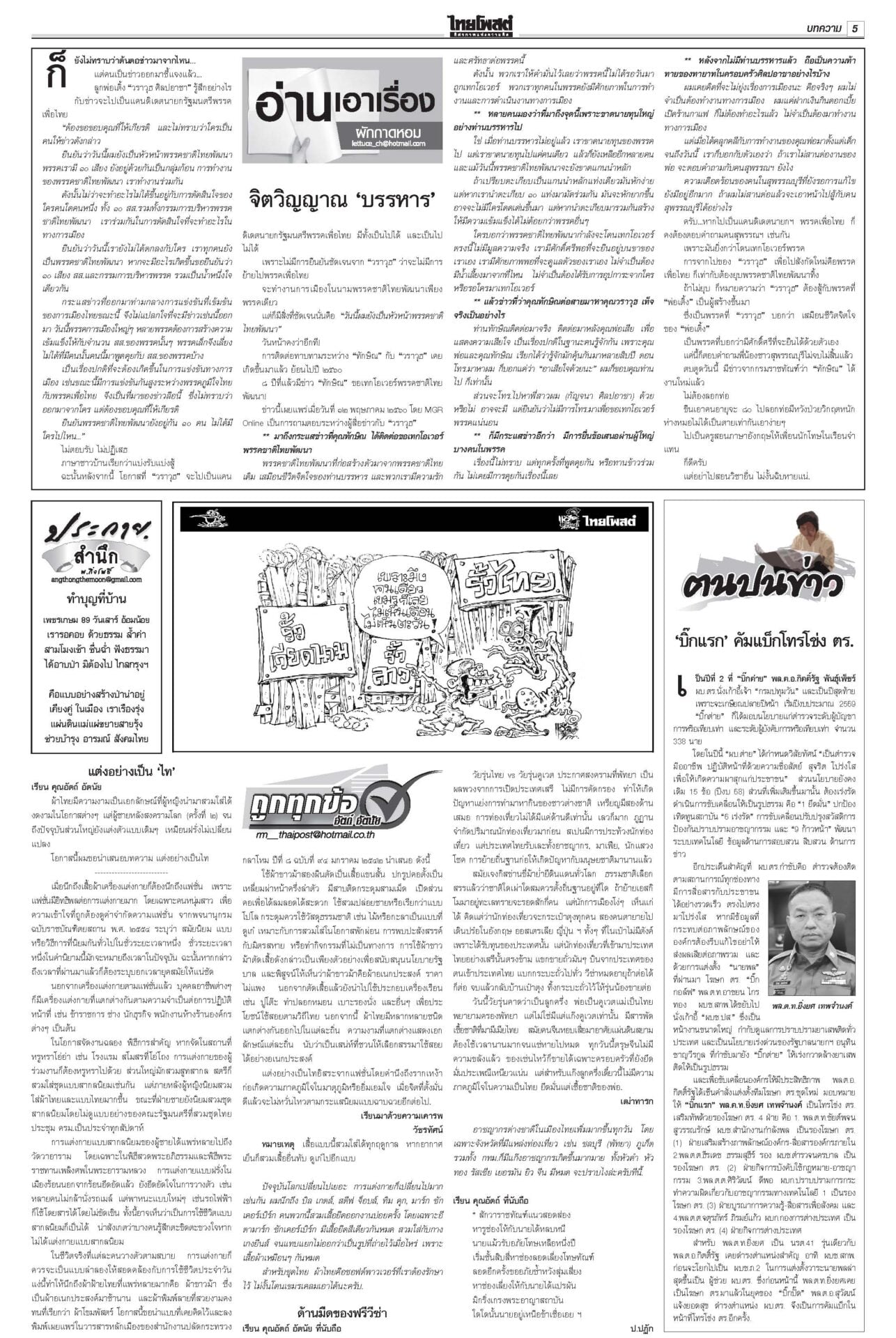 ฉบับวันที่ 11 ตุลาคม 2568 11 ตุลาคม 2568 เวลา 0:01 น. หนังสือพิมพ์ ฉบับวันที่ 11 ตุลาคม 2568ข่าวหน้าหนึ่งรอจังหวะไล่‘เขมร’ ทัพภาค1-ตำรวจสแตนด์บาย/อนุทินวอนเข้าใจคนทำงาน“นายกฯ” ถก “สมช.” หารือสถานการณ์ชายแดนไทย-กัมพูชา ย้ำจุดยืน 4 ข้อ อุบแย้มแผนบอกเรื่องลับสุดยอด ย้ำไทยพร้อมทุกอย่าง พิธาพ้อคดี44สส.ทำลายล้าง“อนุทิน” ลงพื้นที่น้ำท่วมพิจิตร-ชัยนาท ลั่นไม่เอาความเดือดร้อนมาสร้างคะแนนนิยม ‘ไชยชนก’ชี้สินบนจบ1ด. โรมจี้แม้วเคลียร์ปมเบน!“ไชยชนก” เบี้ยวแจง กมธ.ไอซีที ปมสินบน 40 ล้าน อ้างเหตุไม่อยากเปิดเผยข้อมูล วิทัยตั้งเป้าแก้หนี้2ล้านรายนายกฯ สั่งกระทรวงเศรษฐกิจเร่งนโยบายควิกวินให้เป็นรูปธรรมใน 4 เดือน พท.โวอภิปราย รื้อรัฐธรรมนูญ ‘เปรมศักดิ์’เซ็ง“เพื่อไทย” ตีปี๊บมี 30 สส.เตรียมอภิปรายเรื่องแก้ไขรัฐธรรมนูญ ยังกั๊กท่าทีหนุนทั้ง 3 ฉบับหรือแค่ของตัวเอง “เปรมศักดิ์” Tagsรายวันหนังสือพิมพ์ ข่าวที่เกี่ยวข้อง ฉบับวันที่ 5 ธันวาคม 2568 ฉบับวันที่ 4 ธันวาคม 2568 ฉบับวันที่ 3 ธันวาคม 2568 ฉบับวันที่ 2 ธันวาคม 2568 ฉบับวันที่ 1 ธันวาคม 2568 ฉบับวันที่ 30 พฤศจิกายน 2568 NEWS UPDATE 13:03 น. 'สว.นพดล' เผยจ่อขอมติกมธ.เคาะ MOU 2543 ส่วน MOU 2544 ไม่มีความก้าวหน้า 12:41 น. เอาแล้ว! กมธ.ร่างพรบ.สันติสุข สว. จ่อค้านนิรโทษกรรม คนสั่งเผาบ้านเผาเมือง-ผิด ม.112 12:26 น. 'ไอติม' เลี่ยงยื่นซักฟอก ใช้กลไกอื่นตรวจสอบรัฐบาลแทน 11:59 น. พสกนิกรโคราชปลูกต้นไม้ 9 พันต้น เฉลิมพระเกียรติ 'ในหลวง ร.9' 11:37 น. 'เมสซี' ยอมรับตนยังพูดได้ไม่เต็มปาก เล่นบอลโลก 2026 หรือไม่