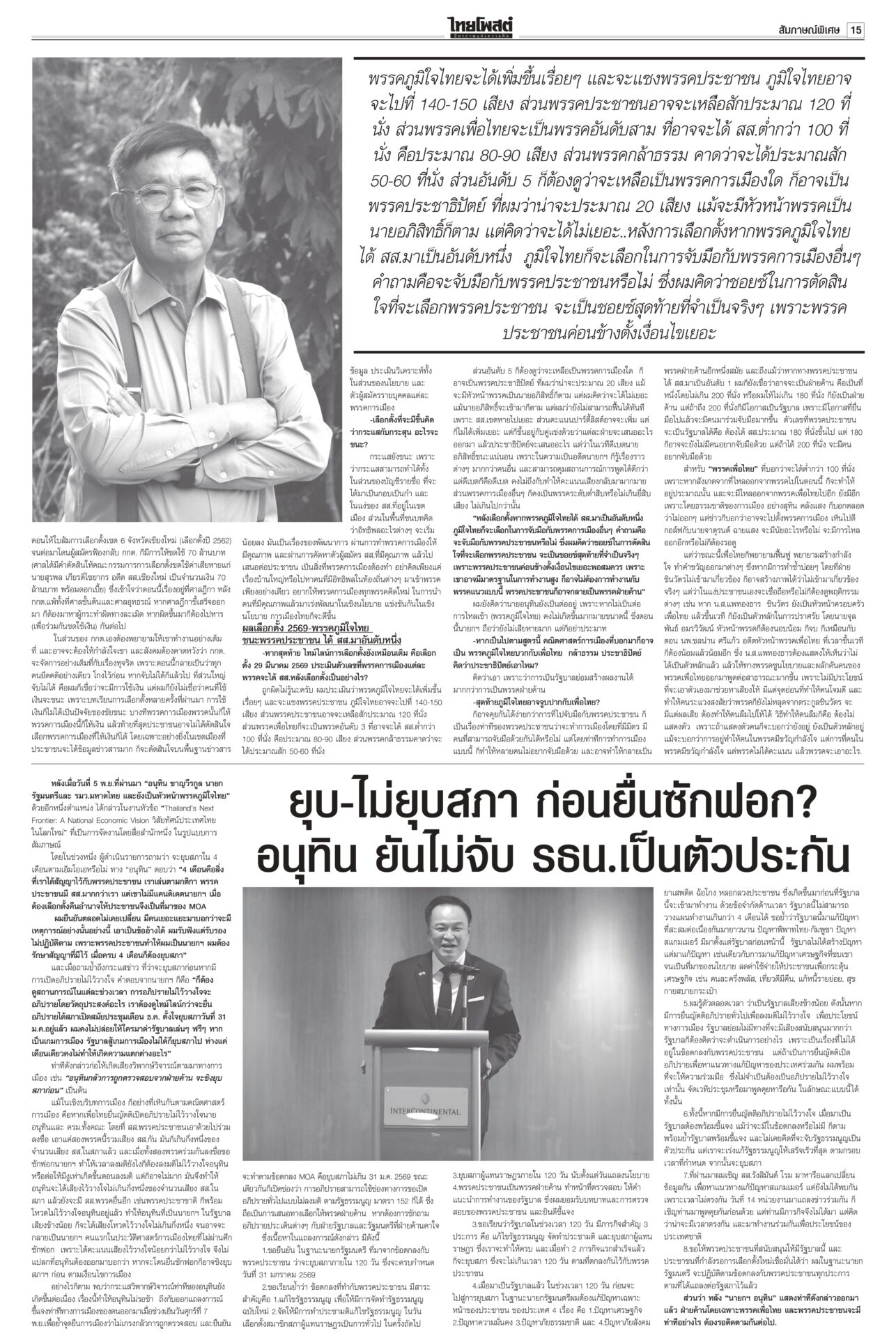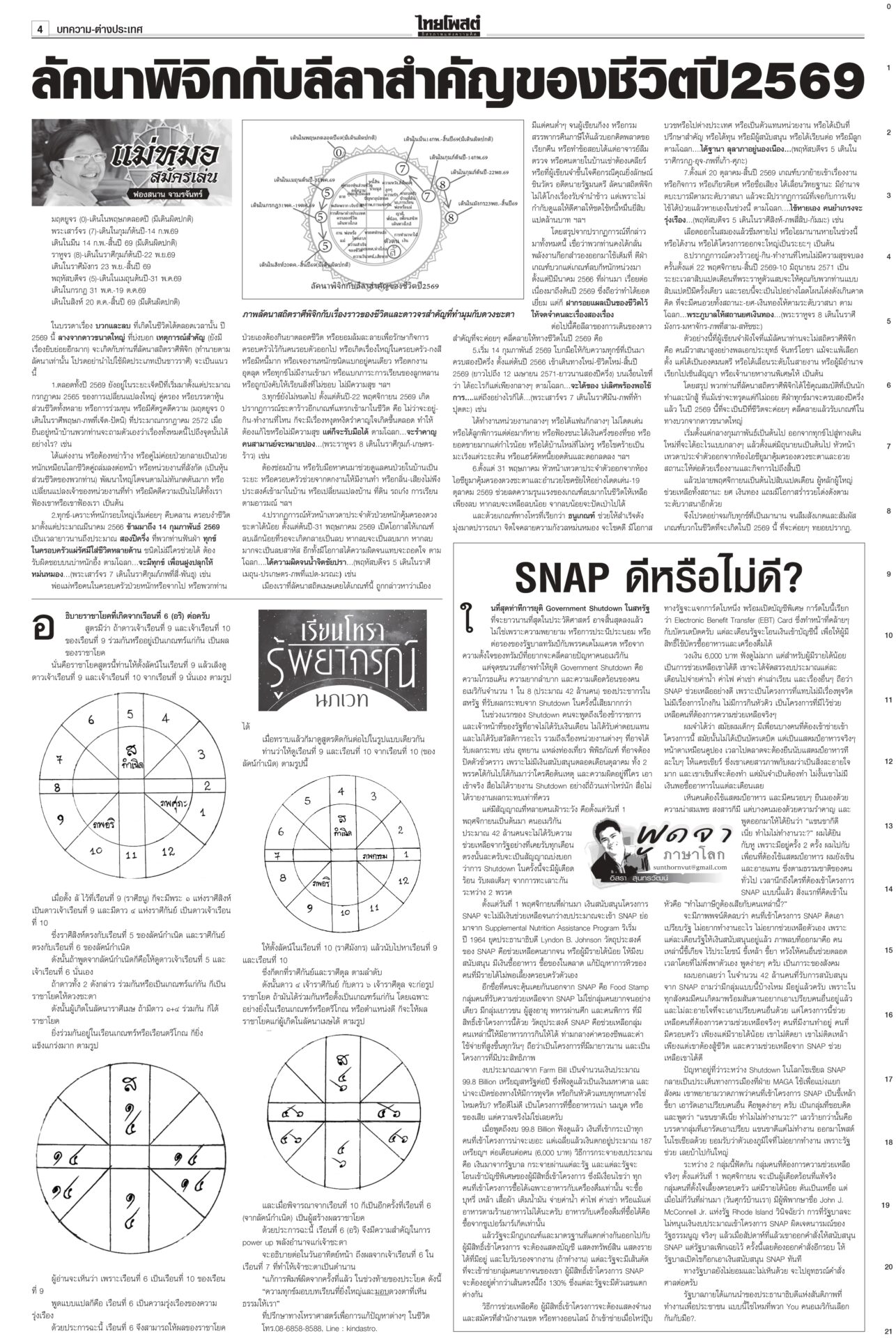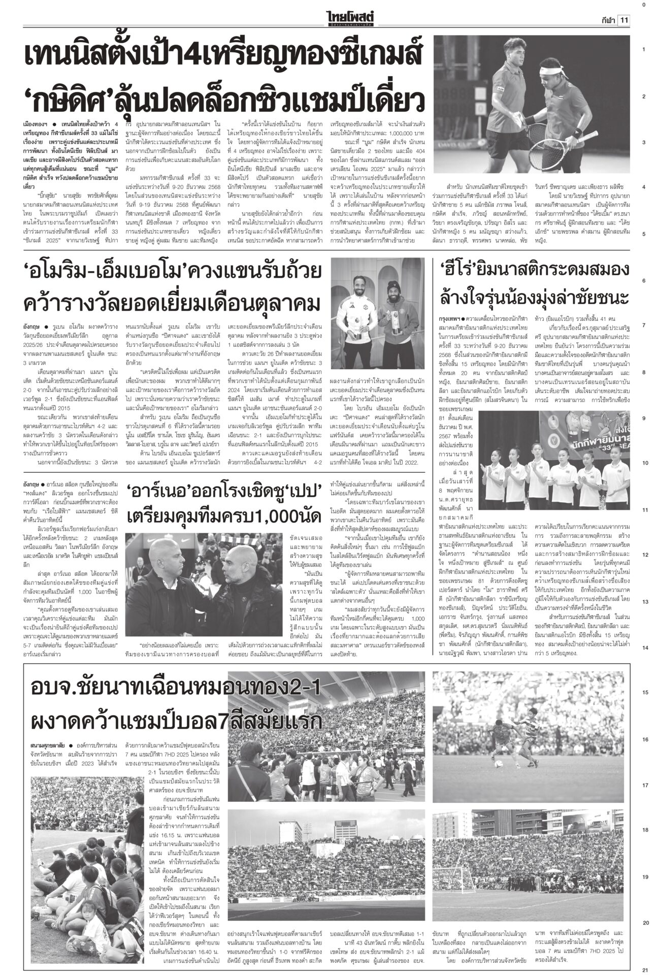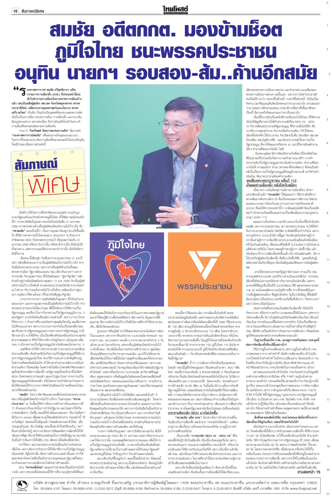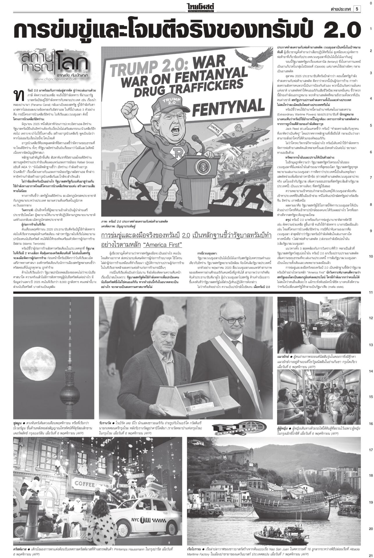 หนังสือพิมพ์ฉบับวันที่ 9 พฤศจิกายน 2568 ข่าวหน้าหนึ่งเป็นแม่ของชาติ พสกนิกรถวายสักการะพระบรมศพต่อเนื่องในหลวง-พระราชินี ทรงบำเพ็ญพระราชกุศลปัณรสมวาร วันที่ 2 พระราชทานหนังสือ “สมเด็จแม่กับการศึกษา”-“เสด็จฯ ดอย” แก่ผู้เข้าร่วมพิธีทรงบำเพ็ญพระราชกุศลปัณรสมวาร เปิดเข้ากราบพระบรมศพ “พระ กกต.ส่งศาลฎีกา ฟันใบดำ -ใบแดง ผัวฮั้วสว.ให้เมียเชือดฮั้ว สว.ไปอีกราย! กกต.มีมติส่งศาลฎีกาสั่งใบดำ-ใบแดง พร้อมฟันอาญา “กำพล” อดีต สว. ปมจ้างคนลงสมัคร หวังให้เมียนอกสมรสได้รับเลือกเป็น สว.แปดริ้ว ‘ไทย-เขมร’ตกลงทำกำแพง8กม.เปิดหนังสือกระทรวงการต่างประเทศ ไทย-กัมพูชาเห็นพ้องสร้างรั้วชายแดนฝั่งจันทบุรี-ตราด ระยะทางกว่า 8 กม. หลักเขต 52-59 ด้าน “ทูตประศาสน์” เตรียมลงพื้นที่ งบก่อสร้างพร้อมแล้ว ดรามาพท.อวย‘สนธิ’ ชวนไปอยู่‘ฝ่ายปชต.’สยบดรามา อวยพรวันเกิดสนธิ “ก่อแก้ว” ขอถามตรงๆ การทอดไมตรีครั้งนี้ ดึงศัตรูให้มาเป็นผู้สนับสนุน ดีต่อฝ่ายประชาธิปไตย เชื่ออาจเปลี่ยนอนาคตได้ ขณะที่คอลัมนิสต์ผู้จัดการเผย