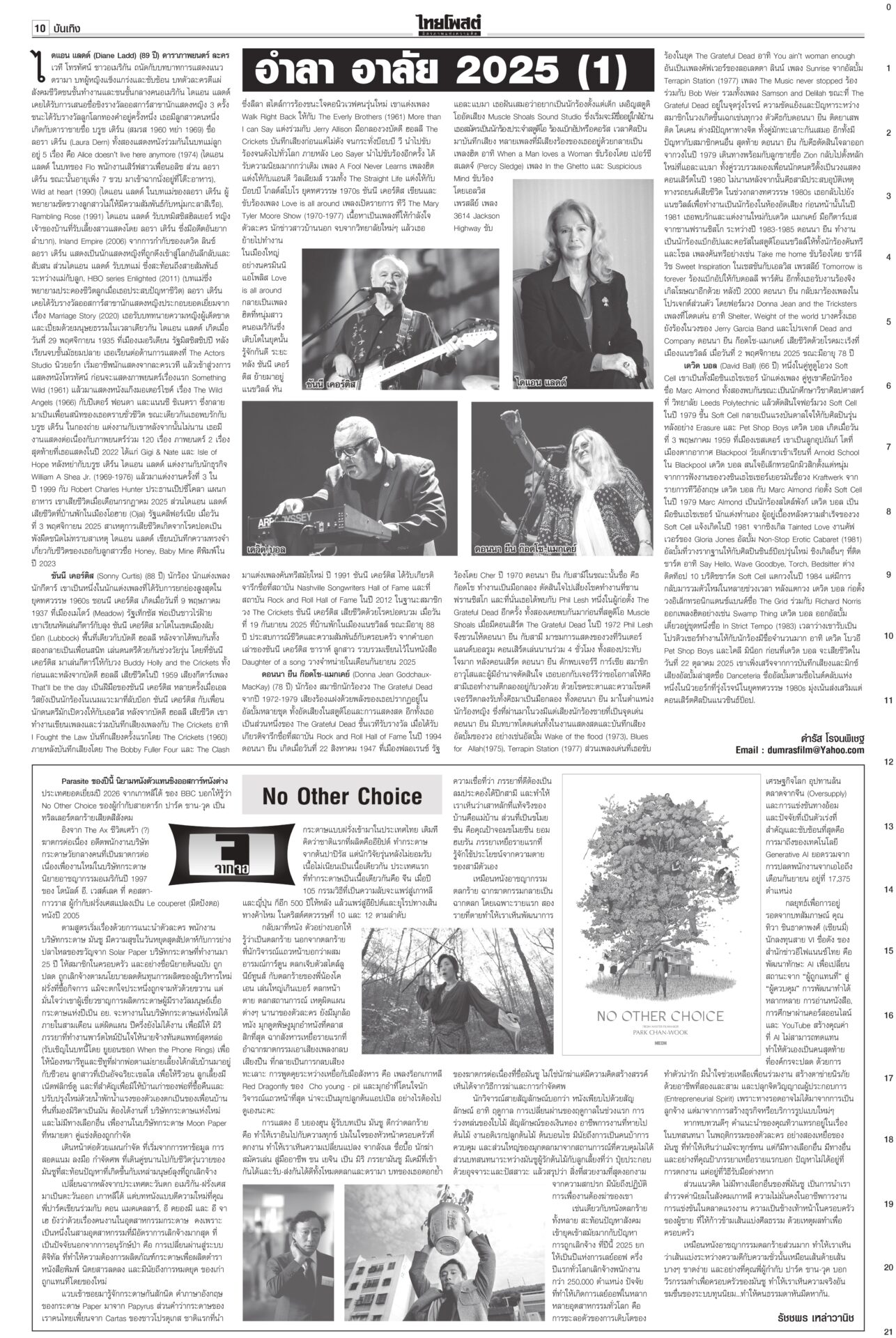ฉบับวันที่ 9 พฤศจิกายน 2568 9 พฤศจิกายน 2568 เวลา 0:01 น. หนังสือพิมพ์ฉบับวันที่ 9 พฤศจิกายน 2568 ข่าวหน้าหนึ่งเป็นแม่ของชาติ พสกนิกรถวายสักการะพระบรมศพต่อเนื่องในหลวง-พระราชินี ทรงบำเพ็ญพระราชกุศลปัณรสมวาร วันที่ 2 พระราชทานหนังสือ “สมเด็จแม่กับการศึกษา”-“เสด็จฯ ดอย” แก่ผู้เข้าร่วมพิธีทรงบำเพ็ญพระราชกุศลปัณรสมวาร เปิดเข้ากราบพระบรมศพ “พระ กกต.ส่งศาลฎีกา ฟันใบดำ -ใบแดง ผัวฮั้วสว.ให้เมียเชือดฮั้ว สว.ไปอีกราย! กกต.มีมติส่งศาลฎีกาสั่งใบดำ-ใบแดง พร้อมฟันอาญา “กำพล” อดีต สว. ปมจ้างคนลงสมัคร หวังให้เมียนอกสมรสได้รับเลือกเป็น สว.แปดริ้ว ‘ไทย-เขมร’ตกลงทำกำแพง8กม.เปิดหนังสือกระทรวงการต่างประเทศ ไทย-กัมพูชาเห็นพ้องสร้างรั้วชายแดนฝั่งจันทบุรี-ตราด ระยะทางกว่า 8 กม. หลักเขต 52-59 ด้าน “ทูตประศาสน์” เตรียมลงพื้นที่ งบก่อสร้างพร้อมแล้ว ดรามาพท.อวย‘สนธิ’ ชวนไปอยู่‘ฝ่ายปชต.’สยบดรามา อวยพรวันเกิดสนธิ “ก่อแก้ว” ขอถามตรงๆ การทอดไมตรีครั้งนี้ ดึงศัตรูให้มาเป็นผู้สนับสนุน ดีต่อฝ่ายประชาธิปไตย เชื่ออาจเปลี่ยนอนาคตได้ ขณะที่คอลัมนิสต์ผู้จัดการเผย Tagsรายวันหนังสือพิมพ์ ข่าวที่เกี่ยวข้อง ฉบับวันที่ 5 ธันวาคม 2568 ฉบับวันที่ 4 ธันวาคม 2568 ฉบับวันที่ 3 ธันวาคม 2568 ฉบับวันที่ 2 ธันวาคม 2568 ฉบับวันที่ 1 ธันวาคม 2568 ฉบับวันที่ 30 พฤศจิกายน 2568 NEWS UPDATE 11:27 น. โอนเงินเยียวยาน้ำท่วม สำเร็จแล้ว 4.9 พันล้าน 5 แสนครัวเรือน 11:09 น. 'อโมริม' หัวเสีย 'ผีแดง' ชวดสามคะแนน แอบติงลูกทีมเก็บบอลท้ายเกมไม่ได้ 11:00 น. รัฐบาลยกเว้น 'ค่าไฟ' พ.ย. 420 ล้าน เยียวยาน้ำท่วมสงขลา 10:46 น. 'อดีตผู้พิพากษา' อธิบาย 'ปิดงานงดจ้าง' กับ 'หยุดกิจการ' เหตุข้อพิพาทแรงงาน 'ไดกิ้น ' 10:36 น. 'อนุทิน' สวน พท. ใครทำงานห่วย ยุครัฐบาลนิด-อิ๊งค์ ติดโพลอันดับ 2