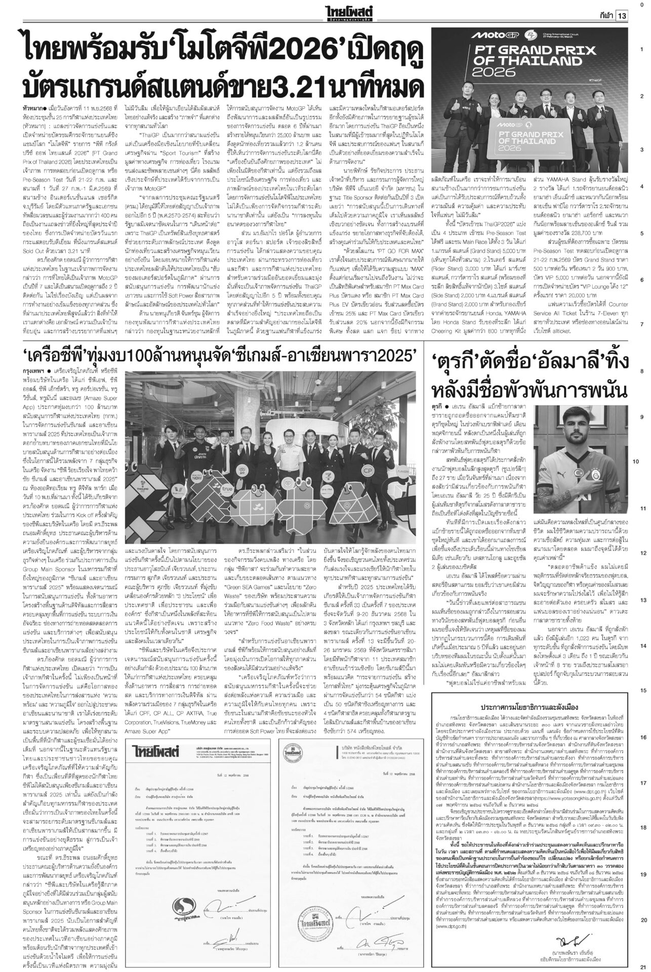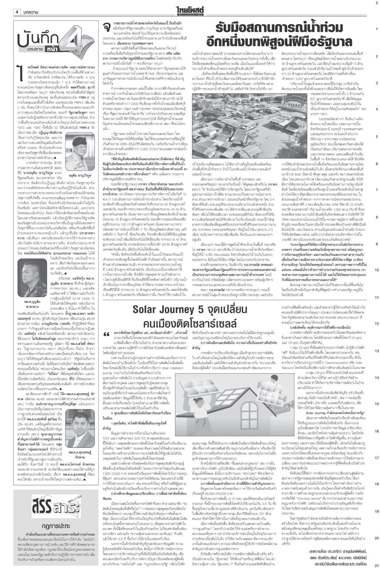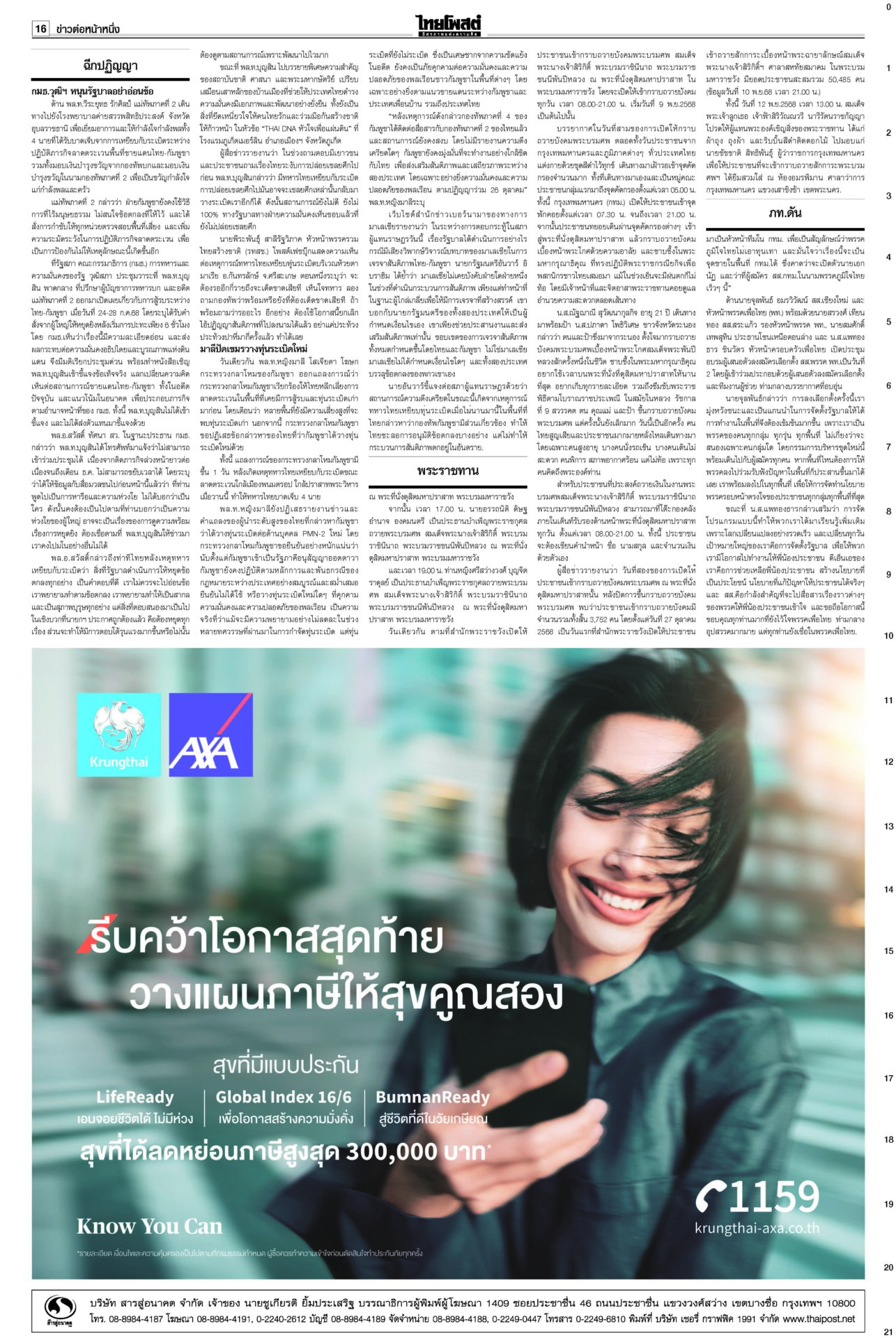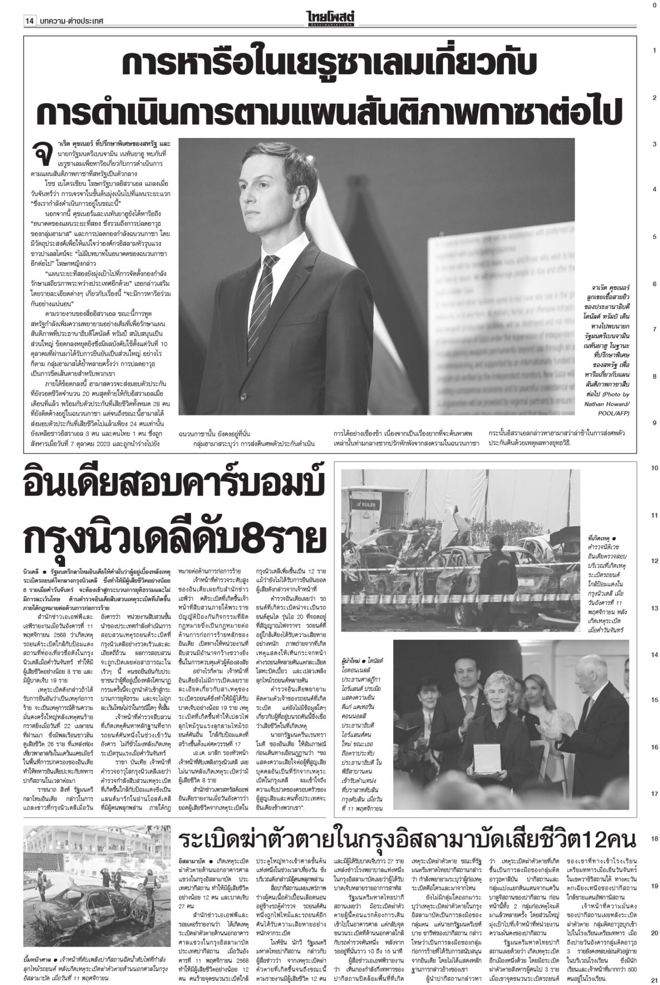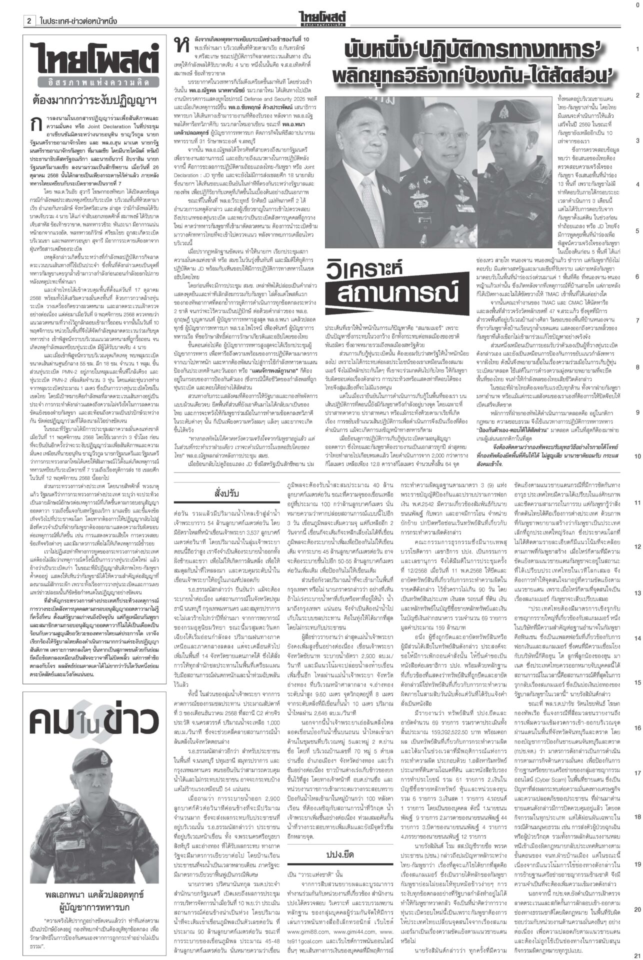 หนังสือพิมพ์ ฉบับวันที่ 12 พฤศจิกายน 2568ข่าวหน้าหนึ่งฉีกปฏิญญาสะบั้นเขมร นายกฯไฟเขียวกองทัพ มาลียังโกหกระเบิดเก่า“สมช.” ไฟเขียวปฏิบัติการทางทหาร ทำได้ตามสถานการณ์ หลังทหารไทยเหยียบกับระเบิดขาขาด พร้อมมีมติยุติส่งเชลยศึก ปปง.ยึด159ล้าน ชนนพัฒฐ์ฟอกเงินรมว.ยธ.แจงรื้อคดีเก่านักการเมือง “ช.” ไม่ได้ แต่สั่งดำเนินการเพิ่ม พระราชทานผ้าถุง-ริบบิ้นดำแก่ปชช.“เจ้าฟ้าสิริวัณณวรีฯ” พระราชทานผ้าถุง-ริบบิ้นดำ แก่ประชาชนที่เข้ากราบถวายบังคมพระบรมศพ “พระพันปีหลวง” ภท.ดัน‘ขิง’นำทัพกทม. ‘อิ๊งค์’ชูDNAฟื้นเรตติ้ง“ภูมิใจไทย” เล็งตั้ง “เอกนัฏ” นั่งหัวหน้าทีม กทม.สู้ศึกเลือกตั้งปี 69 ชูสโลแกน สั่งปรับเกณฑ์ เยียวยานํ้าท่วม รบ.ยันไม่ซ้ำปี54สถานการณ์น้ำลุ่มเจ้าพระยายังน่าห่วง และท่วมหลายพื้นที่