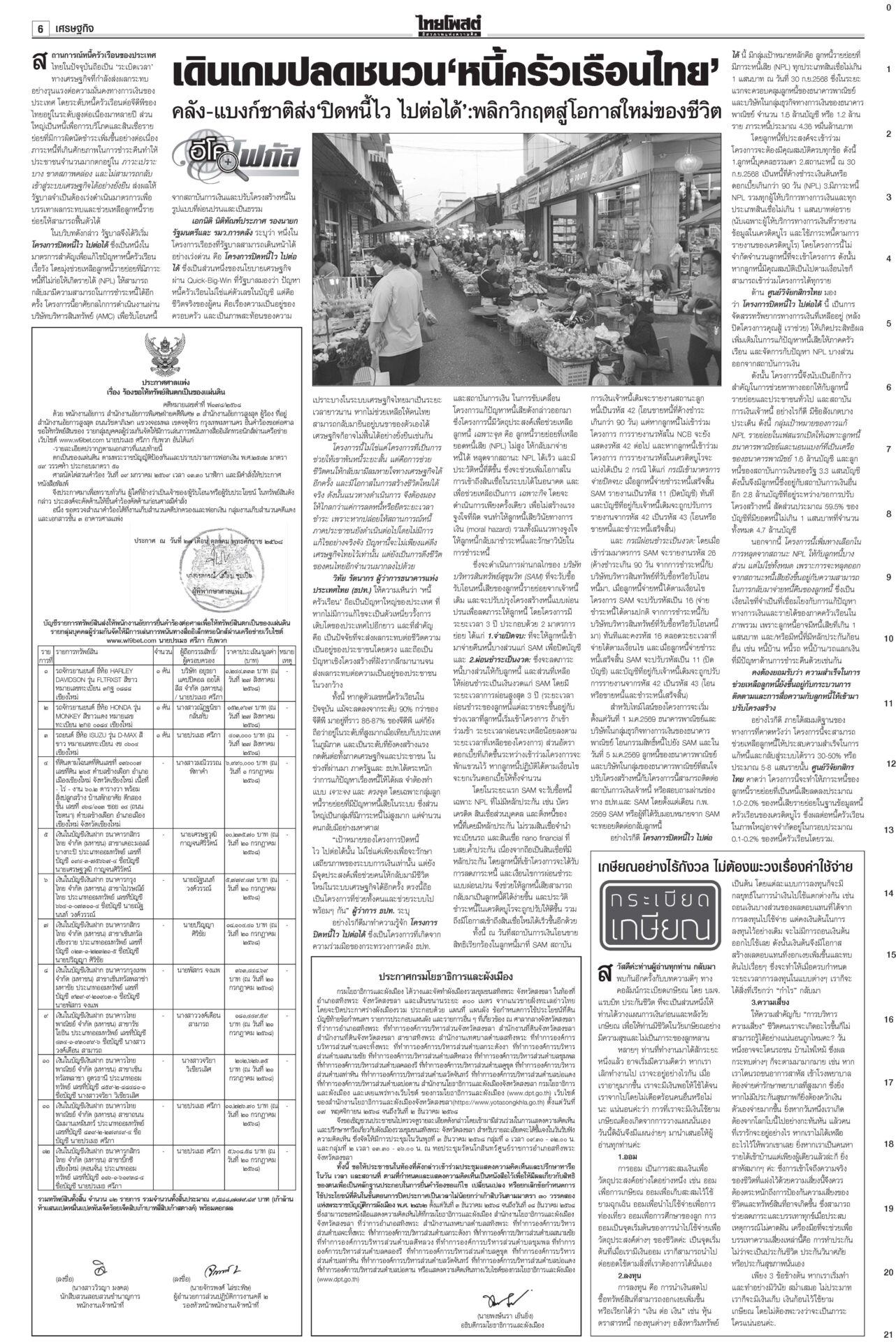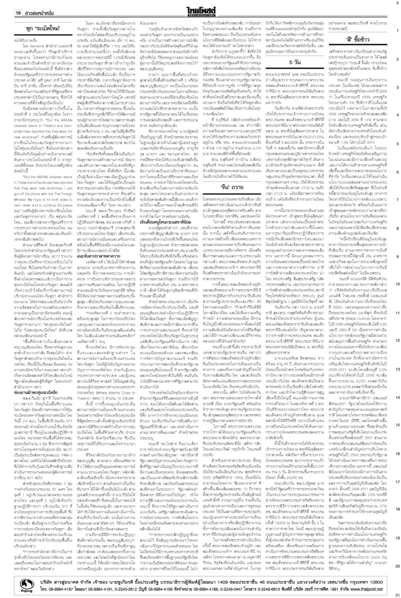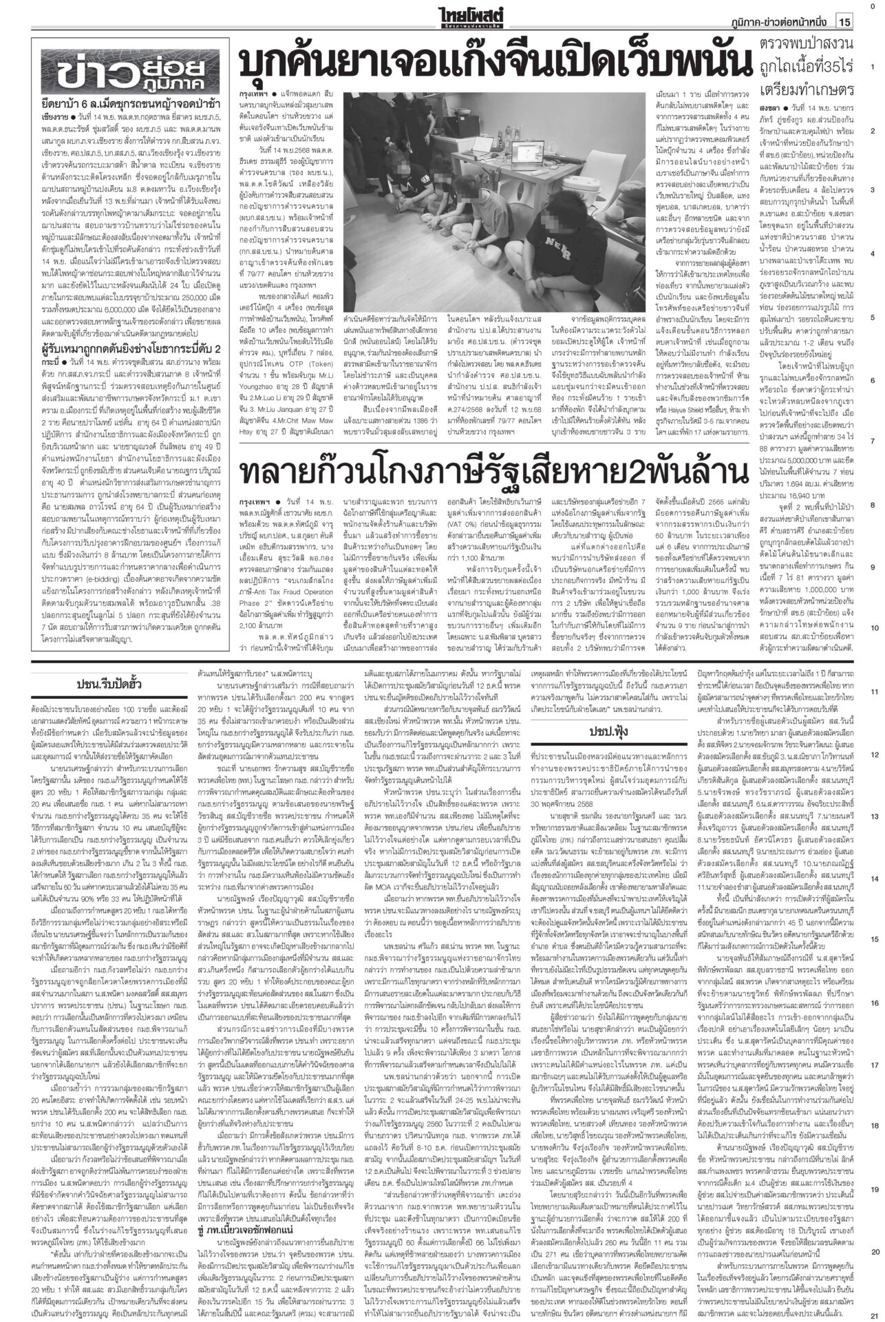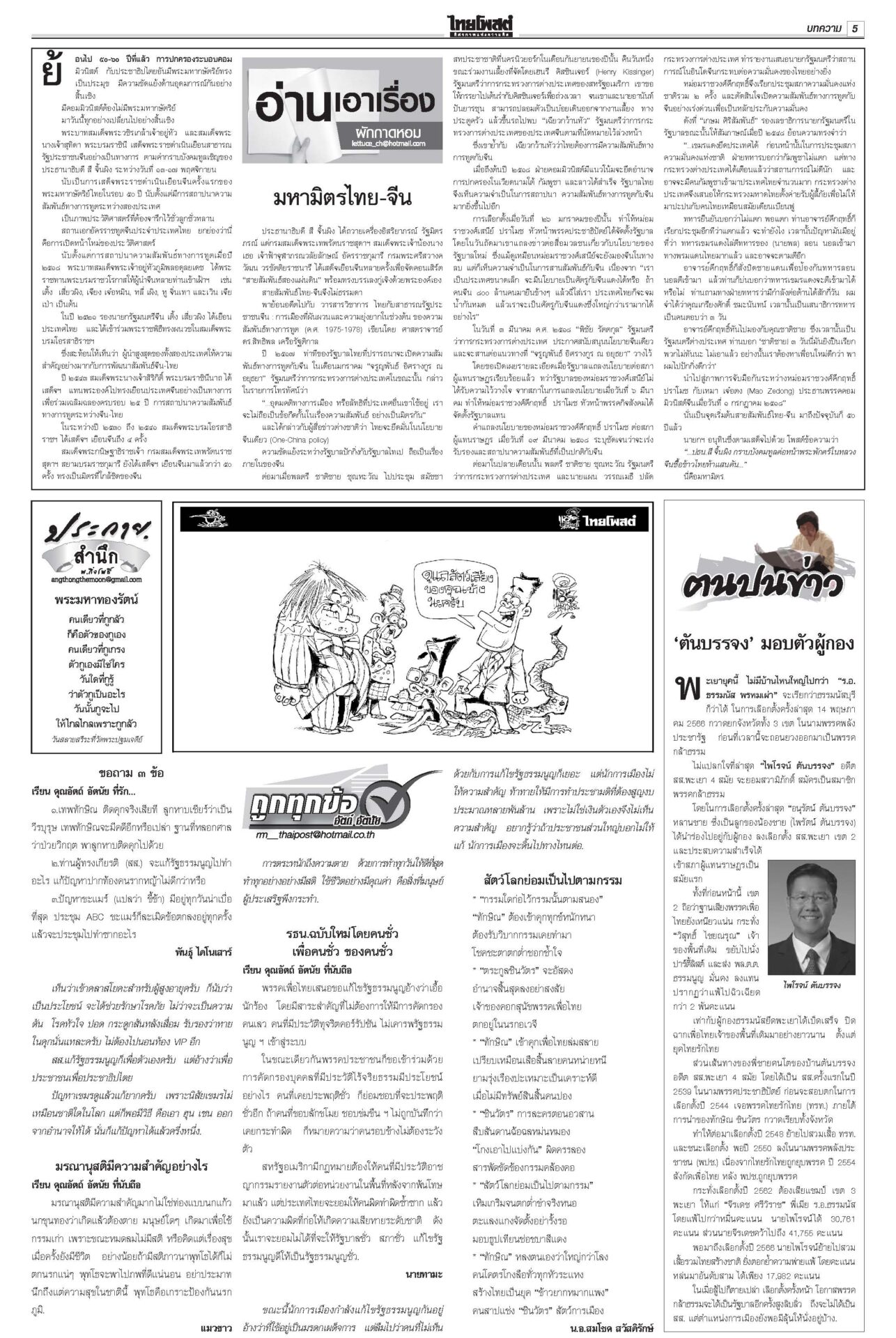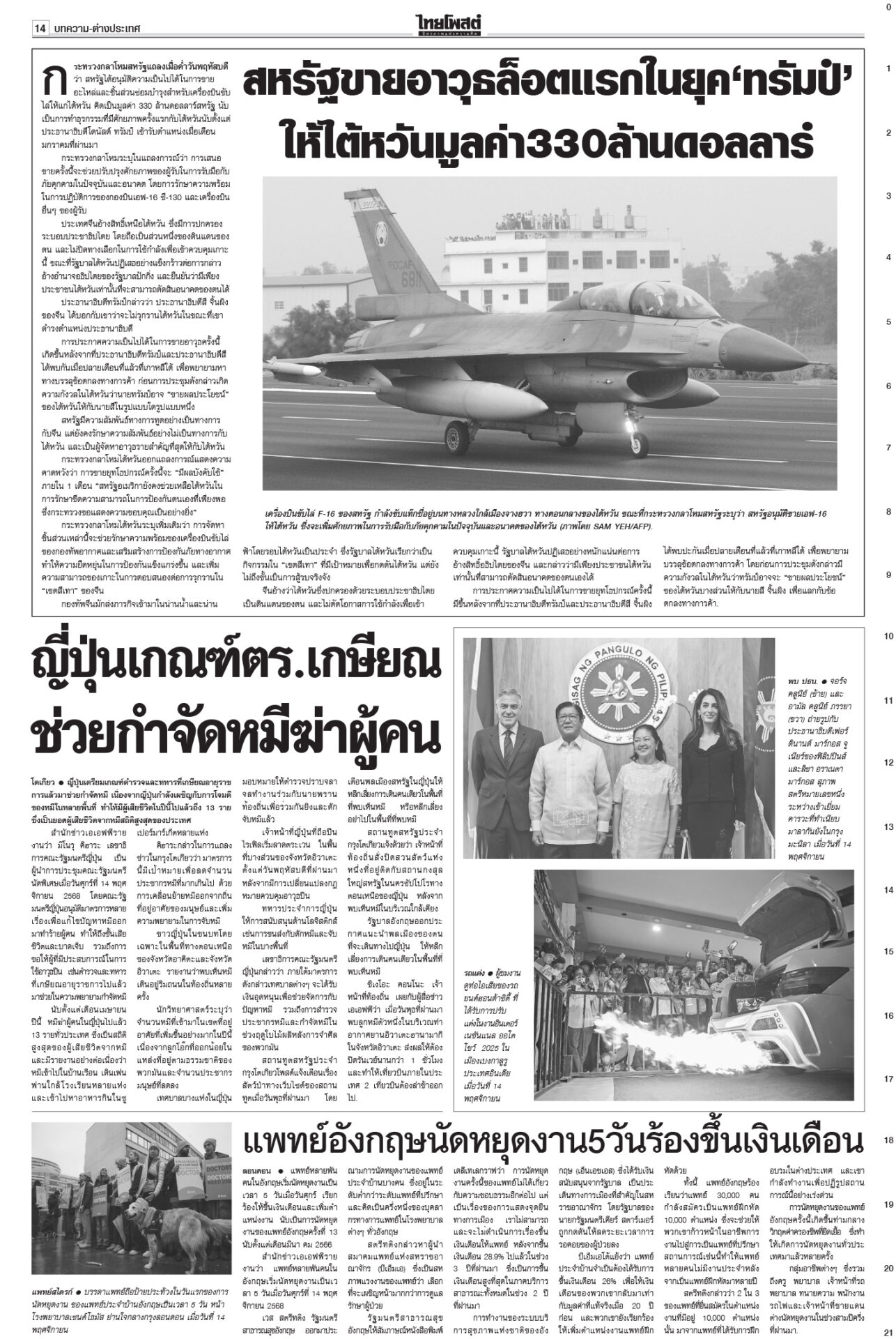 หนังสือพิมพ์ ฉบับวันที่ 15 พฤศจิกายน 2568ข่าวหน้าหนึ่งซุก‘ระเบิดใหม่’อื้อ! ‘ช่องอานม้า’2ลูก แถมปั้นข่าวลวง เท้งโผล่เท้าราน้า“สื่อมาเลย์” ขออภัยแปลข่าวทุ่นระเบิดชายแดนไทย-กัมพูชาผิด ‘จีน’ถวายพระเกียรติยศสูงสุด“ในหลวง-พระราชินี” เสด็จฯ เยือนปักกิ่งวันที่ 2 รัฐบาลจีนต้อนรับถวายพระเกียรติยศสูงสุด ปชป.ฟุ้งคนแห่สมัครลงสส.ปชป.ฟอร์มดี! สมัครล้นหลาม! เผยยอดผู้เสนอตัวลง สส.ทั่วประเทศ 7 วันทะลุ 300 คน ปชน.รีบปัดฮั้วภูมิใจไทย ขู่รื้อรธน.ล่มเจออภิปรายเคาะที่มา “กมธ.ยกร่าง รธน.ใหม่” ต้องมี 100 คนรับรองก่อนสมัคร เลือกสูตร 20 หยิบ 1 ‘สี’ซื้อข้าวไทย5แสนตัน S&Pคงเครดิตประเทศ!“อนุทิน” เผย “สี จิ้นผิง” กราบบังคมทูล “ในหลวง” จีนซื้อข้าวไทย 5 แสนตัน 5วันถวายบังคม ‘พระพันปีหลวง’ กว่า2.4หมื่นรายบำเพ็ญพระราชกุศลถวาย “สมเด็จพระพันปีหลวง” ผู้แทนพระองค์สมเด็จพระราชาธิบดี-พระราชินีแห่งเลโซโท