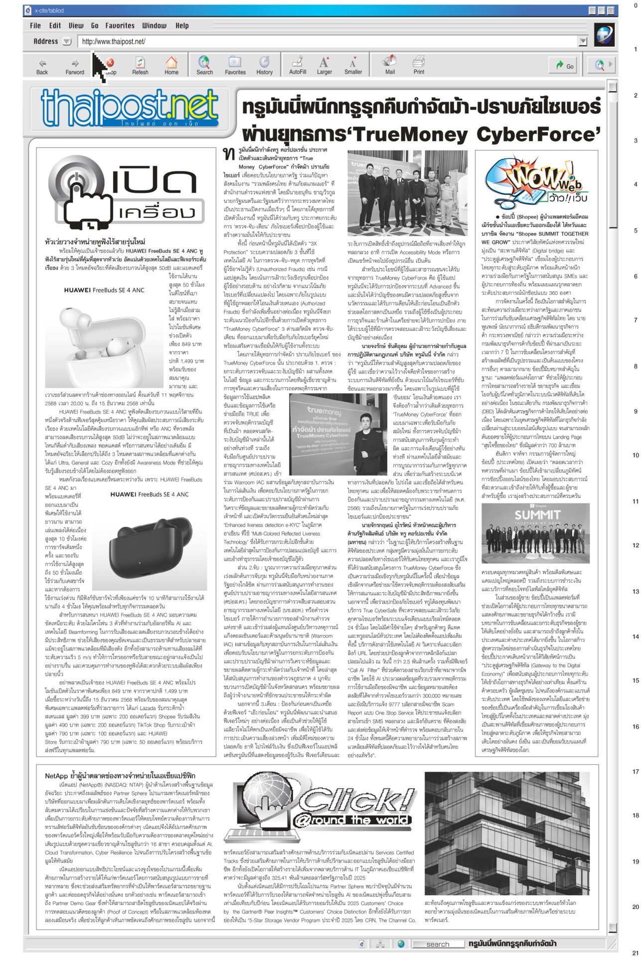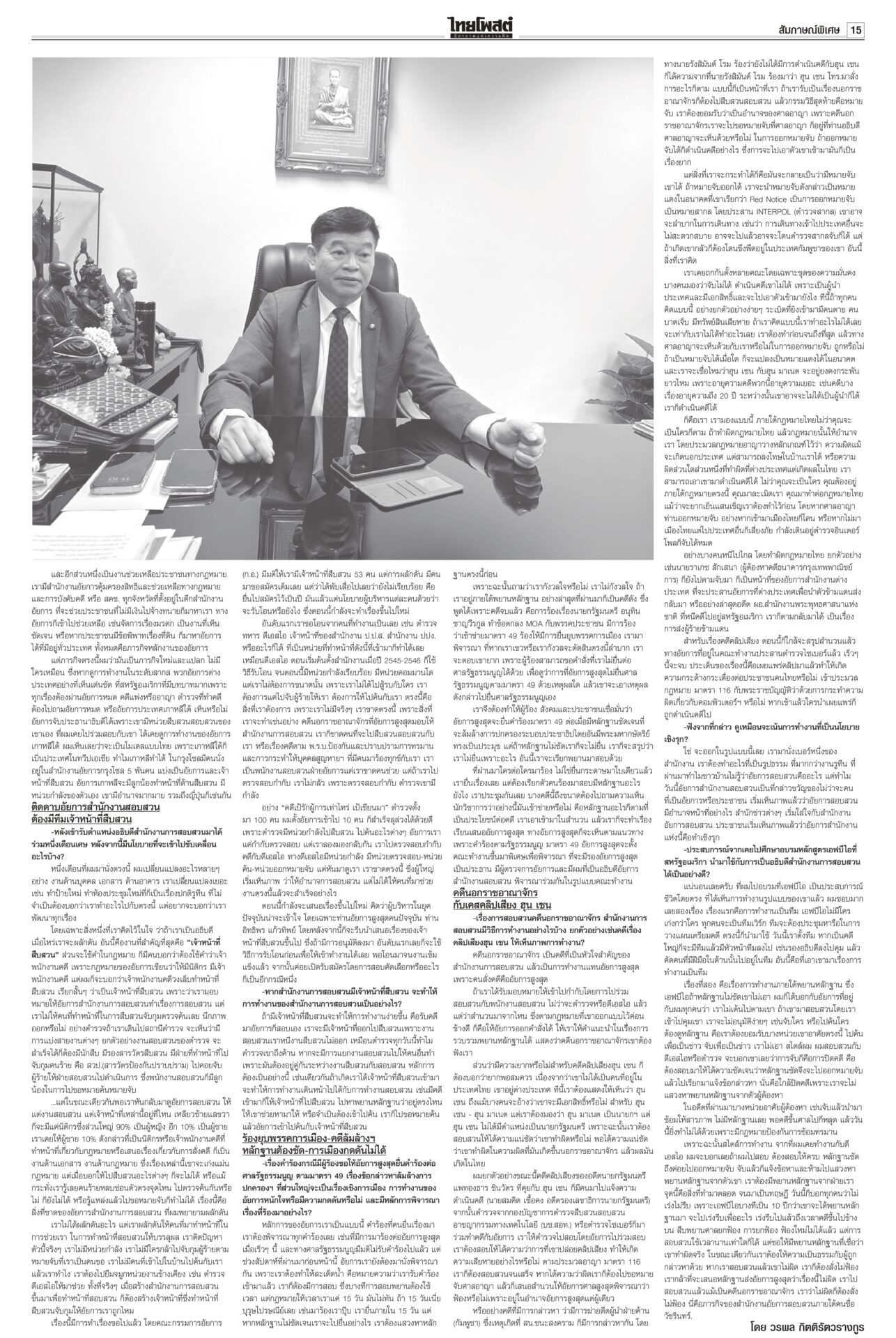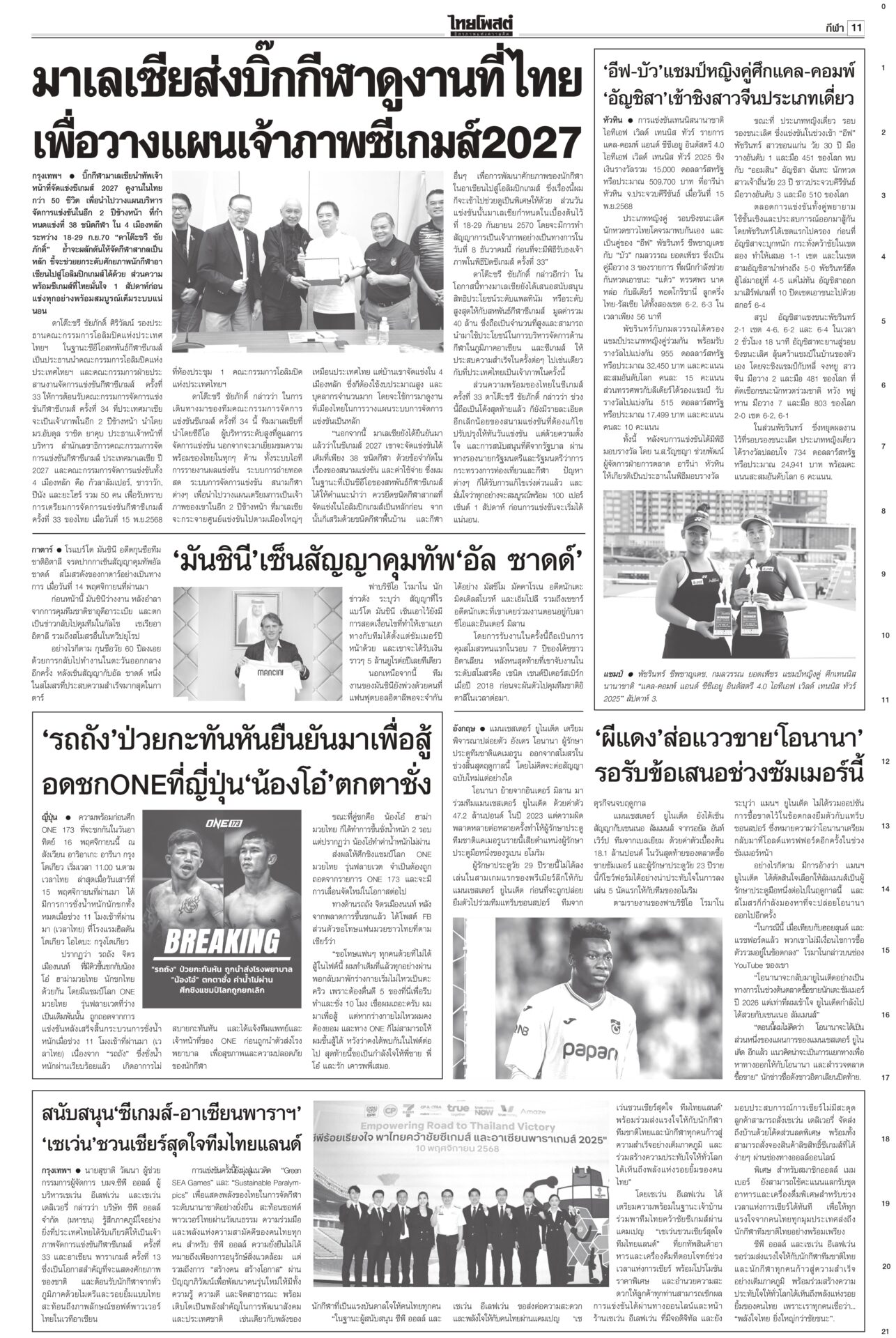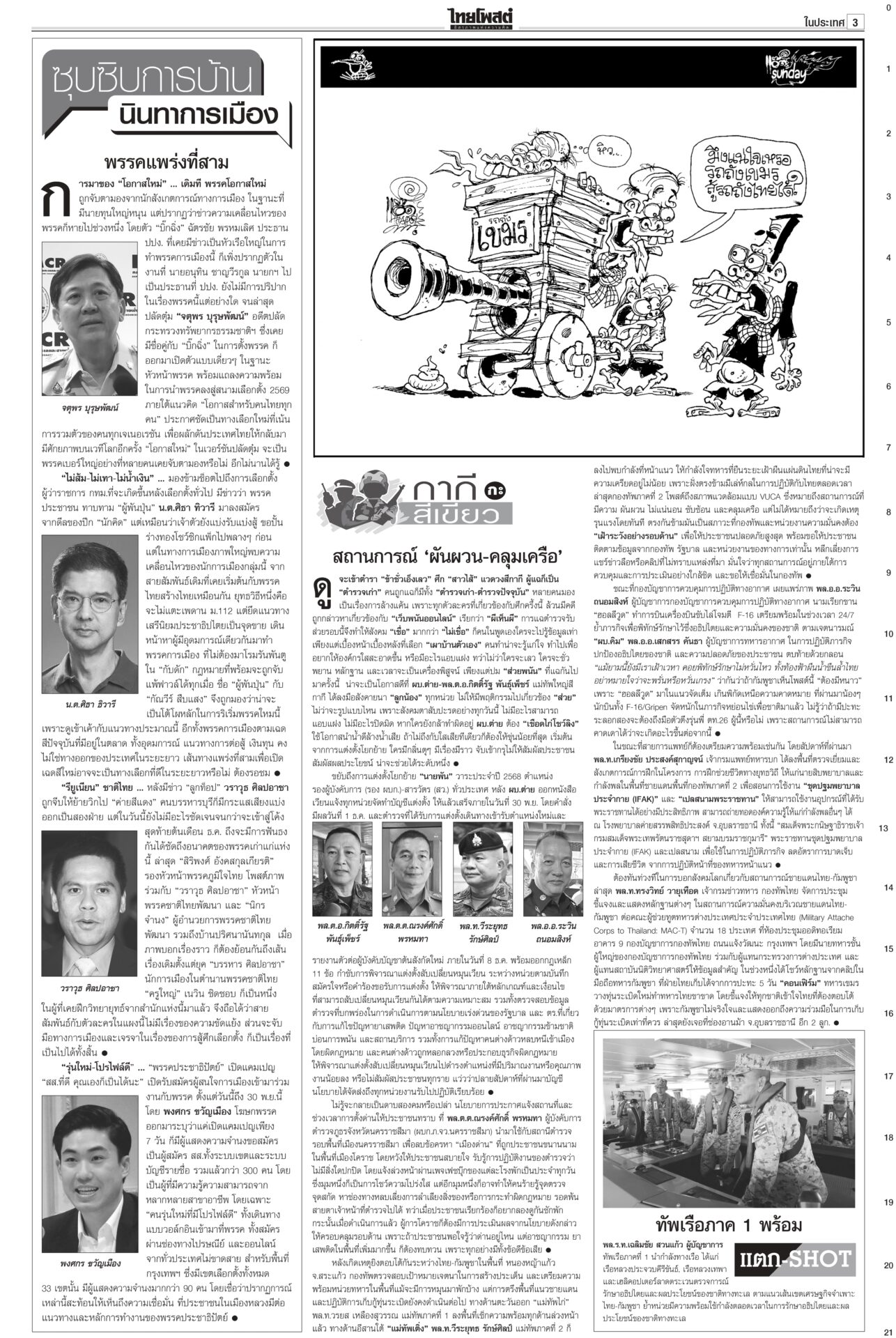 หนังสือพิมพ์ฉบับวันที่ 16 พฤศจิกายน 2568 ข่าวหน้าหนึ่งสหรัฐระงับดีลภาษี บีบไทยกลับสู่โต๊ะเจรจาเขมร‘อนุทิน’ยันกัมพูชาต้องขอโทษก่อนล่าอาณานิคมยุคใหม่ สหรัฐระงับการเจรจาภาษีการค้ากับไทยชั่วคราว จนกว่าฝ่ายไทยให้คำมั่นว่าจะกลับเข้าสู่โต๊ะเจรจาไทย-กัมพูชา กระทรวงการต่างประเทศผิดหวัง กสทช. เตรียมชง ‘เน็ตคนละครึ่ง’! เดือนละ 160 บาทกสทช.เตรียมชง ครม. “เน็ตคนละครึ่ง” เดือนละ 160 บาท หนุนผู้ถือบัตรสวัสดิการฯ 14 ล้านคน เข้าถึงอินเทอร์เน็ตความเร็วสูง 40 GB ต่อเดือน ต่อเนื่อง 3 เดือน คนละครึ่งคึกคักใช้จ่ายแล้ว 3.8 หมื่นล้านบาท สัมพันธ์ไทย-จีนระดับสูงสื่อยักษ์ใหญ่ของจีนรายงานการเสด็จฯ เยือนจีนของในหลวงครั้งประวัติศาสตร์ ผลักดันสัมพันธ์ทวิภาคีสู่ระดับใหม่ นักวิชาการกว่างซีชี้ความไว้วางใจทางการเมืองระหว่างจีนกับไทยอยู่ในระดับสูงมาก ‘สส.ชนนพัฒฐ์’ไปไกล รอบหน้ายึดเก้าอี้รมต.“ชนนพัฒฐ์” คิดการใหญ่ หาเสียงกับชาวบ้าน “รอบหน้าผมได้เป็นรัฐมนตรีแล้ว” จะเคลียร์ตัวเองให้จบ “อนุดิษฐ์” ตอกกลับ สส.ไม่ว่าฝ่ายรัฐบาลหรือฝ่ายค้าน ที่เคยถูกศาลชั้นต้นหรืออุทธรณ์พิพากษาจำคุก ระลึก ‘ฉันจะเป็นป่า’!องคมนตรีบำเพ็ญพระราชกุศลถวายพระบรมศพ “สมเด็จพระพันปีหลวง” ประชาชนน้อมสำนึกในพระมหากรุณาธิคุณ ใช้เวลาวันหยุดเข้ากราบถวายบังคมพระบรมศพอย่างต่อเนื่อง