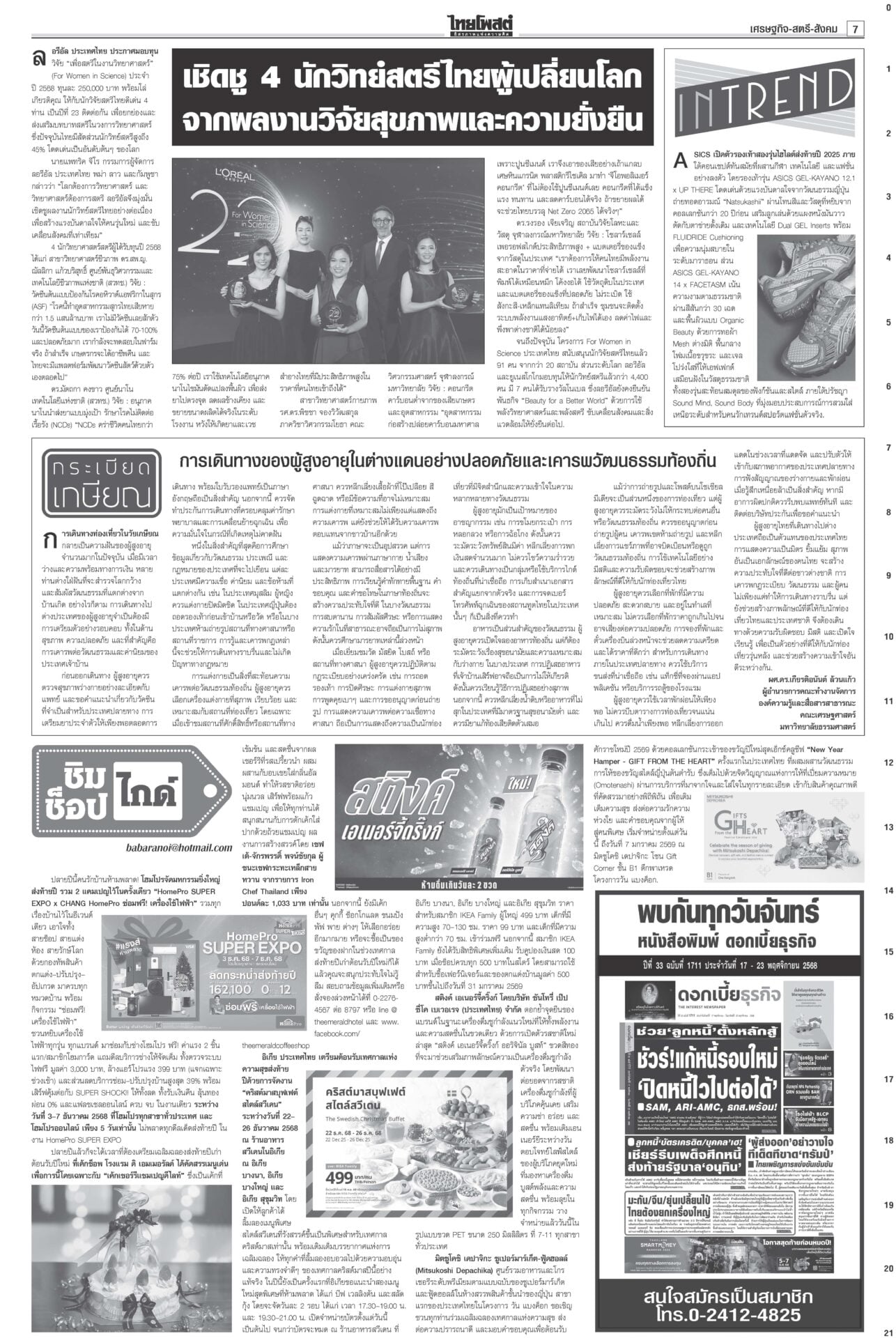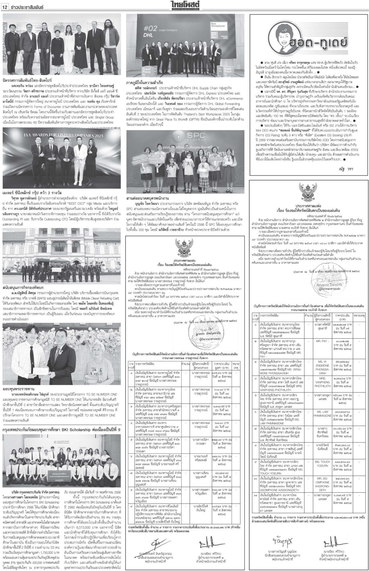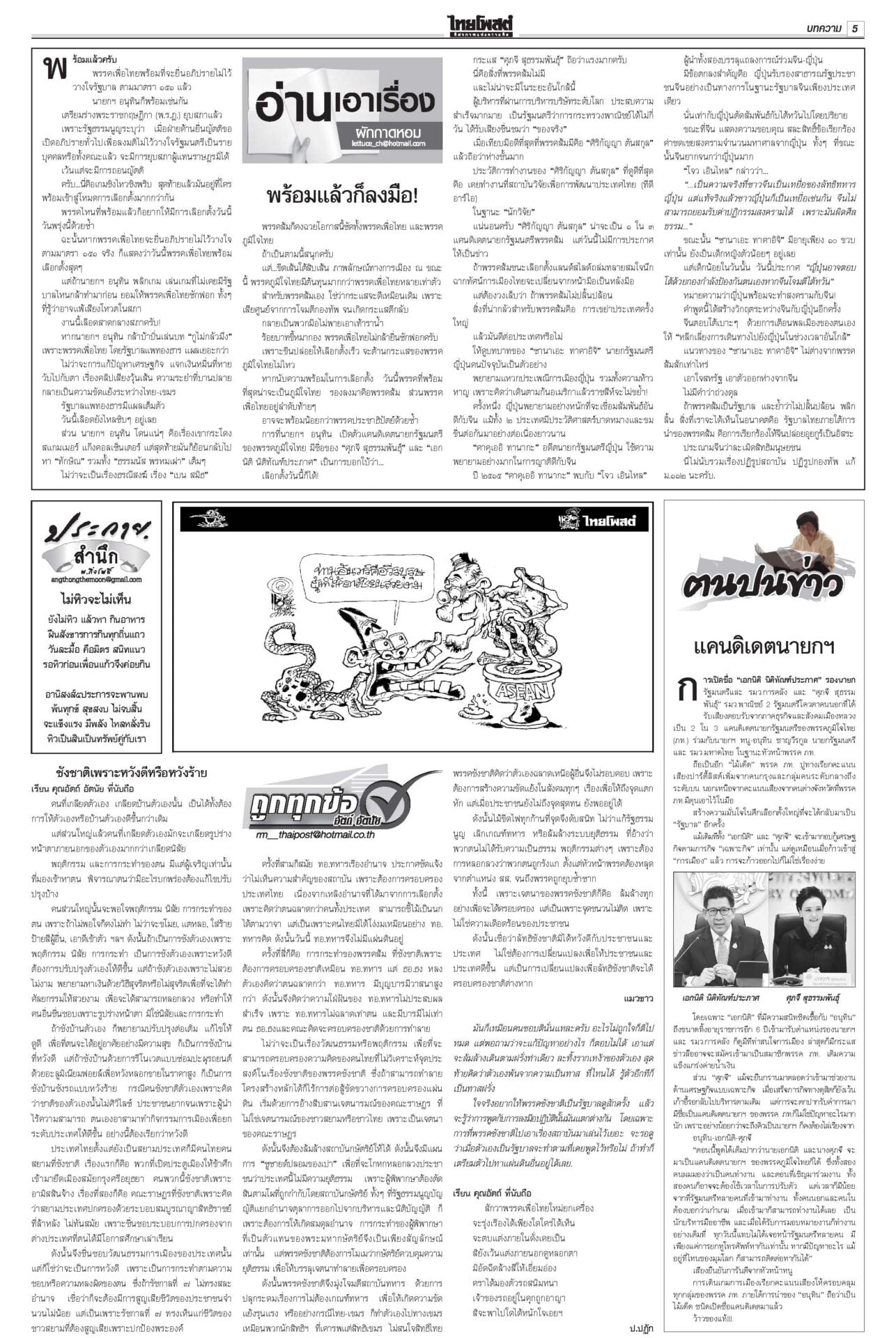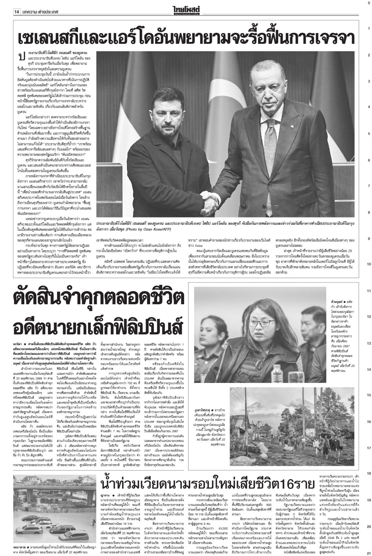 หนังสือพิมพ์ ฉบับวันที่ 21 พฤศจิกายน 2568ข่าวหน้าหนึ่ง12ธค.พร้อมยุบสภา นายกฯสารภาพเสียงข้างน้อยไปต่อไม่ได้/พท.ยังกั๊กยื่นซักฟอก“อนุทิน” รับสภาพการเมืองถึงจุดไปต่อไม่ได้ ชี้รัฐบาลเสียงข้างน้อยอภิปรายไม่ไว้วางใจอย่างไรก็แพ้ ลั่นหากรอไม่ไหว 12 ธ.ค. ผู้พิการทางสมอง สำนึกพระบารมี มีที่ให้ยืนในสังคม“ม.จ.ฑิฆัมพร ยุคล” ทรงบำเพ็ญพระราชกุศลถวาย “สมเด็จพระพันปีหลวง” ฟุ้งไทยกลับเข้าสู่เรดาร์โลก คลังเบรกขึ้นVATเป็น10%“อนุทิน” ปาฐกถาพิเศษ ฟุ้งไทยกลับเข้าสู่เรดาร์โลก หลังใช้โอกาสพบผู้นำหลายประเทศ บี้เขมรรับผิดชอบป่วนAOT“นายกฯ อนุทิน” ลั่นต้องมีคนรับผิดชอบ หลังทหารกัมพูชาจุดประทัดระหว่าง AOT มาร์คชงสอบ‘อดีตรมต.เทา’ หนูโชว์ผลงาน2ยุทธการใหญ่ปราบธุรกิจสีเทาคึกคัก! “อภิสิทธิ์” ยื่น ปปง.สอบ “2 อดีต รมต.” ในรัฐบาลชุดนี้-ชุดที่ผ่านมา