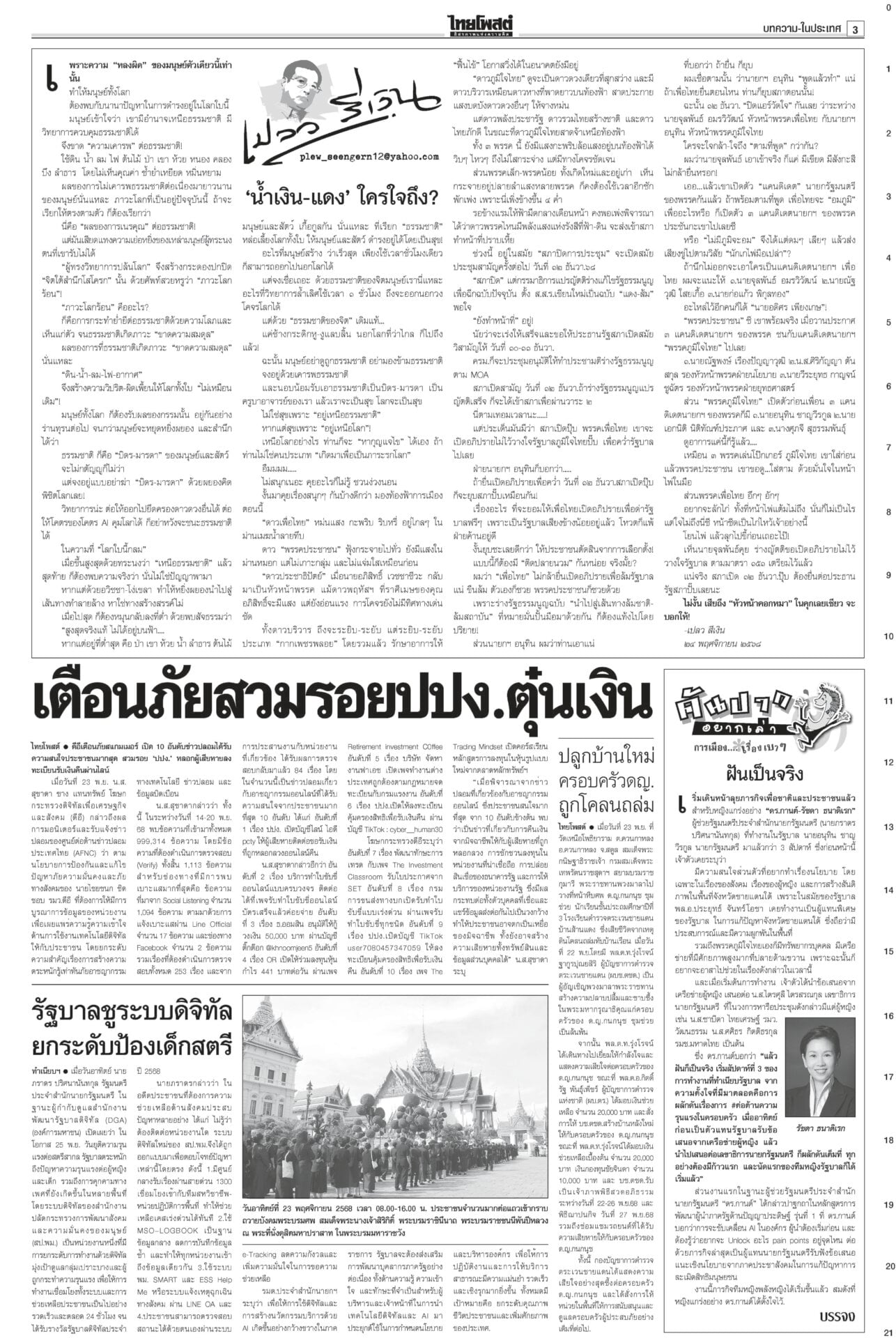 ฉบับวันที่ 24 พฤศจิกายน 2568 24 พฤศจิกายน 2568 เวลา 0:01 น. หนังสือพิมพ์ ฉบับวันที่ 24 พฤศจิกายน 2568ข่าวหน้าหนึ่งหนูกินรวบบ้านใหญ่ ให้พรรคร่วมฯฟังสัญญาณ12ธ.ค./ปชน.เปิด3แคนดิเดต“ภูมิใจไทย” คึกคักเปิดตัว “ชทพ.-บ้านใหญ่ชลบุรี-บ้านใหญ่ระยอง” เข้าซบ “อนุทิน” ฟุ้งวันประวัติศาสตร์ เร่งเยียวยาด้ามขวานจมนํ้านายกฯ ลงหาดใหญ่ซ้ำ ซับน้ำตาผู้ประสบภัย 4.6 แสนคน เปิดศูนย์พักพิง 5 จุด ส้มขายฝันแก้ปากท้อง! อนุสรณ์เผยศก.ถดถอยพรรคประชาชนชำแหละประเทศไทยแทบไม่มีชิ้นดี ซัดรัฐราชการแข็งทำให้ไทยไม่รู้อยู่ตรงไหนในเวทีโลก ‘ราชสกุล’ร่วม ‘พระพิธีธรรม’ พระพันปีหลวงกรมสมเด็จพระเทพฯ ทรงบำเพ็ญพระราชกุศลถวาย “พระพันปีหลวง” ย้าย34รายพันจีนเทา คุกจ่อสอบ‘บอสกันต์’“ยุทธนา” เตรียมถาม “บอสกันต์” หลังมีข่าวโผล่ปมห้องลับจีนเทา Tagsรายวันหนังสือพิมพ์ ข่าวที่เกี่ยวข้อง ฉบับวันที่ 5 ธันวาคม 2568 ฉบับวันที่ 4 ธันวาคม 2568 ฉบับวันที่ 3 ธันวาคม 2568 ฉบับวันที่ 2 ธันวาคม 2568 ฉบับวันที่ 1 ธันวาคม 2568 ฉบับวันที่ 30 พฤศจิกายน 2568 NEWS UPDATE 11:27 น. โอนเงินเยียวยาน้ำท่วม สำเร็จแล้ว 4.9 พันล้าน 5 แสนครัวเรือน 11:09 น. 'อโมริม' หัวเสีย 'ผีแดง' ชวดสามคะแนน แอบติงลูกทีมเก็บบอลท้ายเกมไม่ได้ 11:00 น. รัฐบาลยกเว้น 'ค่าไฟ' พ.ย. 420 ล้าน เยียวยาน้ำท่วมสงขลา 10:46 น. 'อดีตผู้พิพากษา' อธิบาย 'ปิดงานงดจ้าง' กับ 'หยุดกิจการ' เหตุข้อพิพาทแรงงาน 'ไดกิ้น ' 10:36 น. 'อนุทิน' สวน พท. ใครทำงานห่วย ยุครัฐบาลนิด-อิ๊งค์ ติดโพลอันดับ 2