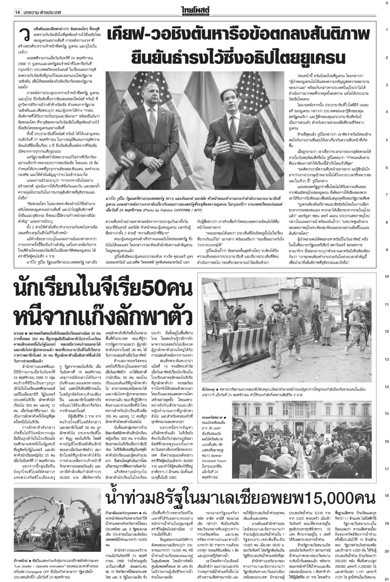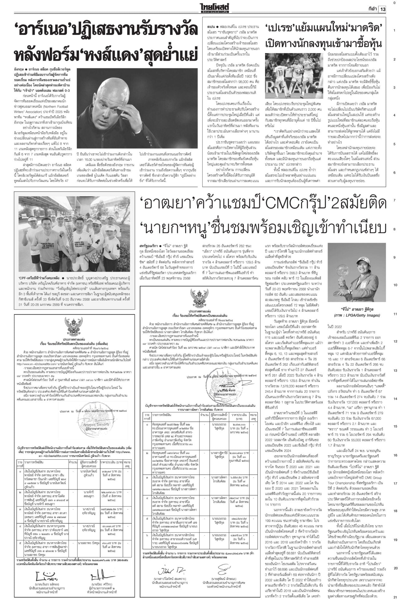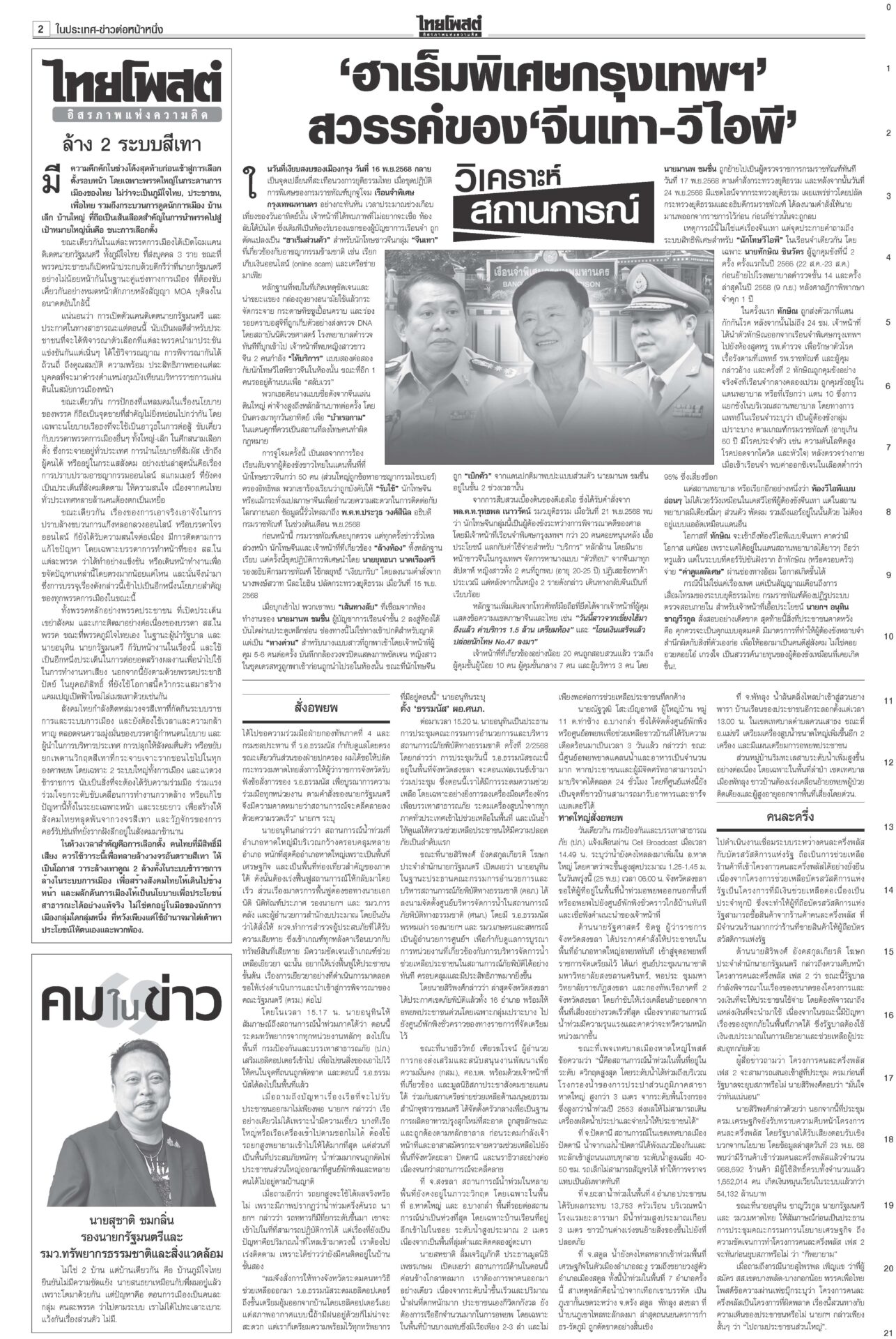 หนังสือพิมพ์ ฉบับวันที่ 25 พฤศจิกายน 2568ข่าวหน้าหนึ่งแก้รธน.ก่อนซักฟอก ‘เท้ง’เจรจา‘หนิม’รอพท.ตัดสินใจ/ประเสริฐไล่2สส.หญิง“อนุทิน” ตีมึนเรื่องให้เตรียมตัว 12 ธ.ค. “สุชาติ” ปัดนายกฯ สั่งอพยพหาดใหญ่ ‘ธรรมนัส’คุมพื้นที่“หาดใหญ่” วิกฤตหนัก ผวจ.สงขลาสั่งปิดเมืองอพยพประชาชน แพทย์แผนไทย ตั้งจุดดูแลปชช. ใน‘สนามหลวง’พระราชวงศ์ทรงบำเพ็ญพระราชกุศลถวาย “สมเด็จพระพันปีหลวง” แฉทหารเขมรขโมยลวดหนามกองทัพไทยเปิดรายงาน ผลตรวจสอบของ AOT ยืนยันทุ่นระเบิด PMN-2 ให้ออกผบ.เรือนจำ-เลขาฯ พบจนท.บางส่วนไปมาเก๊า“รมว.ยุติธรรม” ลงดาบแล้ว 2 ราย “ผบ.เรือนจำ-เลขานุการ ผบ.” ให้ออกจากราชการไว้ก่อน เซ่นคุกวีไอพี “ราชทัณฑ์” คนละครึ่งเฟส2ทันยุบสภาครม.เศรษฐกิจปลดล็อกร้านค้า “คนละครึ่งพลัส” ขายสินค้าให้ผู้ถือบัตรสวัสดิการแห่งรัฐได้