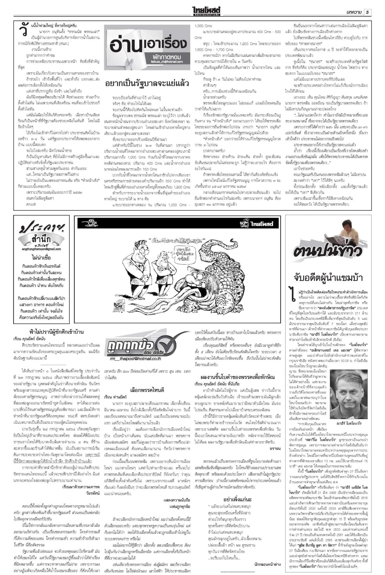 ฉบับวันที่ 25 พฤศจิกายน 2568 25 พฤศจิกายน 2568 เวลา 0:01 น. หนังสือพิมพ์ ฉบับวันที่ 25 พฤศจิกายน 2568ข่าวหน้าหนึ่งแก้รธน.ก่อนซักฟอก ‘เท้ง’เจรจา‘หนิม’รอพท.ตัดสินใจ/ประเสริฐไล่2สส.หญิง“อนุทิน” ตีมึนเรื่องให้เตรียมตัว 12 ธ.ค. “สุชาติ” ปัดนายกฯ สั่งอพยพหาดใหญ่ ‘ธรรมนัส’คุมพื้นที่“หาดใหญ่” วิกฤตหนัก ผวจ.สงขลาสั่งปิดเมืองอพยพประชาชน แพทย์แผนไทย ตั้งจุดดูแลปชช. ใน‘สนามหลวง’พระราชวงศ์ทรงบำเพ็ญพระราชกุศลถวาย “สมเด็จพระพันปีหลวง” แฉทหารเขมรขโมยลวดหนามกองทัพไทยเปิดรายงาน ผลตรวจสอบของ AOT ยืนยันทุ่นระเบิด PMN-2 ให้ออกผบ.เรือนจำ-เลขาฯ พบจนท.บางส่วนไปมาเก๊า“รมว.ยุติธรรม” ลงดาบแล้ว 2 ราย “ผบ.เรือนจำ-เลขานุการ ผบ.” ให้ออกจากราชการไว้ก่อน เซ่นคุกวีไอพี “ราชทัณฑ์” คนละครึ่งเฟส2ทันยุบสภาครม.เศรษฐกิจปลดล็อกร้านค้า “คนละครึ่งพลัส” ขายสินค้าให้ผู้ถือบัตรสวัสดิการแห่งรัฐได้ Tagsรายวันหนังสือพิมพ์ ข่าวที่เกี่ยวข้อง ฉบับวันที่ 5 ธันวาคม 2568 ฉบับวันที่ 4 ธันวาคม 2568 ฉบับวันที่ 3 ธันวาคม 2568 ฉบับวันที่ 2 ธันวาคม 2568 ฉบับวันที่ 1 ธันวาคม 2568 ฉบับวันที่ 30 พฤศจิกายน 2568 NEWS UPDATE 11:27 น. โอนเงินเยียวยาน้ำท่วม สำเร็จแล้ว 4.9 พันล้าน 5 แสนครัวเรือน 11:09 น. 'อโมริม' หัวเสีย 'ผีแดง' ชวดสามคะแนน แอบติงลูกทีมเก็บบอลท้ายเกมไม่ได้ 11:00 น. รัฐบาลยกเว้น 'ค่าไฟ' พ.ย. 420 ล้าน เยียวยาน้ำท่วมสงขลา 10:46 น. 'อดีตผู้พิพากษา' อธิบาย 'ปิดงานงดจ้าง' กับ 'หยุดกิจการ' เหตุข้อพิพาทแรงงาน 'ไดกิ้น ' 10:36 น. 'อนุทิน' สวน พท. ใครทำงานห่วย ยุครัฐบาลนิด-อิ๊งค์ ติดโพลอันดับ 2