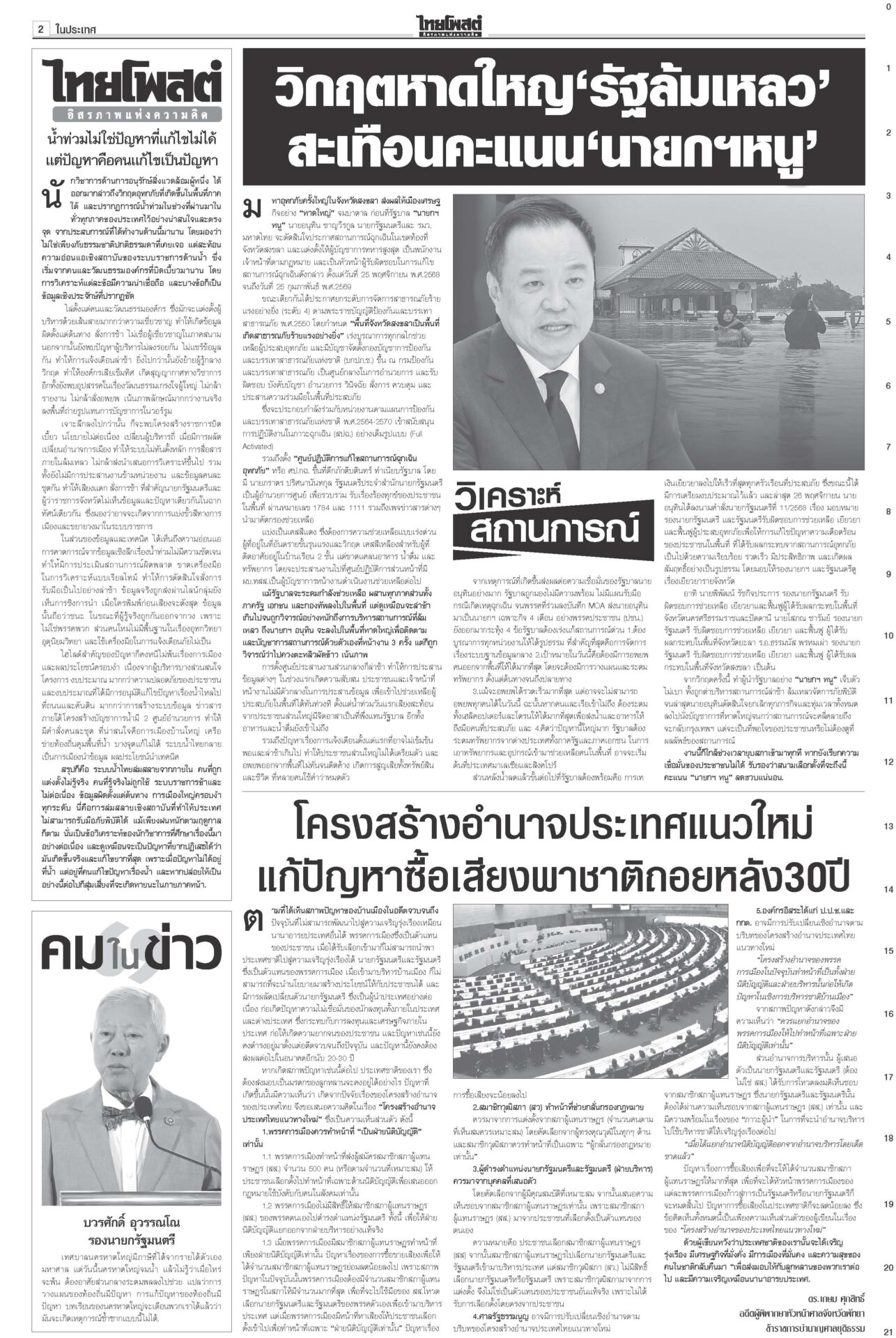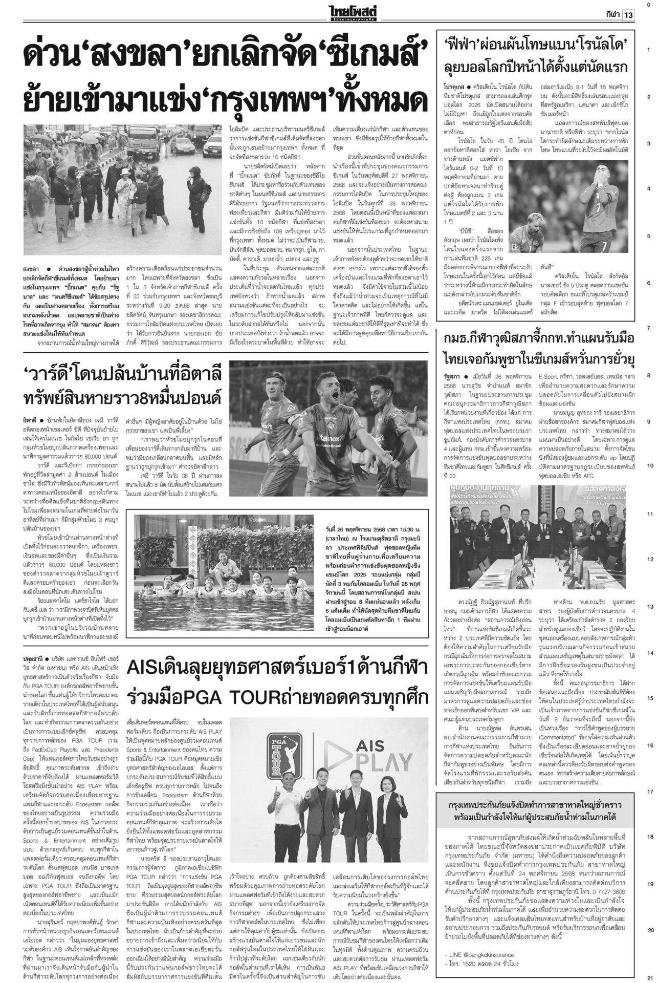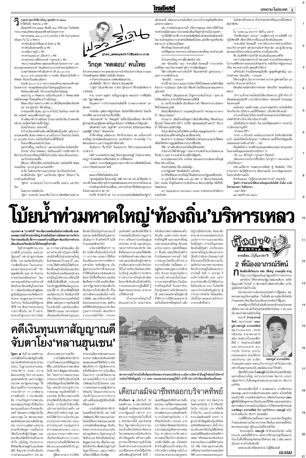 หนังสือพิมพ์ ฉบับวันที่ 27 พฤศจิกายน 2568ข่าวหน้าหนึ่งจัดทัพครม.ช่วยใต้ แบ่ง4โซนกู้หาดใหญ่ คร่า33ศพอพยพ9พันนายกฯ เซ็นคำสั่งแบ่งงาน “รัฐมนตรี” คุมเยียวยาน้ำท่วมใต้รายจังหวัด กกต.พร้อมเลือกตั้ง/พท.กั๊กกมธ.แก้ รธน.เครื่องร้อน เผยได้ข้อสรุปทุกมาตรา รอเข้าวาระ 2 ปักหมุดชายแดน8.3กม. บัวแก้วซัดเขมรบิดเบือนบัวแก้วซัดเขมรยังบิดเบือน ย้ำ AOT ยันทุ่นระเบิดใหม่ “สีหศักดิ์” บินแจงภาคีออตตาวาต้น ธ.ค. แจงวางแนวหมุดชั่วคราว แจงยิบสางผบ.คุกฉาว 28พ.ย.สรุปชงรมว.ยธ.โฆษกกรมราชทัณฑ์เผยคืบหน้าปมตรวจสอบ “คุก VIP เทา” แย้มไล่กวดเอกสารลาพักร้อน “มานพ” อดีต ผบ.คุก-เอกสารการเงินปรับปรุงห้องลับใต้บันได ปชช.น้อมสำนึก พระพันปีหลวง ฟื้นซิ่นสันกำแพงกรมพระศรีสวางควัฒนฯ ทรงบำเพ็ญพระราชกุศลถวาย “สมเด็จพระพันปีหลวง”