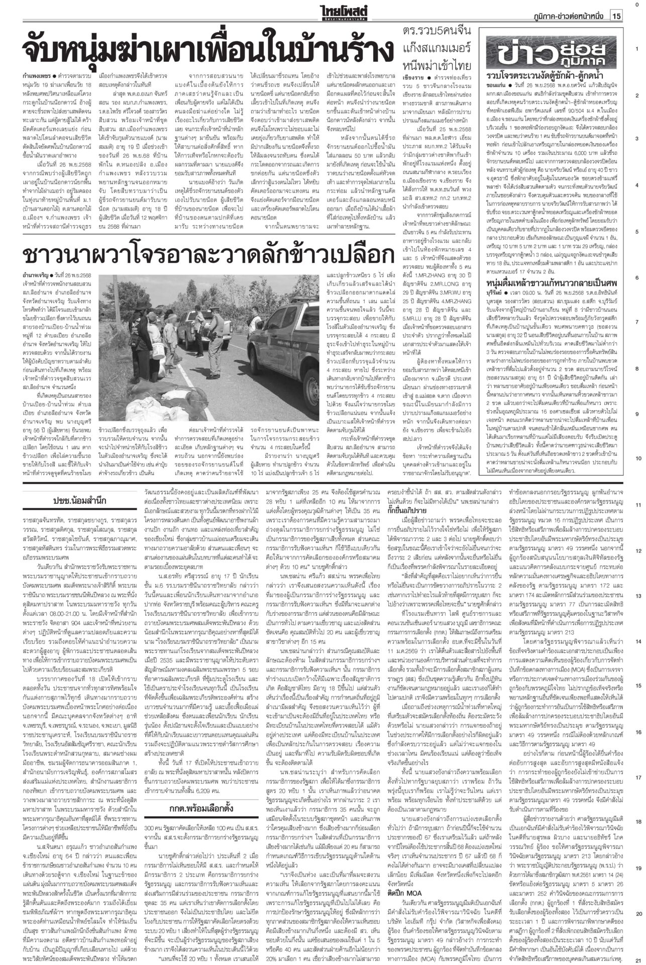 ฉบับวันที่ 27 พฤศจิกายน 2568 27 พฤศจิกายน 2568 เวลา 0:01 น. หนังสือพิมพ์ ฉบับวันที่ 27 พฤศจิกายน 2568ข่าวหน้าหนึ่งจัดทัพครม.ช่วยใต้ แบ่ง4โซนกู้หาดใหญ่ คร่า33ศพอพยพ9พันนายกฯ เซ็นคำสั่งแบ่งงาน “รัฐมนตรี” คุมเยียวยาน้ำท่วมใต้รายจังหวัด กกต.พร้อมเลือกตั้ง/พท.กั๊กกมธ.แก้ รธน.เครื่องร้อน เผยได้ข้อสรุปทุกมาตรา รอเข้าวาระ 2 ปักหมุดชายแดน8.3กม. บัวแก้วซัดเขมรบิดเบือนบัวแก้วซัดเขมรยังบิดเบือน ย้ำ AOT ยันทุ่นระเบิดใหม่ “สีหศักดิ์” บินแจงภาคีออตตาวาต้น ธ.ค. แจงวางแนวหมุดชั่วคราว แจงยิบสางผบ.คุกฉาว 28พ.ย.สรุปชงรมว.ยธ.โฆษกกรมราชทัณฑ์เผยคืบหน้าปมตรวจสอบ “คุก VIP เทา” แย้มไล่กวดเอกสารลาพักร้อน “มานพ” อดีต ผบ.คุก-เอกสารการเงินปรับปรุงห้องลับใต้บันได ปชช.น้อมสำนึก พระพันปีหลวง ฟื้นซิ่นสันกำแพงกรมพระศรีสวางควัฒนฯ ทรงบำเพ็ญพระราชกุศลถวาย “สมเด็จพระพันปีหลวง” Tagsรายวันหนังสือพิมพ์ ข่าวที่เกี่ยวข้อง ฉบับวันที่ 5 ธันวาคม 2568 ฉบับวันที่ 4 ธันวาคม 2568 ฉบับวันที่ 3 ธันวาคม 2568 ฉบับวันที่ 2 ธันวาคม 2568 ฉบับวันที่ 1 ธันวาคม 2568 ฉบับวันที่ 30 พฤศจิกายน 2568 NEWS UPDATE 10:46 น. 'อดีตผู้พิพากษา' อธิบาย 'ปิดงานงดจ้าง' กับ 'หยุดกิจการ' เหตุข้อพิพาทแรงงาน 'ไดกิ้น ' 10:36 น. 'อนุทิน' สวน พท. ใครทำงานห่วย ยุครัฐบาลนิด-อิ๊งค์ ติดโพลอันดับ 2 10:06 น. ใครกล้าทำ นายกฯ โวทำงาน2เดือนปราบสแกมเมอร์ ยึดเงินหมื่นล้าน คนบอกไม่ดำเนินคดีไม่รู้เรื่อง 9:59 น. บึ้มสนั่น! หนุ่มโรงงานลอบทำพลุขายปีใหม่ พลาดเจ็บสาหัส 9:46 น. แห่กันโชว์ภูมิ! จี้เลิกหลักสูตรผู้บริหารระดับสูง ‘คอนเนคชัน=คอร์รัปชัน’