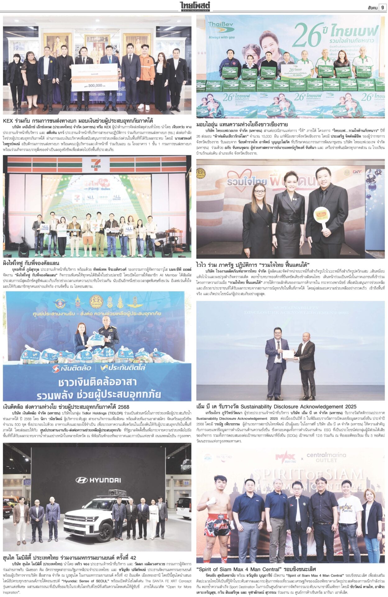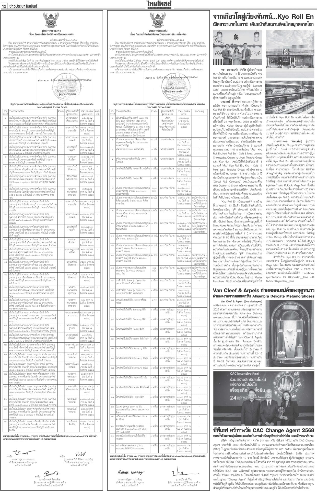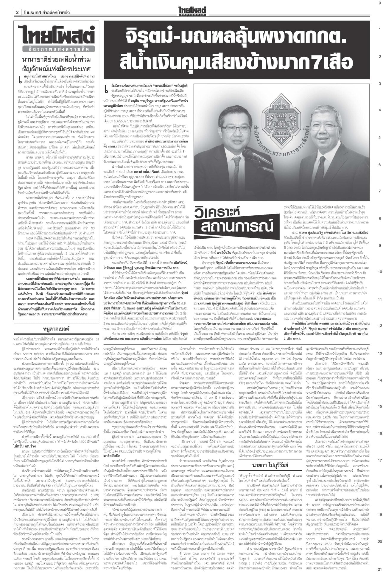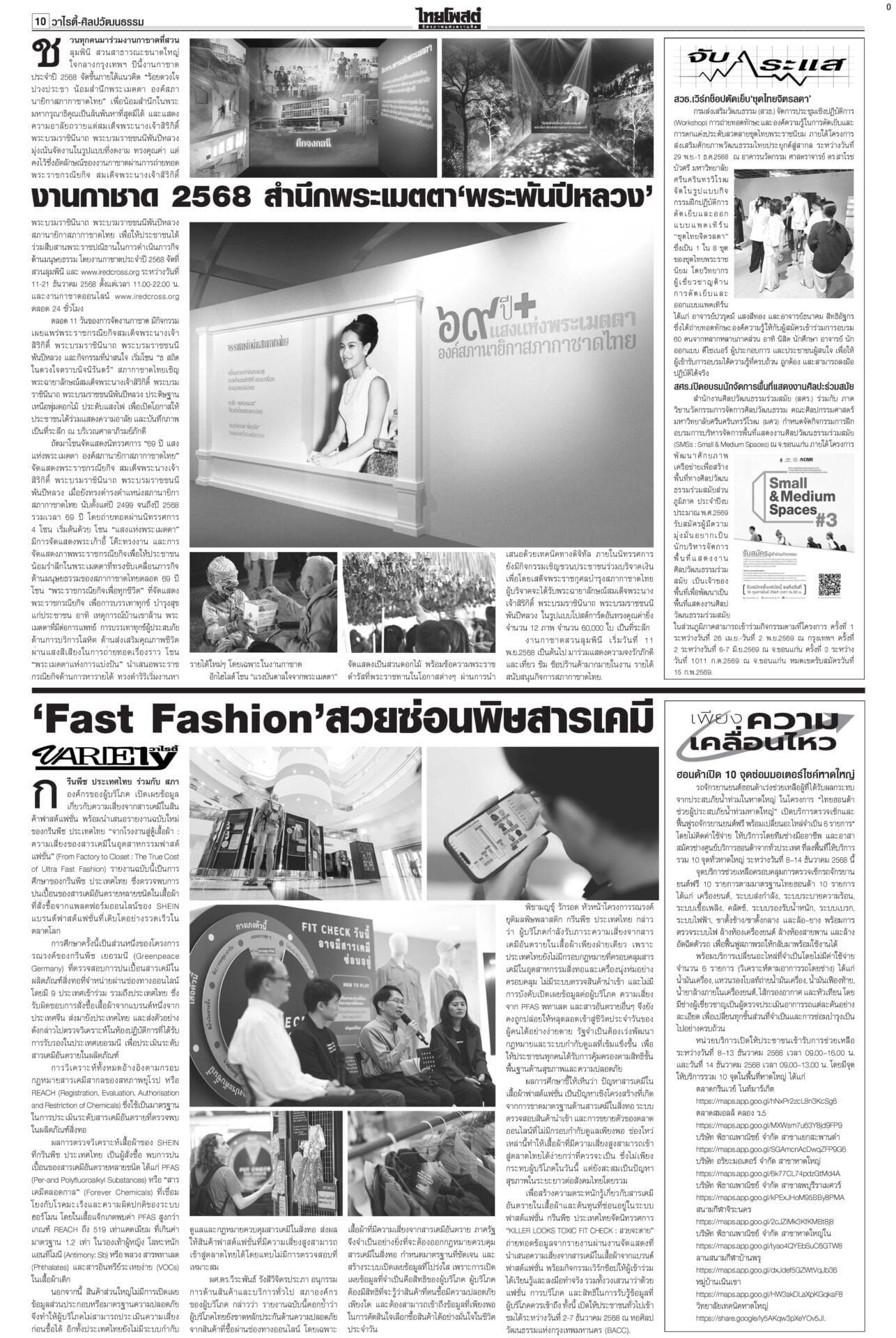 หนังสือพิมพ์ ฉบับวันที่ 4 ธันวาคม 2568ข่าวหน้าหนึ่งอนุทินถอดบทเรียน หัวโต๊ะมหาอุทกภัยขีดเส้น3เดือน/งดเก็บค่าน้ำ-ไฟหาดใหญ่“ทูตจีน” มอบเงินช่วยน้ำท่วมใต้อีกกว่า 30 ล้าน ย้ำความสัมพันธ์ไทย-จีนแน่นแฟ้น ทลายสแกมเมอร์ซี้ฮุนเซน ยึดหมื่นล.สาวบิ๊กการเมืองทลายแก๊งสแกมเมอร์ครั้งใหญ่! ปปง.ยึด-อายัดทรัพย์พุ่งกว่า 1.01 หมื่นล้าน นายกฯไปบุรีรัมย์ ขึงขังห้ามรุกลํ้า เร่งสางชายแดนนายกฯ กร้าว! ห้ามรุกล้ำย่ำยีทำลายเกียรติภูมิทำร้ายคนไทย แบบพระเมรุมาศเสร็จม.ค. สานพระราชปณิธานผ้าไทย“อธิบดีกรมศิลป์” เผยแบบก่อสร้างพระเมรุมาศ “พระพันปีหลวง” แล้วเสร็จ ม.ค.69 หนูคาดเบลต์กั๊กยุบสภา12ธ.ค.“อนุทิน” ส่งสัญญาณ 12 ธ.ค. คาดเข็มขัดนิรภัย ปัดญาติดีเพื่อไทยหลีกทางยื่นซักฟอก บอกทำงานทุกวันไม่ได้คุย ขีดเส้นอยู่ไม่เกิน 31 ม.ค.