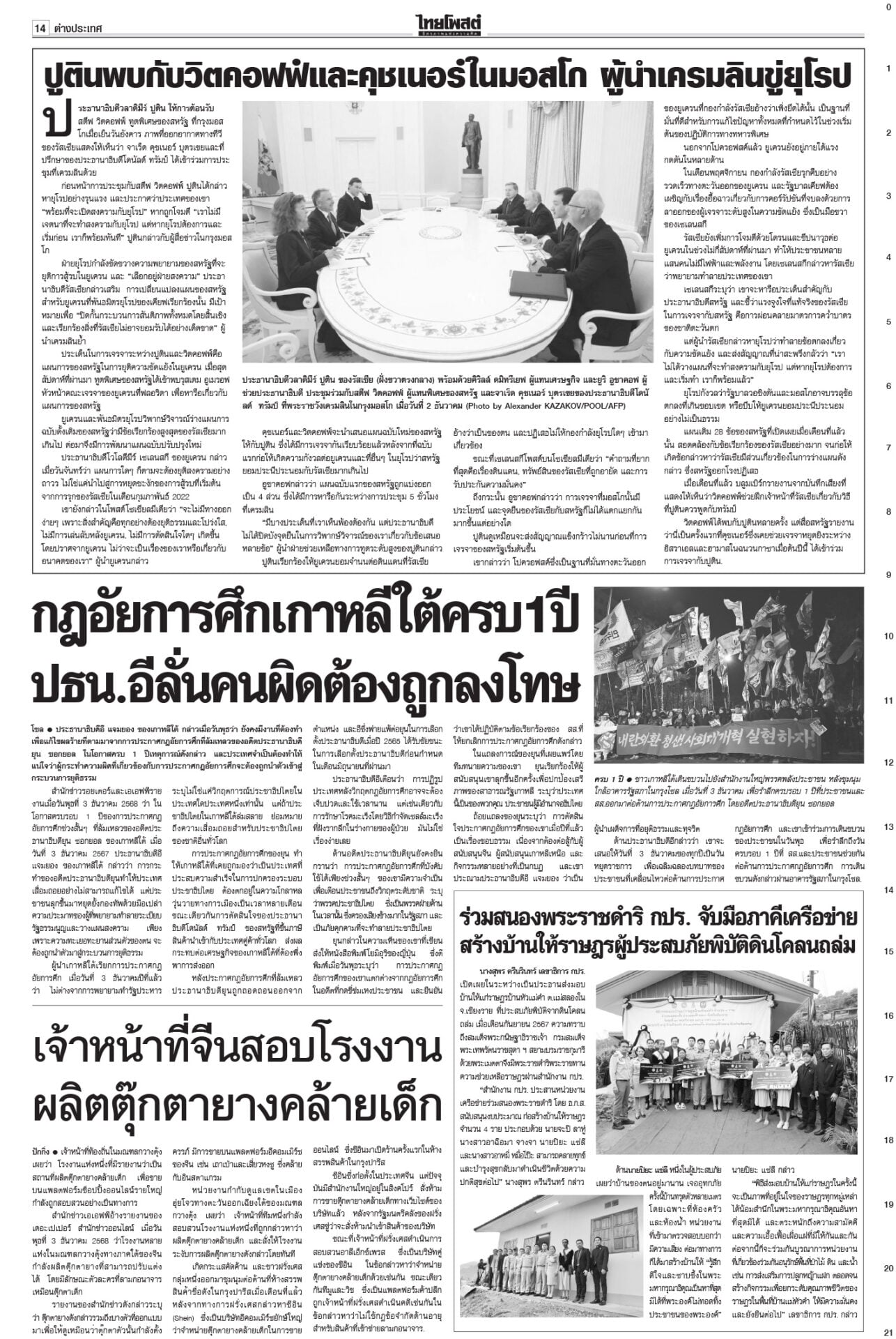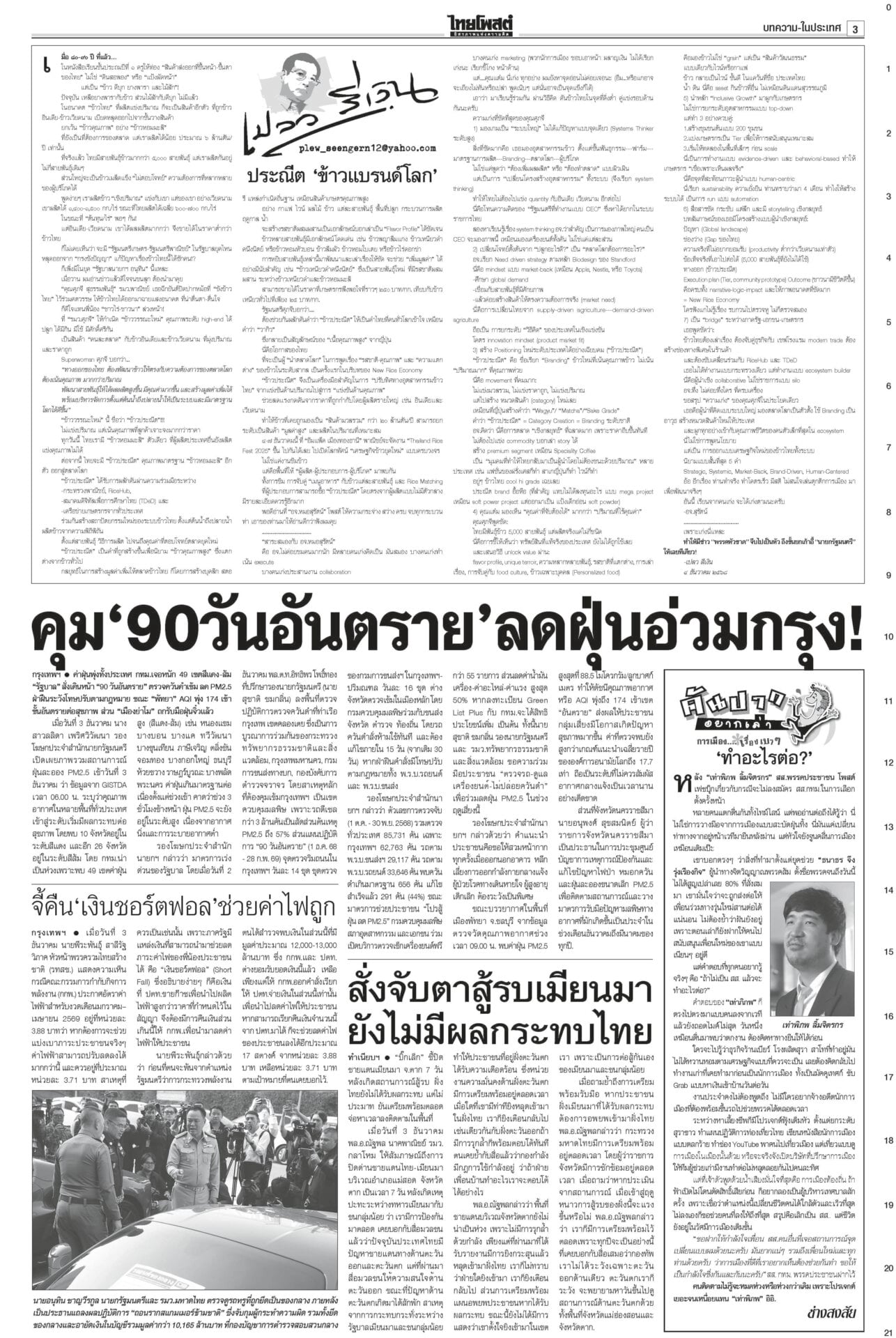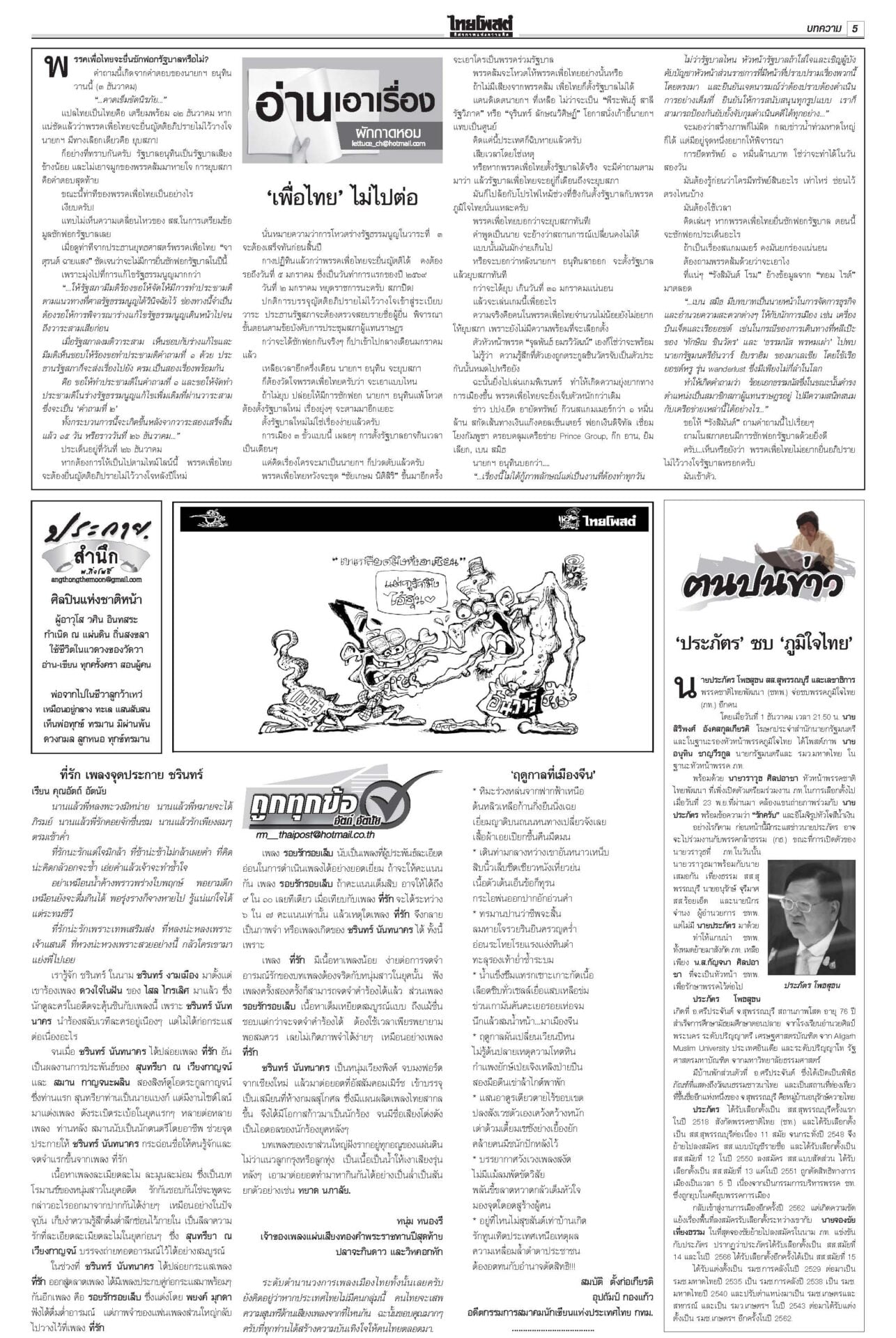 ฉบับวันที่ 4 ธันวาคม 2568 4 ธันวาคม 2568 เวลา 0:01 น. หนังสือพิมพ์ ฉบับวันที่ 4 ธันวาคม 2568ข่าวหน้าหนึ่งอนุทินถอดบทเรียน หัวโต๊ะมหาอุทกภัยขีดเส้น3เดือน/งดเก็บค่าน้ำ-ไฟหาดใหญ่“ทูตจีน” มอบเงินช่วยน้ำท่วมใต้อีกกว่า 30 ล้าน ย้ำความสัมพันธ์ไทย-จีนแน่นแฟ้น ทลายสแกมเมอร์ซี้ฮุนเซน ยึดหมื่นล.สาวบิ๊กการเมืองทลายแก๊งสแกมเมอร์ครั้งใหญ่! ปปง.ยึด-อายัดทรัพย์พุ่งกว่า 1.01 หมื่นล้าน นายกฯไปบุรีรัมย์ ขึงขังห้ามรุกลํ้า เร่งสางชายแดนนายกฯ กร้าว! ห้ามรุกล้ำย่ำยีทำลายเกียรติภูมิทำร้ายคนไทย แบบพระเมรุมาศเสร็จม.ค. สานพระราชปณิธานผ้าไทย“อธิบดีกรมศิลป์” เผยแบบก่อสร้างพระเมรุมาศ “พระพันปีหลวง” แล้วเสร็จ ม.ค.69 หนูคาดเบลต์กั๊กยุบสภา12ธ.ค.“อนุทิน” ส่งสัญญาณ 12 ธ.ค. คาดเข็มขัดนิรภัย ปัดญาติดีเพื่อไทยหลีกทางยื่นซักฟอก บอกทำงานทุกวันไม่ได้คุย ขีดเส้นอยู่ไม่เกิน 31 ม.ค. Tagsรายวันหนังสือพิมพ์ ข่าวที่เกี่ยวข้อง ฉบับวันที่ 5 ธันวาคม 2568 ฉบับวันที่ 3 ธันวาคม 2568 ฉบับวันที่ 2 ธันวาคม 2568 ฉบับวันที่ 1 ธันวาคม 2568 ฉบับวันที่ 30 พฤศจิกายน 2568 ฉบับวันที่ 29 พฤศจิกายน 2568 NEWS UPDATE 10:46 น. 'อดีตผู้พิพากษา' อธิบาย 'ปิดงานงดจ้าง' กับ 'หยุดกิจการ' เหตุข้อพิพาทแรงงาน 'ไดกิ้น ' 10:36 น. 'อนุทิน' สวน พท. ใครทำงานห่วย ยุครัฐบาลนิด-อิ๊งค์ ติดโพลอันดับ 2 10:06 น. ใครกล้าทำ นายกฯ โวทำงาน2เดือนปราบสแกมเมอร์ ยึดเงินหมื่นล้าน คนบอกไม่ดำเนินคดีไม่รู้เรื่อง 9:59 น. บึ้มสนั่น! หนุ่มโรงงานลอบทำพลุขายปีใหม่ พลาดเจ็บสาหัส 9:46 น. แห่กันโชว์ภูมิ! จี้เลิกหลักสูตรผู้บริหารระดับสูง ‘คอนเนคชัน=คอร์รัปชัน’