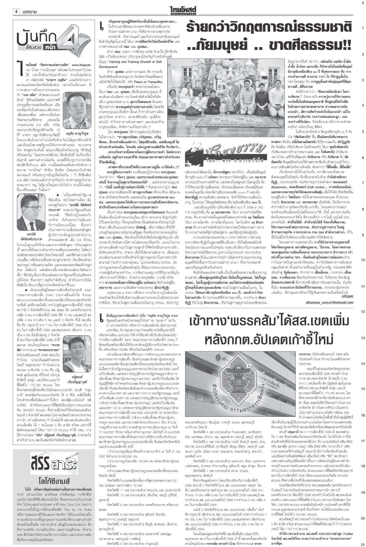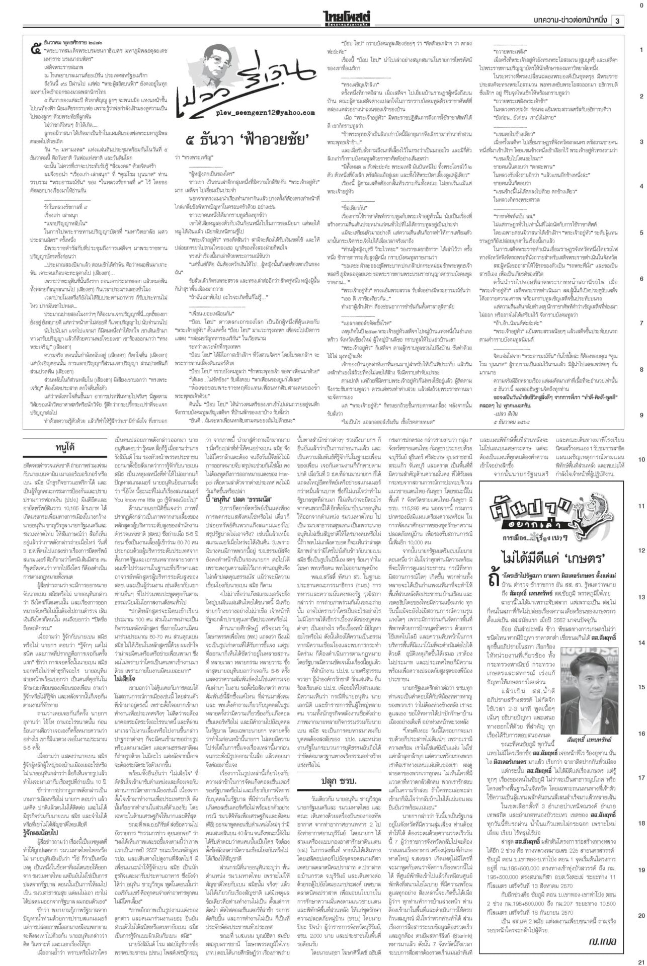 ฉบับวันที่ 5 ธันวาคม 2568 5 ธันวาคม 2568 เวลา 0:01 น. หนังสือพิมพ์ ฉบับวันที่ 5 ธันวาคม 2568ข่าวหน้าหนึ่งจ่ายศพละ2ล.อีก8จว. ขยายเยียวยานํ้าท่วมใต้ ตั้ง5อนุครบวงจรใช้ทุกที่นายกฯ ประเดิมนั่งหัวโต๊ะถอดบทเรียนรับมือมหาอุทกภัย ตั้ง 5 อนุกรรมการแก้ครบวงจร พยากรณ์-เตือนภัย-เยียวยา หนูโต้ไม่ให้สัญชาติเบนสมิธเหตุพ้นมท.1วงแตก! “อนุทิน” รับรู้จัก “เบน สมิธ” แต่ไม่สนิท ไม่มีธุรกิจร่วมกัน ปลุกชรบ.ชายแดนพร้อมรุกรบกรมพระศรีสวางควัฒนฯ พระราชทานเงิน 121,089,300 บาท เปิดสภา10ธค. แก้รธน.วาระ2 แนะโหวตต้นมค.“ปธ.วันนอร์” นัดประชุมรัฐสภา 10-11 ธ.ค. ถกแก้ รธน.วาระสอง Tagsรายวันหนังสือพิมพ์ ข่าวที่เกี่ยวข้อง ฉบับวันที่ 4 ธันวาคม 2568 ฉบับวันที่ 3 ธันวาคม 2568 ฉบับวันที่ 2 ธันวาคม 2568 ฉบับวันที่ 1 ธันวาคม 2568 ฉบับวันที่ 30 พฤศจิกายน 2568 ฉบับวันที่ 29 พฤศจิกายน 2568 NEWS UPDATE 10:46 น. 'อดีตผู้พิพากษา' อธิบาย 'ปิดงานงดจ้าง' กับ 'หยุดกิจการ' เหตุข้อพิพาทแรงงาน 'ไดกิ้น ' 10:36 น. 'อนุทิน' สวน พท. ใครทำงานห่วย ยุครัฐบาลนิด-อิ๊งค์ ติดโพลอันดับ 2 10:06 น. ใครกล้าทำ นายกฯ โวทำงาน2เดือนปราบสแกมเมอร์ ยึดเงินหมื่นล้าน คนบอกไม่ดำเนินคดีไม่รู้เรื่อง 9:59 น. บึ้มสนั่น! หนุ่มโรงงานลอบทำพลุขายปีใหม่ พลาดเจ็บสาหัส 9:46 น. แห่กันโชว์ภูมิ! จี้เลิกหลักสูตรผู้บริหารระดับสูง ‘คอนเนคชัน=คอร์รัปชัน’