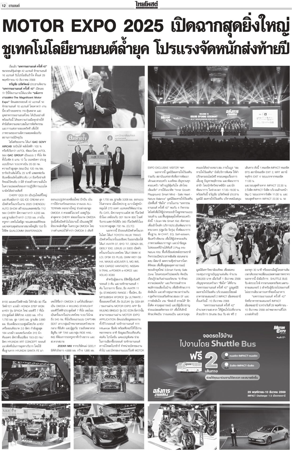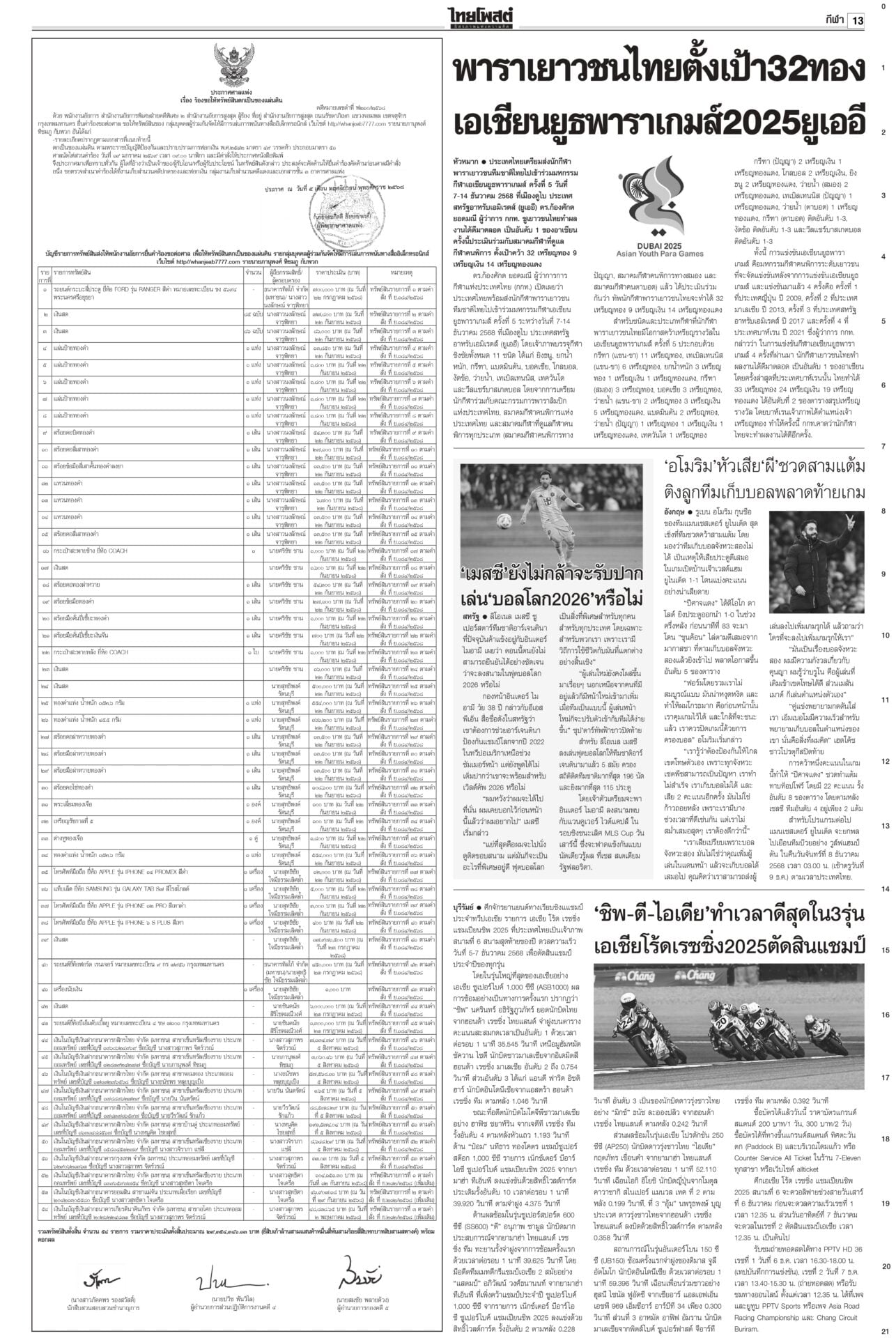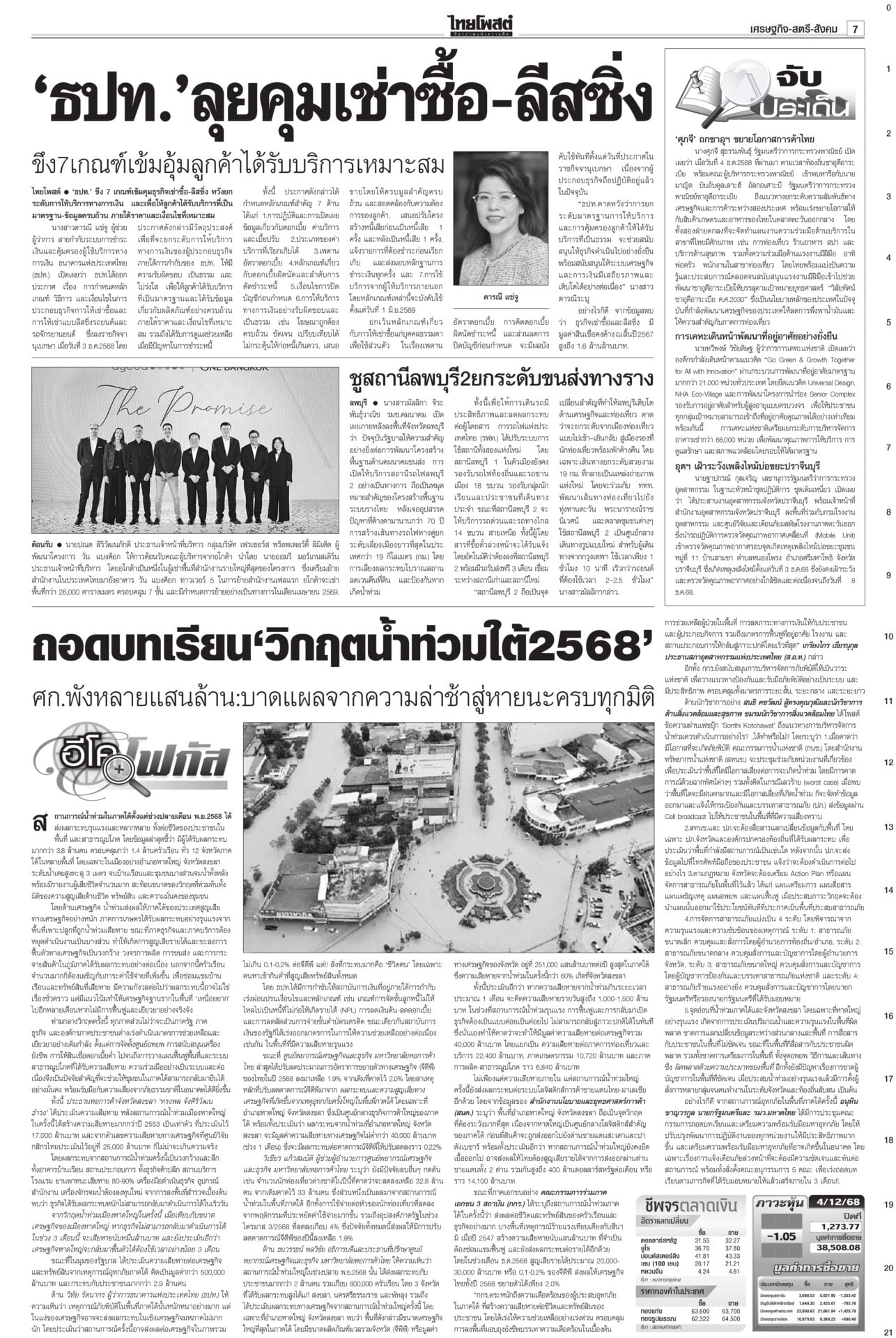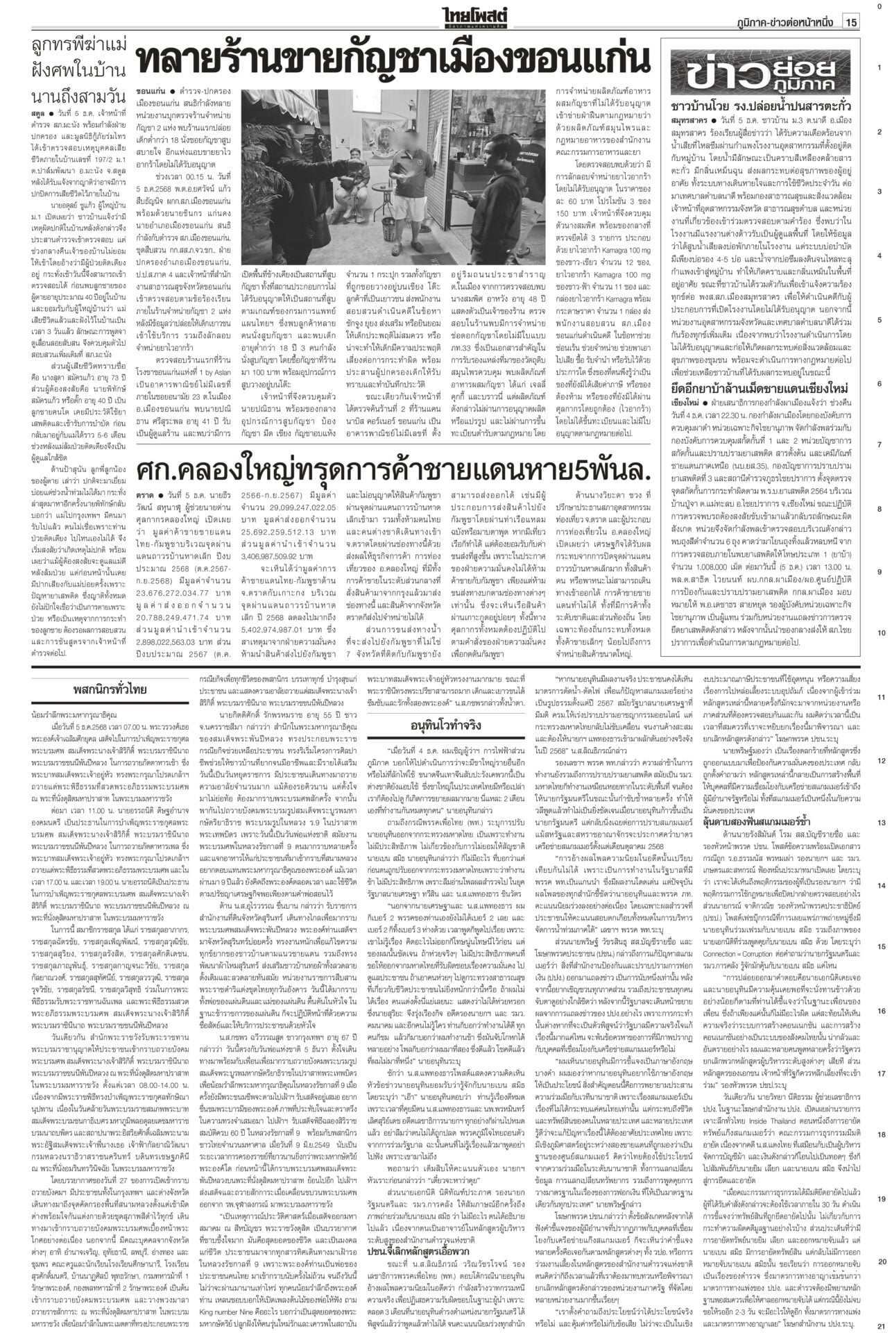 หนังสือพิมพ์ฉบับวันที่ 6 ธันวาคม 2568ข่าวหน้าหนึ่งรำลึกพ่อหลวงร.9 ในหลวง-พระราชินีทรงบำ เพ็ญพระราชกุศลทักษิณานุปทานในหลวง-พระราชินี ทรงบำเพ็ญพระราชกุศลทักษิณานุปทาน เนื่องในวันคล้ายวันพระบรมราชสมภพรัชกาลที่ 9 และสถาปนาพระอิสริยศักดิ์เฉลิมพระนามพระอัฐิสมเด็จพระเจ้าบรมวงศ์เธอ เจ้าฟ้ากัลยาณิวัฒนา กรมพระนราธิวาสราชนครินทร์ บดินทรเชษฐภคินี นายกฯยังห่วงหาดใหญ่ ประเดิมพ.ย.เว้น‘ค่าไฟ’“อนุทิน” รับยังกังวลน้ำท่วมหาดใหญ่ ขนกองทัพนักวิชาการลงพื้นที่ถอดบทเรียน นำประชาชนกลับบ้านแล้ว 90% “เท้ง” แซะบอร์ดมีไว้แค่ให้พาดหัว อนุทินโวทำจริง/ปปง.จ่อฟันอีกนายกฯ ลั่นรัฐบาลจริงจังปราบสแกมเมอร์ บอกแค่ 2 เดือนยึดอายัดทรัพย์หมื่นล้าน-เปิดชื่อเครือข่าย ถามมีใครกล้าทําหรือไม่ ตอกกลับ “เพื่อไทย” ถ้าทำงานห่วยจะให้ย้ายไปคุม พสกนิกรทั่วไทย เข้าถวายสักการะ ‘พระพันปีหลวง’พระราชวงศ์บำเพ็ญพระราชกุศลถวายพระบรมศพ พสกนิกรทุกสารทิศหลั่งไหลเข้ากราบพระบรมรูปในหลวง ร.9 และสักการะพระบรมศพ ส้มขีดเส้นโหวตก่อนปีใหม่!‘อนุทิน’ สวนเพื่อไทย ถ้าทำงานห่วย คนตั้งก็แย่สิ ยุครัฐบาล ‘อิ๊งค์ – เศรษฐา’ ผลโพลชี้ชัดนั่งแท่นอันดับ 2 ทิ้งห่าง พท. หัวเราะให้คะแนนตัวเอง ‘เดี๋ยวจะหาว่าคุย’