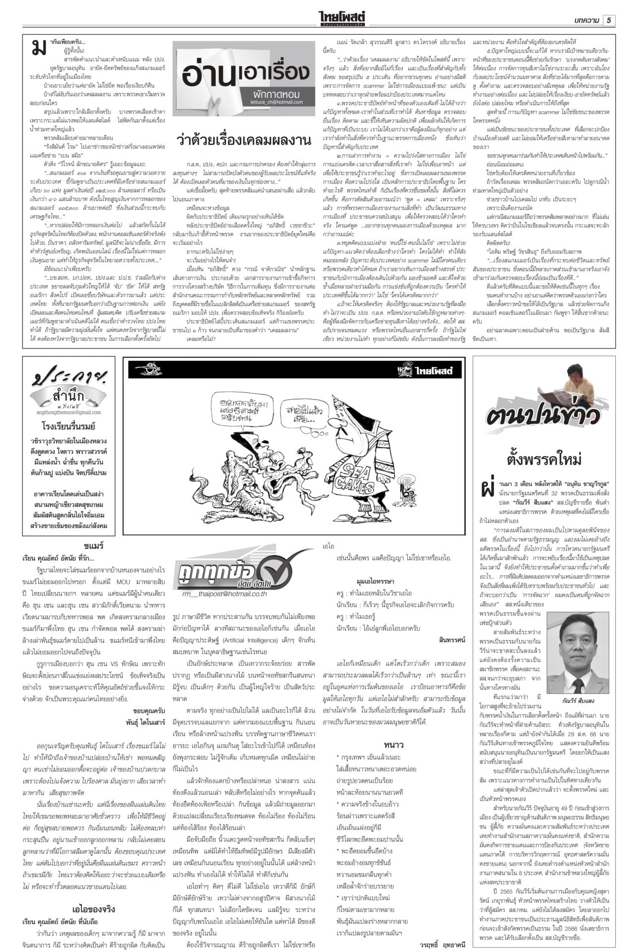 ฉบับวันที่ 6 ธันวาคม 2568 6 ธันวาคม 2568 เวลา 0:01 น. หนังสือพิมพ์ฉบับวันที่ 6 ธันวาคม 2568ข่าวหน้าหนึ่งรำลึกพ่อหลวงร.9 ในหลวง-พระราชินีทรงบำ เพ็ญพระราชกุศลทักษิณานุปทานในหลวง-พระราชินี ทรงบำเพ็ญพระราชกุศลทักษิณานุปทาน เนื่องในวันคล้ายวันพระบรมราชสมภพรัชกาลที่ 9 และสถาปนาพระอิสริยศักดิ์เฉลิมพระนามพระอัฐิสมเด็จพระเจ้าบรมวงศ์เธอ เจ้าฟ้ากัลยาณิวัฒนา กรมพระนราธิวาสราชนครินทร์ บดินทรเชษฐภคินี นายกฯยังห่วงหาดใหญ่ ประเดิมพ.ย.เว้น‘ค่าไฟ’“อนุทิน” รับยังกังวลน้ำท่วมหาดใหญ่ ขนกองทัพนักวิชาการลงพื้นที่ถอดบทเรียน นำประชาชนกลับบ้านแล้ว 90% “เท้ง” แซะบอร์ดมีไว้แค่ให้พาดหัว อนุทินโวทำจริง/ปปง.จ่อฟันอีกนายกฯ ลั่นรัฐบาลจริงจังปราบสแกมเมอร์ บอกแค่ 2 เดือนยึดอายัดทรัพย์หมื่นล้าน-เปิดชื่อเครือข่าย ถามมีใครกล้าทําหรือไม่ ตอกกลับ “เพื่อไทย” ถ้าทำงานห่วยจะให้ย้ายไปคุม พสกนิกรทั่วไทย เข้าถวายสักการะ ‘พระพันปีหลวง’พระราชวงศ์บำเพ็ญพระราชกุศลถวายพระบรมศพ พสกนิกรทุกสารทิศหลั่งไหลเข้ากราบพระบรมรูปในหลวง ร.9 และสักการะพระบรมศพ ส้มขีดเส้นโหวตก่อนปีใหม่!‘อนุทิน’ สวนเพื่อไทย ถ้าทำงานห่วย คนตั้งก็แย่สิ ยุครัฐบาล ‘อิ๊งค์ – เศรษฐา’ ผลโพลชี้ชัดนั่งแท่นอันดับ 2 ทิ้งห่าง พท. หัวเราะให้คะแนนตัวเอง ‘เดี๋ยวจะหาว่าคุย’ Tagsรายวันหนังสือพิมพ์ ข่าวที่เกี่ยวข้อง ฉบับวันที่ 5 ธันวาคม 2568 ฉบับวันที่ 4 ธันวาคม 2568 ฉบับวันที่ 3 ธันวาคม 2568 ฉบับวันที่ 2 ธันวาคม 2568 ฉบับวันที่ 1 ธันวาคม 2568 ฉบับวันที่ 30 พฤศจิกายน 2568 NEWS UPDATE 0:42 น. 'DUMB.RONG' ค่าย 'tiny' ส่งซิงเกิล 'SUNRISE' พร้อม MV สุดปั่น 0:37 น. 'เบนท์ กิตติธัช' จาก 'Kicks Records' ปล่อย 'กาฬสินธุ์ บลูส์' แนวดนตรีใหม่ที่โตขึ้น 18:43 น. ในหลวง พระราชินี ทรงบำเพ็ญพระราชกุศลทักษิณานุปทาน เนื่องในวันคล้ายวันพระบรมราชสมภพ รัชกาลที่ 9 18:12 น. เริ่มแล้ว Cat Expo Thailand 2025 วันแรก 'ทาสแมว' แห่ร่วมงานคึกคักคาดเม็ดเงินสะพัด 120 ล้านบาท 18:06 น. กรมอุตุฯ เผยพายุลูกใหม่กำลังก่อตัวบริเวณทะเลจีนใต้ตอนกลาง