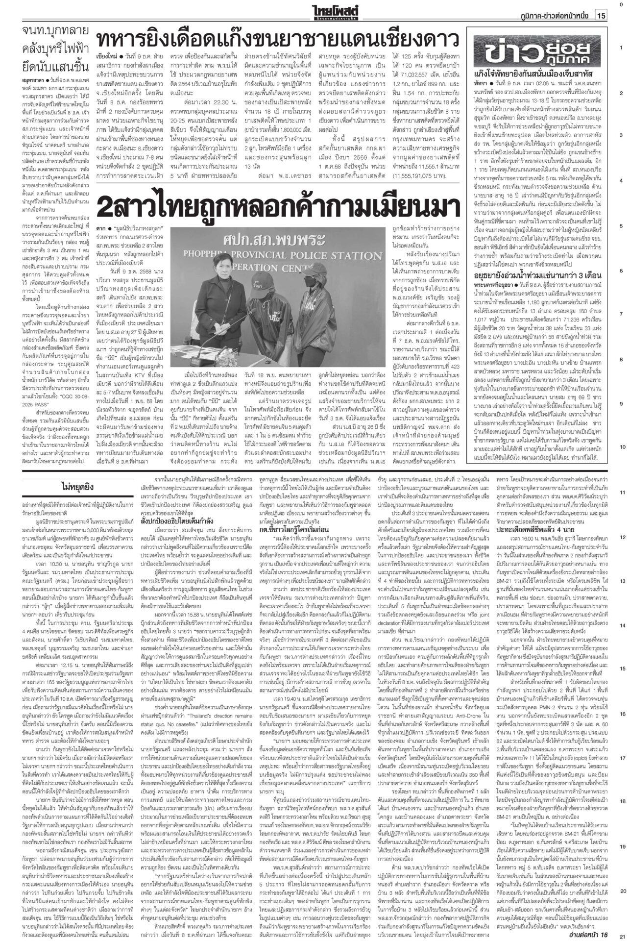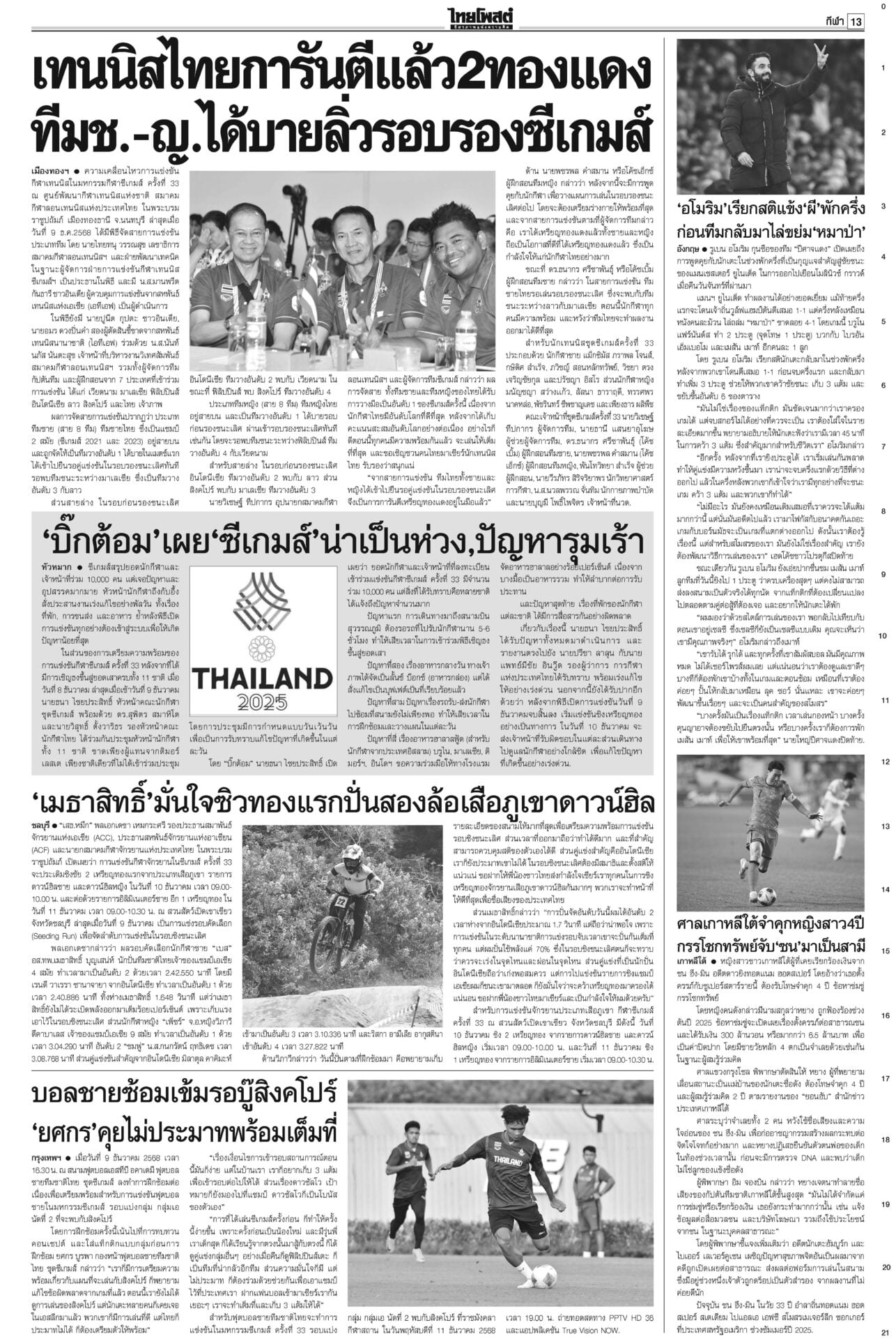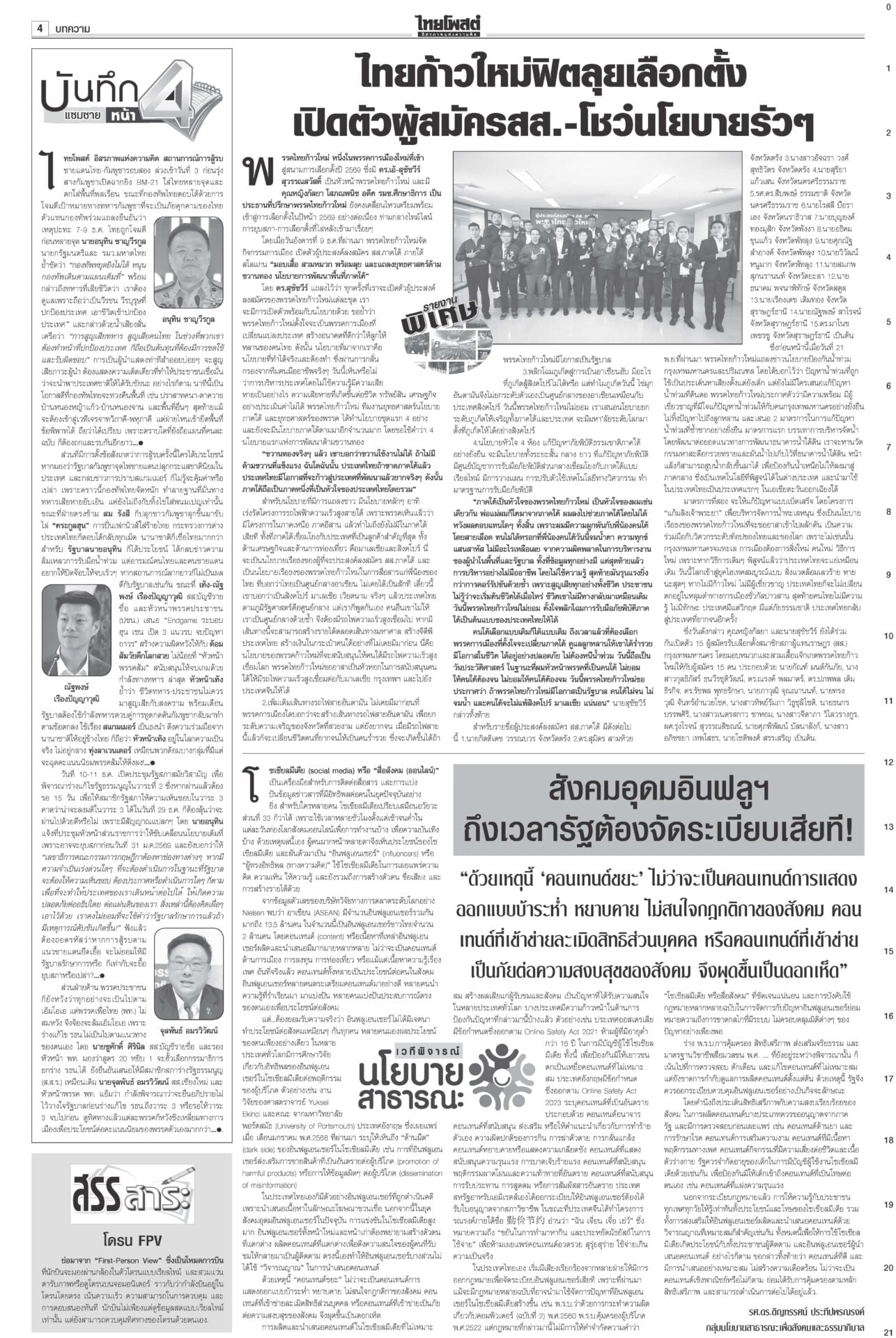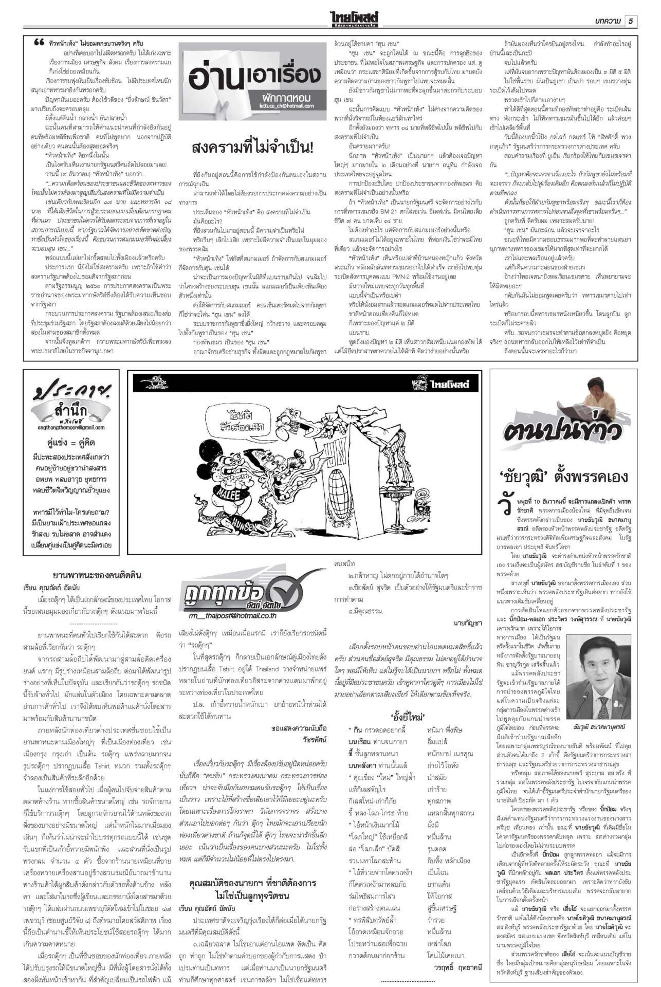 ฉบับวันที่ 10 ธันวาคม 2568 10 ธันวาคม 2568 เวลา 0:01 น. หนังสือพิมพ์ ฉบับวันที่ 10 ธันวาคม 2568ข่าวหน้าหนึ่งไม่หยุดยิงสยบเขมร ถล่มกาสิโนทำลายคลังอาวุธ/ในหลวงทรงห่วงทหารไทยพระบาทสมเด็จพระเจ้าอยู่หัว ทรงห่วงใยติดตามอาการทหารที่ได้รับบาดเจ็บจากเหตุสู้รบชายแดนไทย-กัมพูชา “นายกฯ” ชูกำปั้นบอก “สู้ๆ” หลังสื่อถามสถานการณ์ชายแดนไทย-กัมพูชา รธน.จบ‘ยุบสภา’ก่อน31ม.ค.“อนุทิน” แจ้งที่ประชุมหัวหน้าส่วนราชการนับถอยหลังยุบสภาเร็วกว่า 31 ม.ค.69 ปปช.สาวจนท.พันเบนสมิธ ธุรกิจลูกก๊กอานแค่บริษัทเก๊“เสธ.แมว” ชี้วิกฤตชายแดน ปมหนึ่งมาจากไทยฟันเครือข่ายสแกมเมอร์ “ดีเอสไอ” เผยผลสอบ 5 บริษัท “ลูกก๊ก อาน” ส่วนใหญ่เป็นเพียงบริษัทกระดาษ ‘หนู’ปราบโกง ลุยอุดช่องโหว่ ใช้กม.เด็ดขาดนายกฯ อนุทินนำปฏิญาณต่อต้านทุจริต หลัง CPI ไทยรั้งท้าย อันดับ 107 ของโลก 16ธ.ค.เคาะคนละครึ่งเฟส2“อนุทิน” ย้ำ “คนละครึ่งพลัส” เฟสสองทำแน่ ตราบใดยังมีอำนาจเต็ม “โฆษกรัฐบาล” เผยชงเข้า ครม.สัปดาห์หน้า คาดให้ 10 ล้านสิทธิ์ Tagsรายวันหนังสือพิมพ์ ข่าวที่เกี่ยวข้อง ฉบับวันที่ 14 ธันวาคม 2568 ฉบับวันที่ 14 ธันวาคม 2568 ฉบับวันที่ 13 ธันวาคม 2568 ฉบับวันที่ 12 ธันวาคม 2568 ฉบับวันที่ 11 ธันวาคม 2568 ฉบับวันที่ 9 ธันวาคม 2568 ฉบับวันที่ 8 ธันวาคม 2568 NEWS UPDATE 0:30 น. ชวนทำบุญ อิ่มใจ ร้านกาชาด กฟผ. จัดเต็มสอยดาวฉลากเบอร์ 5 ชมนิทรรศการแสงแห่งพระเมตตา สถิตย์ในใจประชานิจนิรันดร์ รำลึก’พระพันปีหลวง’ 0:01 น. เร่งเกม'เลือกตั้ง-จบศึกชายแดน' เมื่อทุกแนวรบกำลังได้เปรียบ 23:09 น. 'ฟิกเกอร์ฯ'สร้างประวัติศาสตร์ คว้า1เหรียญทอง1เงิน1ทองแดง 'ฟิกเกอร์สเก็ต'ซีเกมส์2025 22:38 น. สอยคิวไทยเชือดนิ่มลาว 3-1 เฟรม คว้าทองสนุกเกอร์ 15 แดง ทีมชาย ศึกซีเกมส์ 22:33 น. 'กรวิชญ์'ซิวเหรียญเงิน สเก็ตบอร์ดพาร์ค 'เฟรย่า'วัย12ปีได้ทองแดงหญิง