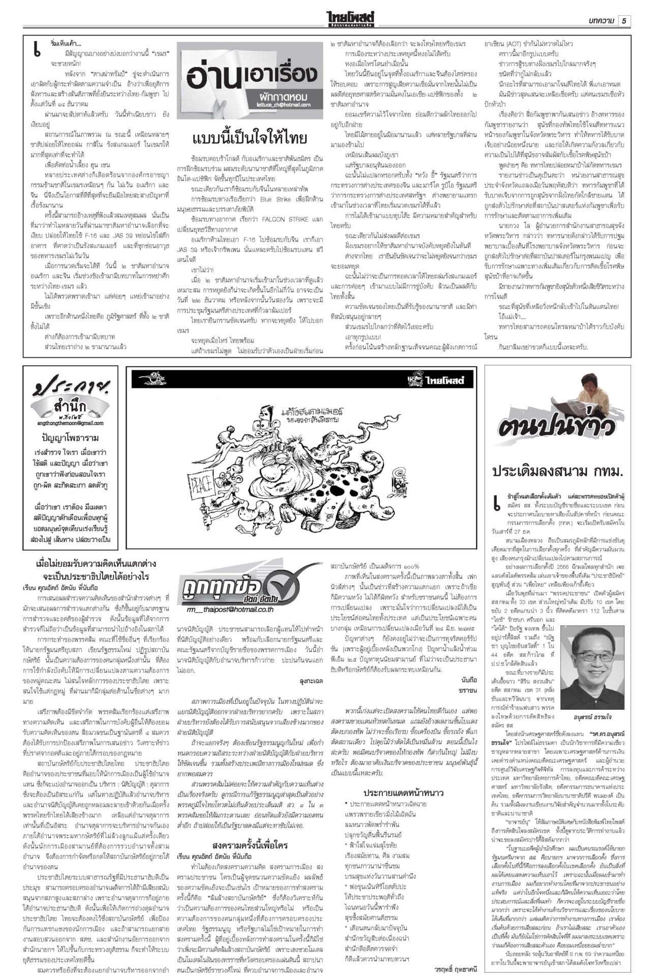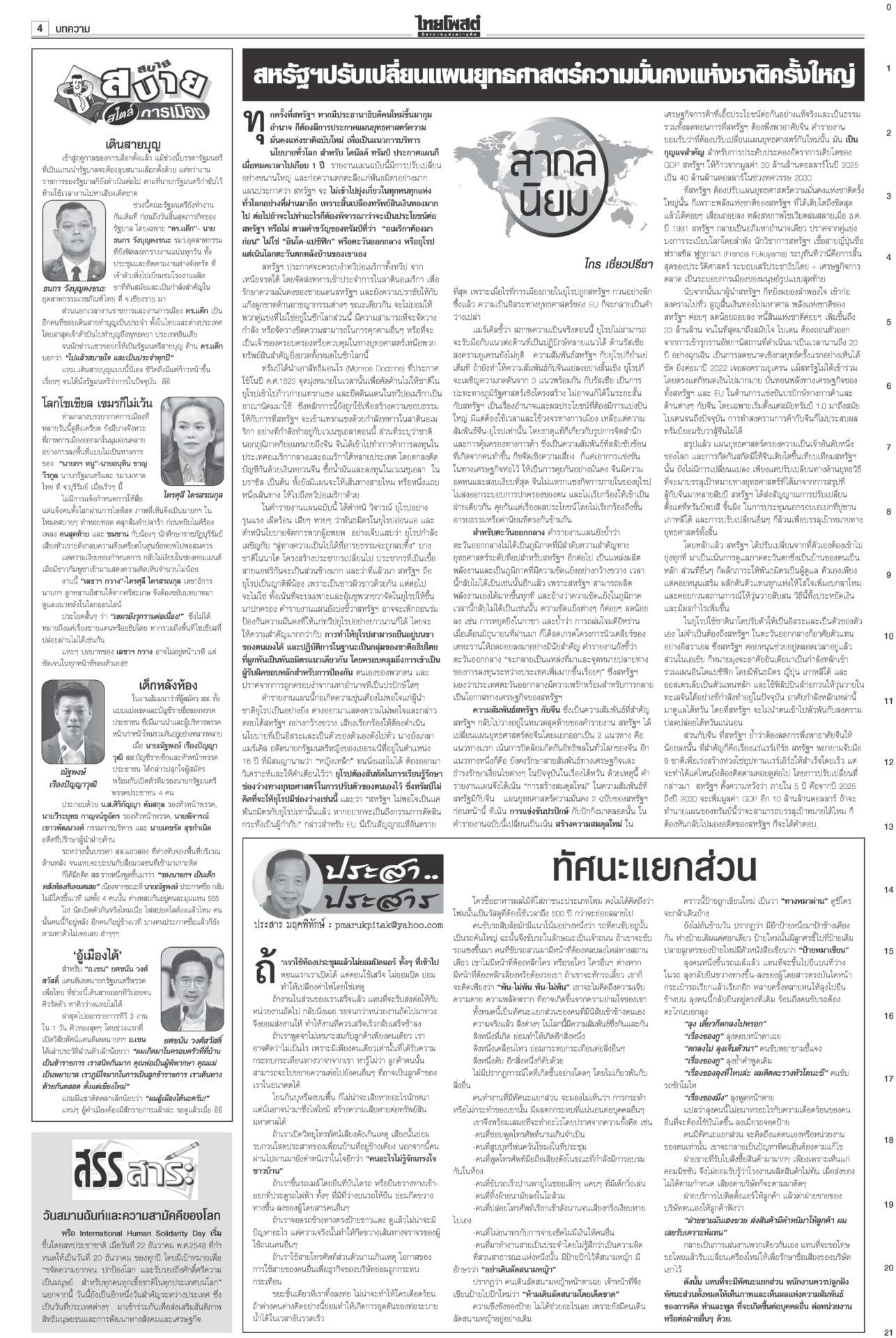 ฉบับวันที่ 20 ธันวาคม 2568 20 ธันวาคม 2568 เวลา 0:01 น. หนังสือพิมพ์ ฉบับวันที่ 20 ธันวาคม 2568ข่าวหน้าหนึ่งเขมรจ้องวินาศกรรม แท่นเจาะน้ำมัน ศรชล.สั่งคุมเข้ม เนิน350ยังระอุ!“รมว.กห.” ยอมรับ “กัมพูชา” อาจมีความพยายามก่อวินาศกรรมแท่นขุดเจาะน้ำมัน จีน-เมกาแห่หย่าศึก/ไทยยํ้ากัมพูชาหยุดก่อนสองชาติมหาอำนาจ “สหรัฐอเมริกา-จีน” ช่วงชิงเป็นตัวกลางหย่าศึกไทย-เขมร ‘ราชินี’เสด็จฯ ‘พระราชทาน’ ‘เหรียญฮอกกี้’พระราชินีพระราชทานเหรียญทองนักกีฬาฮอกกี้น้ำแข็งหญิงทีมชาติไทย ในมหกรรมซีเกมส์ ครั้งที่ 33 ‘ยธ.’จ่อคุ้ยMOUสิงคโปร์“รุทธพล” รับกำลังตรวจผลการลงนามเอ็มโอยูสแกนม่านตากับสิงคโปร์ ฝุ่นตลบ!นักเลือกตั้งย้ายพรรคเลขาฯ กกต.รับเลือกตั้งหนนี้เหนื่อยแน่นอน “อนุทิน” การันตี ถ้าชนะ “เอกนิติ-ศุภจี-สีหศักดิ์” เ Tagsรายวันหนังสือพิมพ์ ข่าวที่เกี่ยวข้อง ฉบับวันที่ 19 ธันวาคม 2568 ฉบับวันที่ 18 ธันวาคม 2568 ฉบับวันที่ 17 ธันวาคม 2568 ฉบับวันที่ 16 ธันวาคม 2568 ฉบับวันที่ 15 ธันวาคม 2568 ฉบับวันที่ 14 ธันวาคม 2568 ฉบับวันที่ 14 ธันวาคม 2568 NEWS UPDATE 1:54 น. 'ครูพนอ' กลับมาพร้อมความหลอนบทใหม่ 23:40 น. 'กรีนเวฟ' จัดทริปอบอุ่น พาขึ้นดอยโอบกอดป่า 23:31 น. บาสหญิง-ชาย 5x5 กอดคอพ่าย ฟิลิปปินส์ คว้าเหรียญเงินซีเกมส์ 23:16 น. สมาคมฮอกกี้ไทยกวาด3ทอง ทั้งฟลอร์บอลช-ญ และฮอกกี้อินดอร์ญ. 23:06 น. 'สุธาสินี' กวาด 3 ทองปิงปองซีเกมส์ หลังปราบ 'อรวรรณ' คว้าแชมป์หญิงเดี่ยว