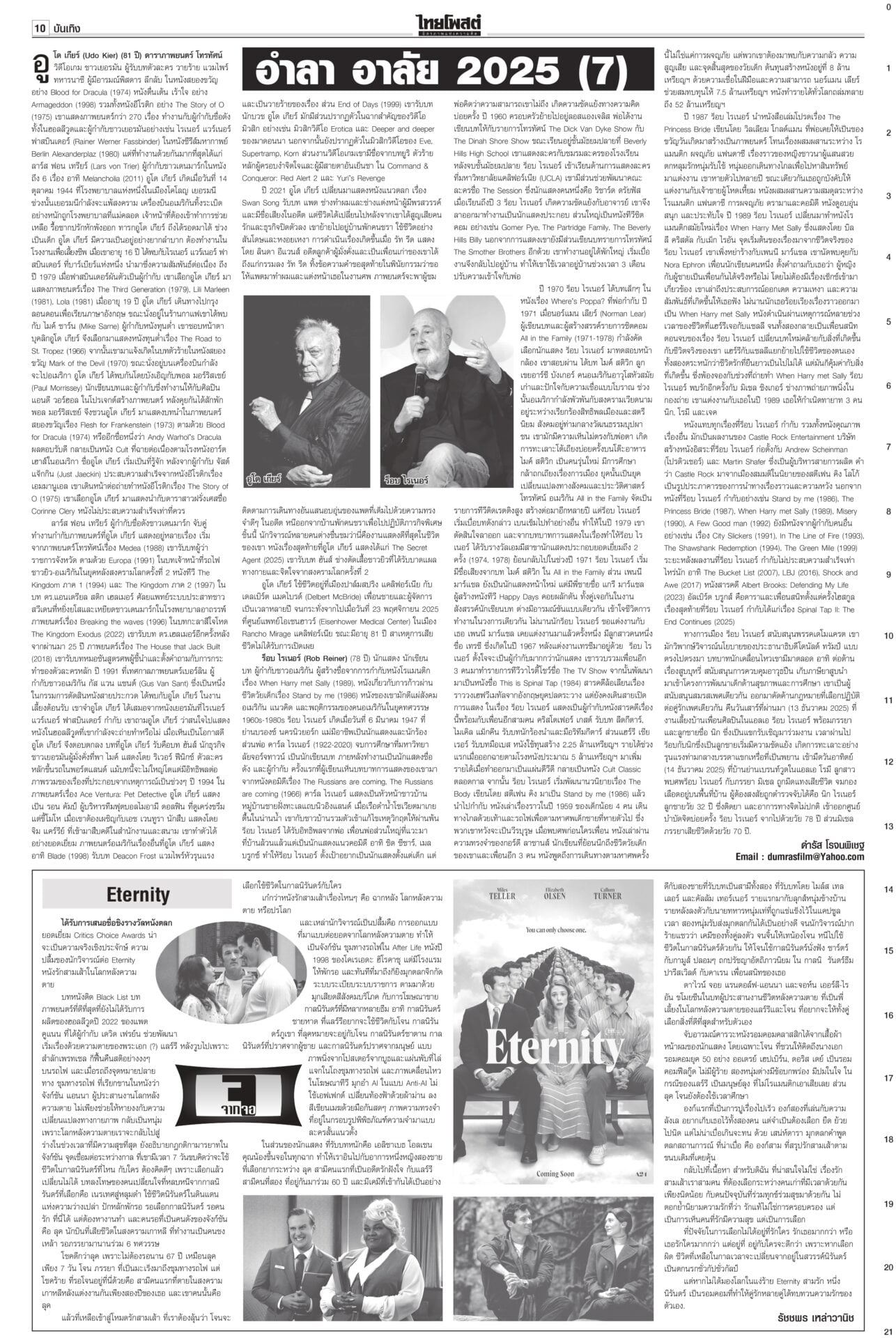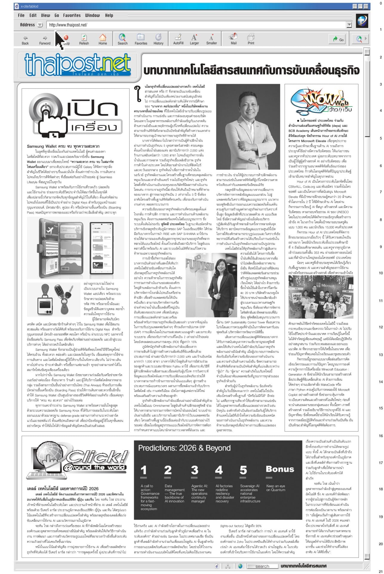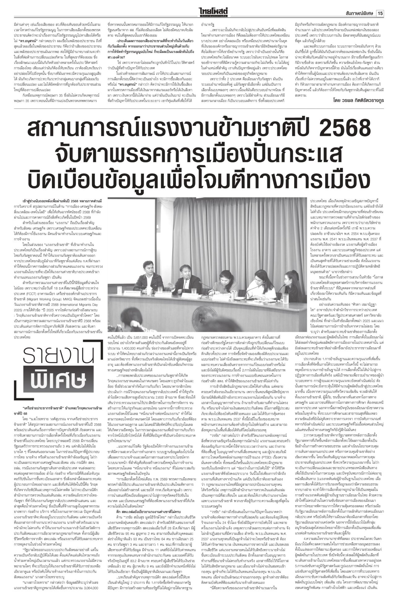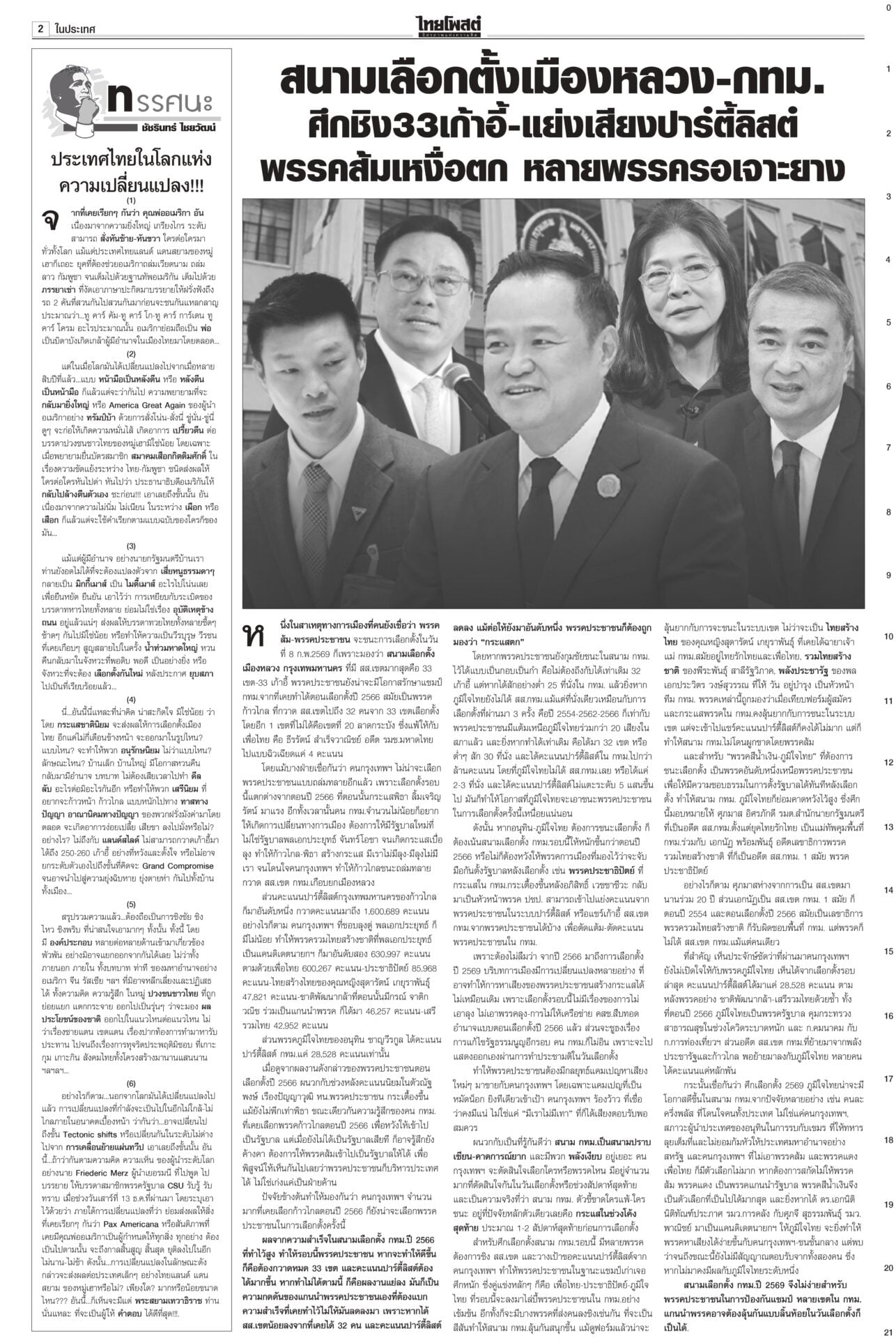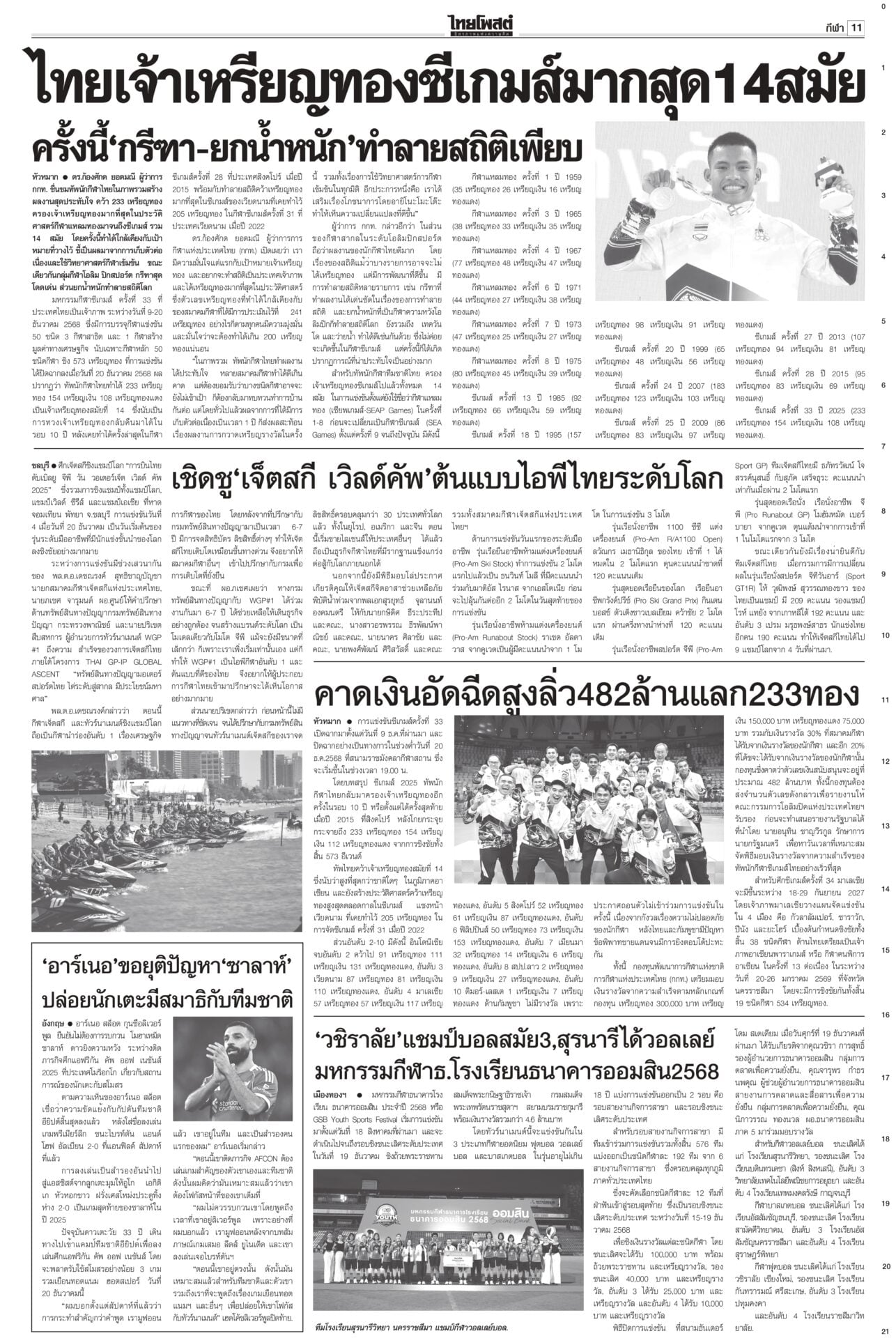หนังสือพิมพ์ฉบับวันที่ 21 ธันวาคม 2568ข่าวหน้าหนึ่งยึดเนิน350ได้แล้ว! ร่าง2ทหารกล้ากลับมาตุภูมิ/ส่งสัญญาณเตือนชนชั้นนำเขมรข่าวดี! ทหารไทยควบคุมเนิน 350 ได้แล้ว อยู่ระหว่างการสถาปนาความมั่นคง นำร่าง 2 วีรบุรุษกลับมาตุภูมิ ขณะที่กองทัพภาคที่ 2 สรุปสถานการณ์ ตรวจพบการปะทะเป็นระยะ แฉ‘สแกมเมอร์’ เล็งหลอกคนแก่ ดูดเงินในมือถือตร.เตือนภัย สแกมเมอร์พุ่งเป้าข้าราชการบำนาญ ลวงอัปเดตข้อมูล รับสิทธิ์ ติดตั้งแอปควบคุมโทรศัพท์ดูดเงิน เตือน!ใช้สิทธิประชามติ 8ก.พ.เท่านั้นไม่ล่วงหน้า“กกต.” แจงลงทะเบียนใช้สิทธินอกเขต “เลือกตั้ง สส.” ล่วงหน้า 1 ก.พ. แต่ “ประชามติ รธน.”
