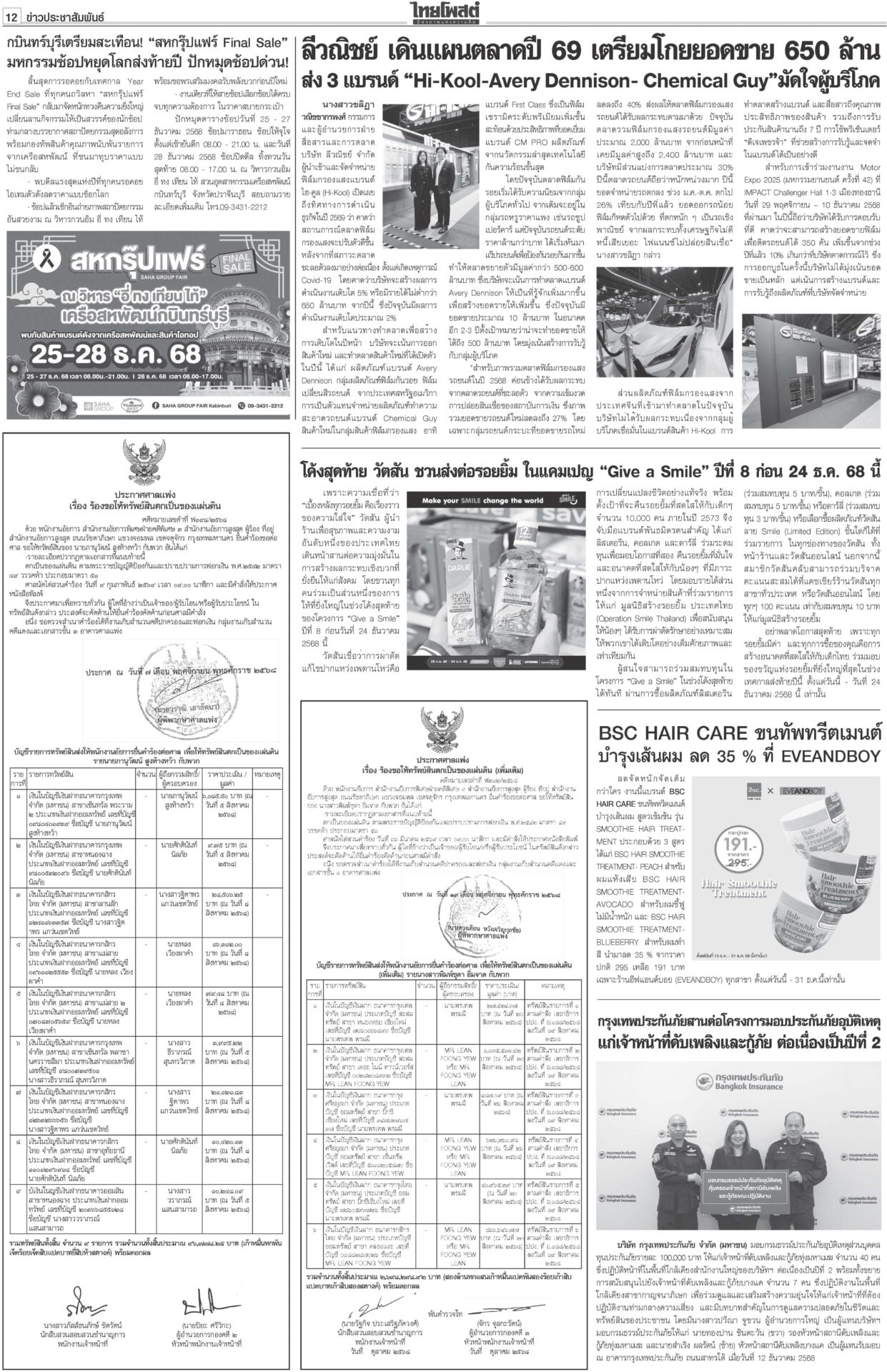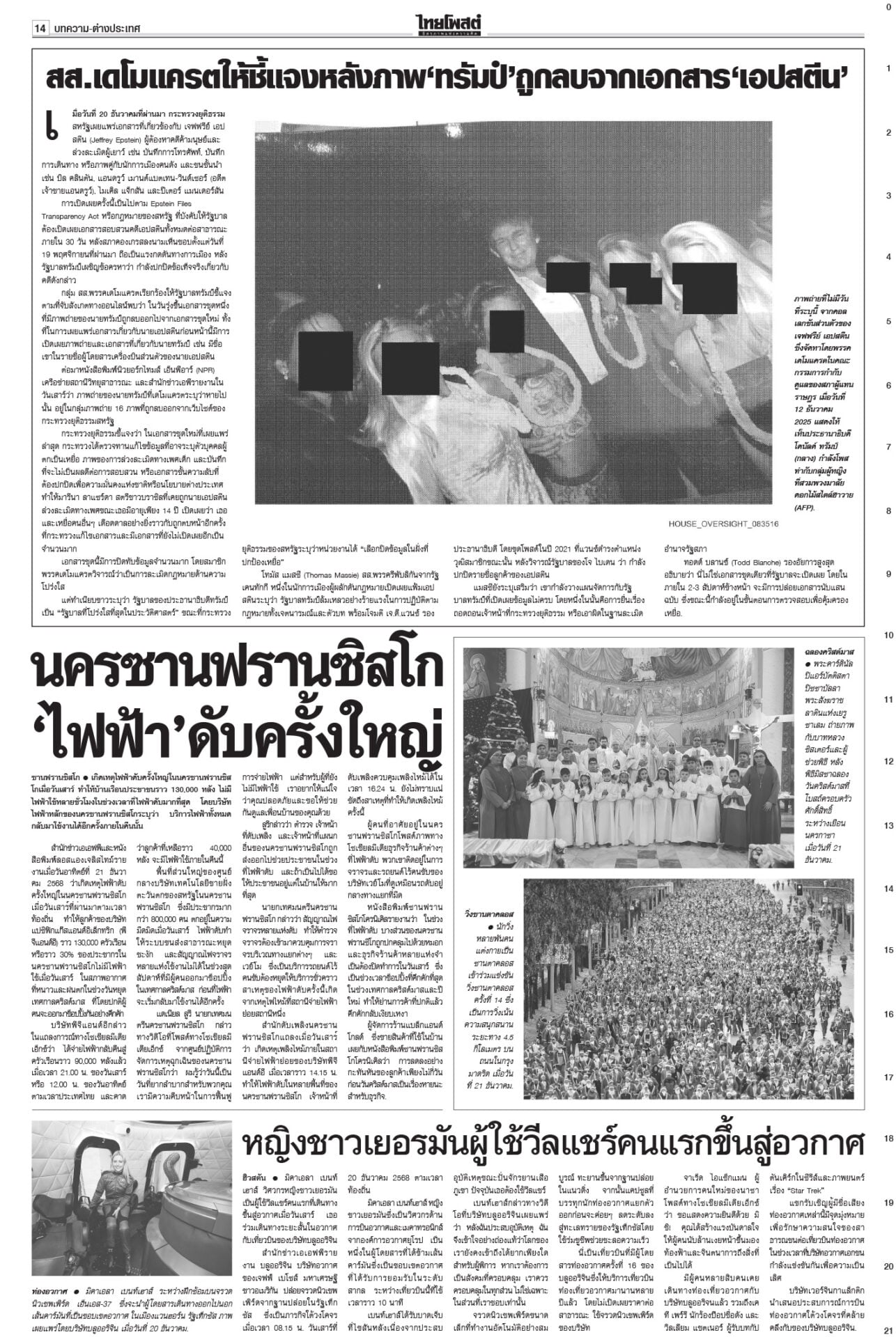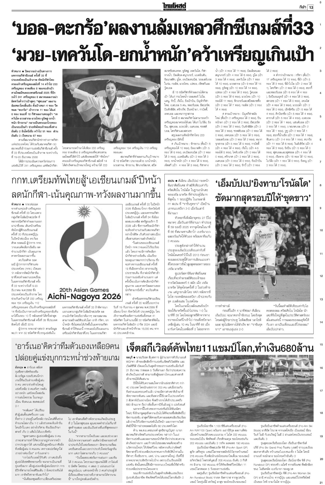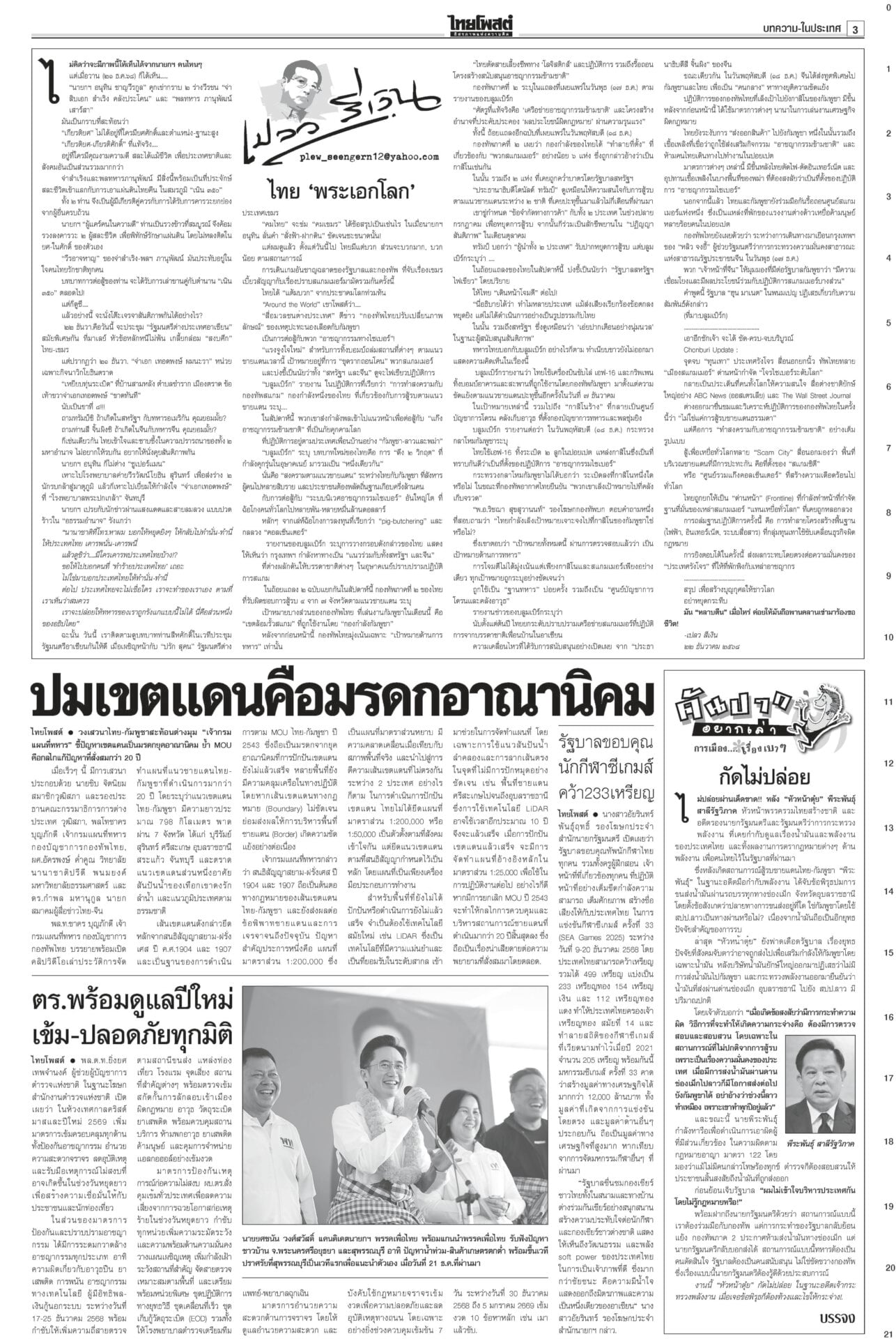 หนังสือพิมพ์ ฉบับวันที่ 22 ธันวาคม 2568ข่าวหน้าหนึ่งลั่น‘ไทย’เชื่อตัวเอง อนุทินกร้าวไม่สนหน้าอินทร์หน้าพรหม/นย.เสียขารายที่8“อนุทิน” ลั่นยังไม่ให้ประเทศไหนเข้ามาเป็นคนกลางเจรจา เป็นเรื่องระหว่างไทยกับกัมพูชาโดยตรง ไม่เกรงหน้าอินทร์หน้าพรหม เพื่อไทยโวปักธง‘สุพรรณบุรี’“ยศชนัน” นำทัพเพื่อไทยประเดิมหาเสียง “อยุธยา-สุพรรณฯ” ประกาศปักธงไม่สนบ้านใหญ่ คนกรุงเทพฯเอือม‘พท.’ ปชน.แชมป์โพลต่อเนื่องคนกรุงเอือมเพื่อไทยชัดเจน นิด้าโพลเผย “จุลพันธ์” ติดโผนายกฯ อันดับ 5 จับตาสว.เคาะ2ป.ป.ช. ผุดกมธ.คุ้ยชีวิต2กกต.จับตาสภาสูงโหวต 2 ป.ป.ช.ใหม่พุธนี้ วัดใจ สว.สีน้ำเงินให้ผ่านหรือตีตกสองบิ๊กตุลาการ พสกนิกรซาบซึ้ง ‘พระพันปีหลวง’ ทรงให้ไร้ข้อแม้!สมเด็จพระกนิษฐาธิราชเจ้า กรมสมเด็จพระเทพรัตนราชสุดาฯ สยามบรมราชกุมารี