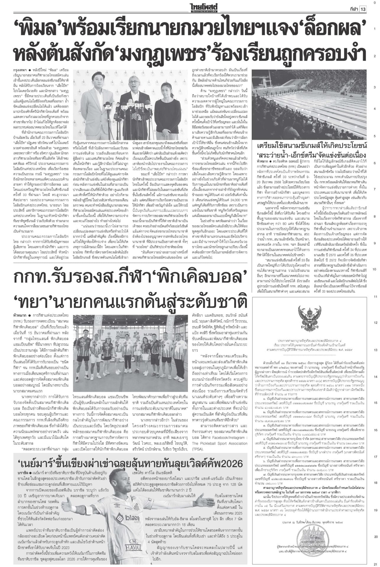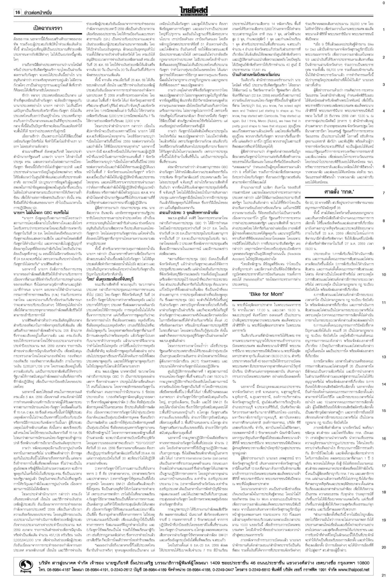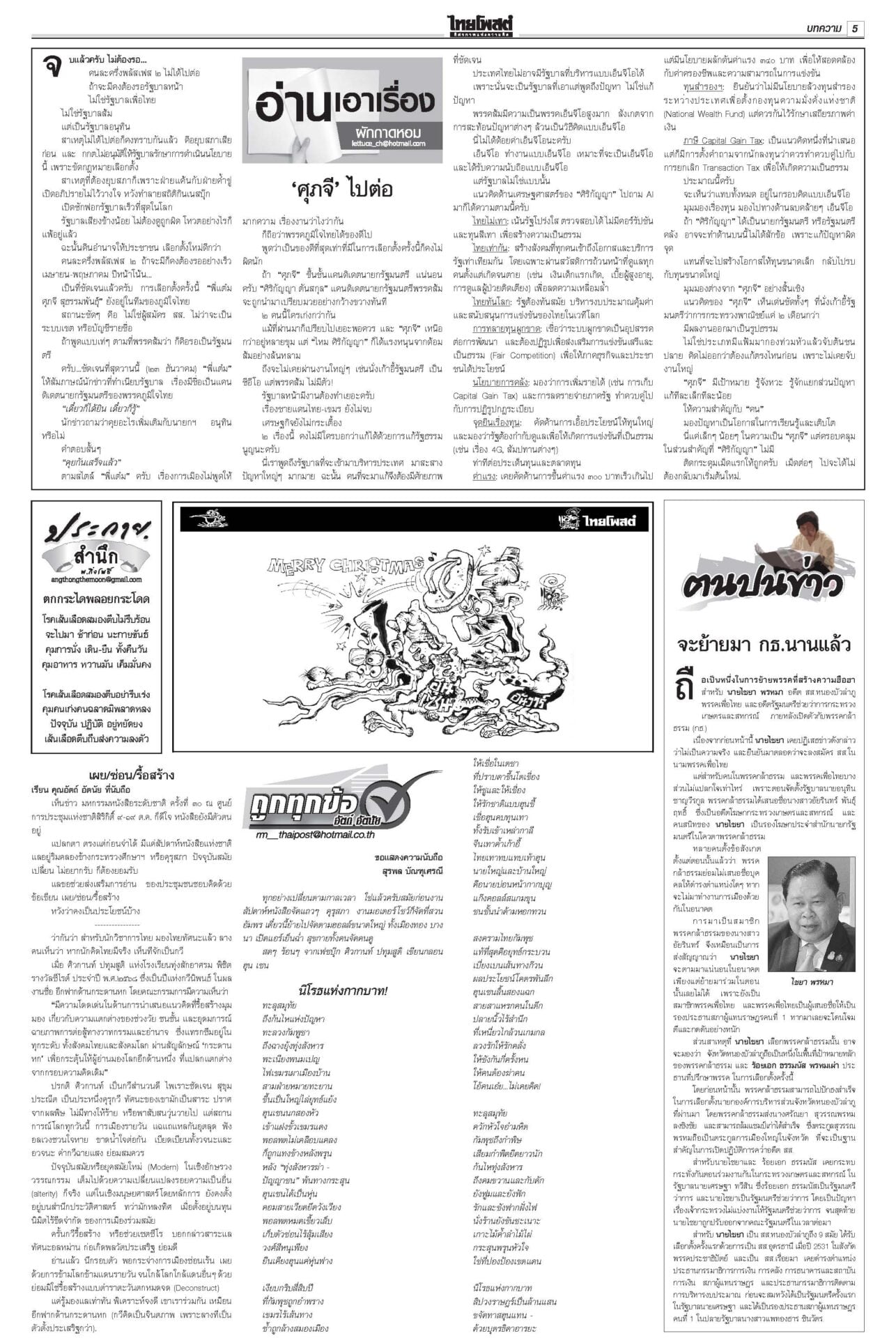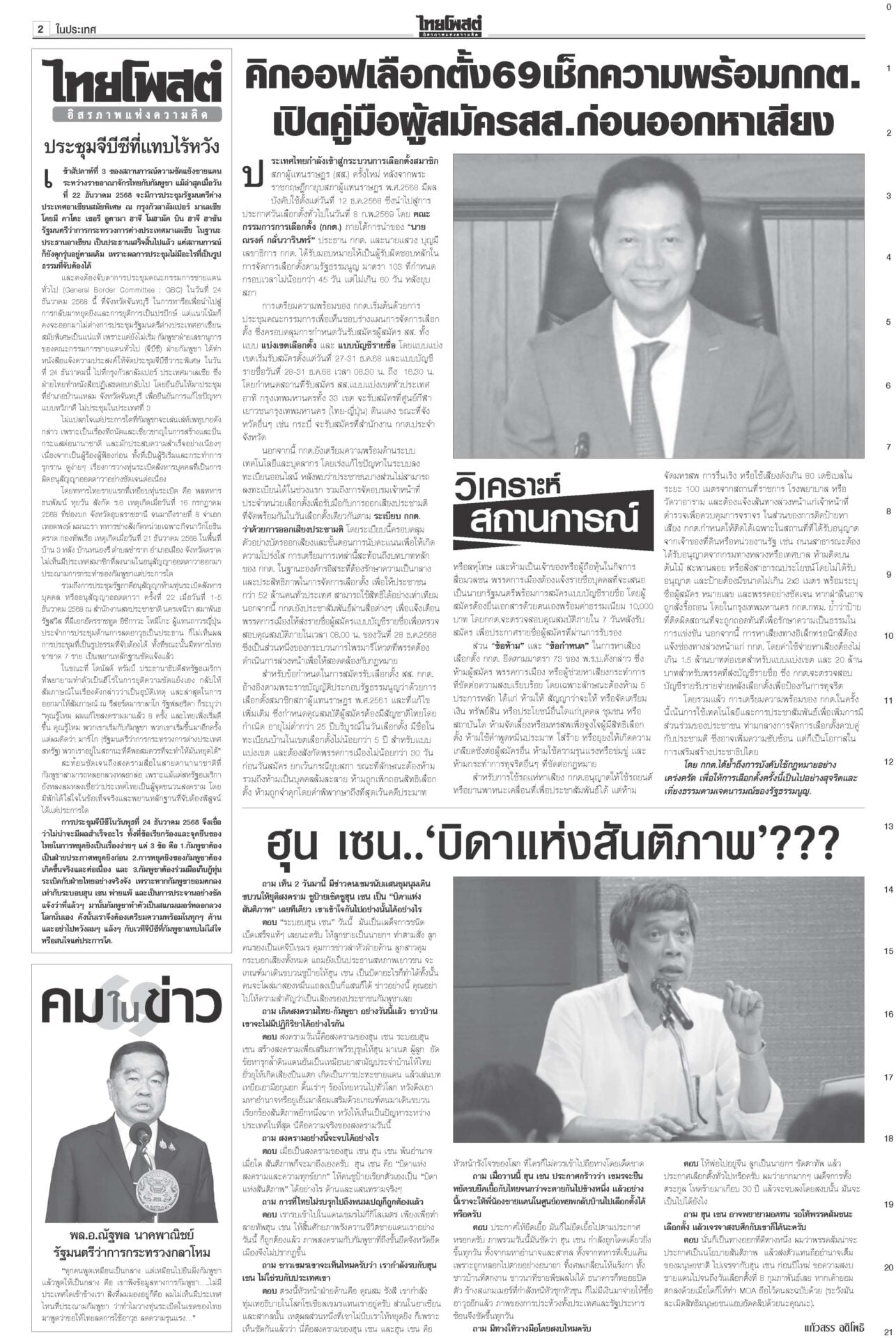 ฉบับวันที่ 24 ธันวาคม 2568 24 ธันวาคม 2568 เวลา 0:01 น. หนังสือพิมพ์ฉบับวันที่ 24 ธันวาคม 2568ข่าวหน้าหนึ่งเปิดฉากเจรจาจีบีซี ไทยทุบโต๊ะเขมรต้องหยุดยิงจริง/บัวแก้วสวน‘ทรัมป์’“อนุทิน” เมิน “ทรัมป์” บอกไทยเริ่มยิงกัมพูชาก่อน บอกทุกคนรู้ความจริง ตั้งทีมสอบประชานิยม/44ส้มระทึกกกต.ลั่นคุมเข้มนโยบายประชานิยมหาเสียง ตั้ง คกก.ตรวจสอบเงินที่ใช้-วิเคราะห์ผลกระทบ ชี้ชัด “อินฟลูฯ-ยูทูบเบอร์” สมัคร สส. ศาลสั่ง‘กกต.’แจง10ข้อ ใช้อำนาจมิชอบคดีฮั้วสว.ศาลอาญาคดีทุจริตฯ สั่ง 7 กกต.และเลขาฯ แสวง แจง 10 ข้อหาคดีฮั้วเลือก สว. งัด3มาตรการ คุม‘เทรดทอง’ สกัดบาทแข็ง“คลัง” ผนึก “แบงก์ชาติ” เข็น 3 มาตรการคุมธุรกรรมซื้อขายทองออนไลน์ ‘Bike for Mom’700กม. วธ.รับไม้จันทน์หอม25ธ.ค.“หม่อมเจ้าศรีสว่างวงศ์” ทรงบำเพ็ญพระราชกุศลถวาย “พระพันปีหลวง” Tagsรายวันหนังสือพิมพ์ ข่าวที่เกี่ยวข้อง ฉบับวันที่ 23 ธันวาคม 2568 ฉบับวันที่ 22 ธันวาคม 2568 ฉบับวันที่ 21 ธันวาคม 2568 ฉบับวันที่ 21 ธันวาคม 2568 ฉบับวันที่ 20 ธันวาคม 2568 ฉบับวันที่ 19 ธันวาคม 2568 ฉบับวันที่ 18 ธันวาคม 2568 NEWS UPDATE 0:01 น. คิกออฟเลือกตั้ง69เช็กความพร้อมกกต. เปิดคู่มือผู้สมัครสส.ก่อนออกหาเสียง 22:10 น. ยูเอ็นระบุ รัฐบาลทหารเมียนมาใช้ความรุนแรงบังคับประชาชนไปเลือกตั้ง 20:51 น. ครม. อนุมัติหลักเกณฑ์เยียวยาผู้อพยพชายแดน 4.6 แสนครัวเรือน วงเงิน 2.3 พันล้าน 20:09 น. 'บิ๊กเล็ก' พร้อมให้พี่สาว 'จ่าเริง' รับราชการทหารเป็นกรณีพิเศษ 20:06 น. ชาวสาละวิน ข้องใจแม่น้ำปนเปื้อนสารโลหะหนัก ไม่กล้ากินสัตว์น้ำ-ผลผลิตการเกษตร
