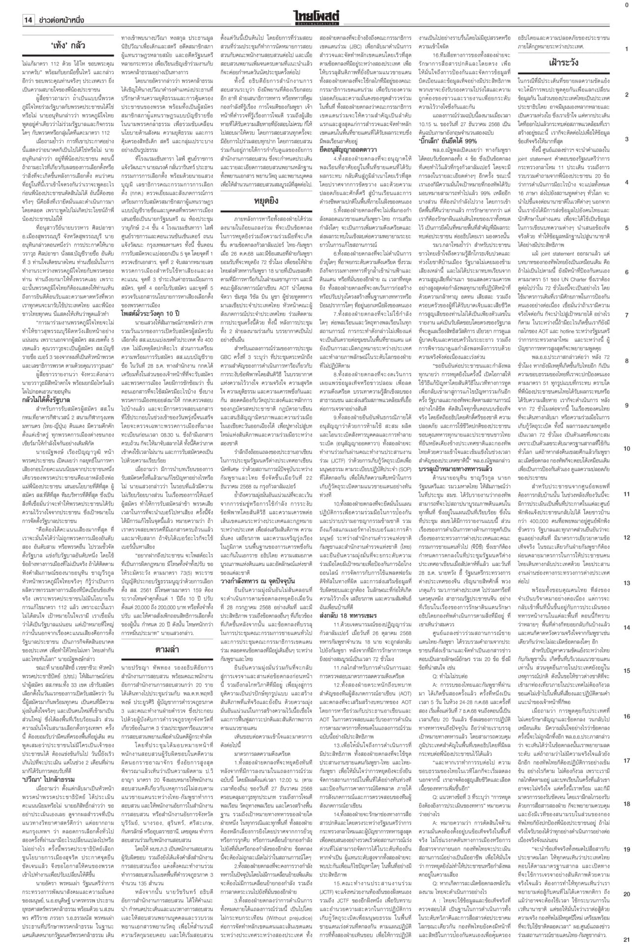 ฉบับวันที่ 28 ธันวาคม 2568 28 ธันวาคม 2568 เวลา 0:01 น. หนังสือพิมพ์ฉบับวันที่ 28 ธันวาคม 2568ข่าวหน้าหนึ่งหยุดยิงเขมรกระอัก ลงนาม16ข้อยึดตรงไหน‘ทหารไทย’ปักหลักตรงนั้น!ไทย-เขมรเห็นพ้องหยุดยิงทันทีเที่ยงวัน 27 ธ.ค. ยึดปฏิญญากัวลาลัมเปอร์ เปิดแถลงการณ์ร่วมยาวเหยียด 16 ข้อ เขมรกระอักเลือด พื้นที่ไทยยึดได้ยึดเลย การวางกำลังทหารในปัจจุบันโดยไม่มีการเคลื่อนย้ายเพิ่มเติม เฝ้าระวัง72ชม. จับตา‘กัมพูชา’ เบี้่ยวเจอสวน!ผอ.ศูนย์แถลงข่าวร่วมฯ แจงเฝ้าระวังหยุดยิง 72 ชั่วโมง ชี้ตัวเลขที่เหมาะสม-ระดับมาตรฐานสากลใช้กันทั่วโลก ชี้บทเรียนฉีกข้อตกลงไทยพร้อมตอบโต้ป้องกันตนเองตามกฎบัตรสหประชาชาติข้อ ตามล่าอาชญากร ‘ฮุนเซน-ฮุนมาเนต’ไม่ปล่อยให้ลอยนวล เดินหน้าเอาผิด 2 พ่อลูกตระกูลฮุน อธิบดีอัยการฯ ลงพื้นที่ประชุม ผบช.ภ.3 สอบเสธ.ทหารเป็นพยานมัด “ฮุน เซน-ฮุน มาเนต” Tagsรายวันหนังสือพิมพ์ ข่าวที่เกี่ยวข้อง ฉบับวันที่ 27 ธันวาคม 2568 ฉบับวันที่ 26 ธันวาคม 2568 ฉบับวันที่ 25 ธันวาคม 2568 ฉบับวันที่ 24 ธันวาคม 2568 ฉบับวันที่ 23 ธันวาคม 2568 ฉบับวันที่ 22 ธันวาคม 2568 NEWS UPDATE 2:13 น. รวมศิลปินคุณภาพส่งท้ายปีใน 'In The Mood Music Festival 2025' 2:01 น. ANOTHER WORLD ประกาศ Sold Out ทุกโซน! เสริมทัพด้วย 'PURPEECH' 0:31 น. 'ลิซ่า อลิซา' โกอินเตอร์ โด่งดังไกลถึงแดนมังกร! 0:21 น. 'เก่ง-น้ำปิง' นำทีมเพื่อน นั่งแท่นพรีเซนเตอร์ MITH 0:10 น. 'COCKTAIL' หลั่งน้ำตา ปิดฉากการเดินทาง 23 ปี