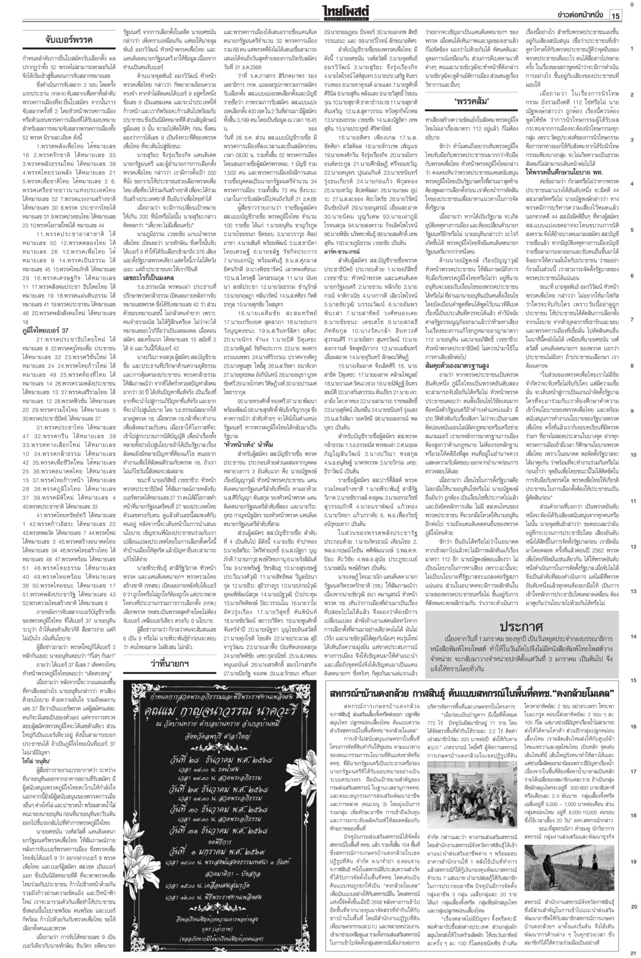 ฉบับวันที่ 29 ธันวาคม 2568