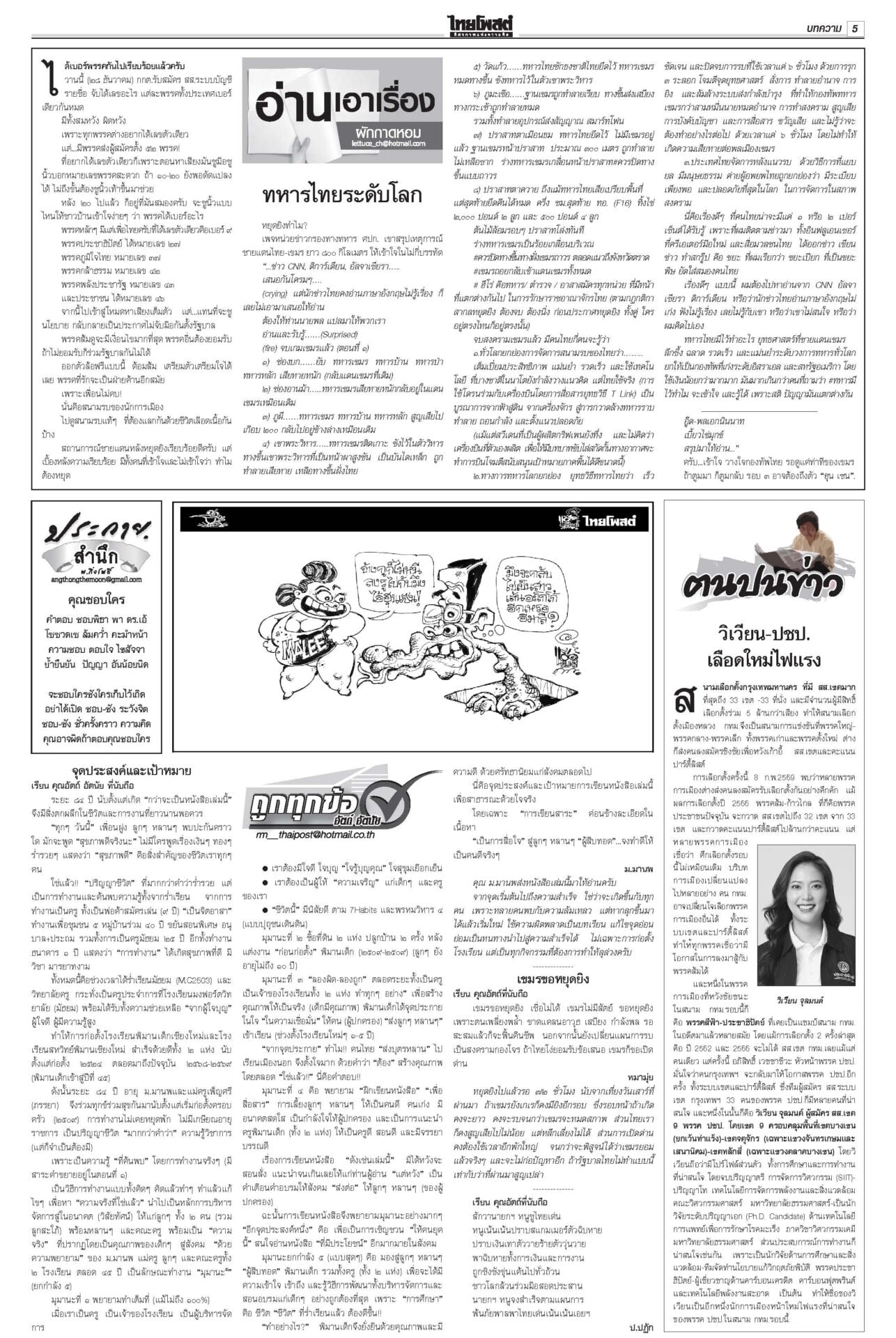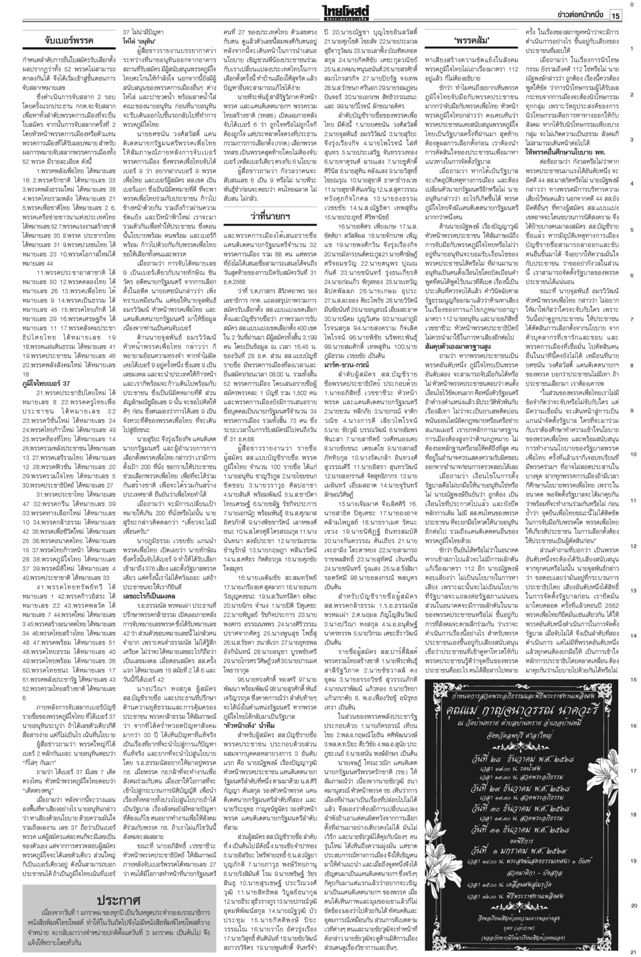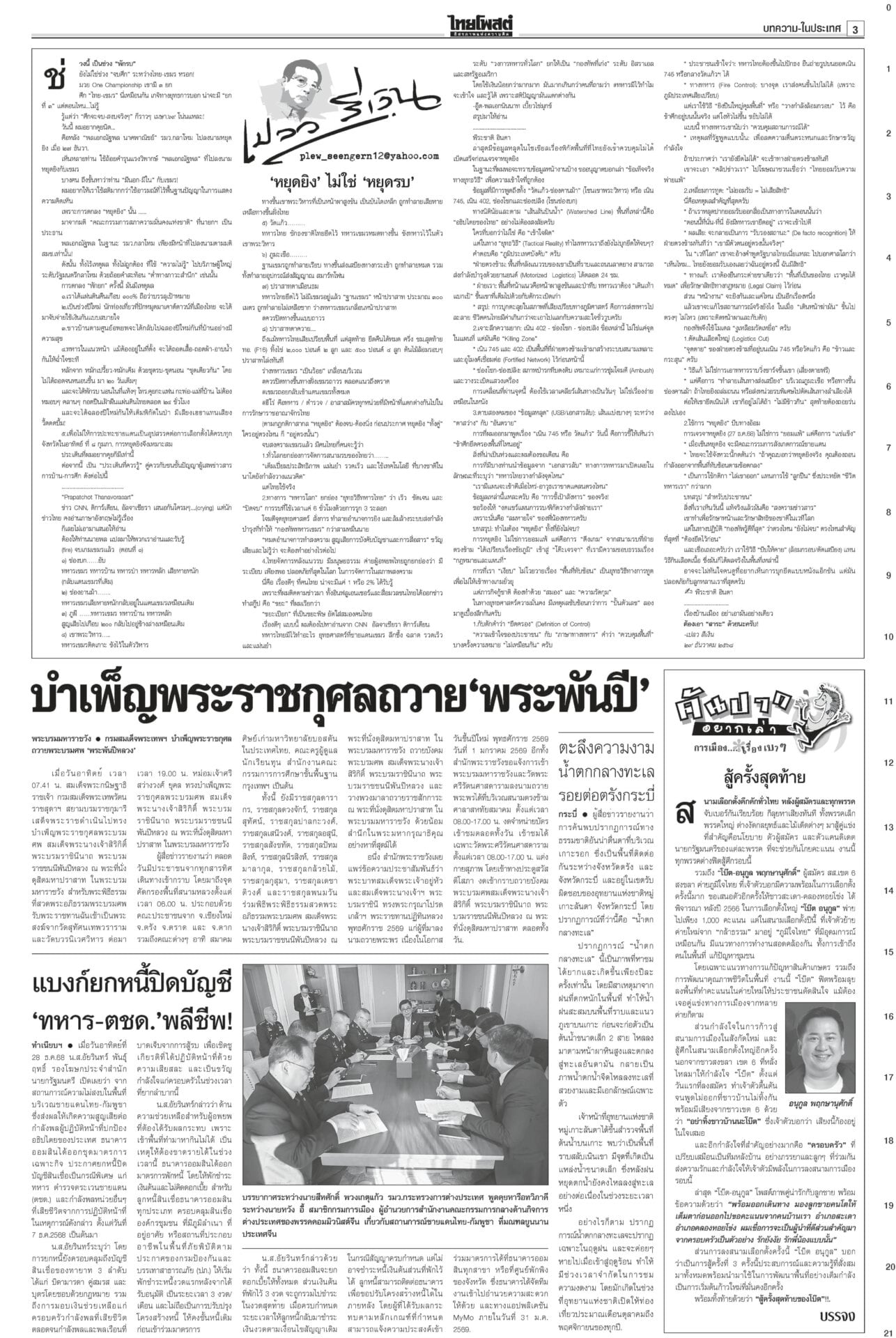 ฉบับวันที่ 29 ธันวาคม 2568 29 ธันวาคม 2568 เวลา 0:01 น. หนังสือพิมพ์ ฉบับวันที่ 29 ธันวาคม 2568ข่าวหน้าหนึ่งว่าที่นายกฯ73คน! 34พรรคส่งแคนดิเดต/ดีเด่นดังแห่สมัครสส.ปาร์ตี้ลิสต์“กกต.” รับสมัคร สส.บัญชีรายชื่อราบรื่น ส่ง 52 พรรค เสนอแคนดิเดตนายกฯ 34 จับเบอร์พรรคมีโห่ไล่ ‘อนุทิน’37เด็ดตรงหนูจับเบอร์ผู้สมัคร สส.ปาร์ตี้ลิสต์ พรรคเพื่อไทยโชคดีได้เลข 9 เบอร์เก่า ‘พรรคส้ม’ไร้เพื่อน คุยลั่นมาตรฐานสูงเห็นโฉมหน้ารัฐบาลต่อไปรำไร “อนุทิน” ย้ำห้ามแตะนิรโทษกรรม ม.112 ผู้อพยพกลับบ้านวัดใจเขมรกองทัพภาคที่ 2 แจ้งประชาชนตามแนวชายแดนไทย-เขมร Tagsรายวันหนังสือพิมพ์ ข่าวที่เกี่ยวข้อง ฉบับวันที่ 28 ธันวาคม 2568 ฉบับวันที่ 28 ธันวาคม 2568 ฉบับวันที่ 27 ธันวาคม 2568 ฉบับวันที่ 26 ธันวาคม 2568 ฉบับวันที่ 25 ธันวาคม 2568 ฉบับวันที่ 24 ธันวาคม 2568 ฉบับวันที่ 23 ธันวาคม 2568 NEWS UPDATE 0:01 น. เปิดขั้นตอนหย่อนบัตร8ก.พ.69 บัตร3ใบเลือกตั้งพ่วงประชามติ 20:27 น. ในหลวงพระราชทานทุนการศึกษา น.ร.ทุน ม.ท.ศ. รุ่นที่ 17 20:18 น. 'อนุทิน' เปิดเพจหาเสียง ประเดิมแจง 3 เหตุไม่ขึ้นเวทีดีเบต 19:54 น. 'เสธ.ปู-แม่ทัพเติ่ง' เหยียบเนิน 350 ปราสาทตาควาย ประกาศอธิปไตยไทยสมบูรณ์ 19:49 น. ในหลวงทรงรับกำลังพลเจ็บเหตุปะทะไทย-กัมพูชา เป็นคนไข้ในพระบรมราชานุเคราะห์