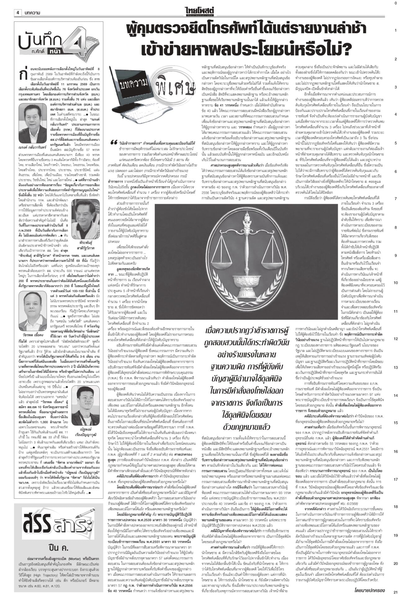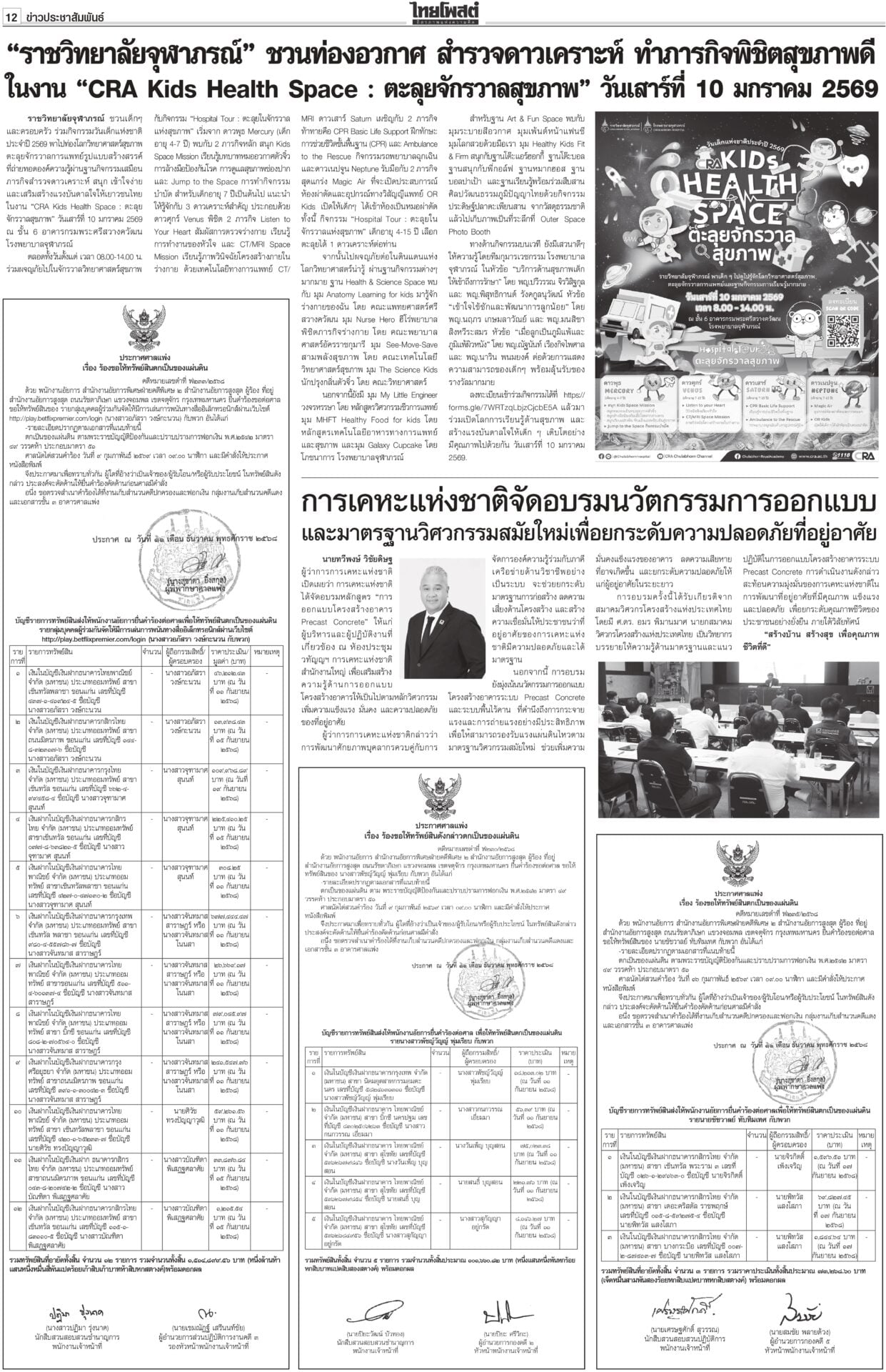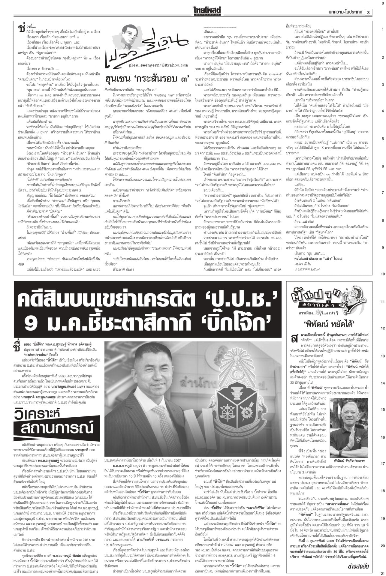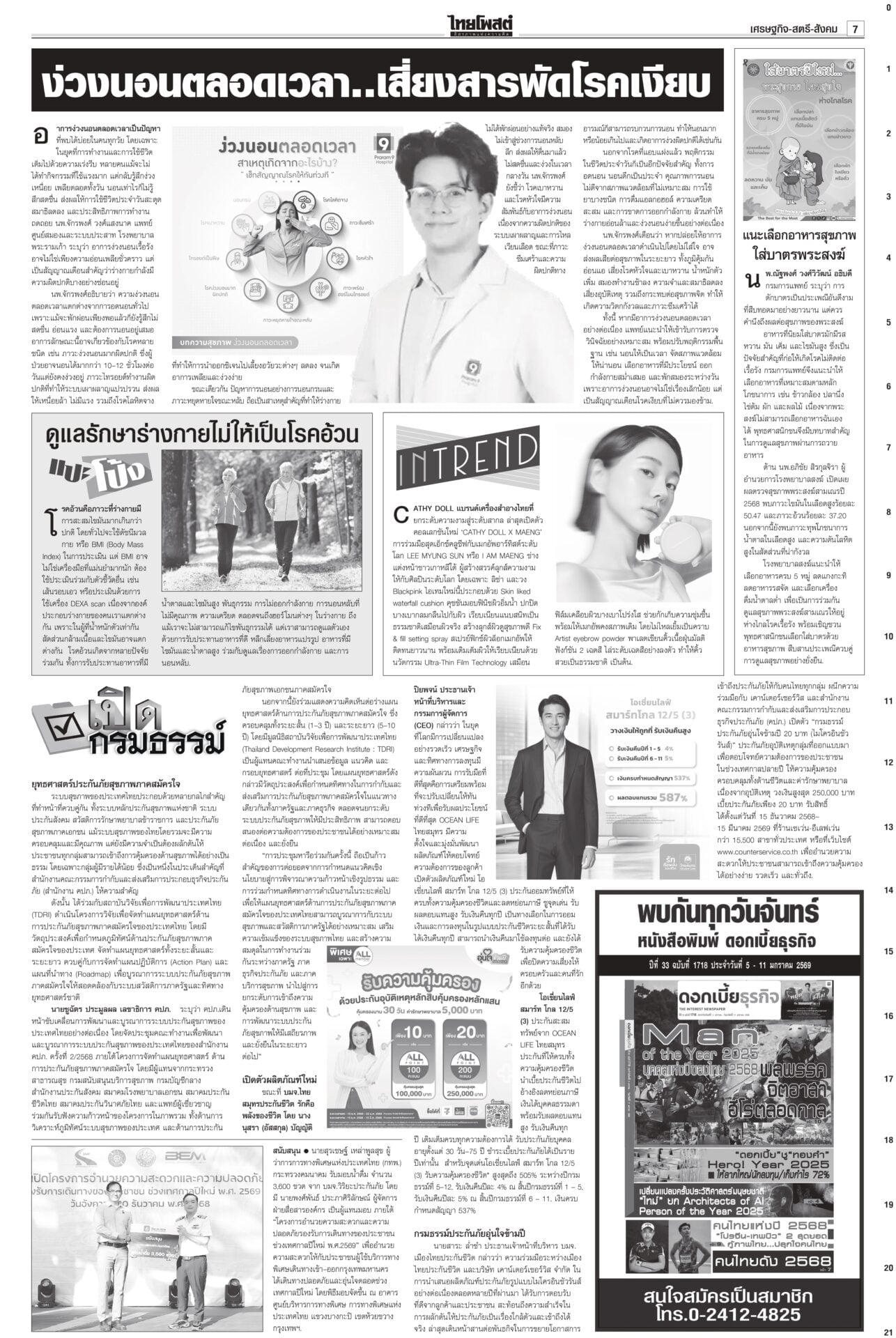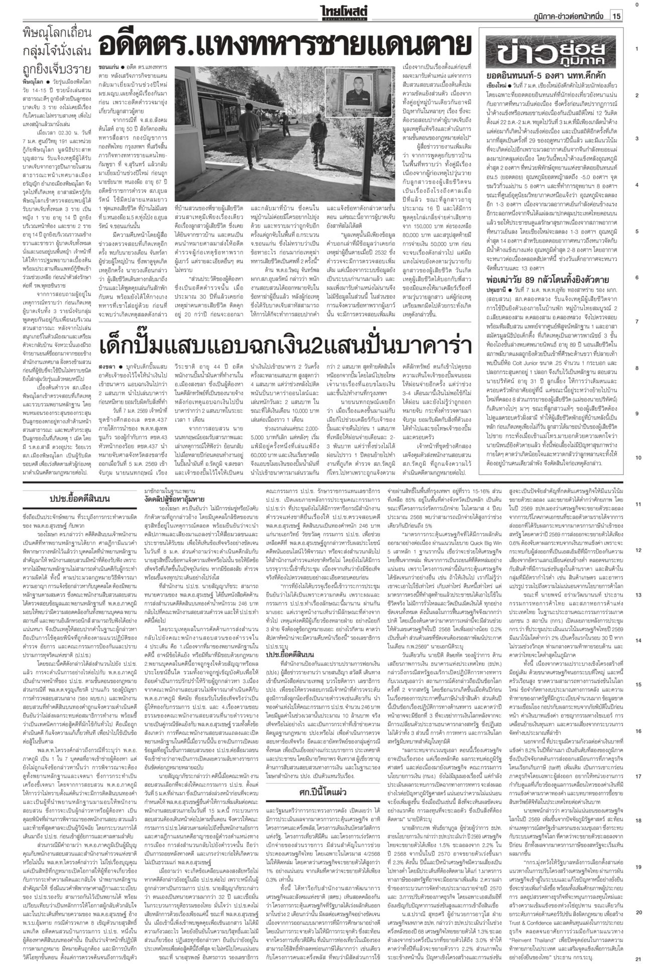 หนังสือพิมพ์ฉบับวันที่ 8 มกราคม 2569ข่าวหน้าหนึ่ง‘น้ำเงิน’เช็กบิล‘ส้ม’ ปั่นเฟกนิวส์ผิดกม.เลือกตั้ง ‘ชวน’ปลุกคนใต้สั่งสอนภท.“กกต.” ประกาศรายชื่อพรรคการเมืองสมัคร สส.บัญชีรายชื่อและแคนดิเดตนายกรัฐมนตรีแล้ว พร้อมเซ็นตั้ง 21 ขุนพล ตรวจสอบนโยบายหาเสียง มอบ “แสวง” เป็นประธาน “นายกฯ หนู” ปปช.ยื้อคดีสินบน/โจ๊กไม่หนี“ไตรรงค์” แจงชัดสอบ “ภาคภูมิ” ฐานะผู้กล่าวหา ไม่ได้ละเว้นปฏิบัติ เตรียมงัดคลิปสู้ข้อหาอุ้มหาย ย้ำปฏิบัติตาม กม.ทุกขั้นตอน “ทนายบิ๊กโจ๊ก” บุก ป.ป.ช. ศก.ปีนี้โตแผ่ว คาดจีดีพี1.5% ต่าสุดรอบ30ปี“เอกนิติ” มั่นใจมาตรการ “คนละครึ่งพลัส-เที่ยวดีมีคืน-เติมเงินบัตรคนจน-เร่งรัดเบิกจ่าย” ช่วยบูมเศรษฐกิจไทยไตรมาส 4/68 โตทะลุ 1% ดันภาพรวมทั้งปีบวกเพิ่มอีก 0.2% ไทยทำสมุดปกขาวแจงโลกประจานโลก เขมรละเมิดข้อตกลงหยุดยิง หลังปล่อยกระสุนปืน ค.ว่อนข้ามฝั่ง ขีดเส้นต้องมี “คำชี้แจง-ขอโทษ” ขึงพืดเล่ห์เขมรสายตาชาวโลก ลุยทำสมุดปกขาวเผยแพร่ข้อเท็จจริง