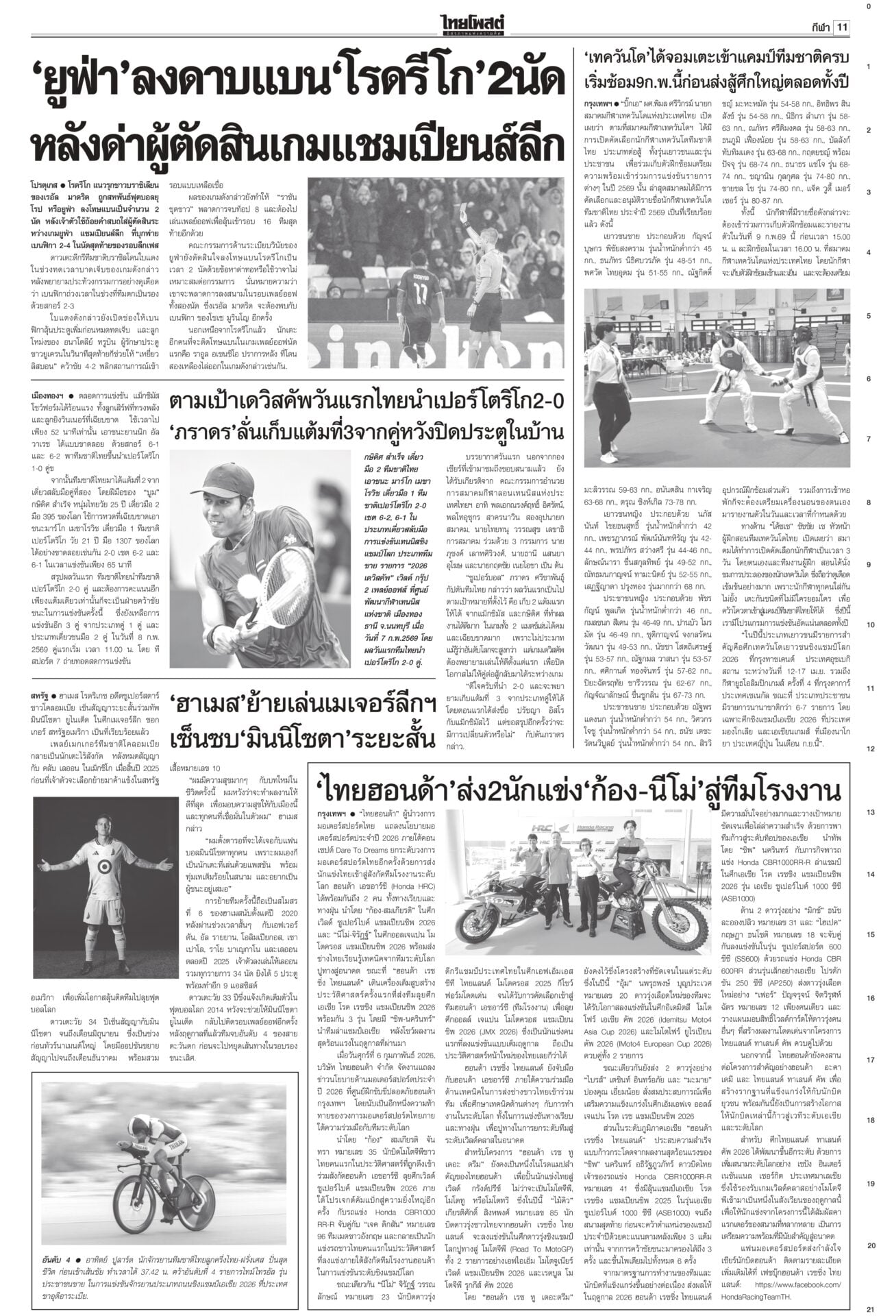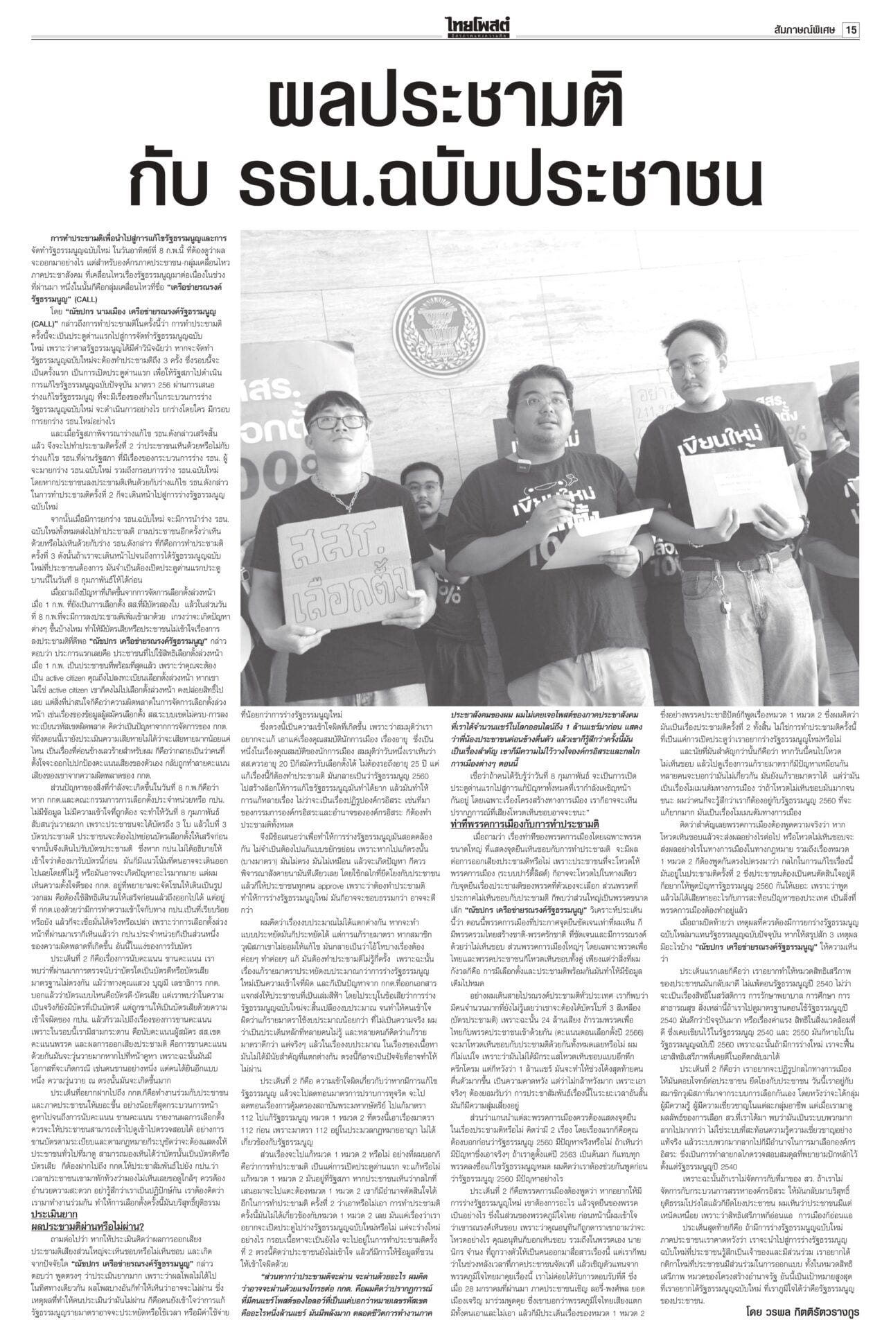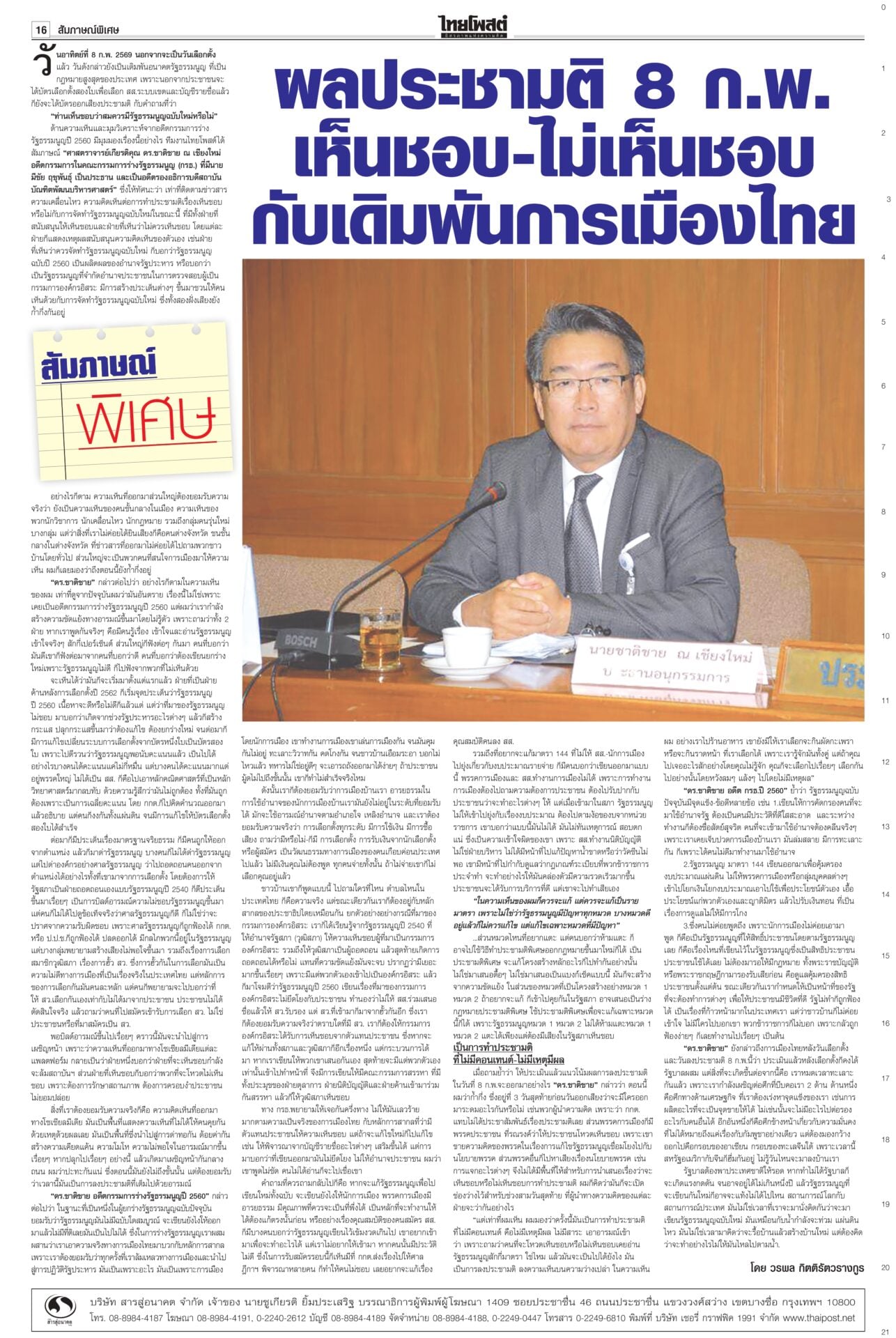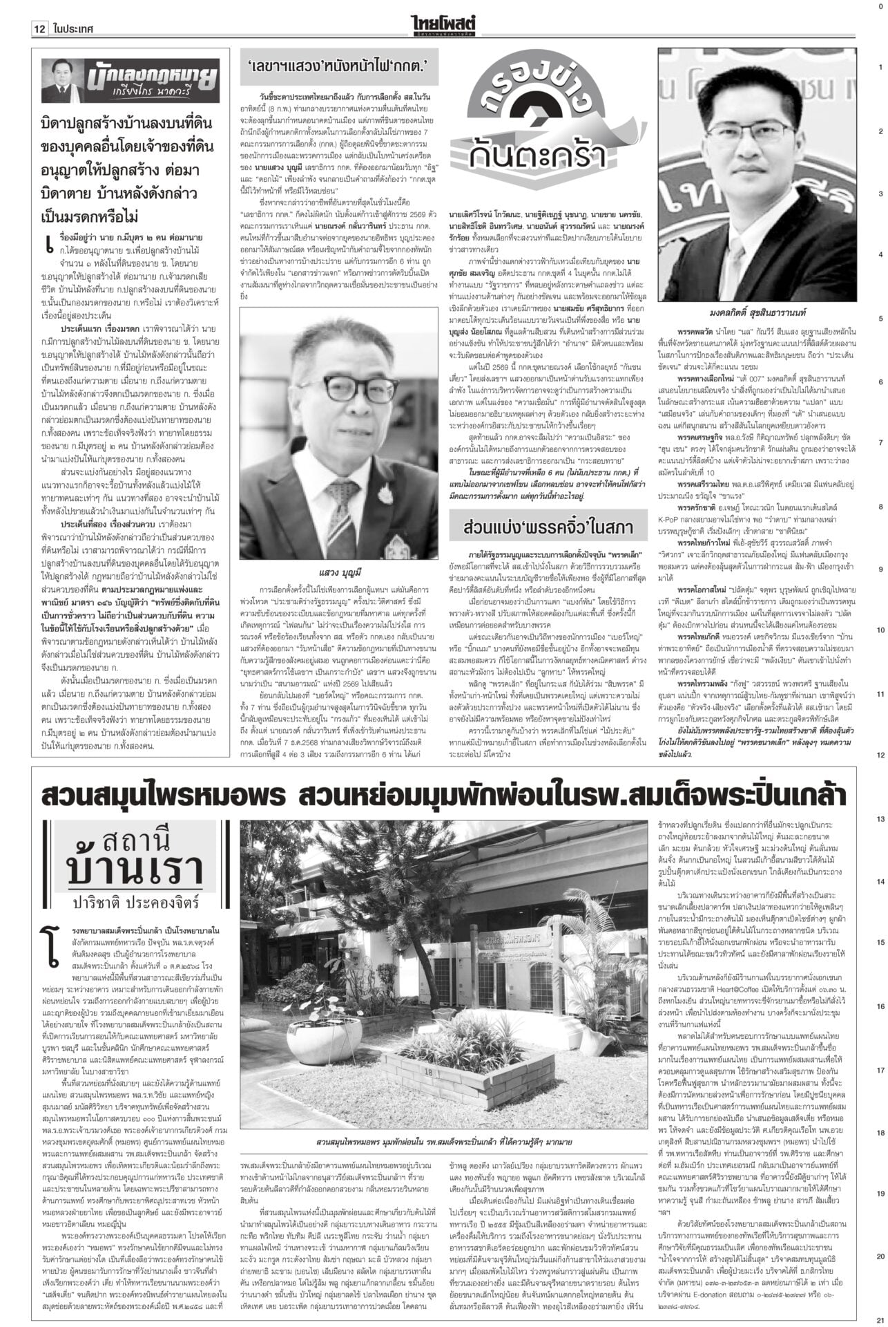 ฉบับวันที่ 8 กุมภาพันธ์ 2569 8 กุมภาพันธ์ 2569 เวลา 0:01 น. หนังสือพิมพ์ฉบับวันที่ 8 กุมภาพันธ์ 2569ข่าวหน้าหนึ่ง‘เท้ง’ชิ่งเรือบินเทา ไม่ตอบสื่อปม‘สุริยะ-เบนสมิธ’/‘อนุทิน’โต้ภาพAIเก่าแต่ดูแก่“อนุทิน” โต้ภาพเอไอ หลังถูกเพจดังแฉนั่งกินข้าวคู่ “เบน สมิธ” ชี้ภาพเก่าทำไมดูแก่ สาธุ หลังผลโพลให้ ภท.ได้ สส.เกิน 180 ที่นั่ง ขอรอชัดเจนก่อนฟอร์มรัฐบาล ย้ำเงื่อนไขจับขั้ว ไม่แก้หมวด กกต.จับคนซื้อเสียงกกต.คุมเข้มโค้งสุดท้ายก่อนเลือกตั้ง ระดมตำรวจ-อส.ตั้งด่านทั่วประเทศ เตรียมขยายผลซื้อเสียงเชียงราย-สุราษฎร์ธานี เจอโพยพร้อมเงิน 6 หมื่น ระดมตร.1.2แสน คุมหน่วยเลือกตั้งสตช.ระดม ตร. 1.2 แสนนายดูแลความปลอดภัย แจ้งนักท่องเที่ยวต่างชาติ มาตรการรักษาความปลอดภัยในการเลือกตั้ง งดจำหน่ายเครื่องดื่มแอลกอฮอล์ 24 ชั่วโมง ฝ่าฝืนคุก 6 เดือน สรุปคำสั่งศาล สอย49ผู้สมัครกกต.เปิดคำสั่งศาล สั่งถอนชื่อผู้สมัคร สส.เขต 18 คน กล้าธรรมโดนไป 6 และบัญชีรายชื่อ 31 ราย ขอ ปชช.ตรวจสอบรายชื่อ-เตรียมหลักฐานแสดงตนก่อนไปใช้สิทธิ เน้นย้ำ Tagsรายวันหนังสือพิมพ์ ข่าวที่เกี่ยวข้อง ฉบับวันที่ 7 กุมภาพันธ์ 2569 ฉบับวันที่ 7 กุมภาพันธ์ 2569 ฉบับวันที่ 6 กุมภาพันธ์ 2569 ฉบับวันที่ 5 กุมภาพันธ์ 2569 ฉบับวันที่ 4 กุมภาพันธ์ 2569 ฉบับวันที่ 3 กุมภาพันธ์ 2569 ฉบับวันที่ 2 กุมภาพันธ์ 2569 NEWS UPDATE 0:01 น. โจทย์หินนายกฯคนที่33รัฐบาลปีม้าไฟ 22:20 น. ลักลอบปล่อยน้ำเสียลงทะเลพัทยา สะท้อนช่องโหว่การกำกับดูแลสิ่งแวดล้อม 22:11 น. ในหลวงพระราชทานพระบรมราชวโรกาสให้นายกฯ-รมว.คลัง เฝ้าฯ 21:58 น. ในหลวงพระราชทานเพลิงศพท่านผู้หญิงพันธุ์สวลี กิติยากร 21:29 น. 'ฮาเมส' ย้ายเล่นเมเจอร์ลีกฯ เซ็นซบ 'มินเนโซตา' ระยะสั้น
