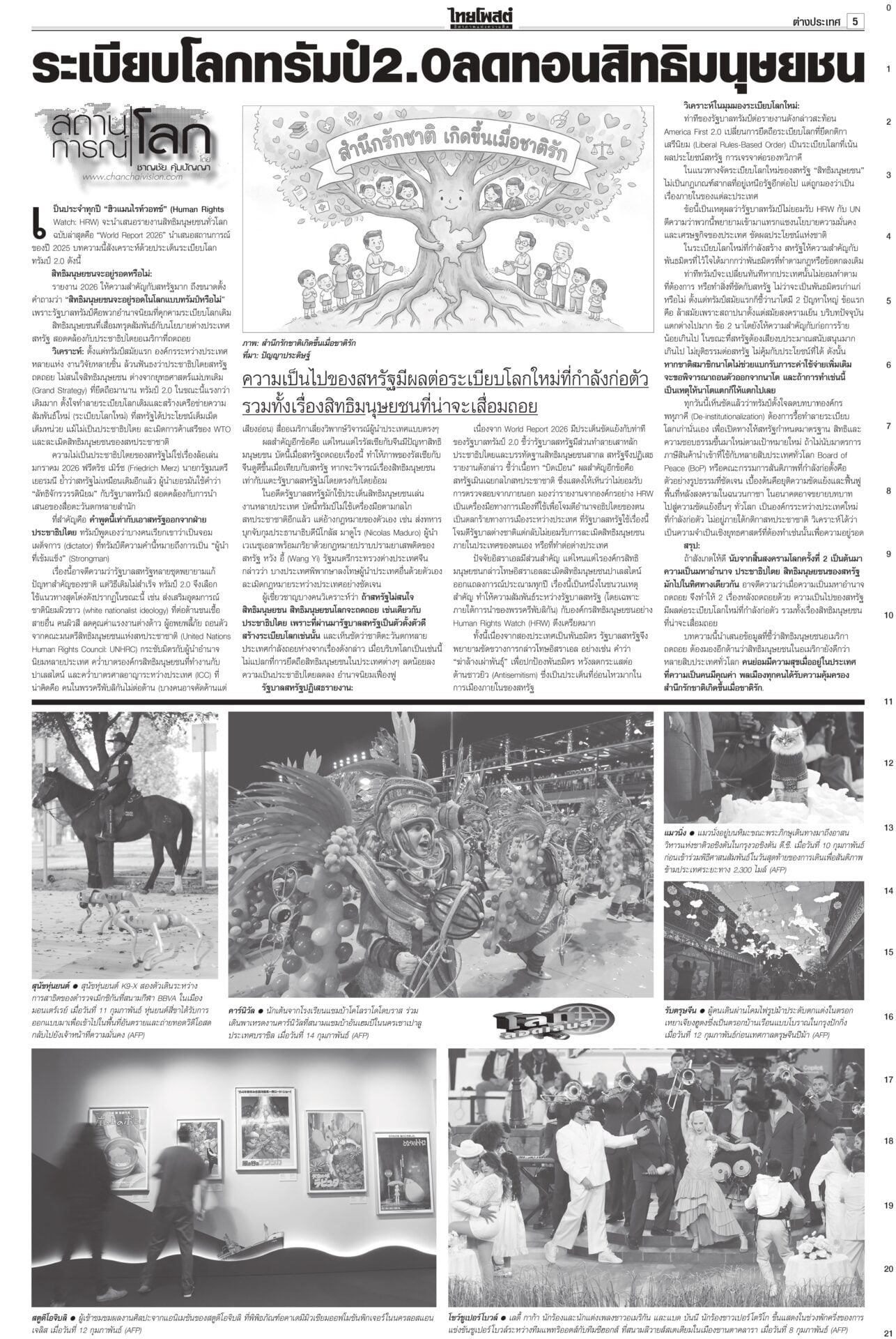 ฉบับวันที่ 15 กุมภาพันธ์ 2569 15 กุมภาพันธ์ 2569 เวลา 0:01 น. หนังสือพิมพ์ฉบับวันที่ 15 กุมภาพันธ์ 2569ข่าวหน้าหนึ่งทรงห่วง‘คนใต้’ ‘เหยื่อโจร3จว.’ วธ.เร่งช่วยด่วนในหลวงทรงรับผู้ได้รับบาดเจ็บ-ผู้เสียชีวิตจากเหตุการณ์ความไม่สงบชายแดนใต้ ไว้ในพระบรมราชานุเคราะห์ ขณะที่ วธ.เร่งดำเนินการตามพระราชกระแสอย่างเร่งด่วนและครบถ้วน นึกว่า‘รังสแกมเมอร์’!“ไอติม” ดิ้น! แก้ข่าว “สเปกเตอร์ ซี” ไอโอสีส้ม เจอพิรุธเพียบ! ยอมรับเป็นบริษัทของเลขาฯ พรรค แต่ไม่ได้ปฏิบัติการข้อมูลข่าวสาร เผยชั้น 4 ที่ทำการพรรคเป็นที่ทำการของพนักงานประจำ ตามจิกบาร์โค้ด ‘ส้ม’ฟ้อง‘กกต.’ยังไม่ยอมแพ้ พรรคประชาชนชี้การมีบาร์โค้ด-คิวอาร์โค้ดบนบัตรเลือกตั้ง ทำลายหลักลงคะแนนโดยลับ-เปิดช่องทุจริต จี้ กกต.เร่งเปิดรายงานผลการนับคะแนนทุกหน่วย ‘กล้าธรรม’หนาว! ‘โฆษกภท.’เผยในทางการเมืองไม่มีการการันตีอะไรทั้งนั้นเพื่อไทยชักแม่น้ำทั้ง 5 รองรับการเข้าร่วมรัฐบาลอนุทิน “ยศชนัน” ยอมรับไม่ใช่เรื่องง่าย กราบขออภัยจากใจ หลังมีทั้งคนเห็นด้วย-ไม่เห็นด้วย แต่ส่วนใหญ่บอกให้ร่วม Tagsรายวันหนังสือพิมพ์ ข่าวที่เกี่ยวข้อง ฉบับวันที่ 14 กุมภาพันธ์ 2569 ฉบับวันที่ 14 กุมภาพันธ์ 2569 ฉบับวันที่ 13 กุมภาพันธ์ 2569 ฉบับวันที่ 12 กุมภาพันธ์ 2569 ฉบับวันที่ 11 กุมภาพันธ์ 2569 ฉบับวันที่ 10 กุมภาพันธ์ 2569 ฉบับวันที่ 9 กุมภาพันธ์ 2569 NEWS UPDATE 0:01 น. เกมลดอำนาจต่อรอง'พรรคร่วม' 'น้ำเงิน'กุมสภาพ'หล่อเลือกได้' 23:21 น. ทายาทชาห์ของอิหร่านเรียกร้องสหรัฐฯ ช่วยเหลือ ขณะที่ผู้สนับสนุนแสดงพลังในเยอรมนี 22:41 น. ชัดเจน! 'ทิม พิธา-ก้อย อรัชพร' ลงภาพคู่เปิดตัวคบกัน 22:39 น. สหรัฐฯ ยกเลิกมาตรการคว่ำบาตรน้ำมันเวเนซุเอลา เตรียมการเยือนของทรัมป์ 20:58 น. 'สหัสวัต' ขู่ 'แก้วตา ธิษะณา' หยุดแฉไอโอส้ม ระวังโดนกลับ ลั่นไม่ยอมให้มาทำร้ายคนหลังบ้าน