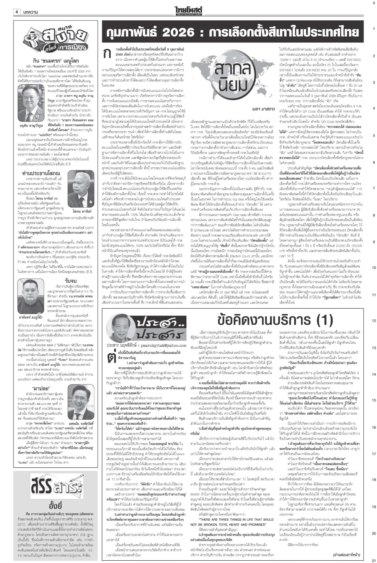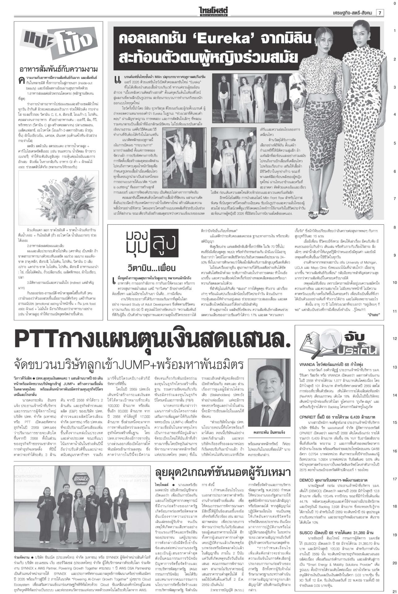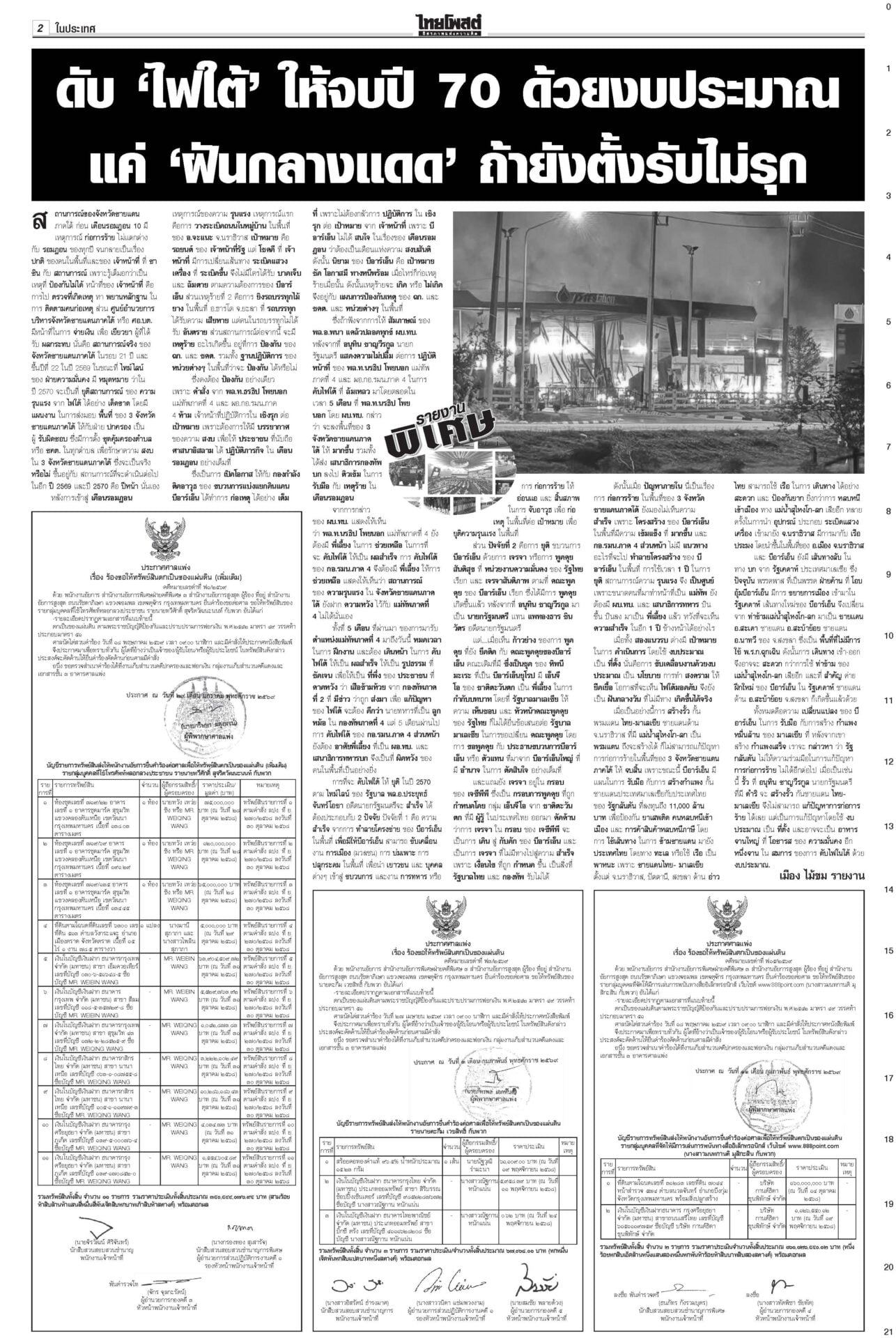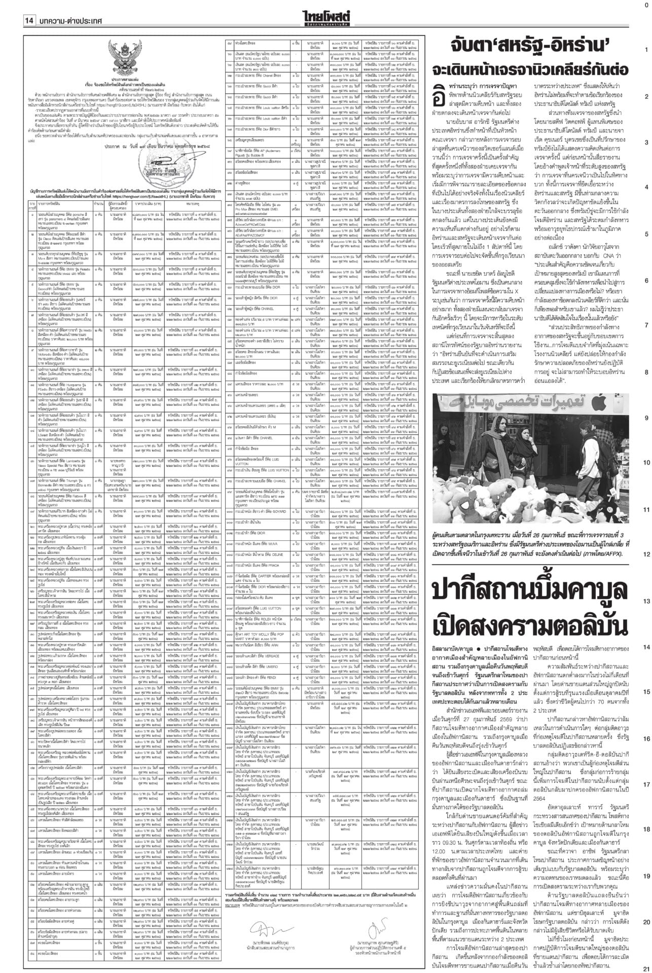 หนังสือพิมพ์ ฉบับวันที่ 28 กุมภาพันธ์ 2569ข่าวหน้าหนึ่งกล้าธรรมมีศักดิ์ศรี ‘ธรรมนัส’โวไม่เข้าหาใครก่อน/พท.ยํ้าส่ง‘2ส.’นั่งรัฐมนตรี“อนุทิน” ยังกั๊ก “กล้าธรรม” ร่วมรัฐบาลหรือไม่ บอกรอรับรอง สส.ทั้งหมดก่อน ซัดกกต.ฟ้องปิดปากตรวจสอบ“ไอติม” เข้าพบ ตร. สู้คดี กกต.เอาผิดปมบัตรเลือกตั้ง “เจษฎ์” เตือนรับรองไปก่อนสอยทีหลังระวัง ม.157 “ปชป.” บอส‘แซม-มิน’ติดบ่วง อสส.ฟัน‘คดีดิไอคอน’ดีเอสไอ-อัยการสูงสุดลุยคดีดิไอคอน ขยายผลผู้เสียหาย 13 ประเทศ ทหารไทยขาขาดรายที่13 ‘ทบ.’เชื่อเขมรแอบซุกอื้อ!พลทหารเหยียบกับระเบิดในฐานเอราวัณ ขาขาดเป็นรายที่ 13 แล้ว ศาลแพ่งไฟเขียว สั่ง‘อายัด’ทรัพย์! แก๊ง‘สแกมเมอร์’“ปปง.” เผยศาลแพ่งมีคำสั่งให้ยึดและอายัดทรัพย์สิน 4 คดีดัง “ยิม เลียก-เบน สมิธ-เฉิน จื้อ-ก๊ก อาน-เอื้ออังกูร” มูลค่ารวมกว่า 13,074 ล้านบาท 207สส.รับหนังสือรับรองกกต.เผยยอดผู้มาใช้สิทธิเลือกตั้ง 8 ก.พ. กว่า 37.8 ล้านคน คิดเป็น 71.42%