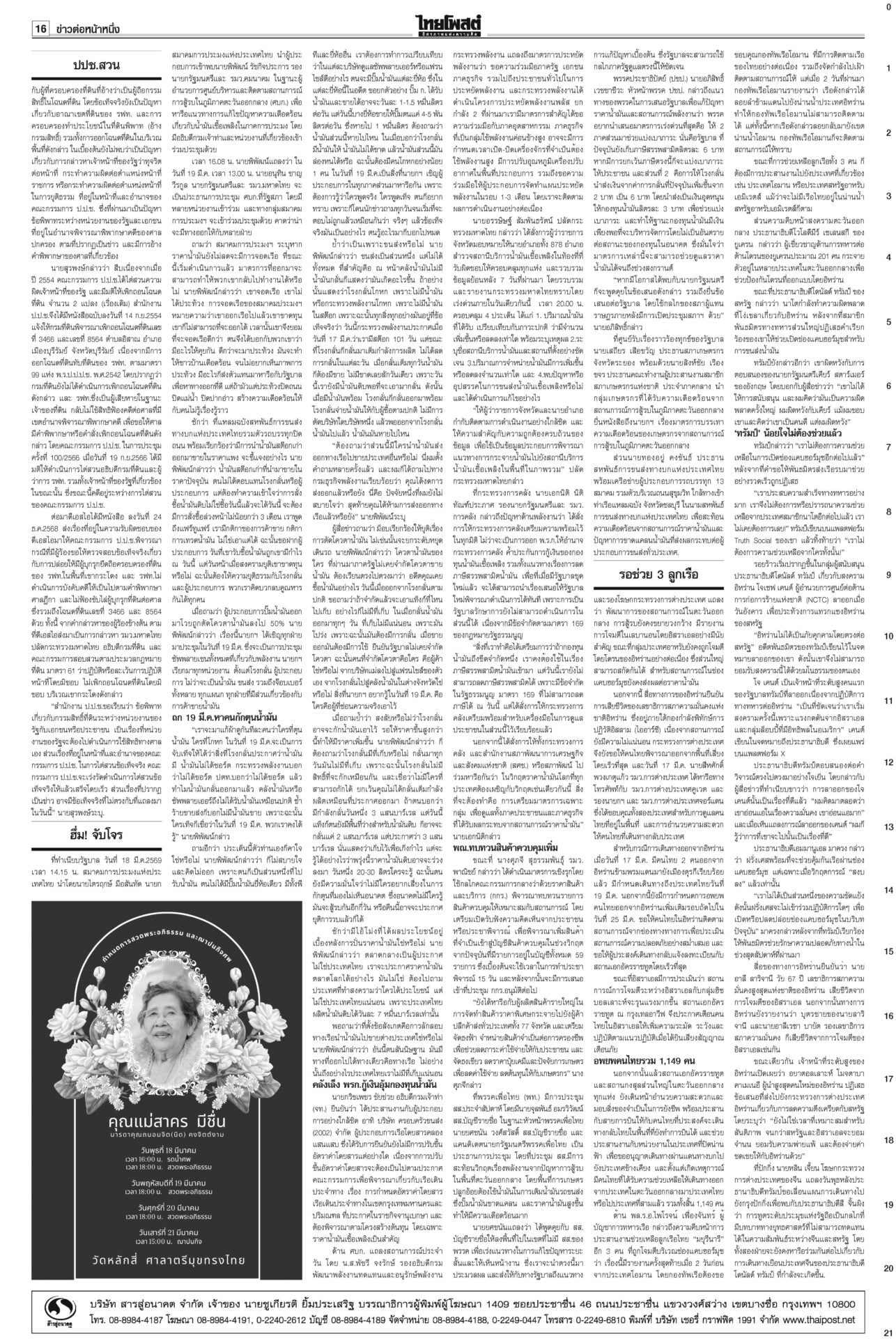 ฉบับวันที่ 19 มีนาคม 2569