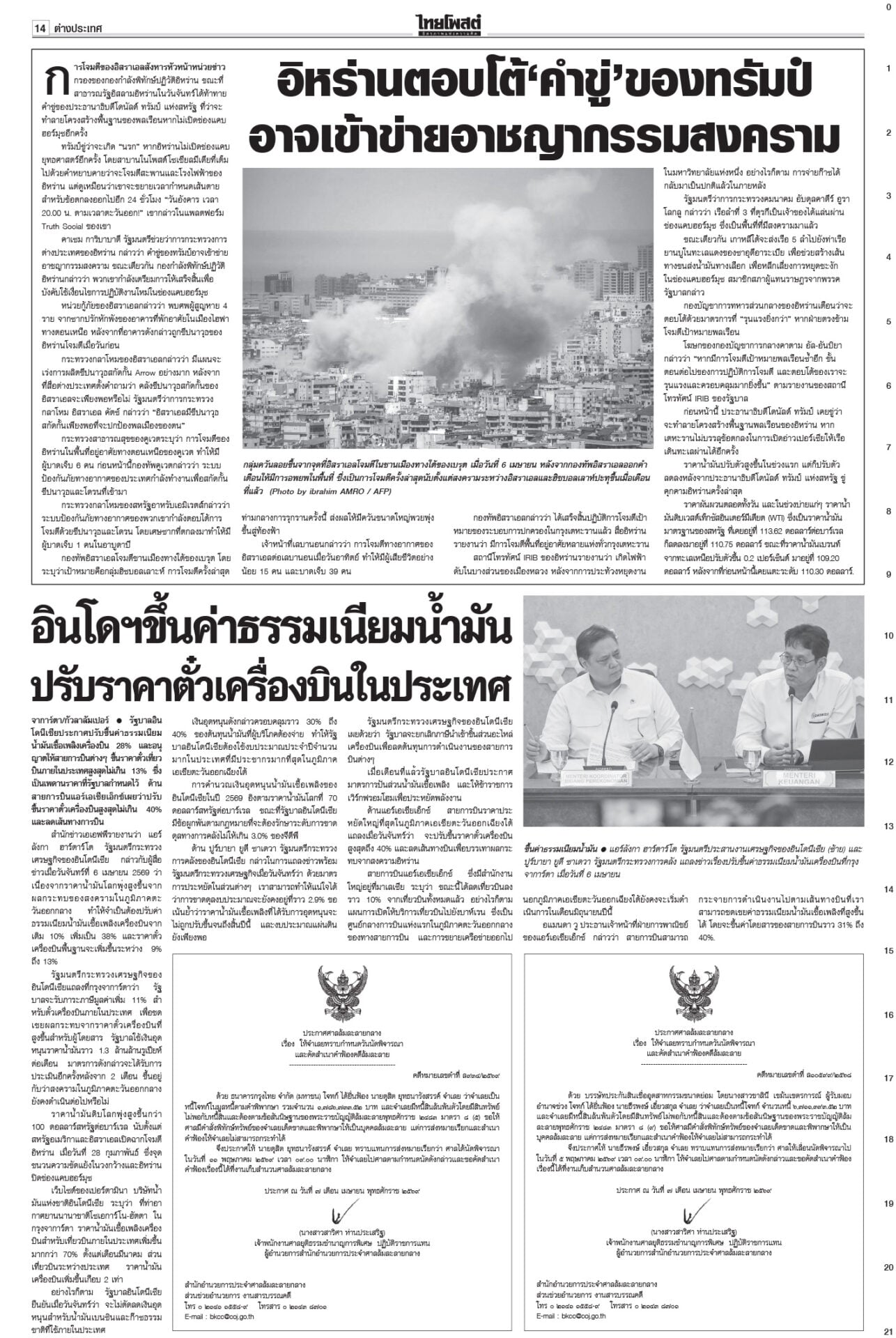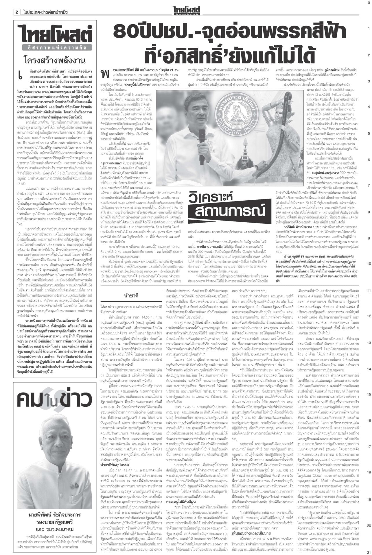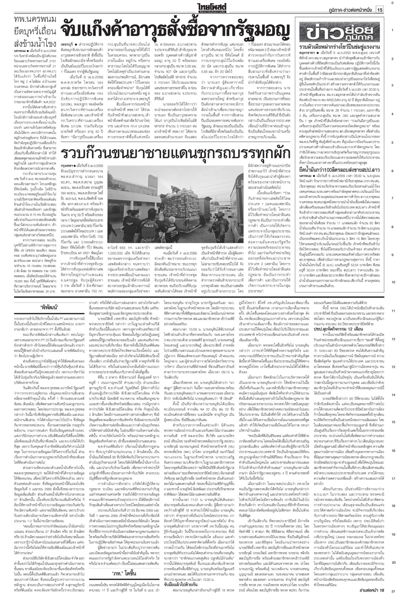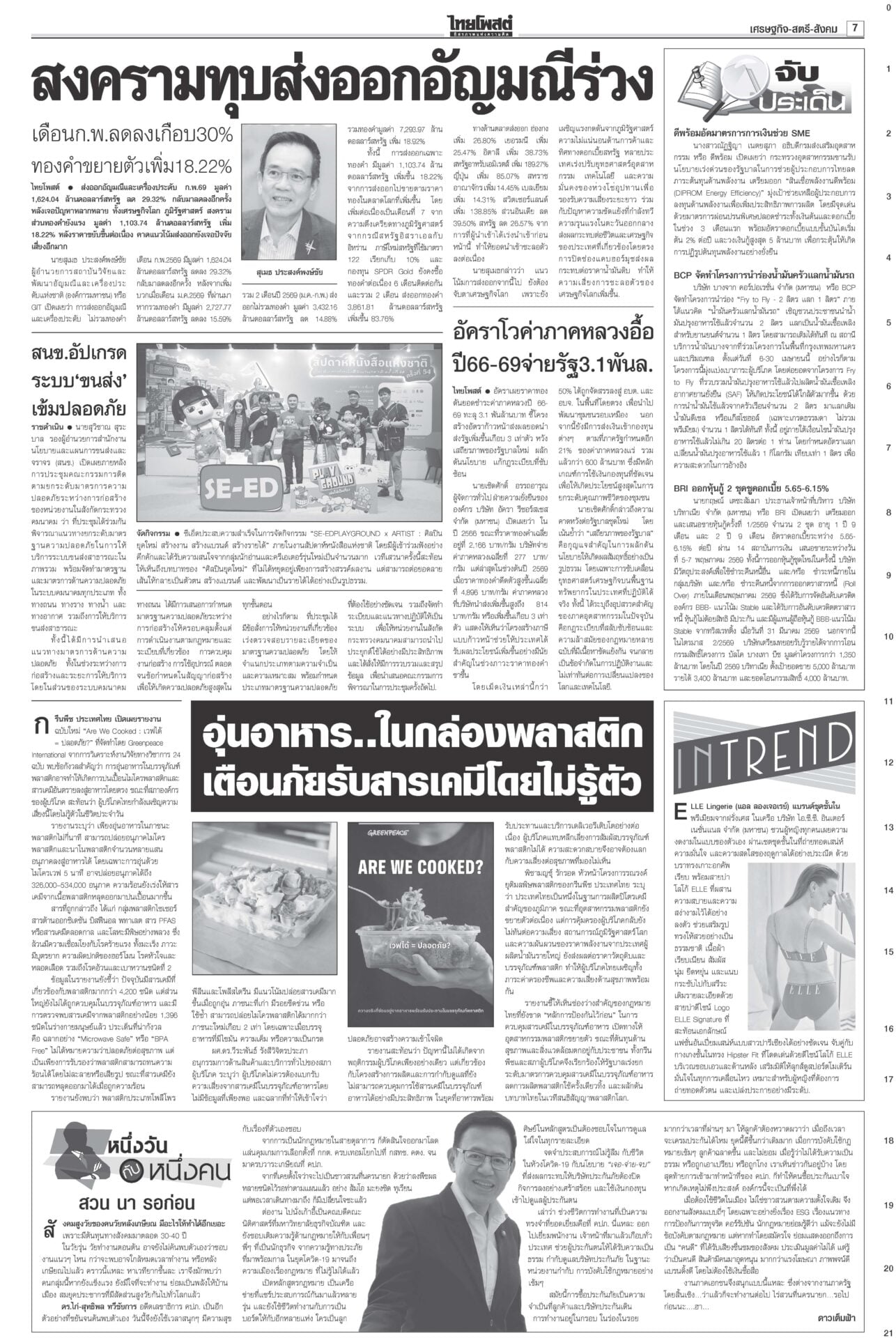 ฉบับวันที่ 7 เมษายน 2569 7 เมษายน 2569 เวลา 0:01 น. หนังสือพิมพ์ ฉบับวันที่ 7 เมษายน 2569ข่าวหน้าหนึ่งนำชาติพ้นอุปสรรค พระราชดำรัสครม.ใหม่ระลึกถึงผลประโยชน์ปชช.-ปชต.-ปท.“ในหลวง” พระราชทานพระราชดำรัสแก่ ครม.ใหม่ ขอให้ปฏิบัติหน้าที่ระลึกถึงผลประโยชน์ประชาชน-ประชาธิปไตย-ประเทศ เจรจาโรงกลั่นคืนกำไรส่วนต่าง“อนุทิน” ให้คำมั่นพาประเทศพ้นวิกฤตพลังงาน ลั่นประชาชนต้องเดือดร้อนน้อยที่สุด ‘พิพัฒน์’ลาออกPT23ปี รมว.ยธ.ย้ำน้ำมันหาย!“อนุทิน” จิบกาแฟคุย “พิพัฒน์” ไม่กังวลกระแสบอยคอตปั๊ม PT ถามกลับลาออกมากี่ปีแล้ว ‘ภท.’โตขึ้นตลอด จับมือไปด้วยกัน ปชป.ลุยงาน12ด.ภท.คึกคัก ทำบุญก้าวเข้าปีที่ 18 “จุลพันธ์” อวยพรให้เป็นปีที่ดีเดินหน้ารัฐบาลอย่างแข็งแรง Tagsรายวันหนังสือพิมพ์ ข่าวที่เกี่ยวข้อง ฉบับวันที่ 6 เมษายน 2569 ฉบับวันที่ 5 เมษายน 2569 ฉบับวันที่ 5 เมษายน 2569 ฉบับวันที่ 4 เมษายน 2569 ฉบับวันที่ 3 เมษายน 2569 ฉบับวันที่ 2 เมษายน 2569 ฉบับวันที่ 1 เมษายน 2569 NEWS UPDATE 0:42 น. 'ปีเตอร์แพน-เอ็มม่า' เคมีฟุ้งกระจาย 'มเหสีน้อย' ม้ามืดโซเชียลพุ่งร้อยล้านวิว! 0:26 น. 'อ่ำ อัมรินทร์' เดินทางไปเขากลิ้ง เข้าเยี่ยมเพื่อนรัก 'เสก โลโซ' 0:01 น. 80ปีปชป.-จุดอ่อนพรรคสีฟ้า ที่"อภิสิทธิ์"ยังแก้ไม่ได้ 21:24 น. คืบหน้าสงครามตะวันออกกลาง : โจมตีโรงงานปิโตรเคมีอิหร่าน-ทรัมป์ปฏิเสธหยุดยิง 20:56 น. เจ้าฟ้าสิริวัณณวรีฯ จะเสด็จเป็นองค์ปาฐกวิวัฒนาการชุดไทยพระราชนิยมโรดโชว์กรุงเฮก