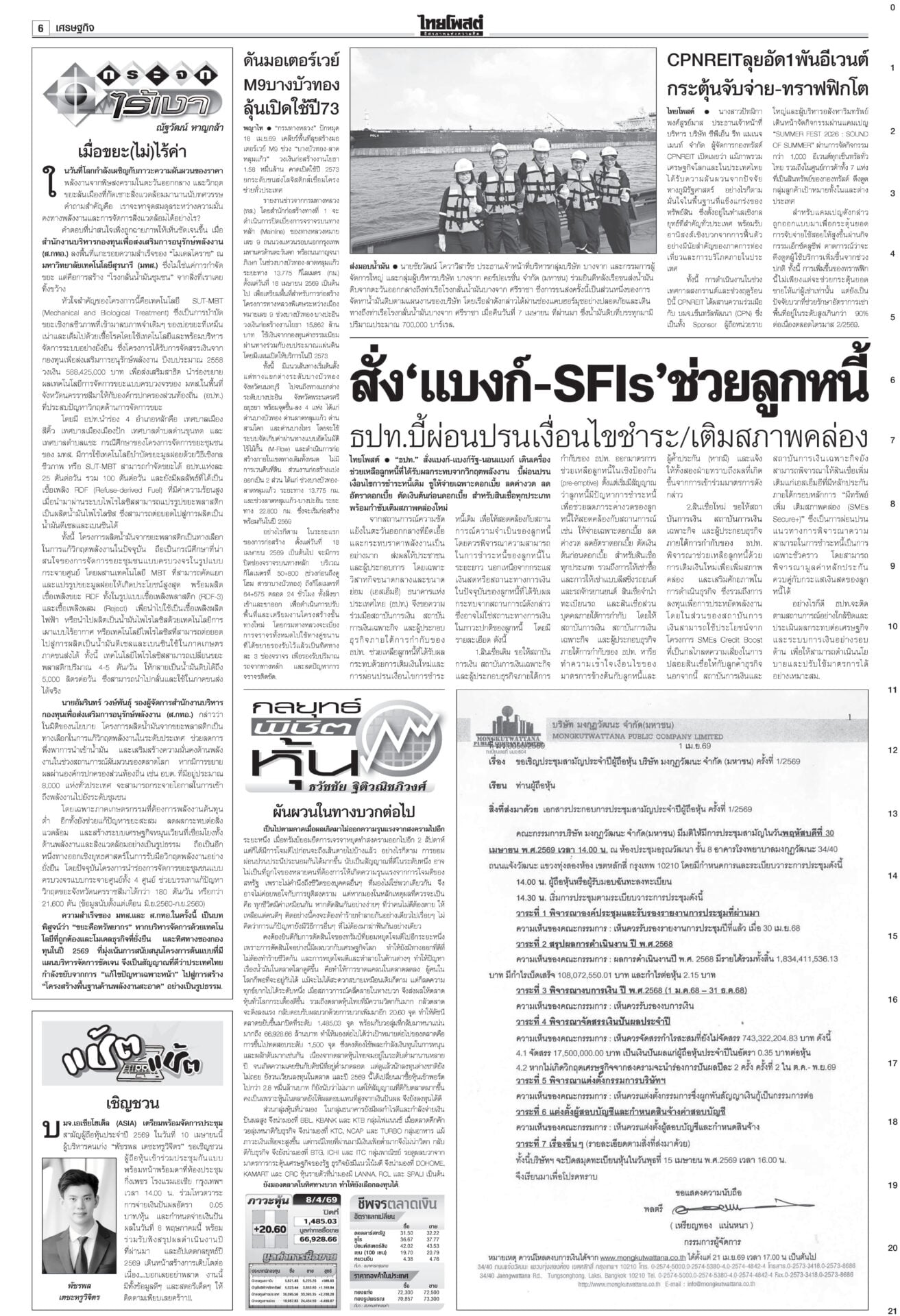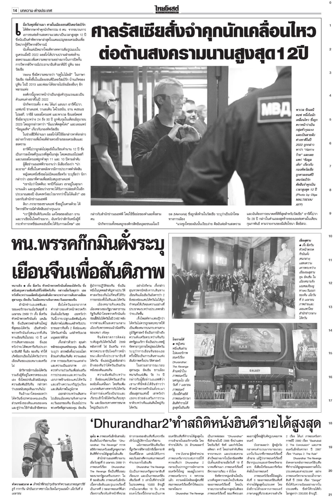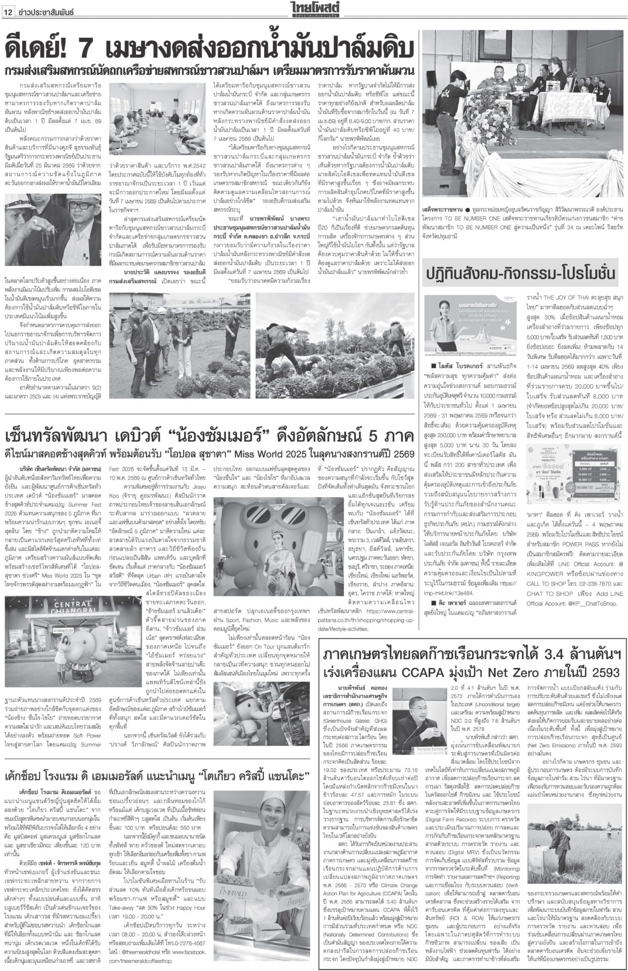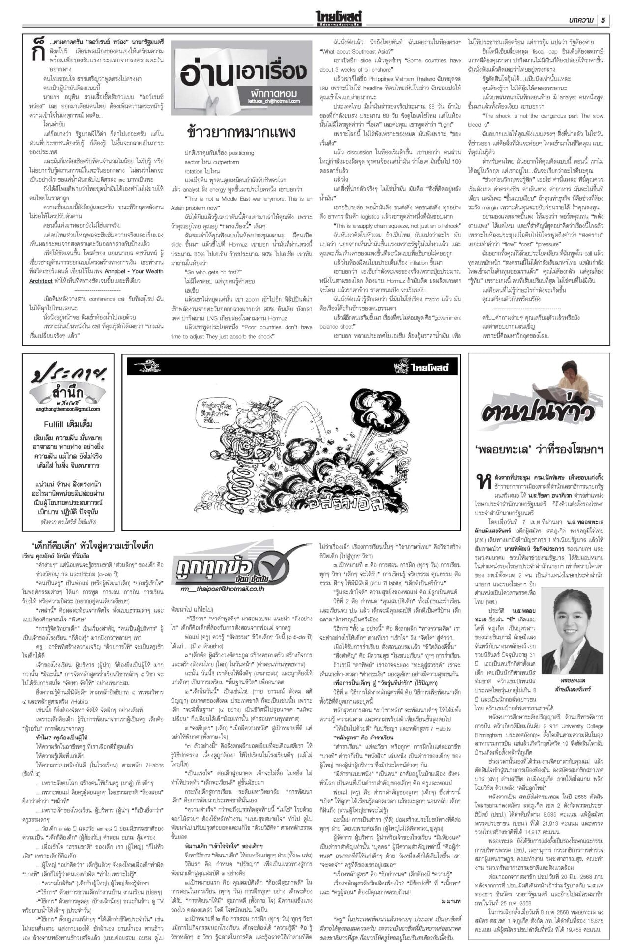 ฉบับวันที่ 9 เมษายน 2569 9 เมษายน 2569 เวลา 0:01 น. หนังสือพิมพ์ ฉบับวันที่ 9 เมษายน 2569ข่าวหน้าหนึ่งสงบศึก2สัปดาห์ ทรัมป์หยุดยิงแลกฮอร์มุซ เปิดเจรจาอิหร่าน10เม.ย.“ทรัมป์” ประกาศหยุดยิงอิหร่าน 2 สัปดาห์ แลกเปิดช่องแคบฮอร์มุซ ‘หนู’พร้อมแถลง ณัฐวุฒิเฮเข้าสภา“อนุทิน” แบ่งงานรองนายกฯ-รมต.ประจำสำนักฯ พร้อมทำการบ้านหนัก ลดดีเซลหน้าปั๊ม2.14บาท“อนุทิน” สวมบทเตมีย์ใบ้ไม่ตอบทุกคำถามสื่อ แค่พยักหน้ารับมีข่าวดีด้านพลังงาน ชนนพัฒฐ์อ่วม ‘อสส.’สั่งฟ้อง ฟอกเงิน-พนันอัยการสูงสุดชี้ขาด สั่งฟ้อง “ชนนพัฒฐ์” กับพวก คดีฟอกเงิน-พนันออนไลน์ รวม 2 สำนวน Tagsรายวันหนังสือพิมพ์ ข่าวที่เกี่ยวข้อง ฉบับวันที่ 8 เมษายน 2569 ฉบับวันที่ 7 เมษายน 2569 ฉบับวันที่ 6 เมษายน 2569 ฉบับวันที่ 5 เมษายน 2569 ฉบับวันที่ 5 เมษายน 2569 ฉบับวันที่ 4 เมษายน 2569 ฉบับวันที่ 3 เมษายน 2569 NEWS UPDATE 0:01 น. แถลงนโยบายรัฐบาล9-10เม.ย. เก็งข้อสอบ รอหวดยับ"อนุทิน" 21:03 น. หน่วยงานต่างๆ ร่วมบำเพ็ญกุศลอุทิศถวายพระบรมศพ'พระพันปีหลวง' 21:01 น. สภาฯ ครบ 500 คนแล้ว กกต. ประกาศรับรองผลเลือกตั้ง เขต 2 สุพรรณบุรี 20:44 น. 'อนุทิน' ลงนามคำสั่งแบ่งงาน 3 รมช.มหาดไทย 19:43 น. อิหร่านยังโจมตีรัฐในอ่าวเปอร์เซีย แม้ตกลงหยุดยิงอย่างเปราะบางกับสหรัฐฯ